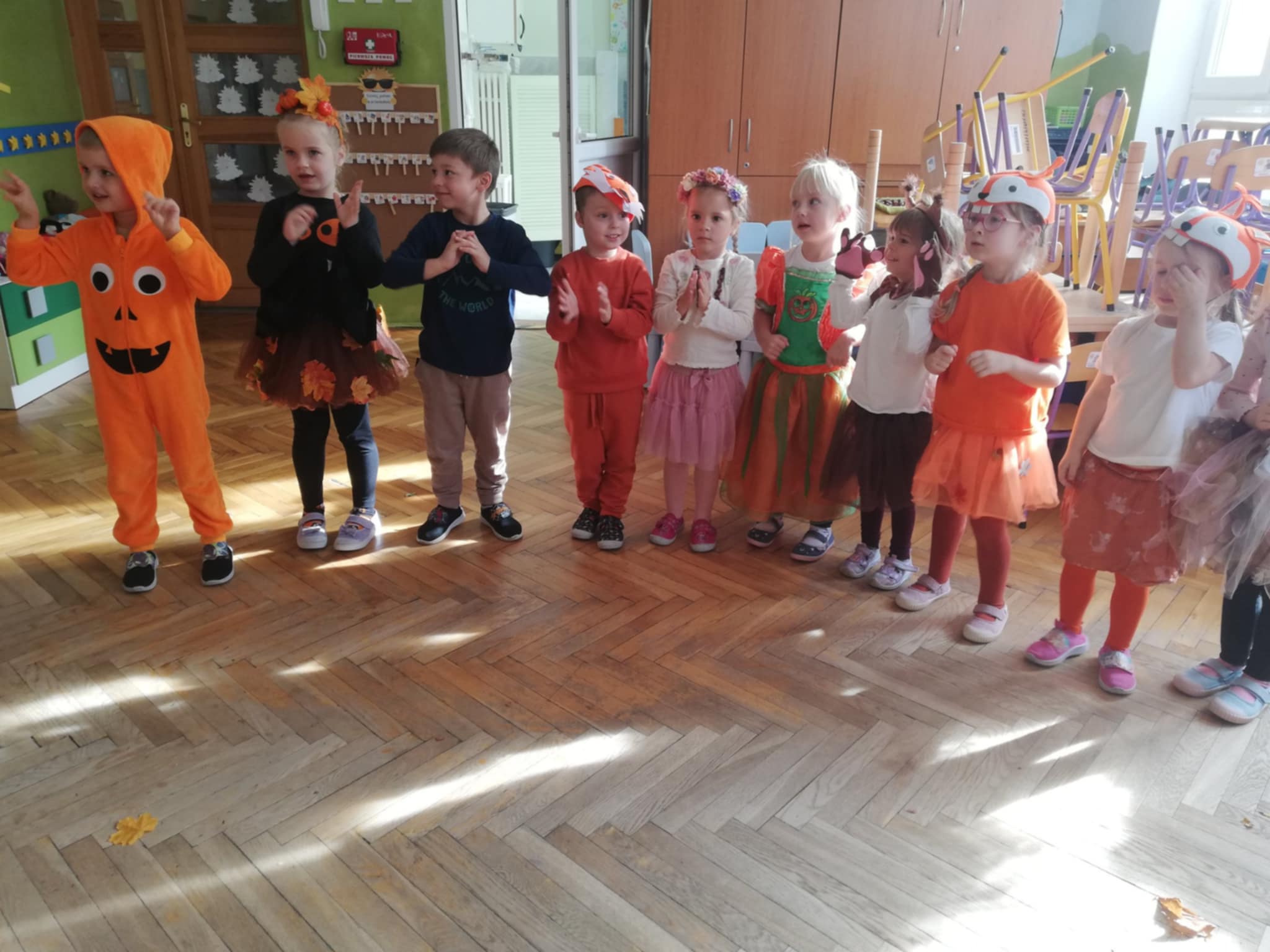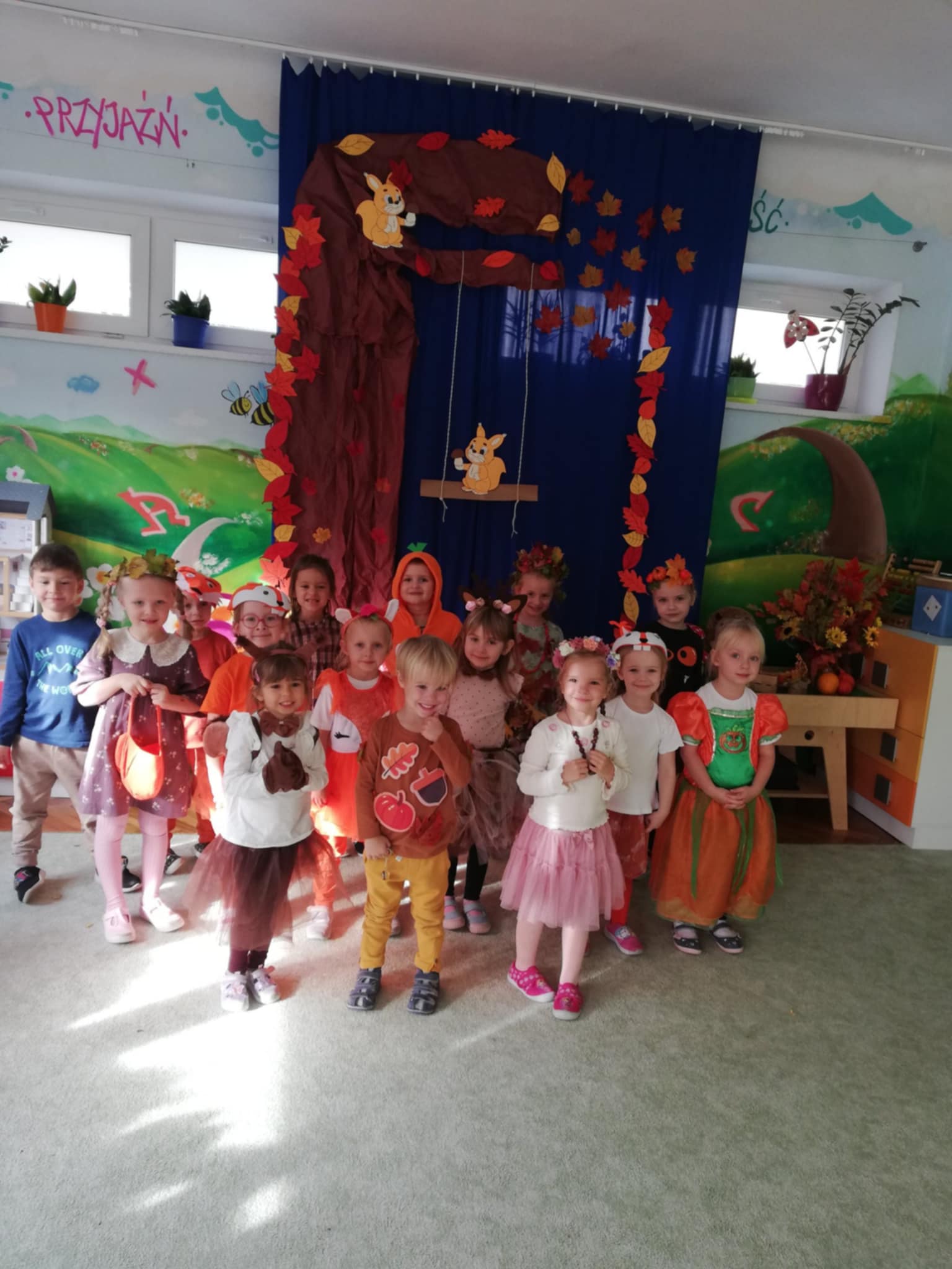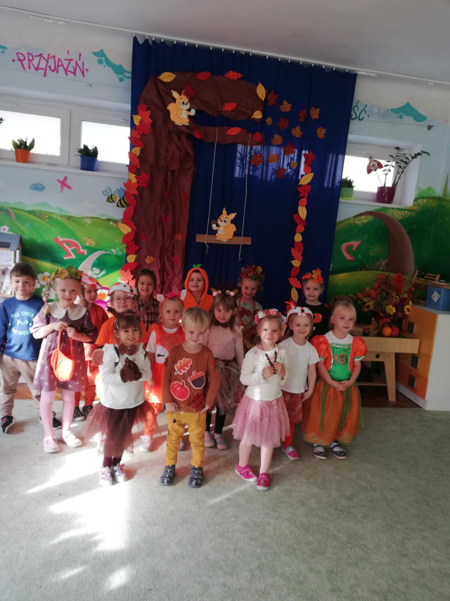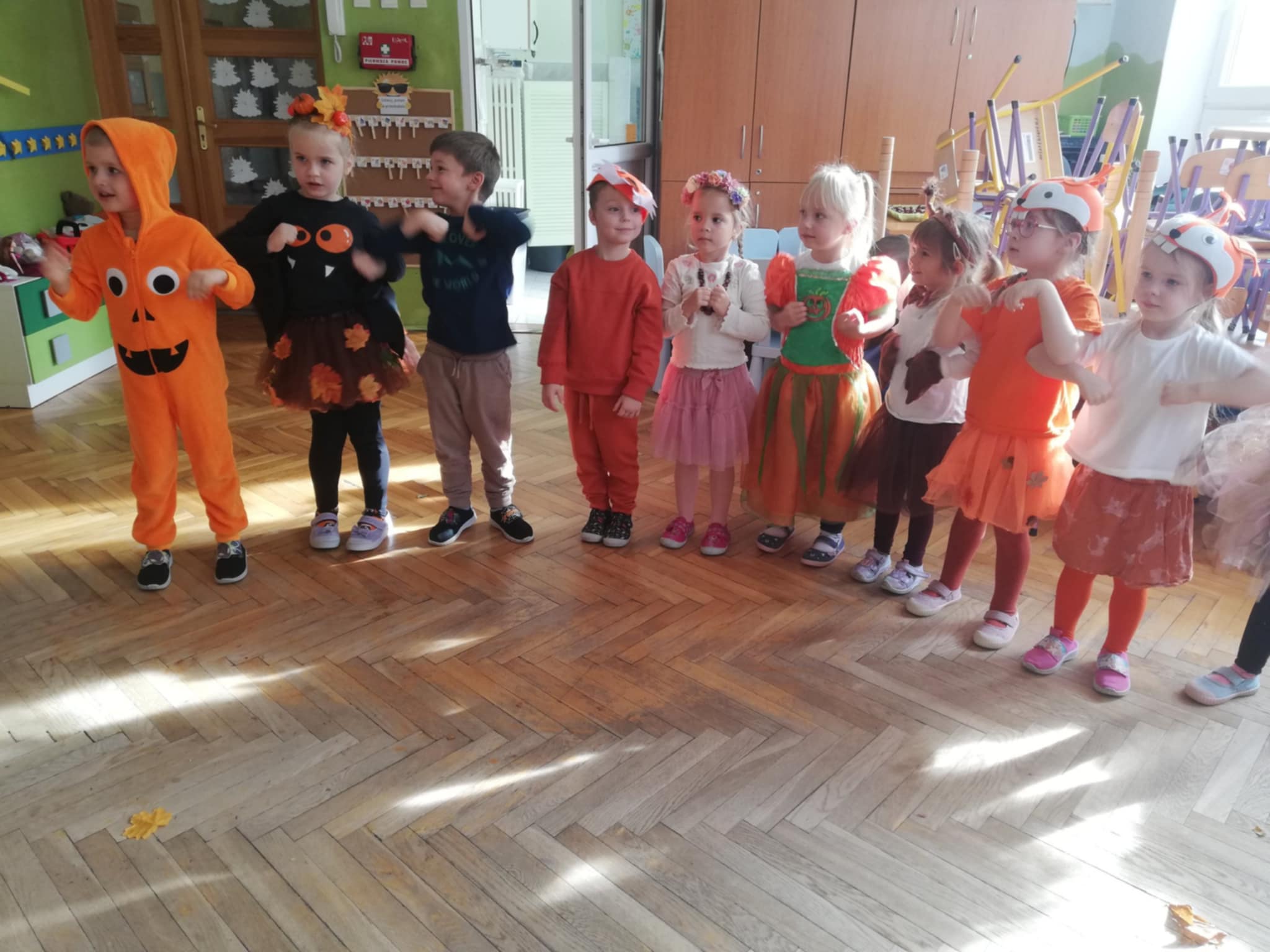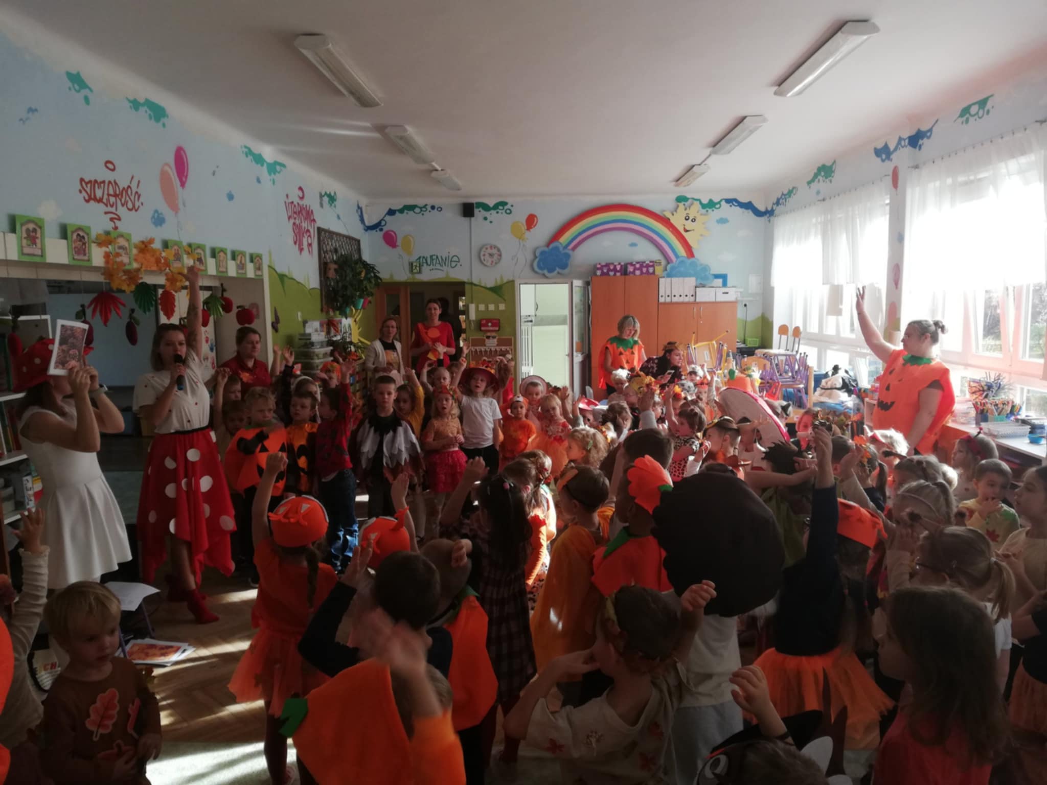 Bal Jesieni to jeden z tych dni, na który wszyscy czekają. Piękna pora roku zachęca do zabaw nie tylko na zewnątrz. Na balu bawiliśmy się z kolegami i koleżankami wszystkich grup przedszkolnych. Braliśmy udział w jesiennych konkursach i zabawach. Były również swobodne tańce i zabawy z chusta animacyjną, w których misie, jeżyki, wilczki, muchomorki, panie Jesień..., doskonale się odnalazły. Nawet zajęcia rytmiczne, były w klimacie balu jesiennego.