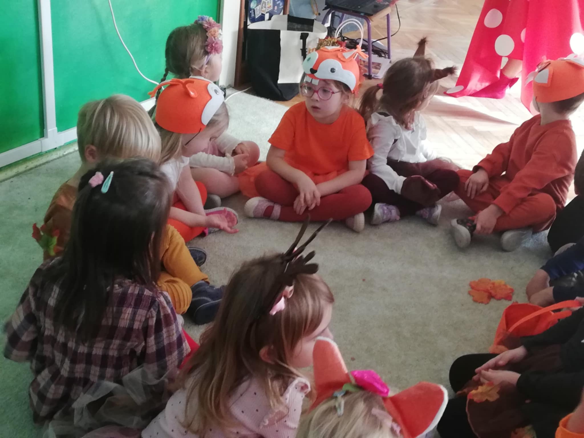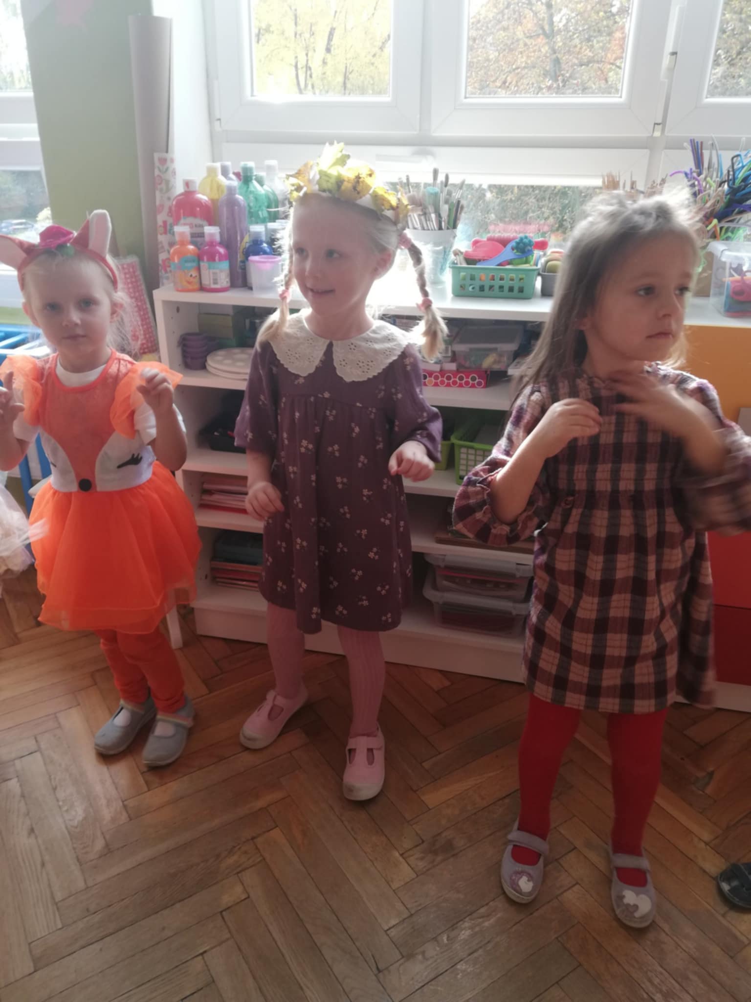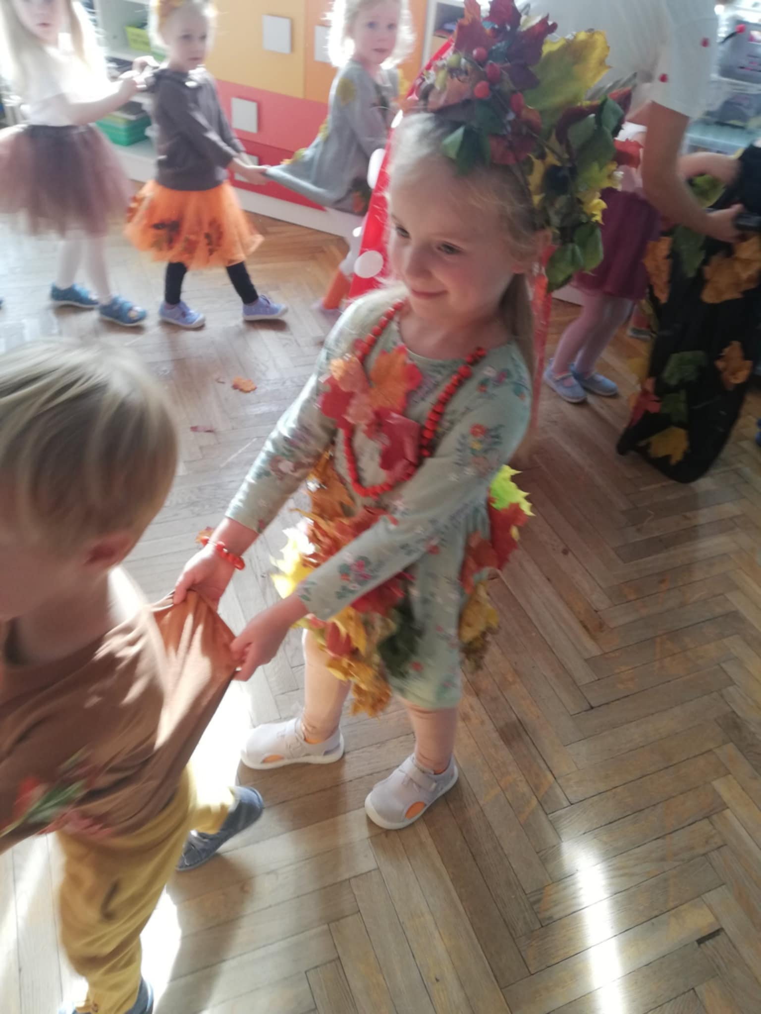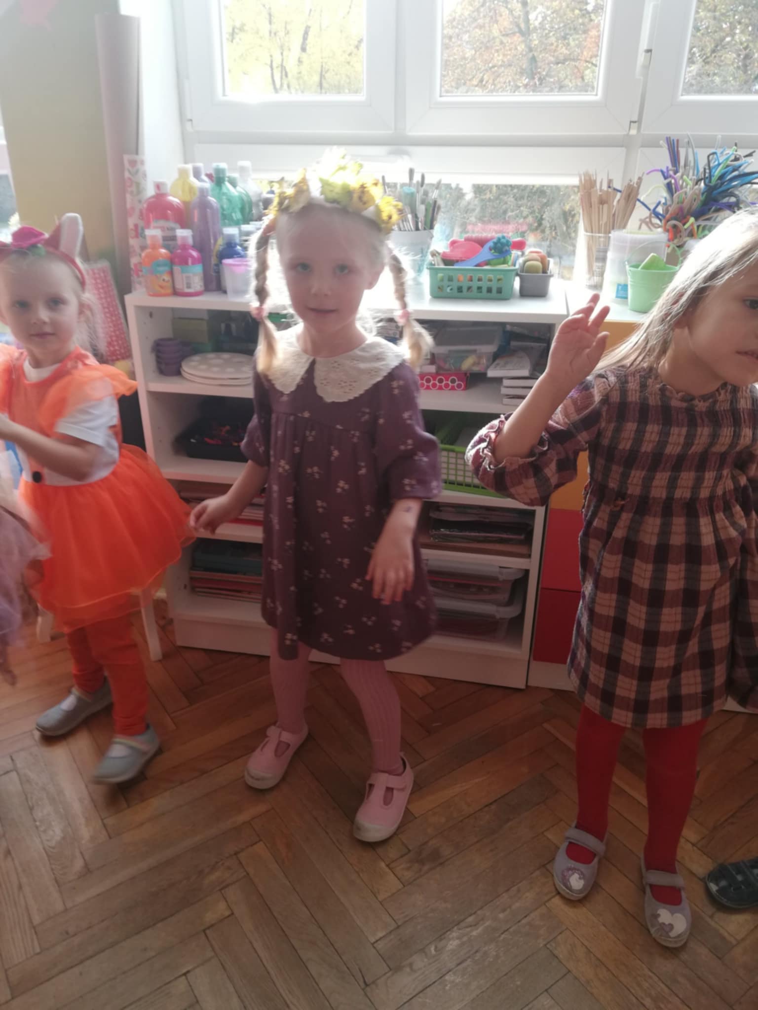Bal Jesieni to jeden z tych dni, na który wszyscy czekają. Piękna pora roku zachęca do zabaw nie tylko na zewnątrz. Na balu bawiliśmy się z kolegami i koleżankami wszystkich grup przedszkolnych. Braliśmy udział w jesiennych konkursach i zabawach. Były również swobodne tańce i zabawy z chusta animacyjną, w których misie, jeżyki, wilczki, muchomorki, panie Jesień..., doskonale się odnalazły. Nawet zajęcia rytmiczne, były w klimacie balu jesiennego.