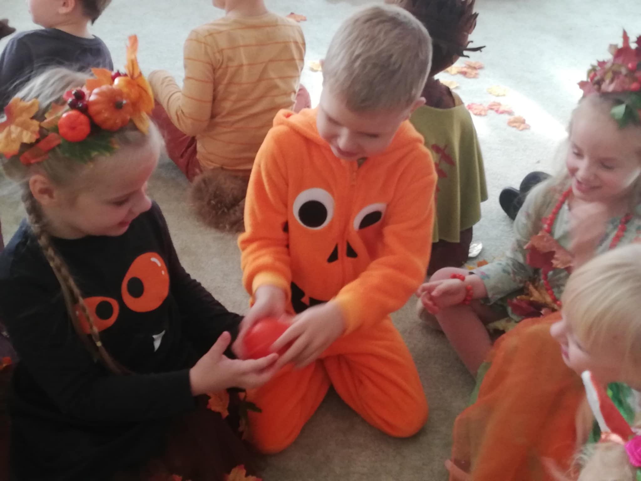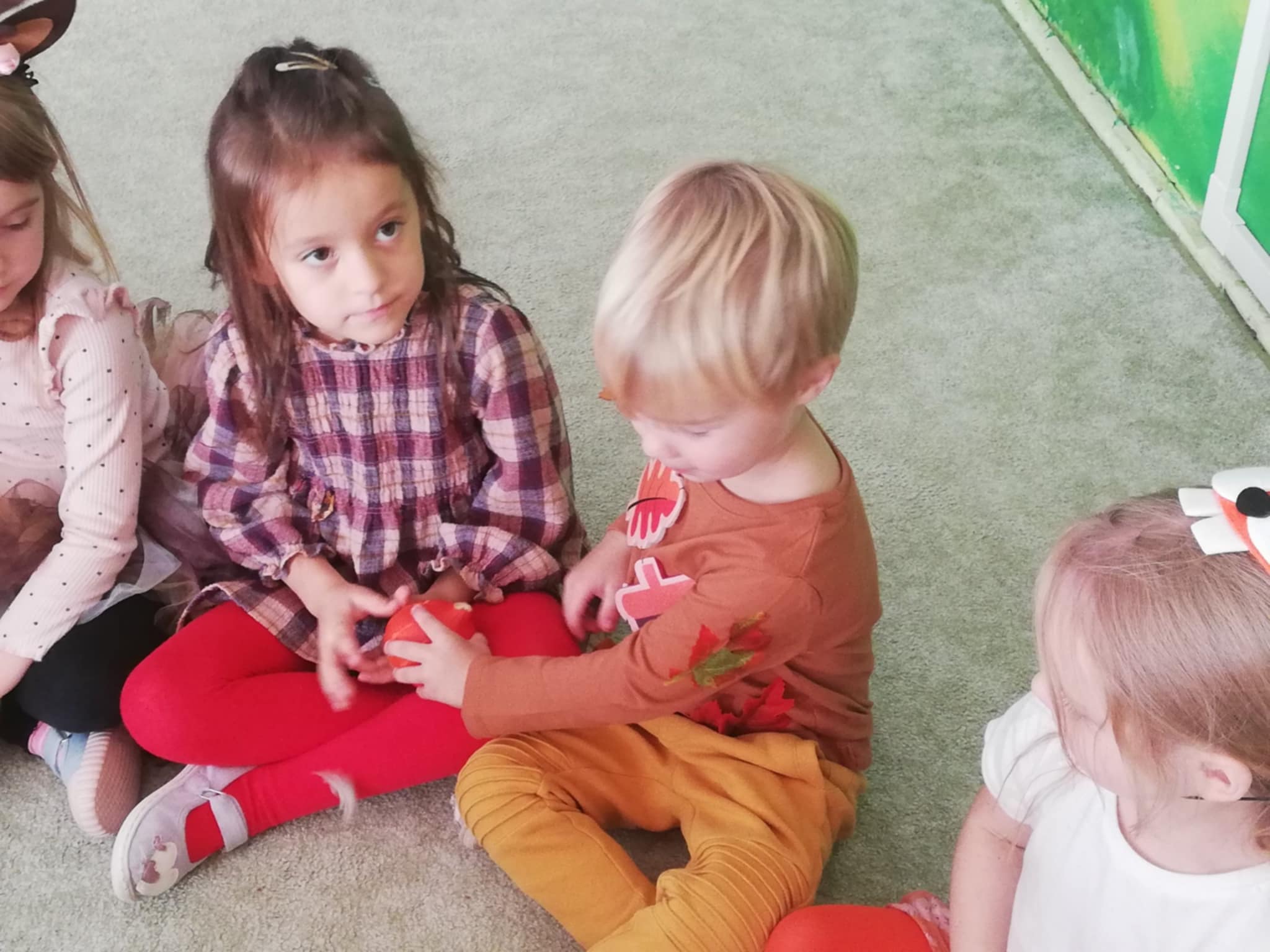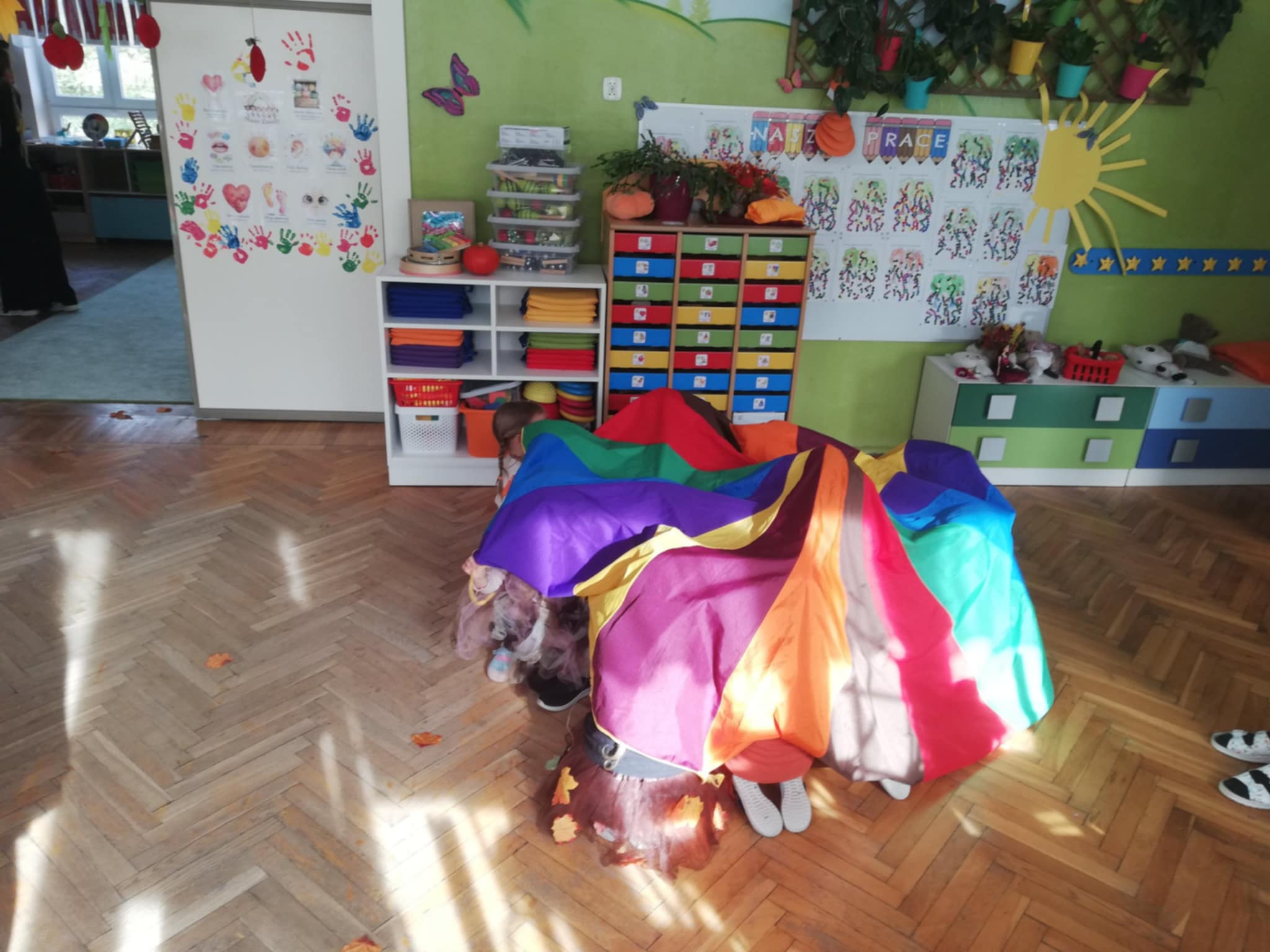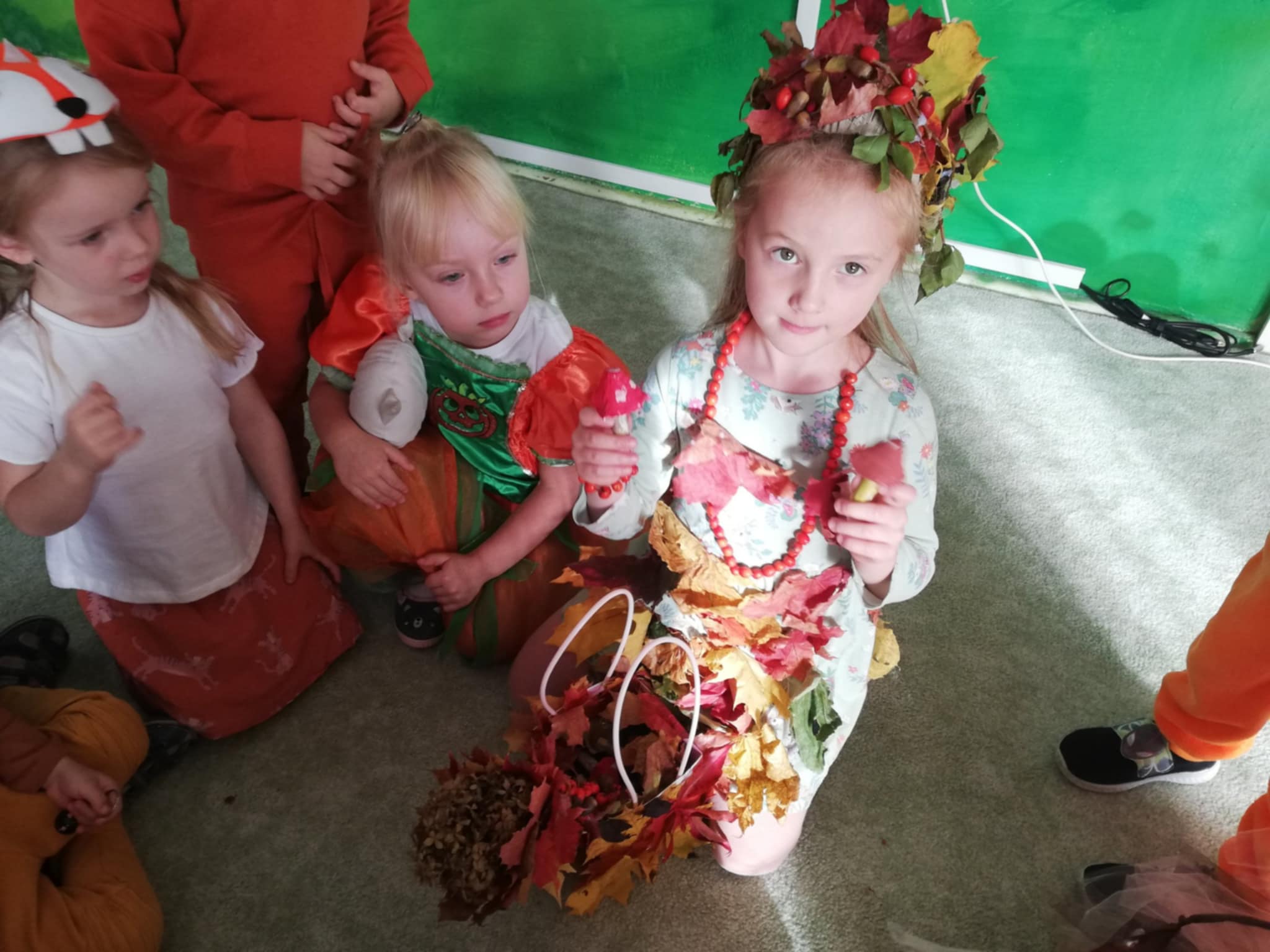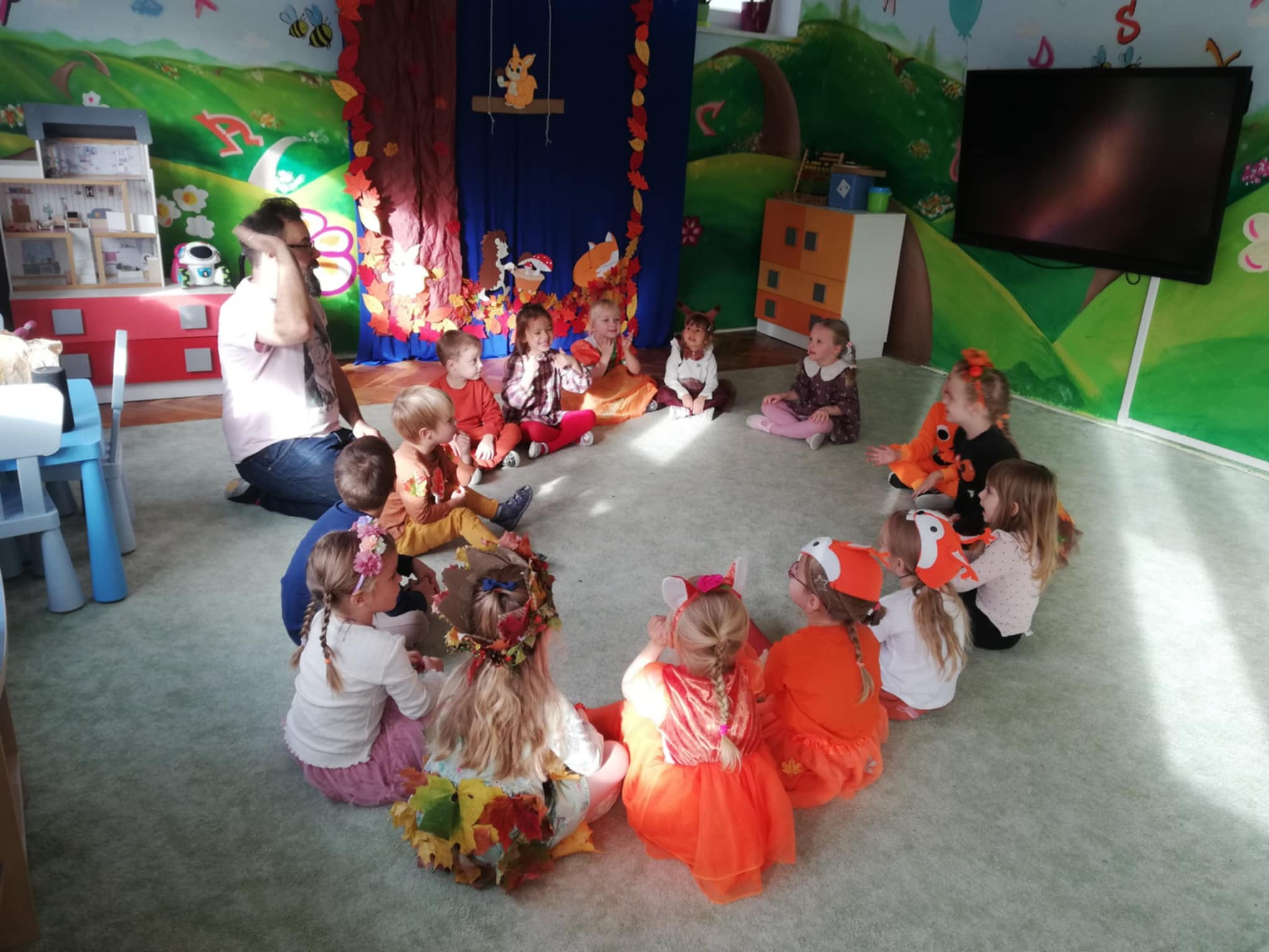 Bal Jesieni to jeden z tych dni, na który wszyscy czekają. Piękna pora roku zachęca do zabaw nie tylko na zewnątrz. Na balu bawiliśmy się z kolegami i koleżankami wszystkich grup przedszkolnych. Braliśmy udział w jesiennych konkursach i zabawach. Były również swobodne tańce i zabawy z chusta animacyjną, w których misie, jeżyki, wilczki, muchomorki, panie Jesień..., doskonale się odnalazły. Nawet zajęcia rytmiczne, były w klimacie balu jesiennego.