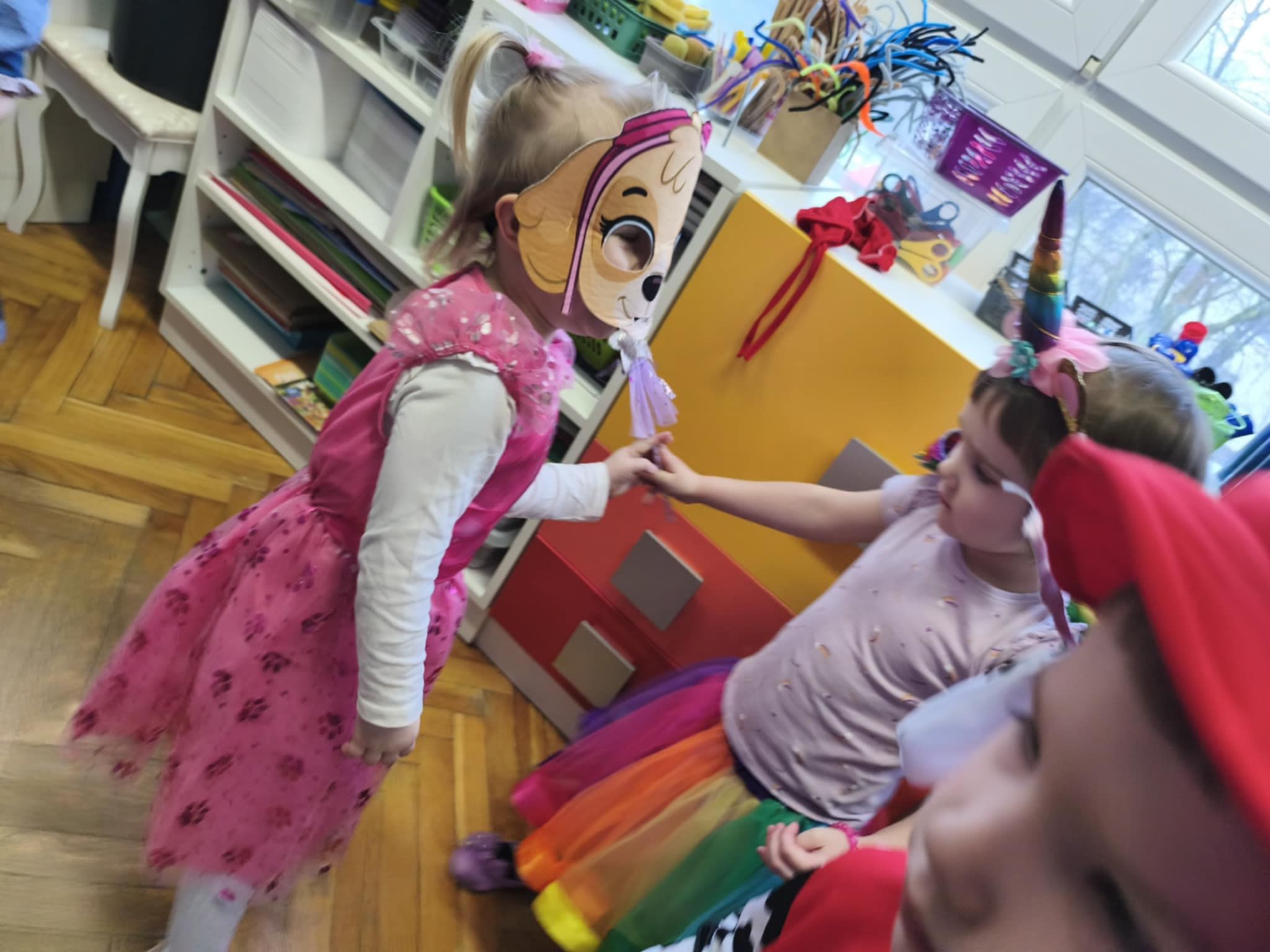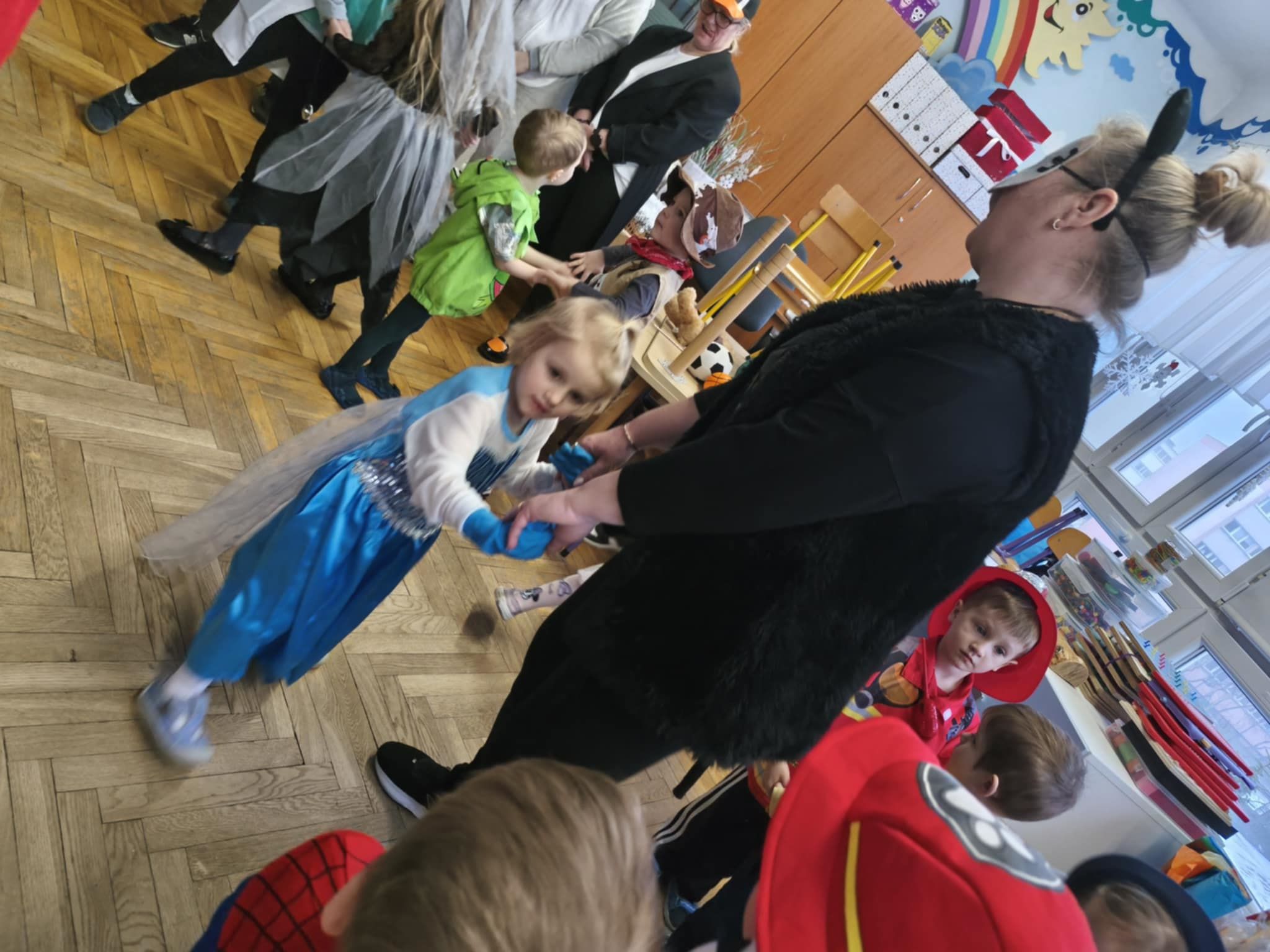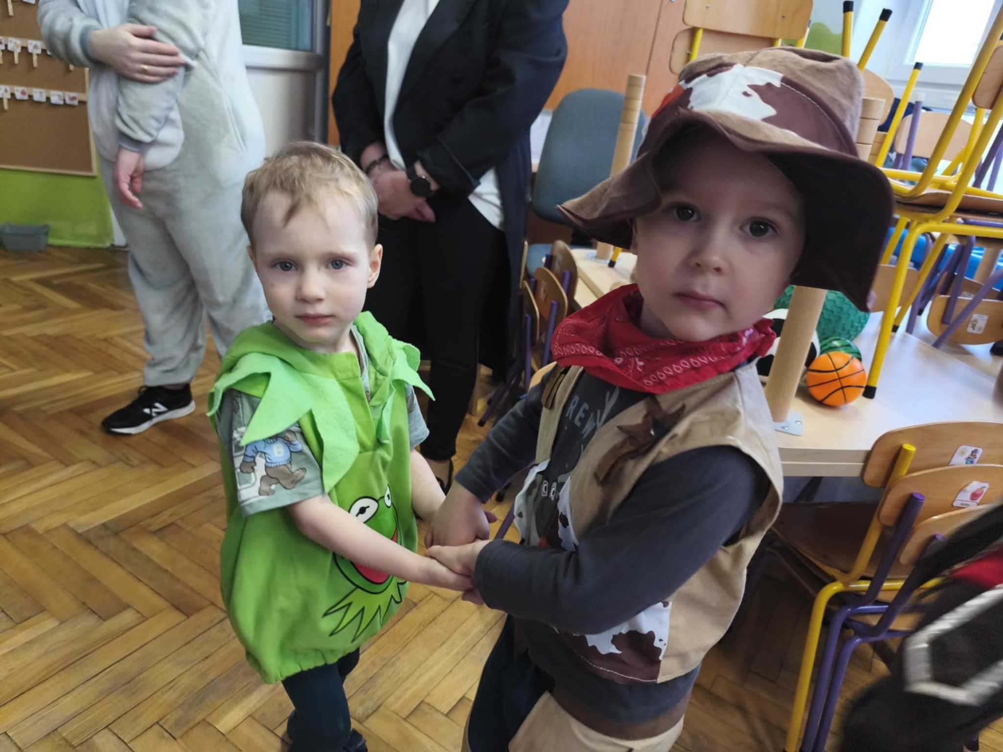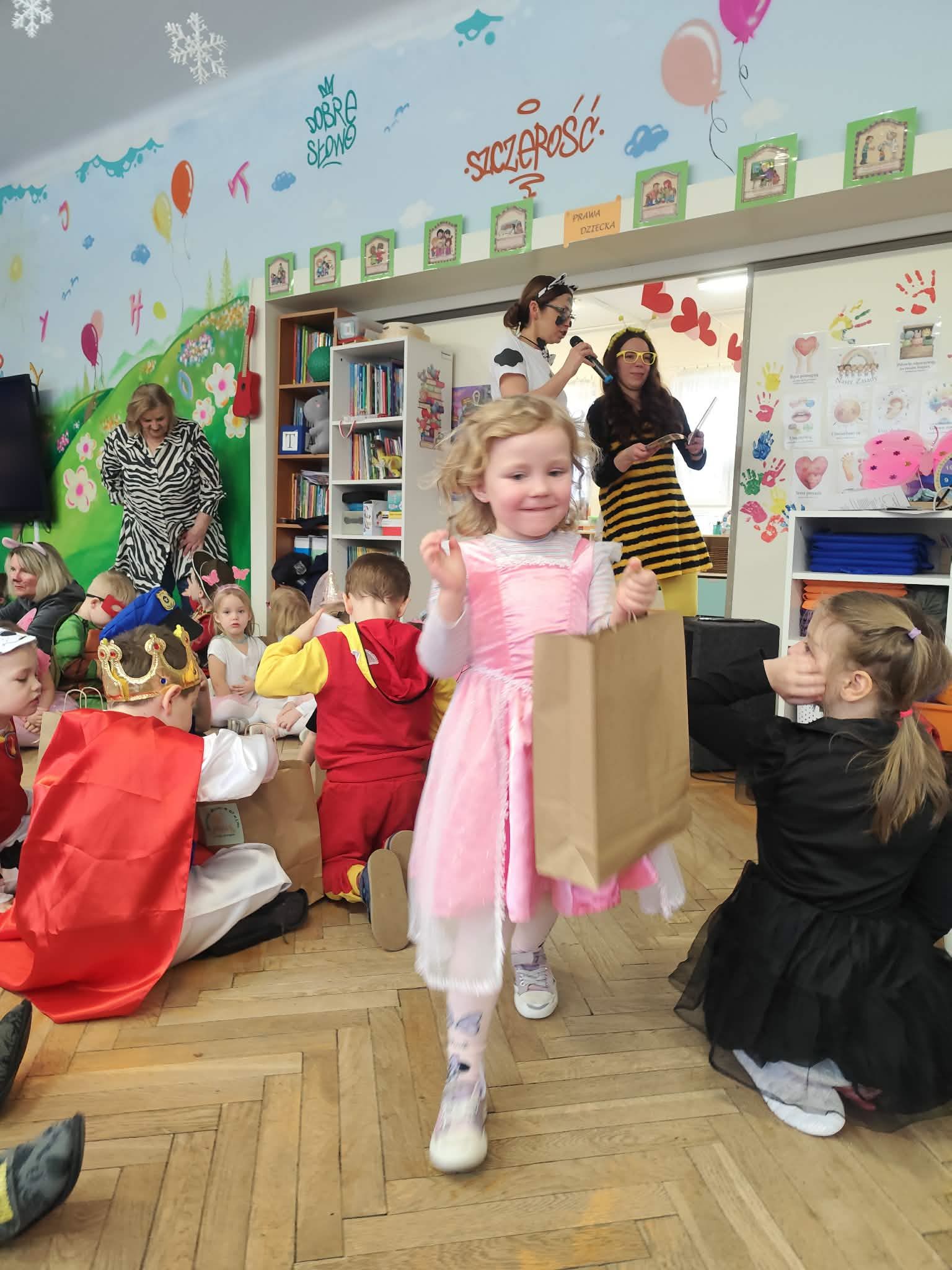 Dookoła przebierańcy każdy skacze, każdy tańczy.