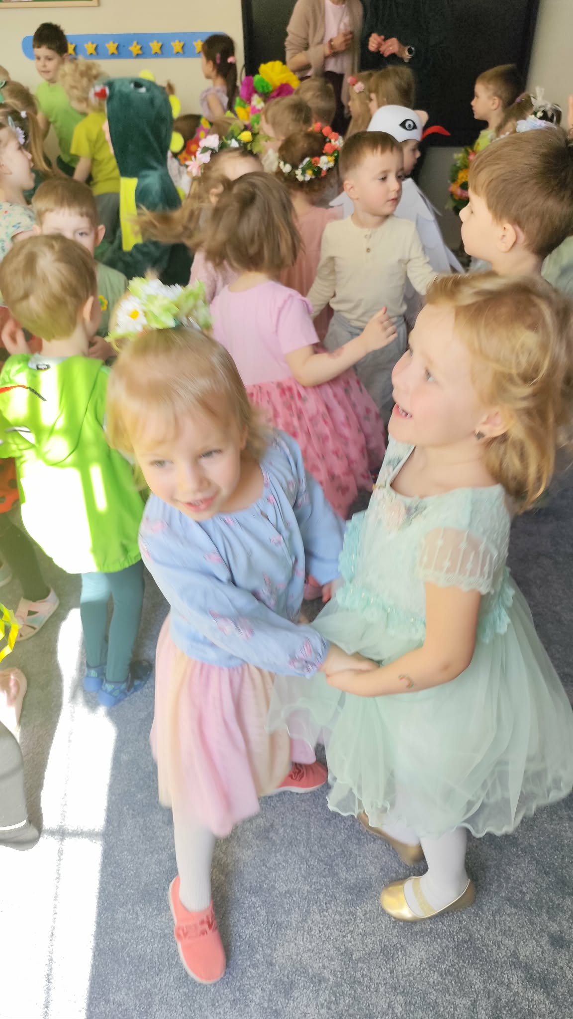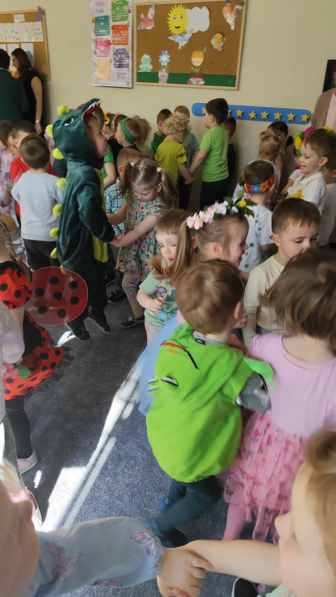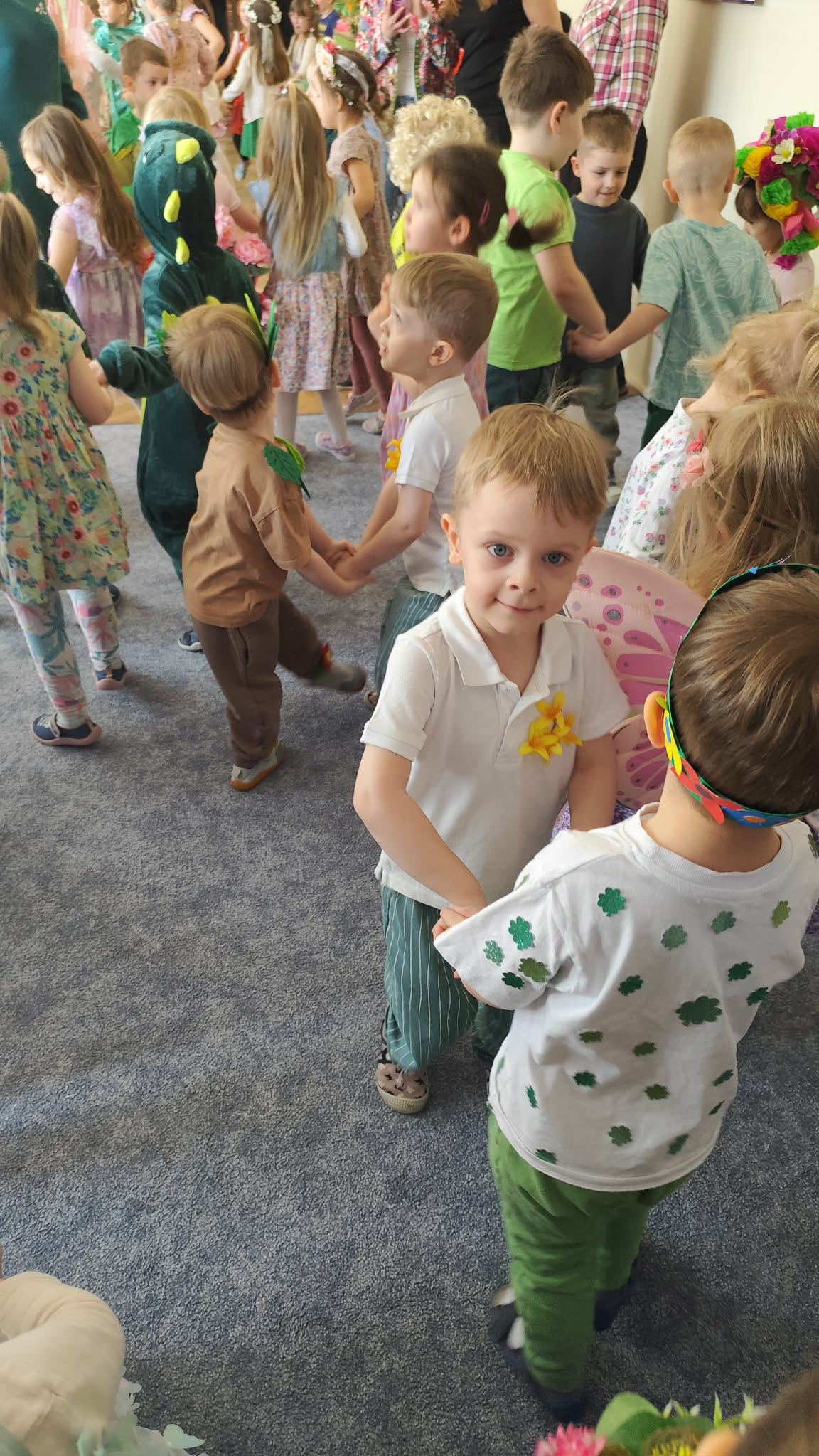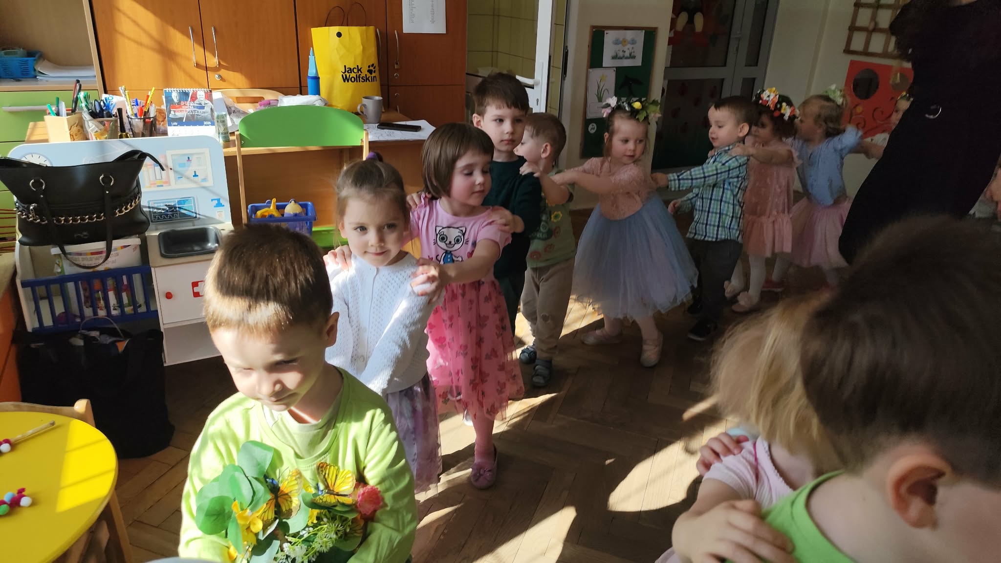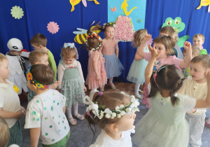 Ten tydzień rozpoczynamy w przedszkolu Balem Wiosny. To świetna okazja do integracji między grupami, wspólnych zabaw a także rywalizacji w zabawach organizowanych podczas balu. Nasza grupa była godnie reprezentowana przez Feliksa, Helenkę oraz Oliwiera, pozostałe Kropelki bardzo pięknie i głośno dopingowali swoich kolegów i koleżankę. Po konkursach rozpoczęła się świetna zabawa przy największych hitach dziecięcej muzyki. Wszystkie dzieci pięknie tańczyły i bardzo ładnie się bawiły. To był naprawdę bardzo taneczny i wesoły dzień.