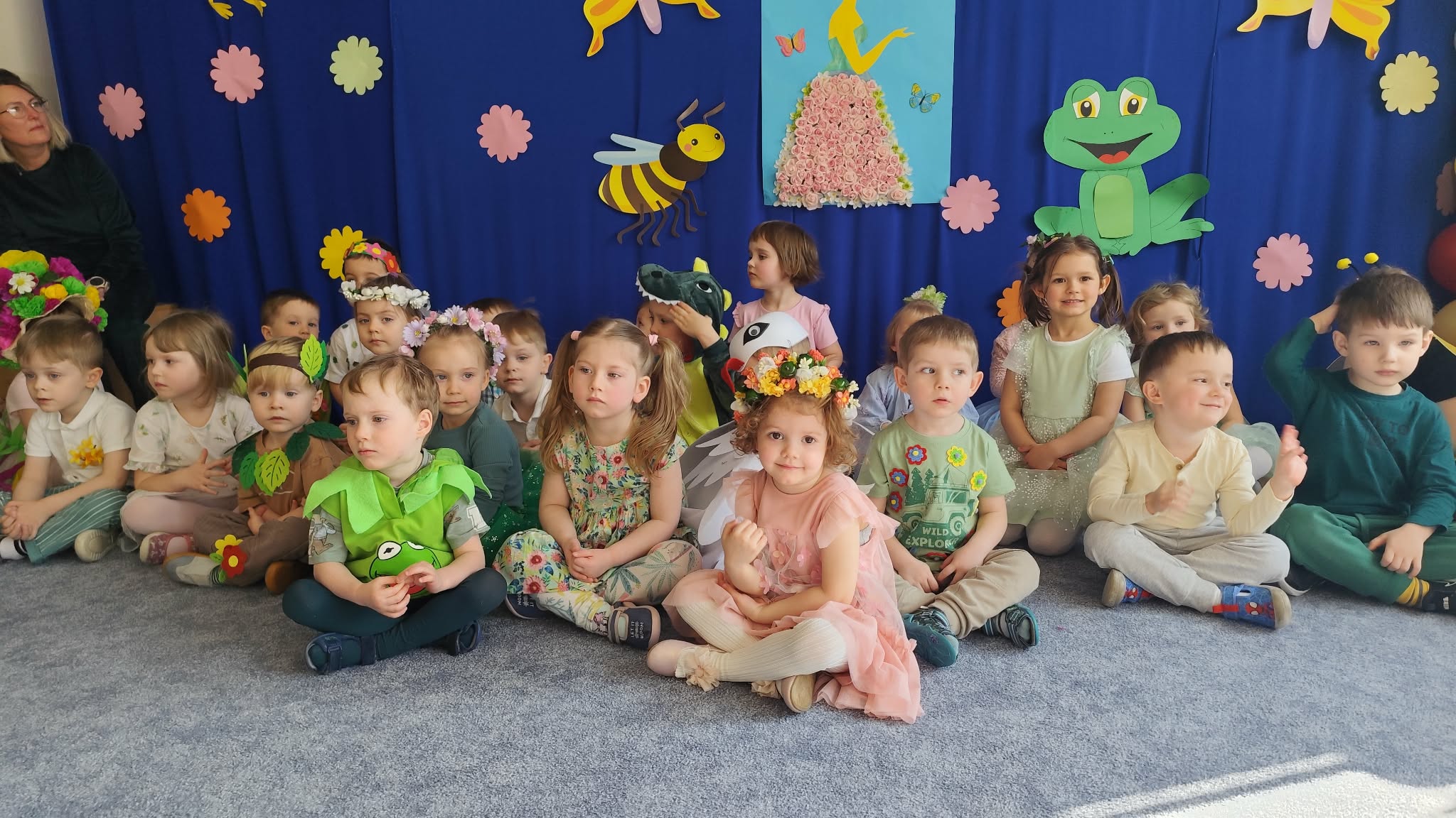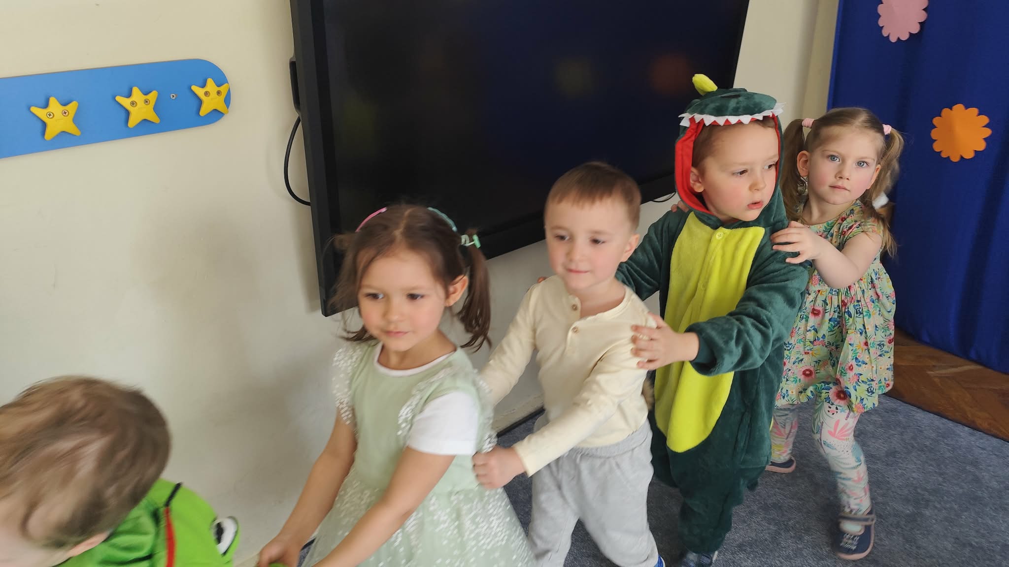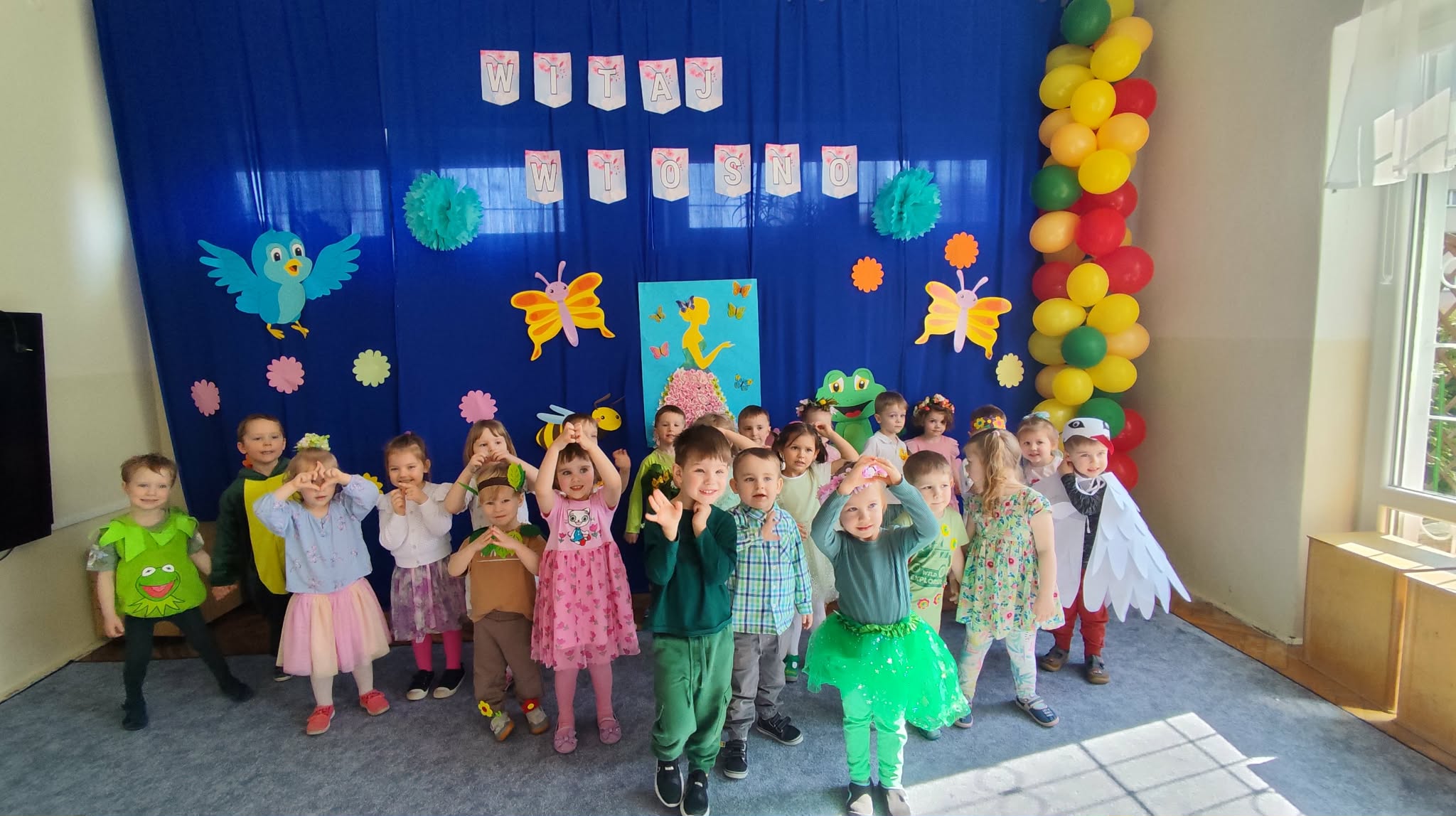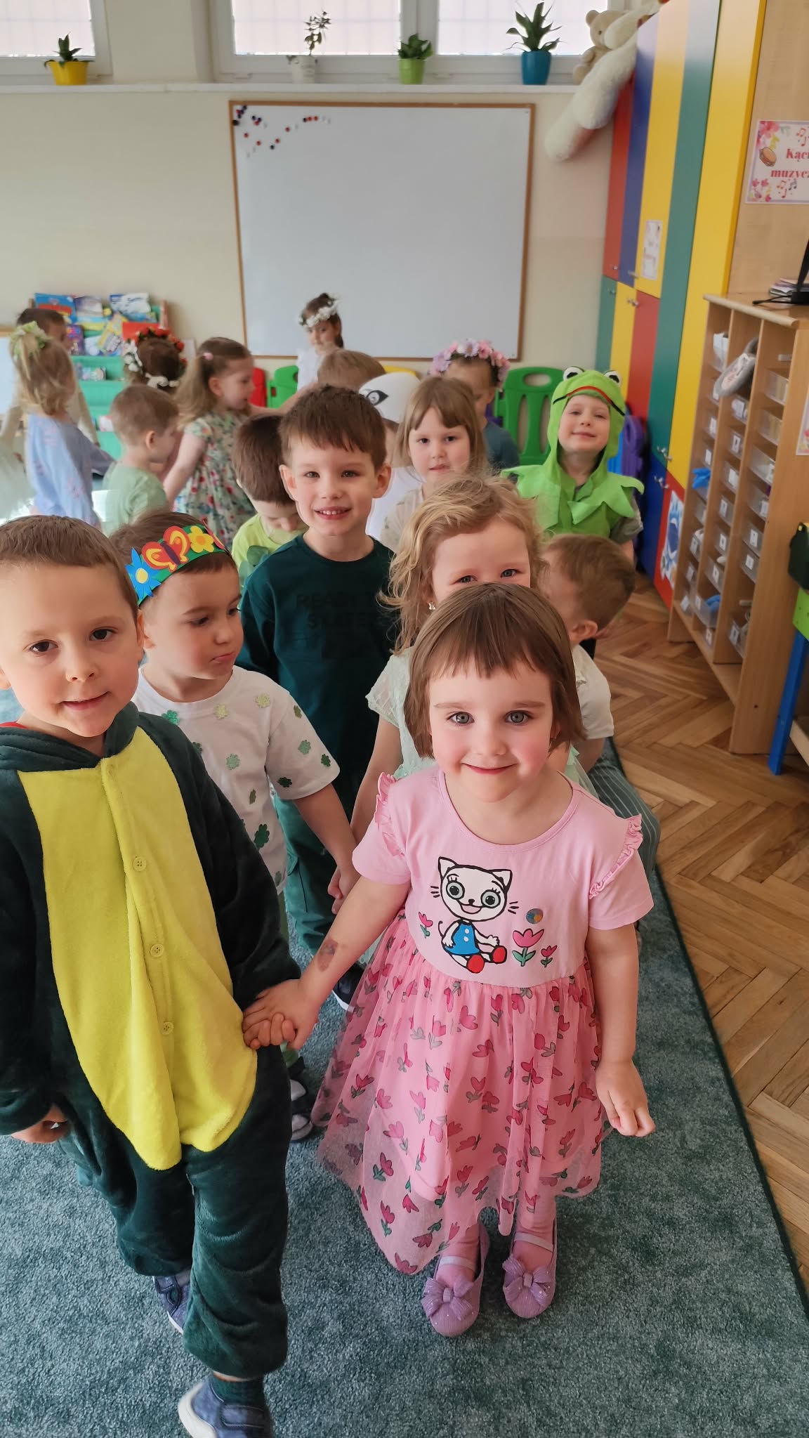 Ten tydzień rozpoczynamy w przedszkolu Balem Wiosny. To świetna okazja do integracji między grupami, wspólnych zabaw a także rywalizacji w zabawach organizowanych podczas balu. Nasza grupa była godnie reprezentowana przez Feliksa, Helenkę oraz Oliwiera, pozostałe Kropelki bardzo pięknie i głośno dopingowali swoich kolegów i koleżankę. Po konkursach rozpoczęła się świetna zabawa przy największych hitach dziecięcej muzyki. Wszystkie dzieci pięknie tańczyły i bardzo ładnie się bawiły. To był naprawdę bardzo taneczny i wesoły dzień.