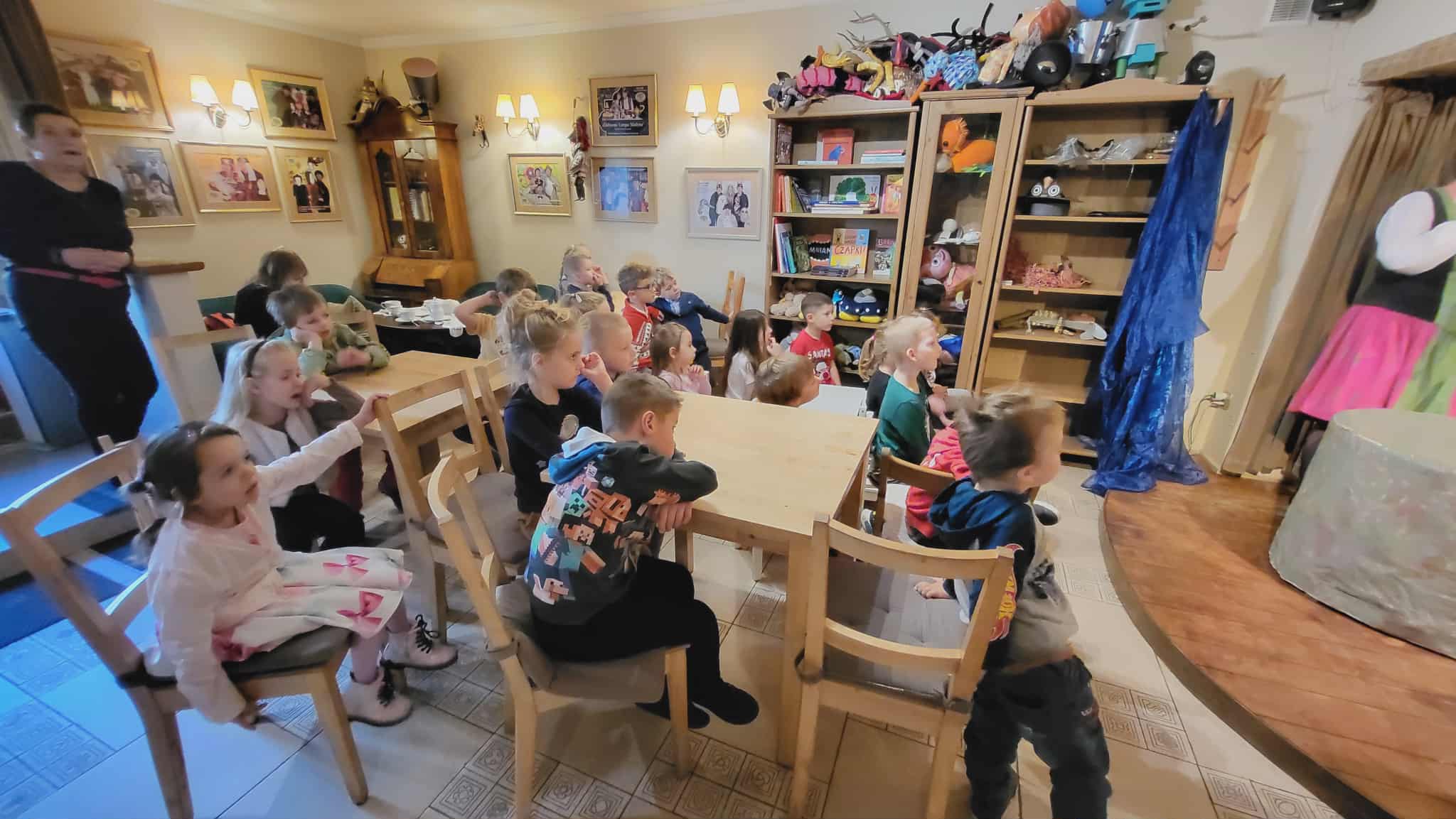 Dzisiaj wybraliśmy się do Teatru Baśniowa Kawiarenka. Dzieciaki z wielkim zaciekawieniem oglądały przedstawienie pt. " Pinokio". Przedszkolakom najbardziej podobały się atrakcje, w postaci efektów świetlnych i dźwiękowych. Dzieci wróciły do przedszkola pełne niesamowitych wrażeń.