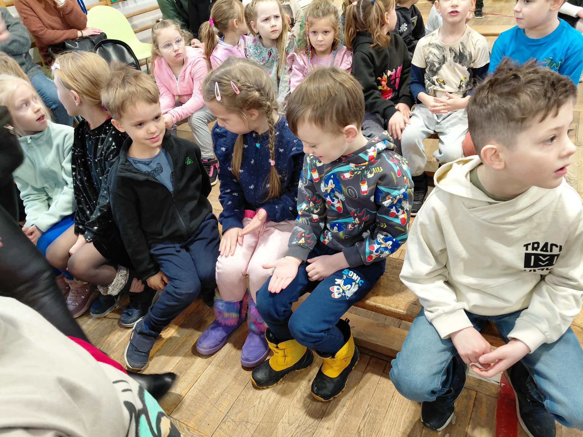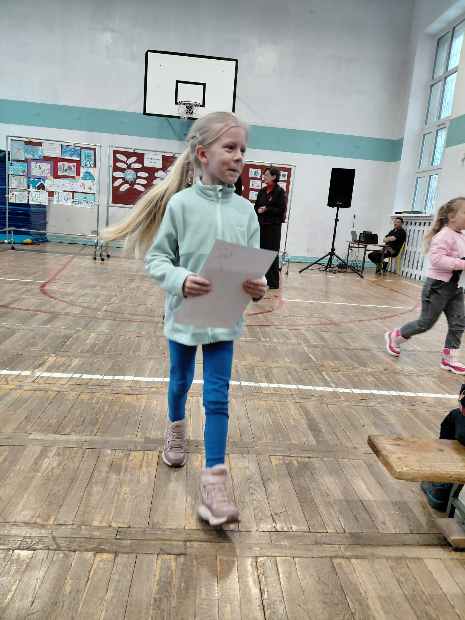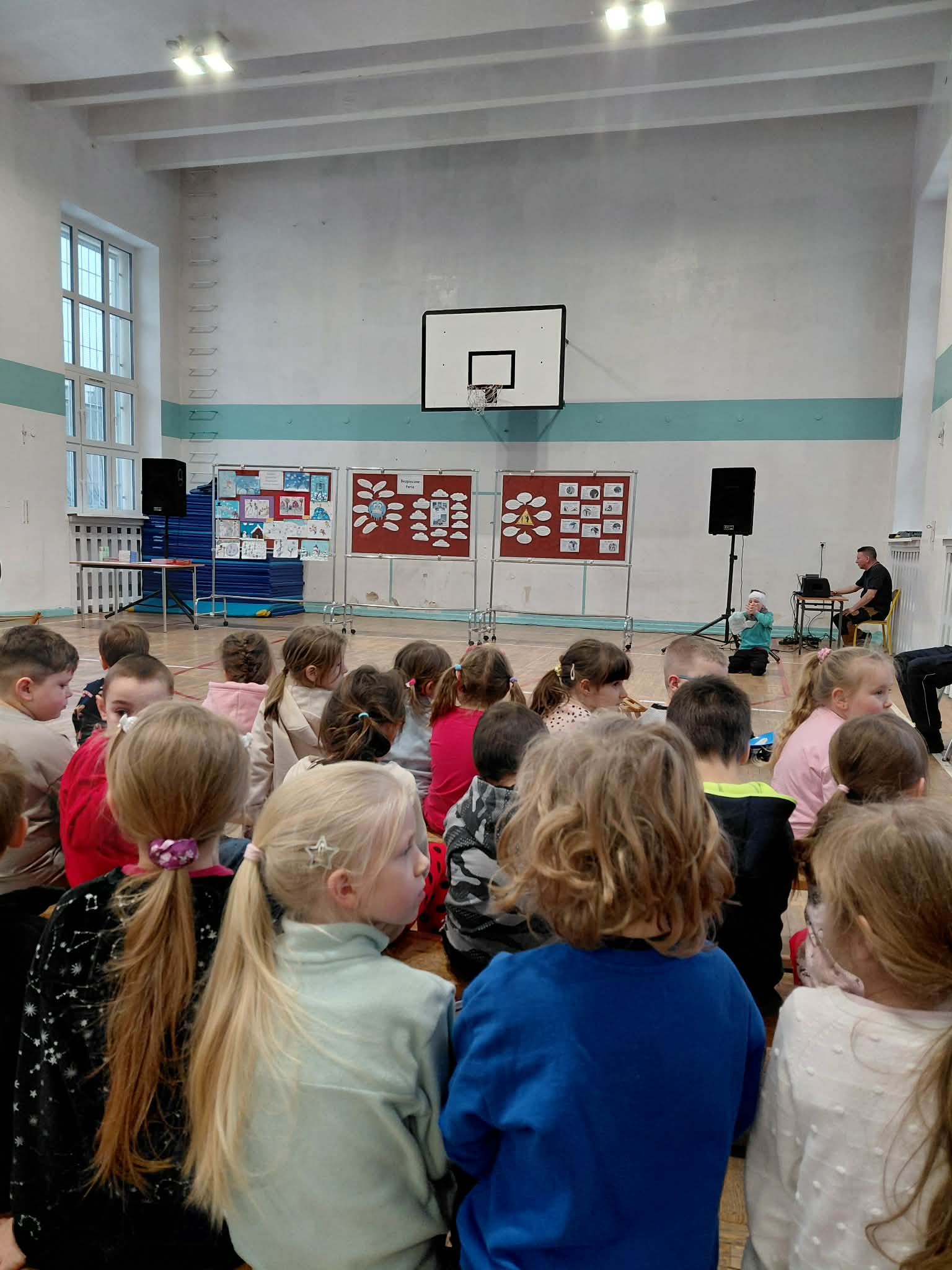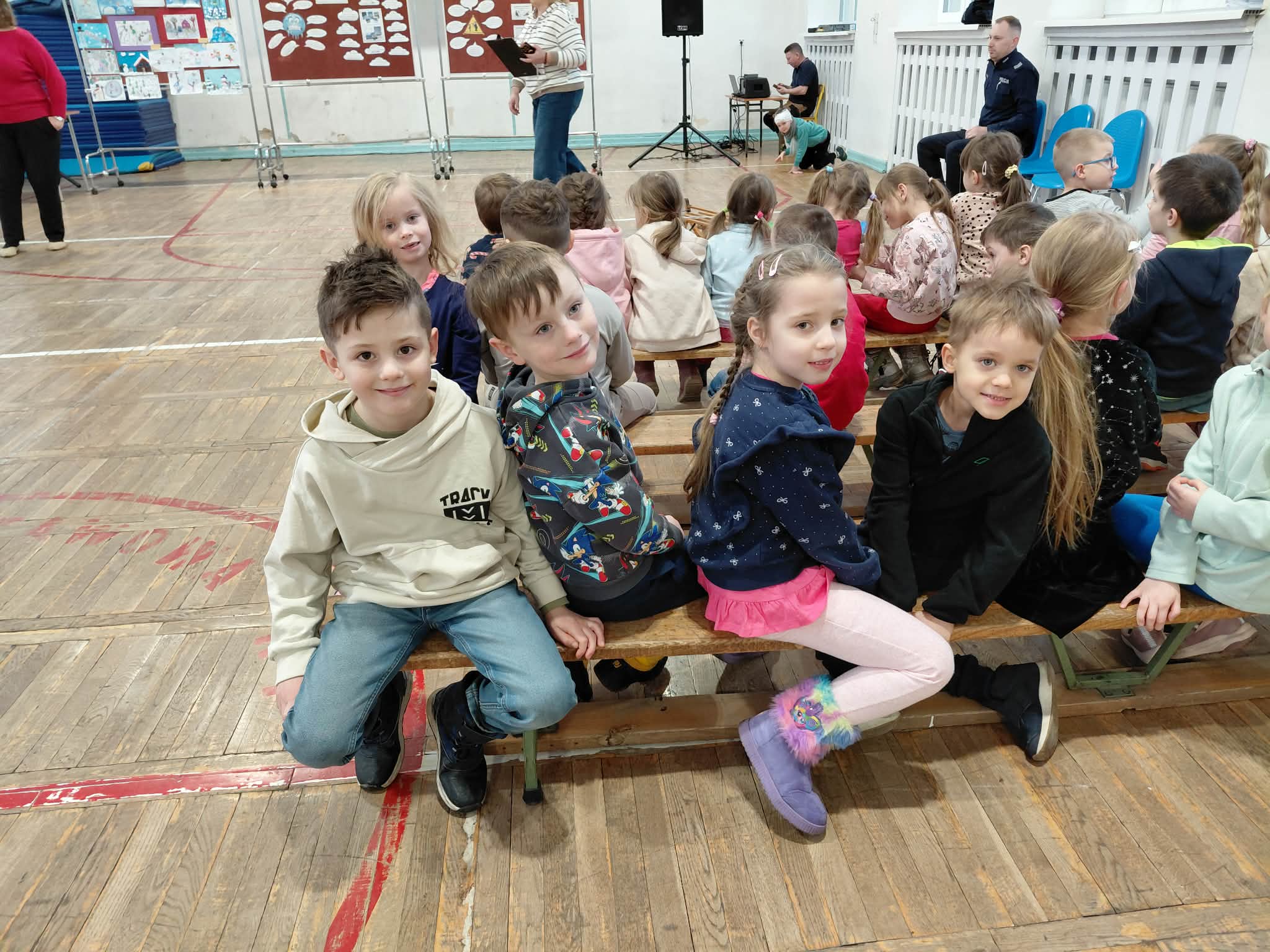 Pod koniec stycznia odwiedziliśmy Szkołę Podstawową nr 4. Uczestniczyliśmy w działaniach w ramach projektu "Przygoda z czwórką". Braliśmy udział w akcji BEZPIECZNE FERIE oraz w rozstrzygnięciu konkursu " Bezpieczne zabawy zimowe". Troje dzieci z naszej grupy zdobyło dyplomy i nagrody. W uroczystości brały również udział dzieci z innych przedszkoli. Obejrzeliśmy także przygotowany przez dzieci ze SP nr 4 występ dotyczący bezpieczeństwa podczas ferii zimowych. Dzieci miały również możliwość zapoznania się ze szkołą, odwiedziliśmy świetlicę, słyszeliśmy szkolny dzwonek. Było to dla wszystkich nowe doświadczenie.