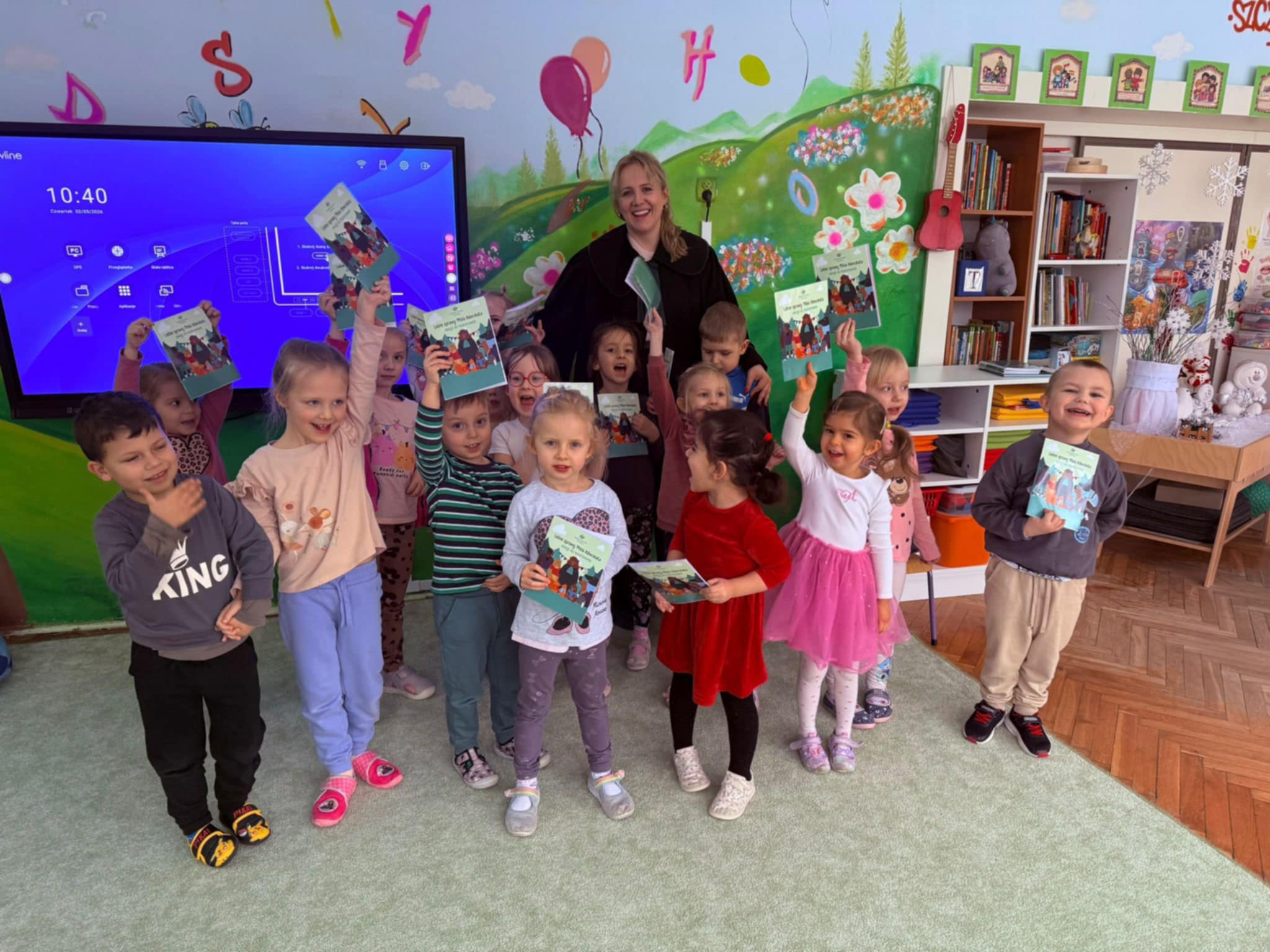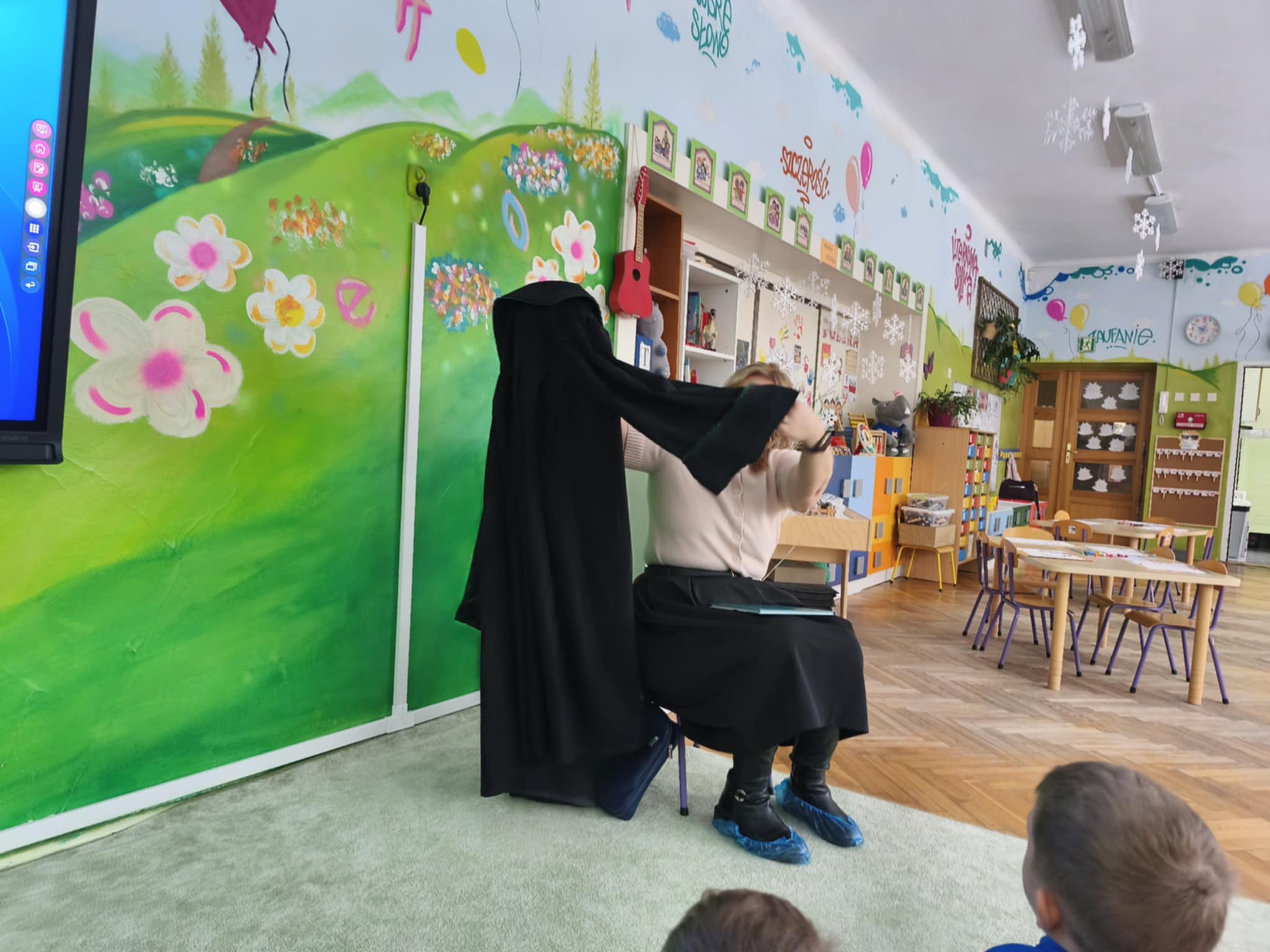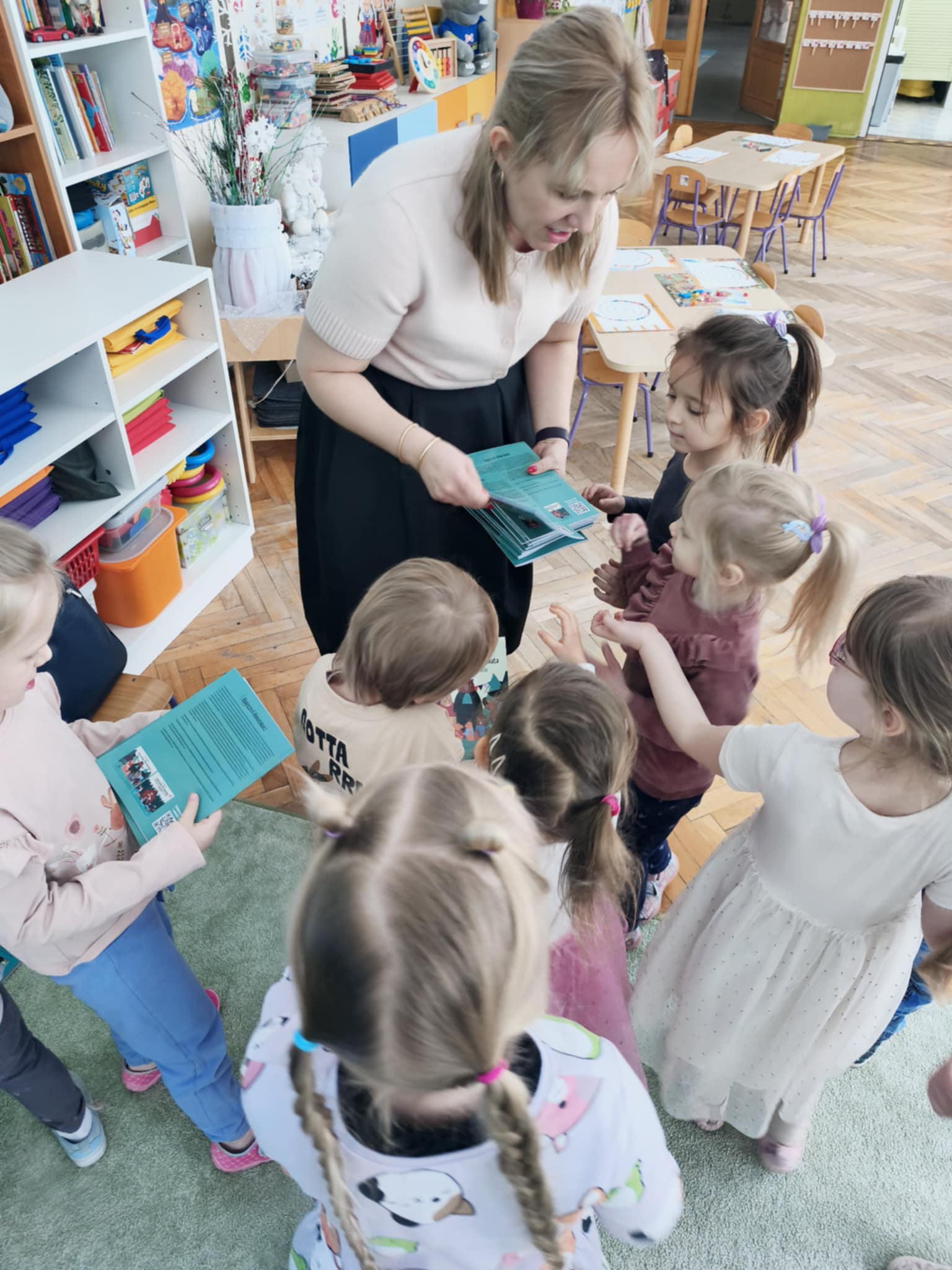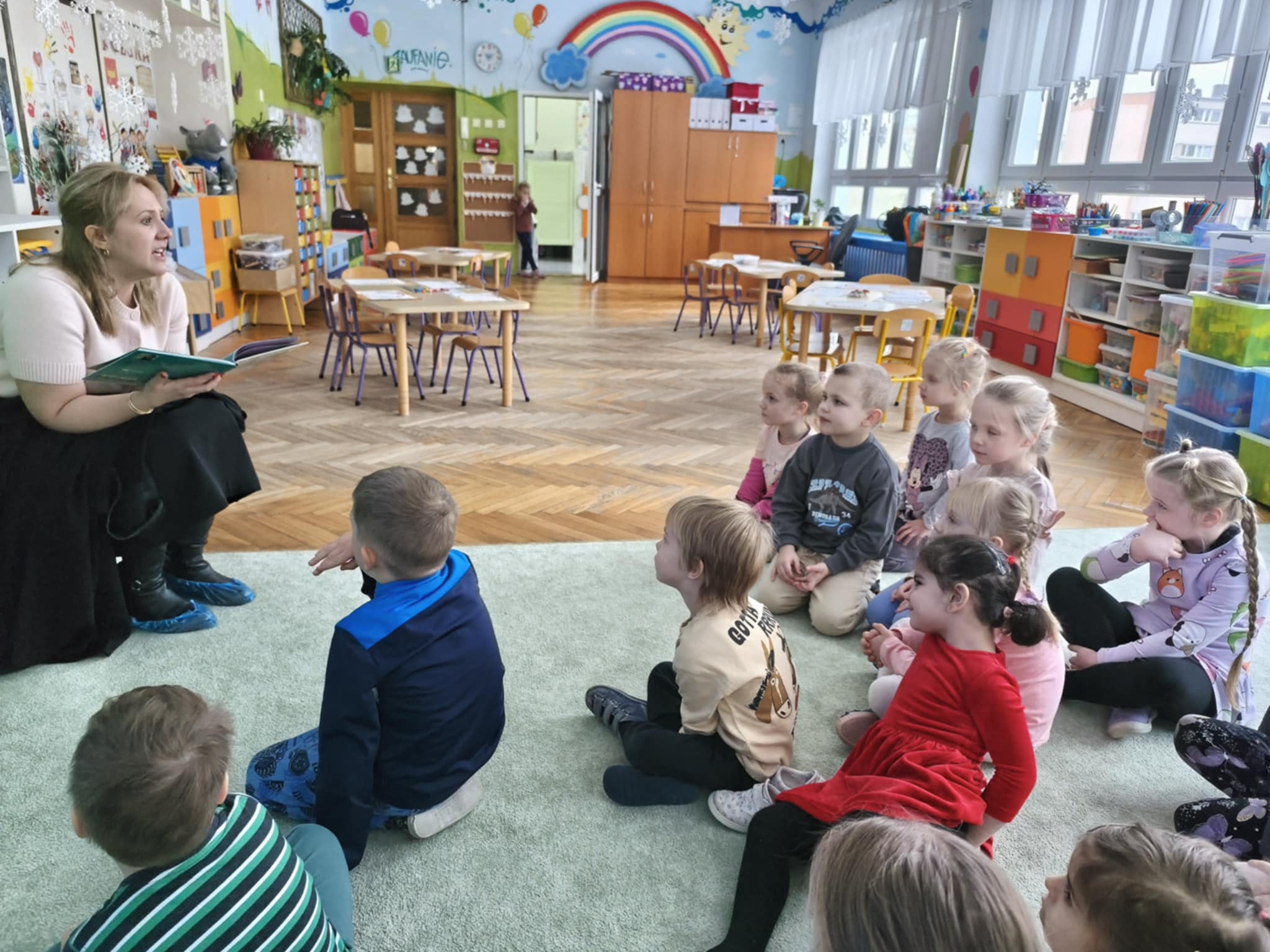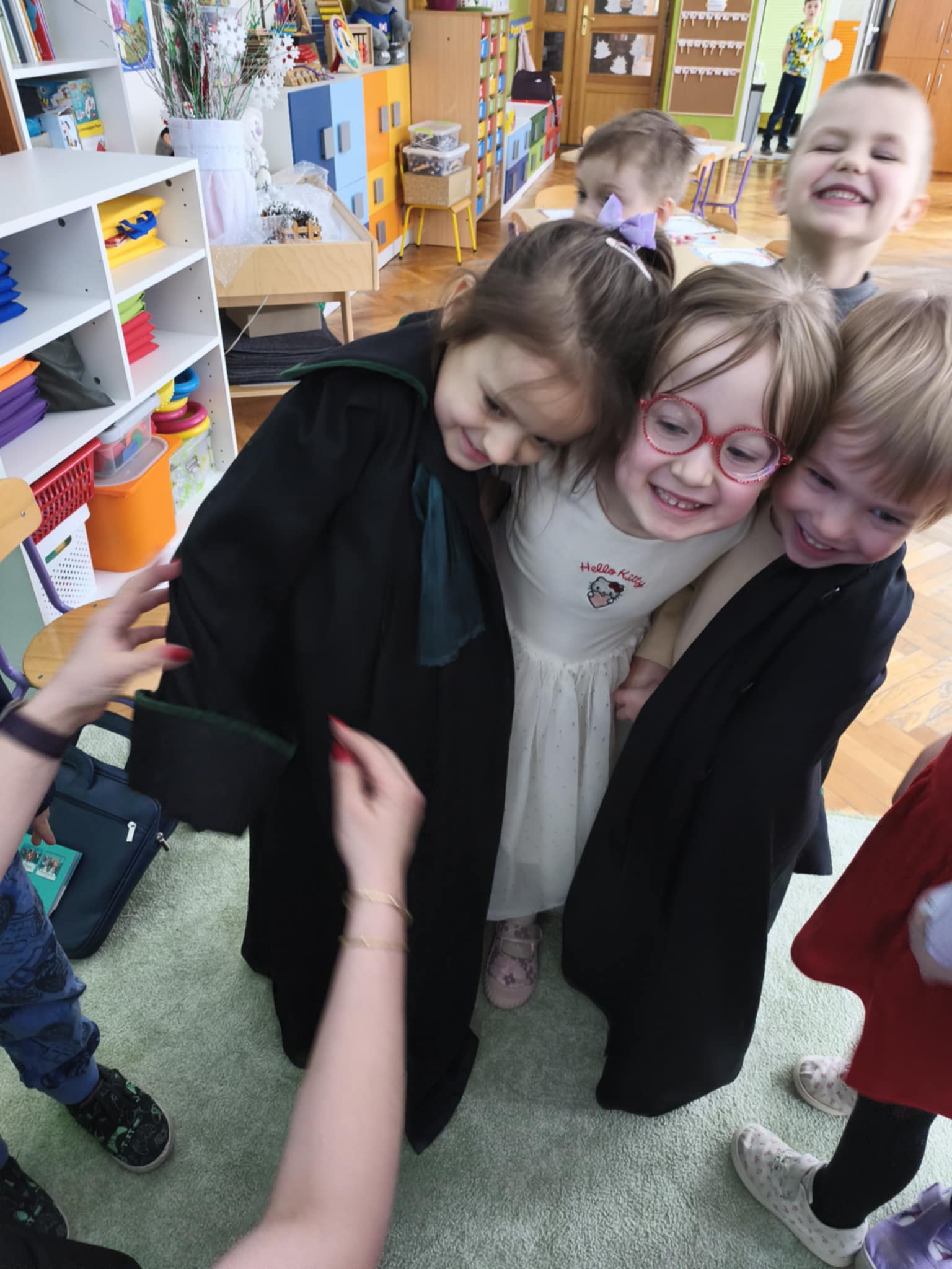 Dzisiaj znalazła dla nas czas Mama Julii. W ramach akcji "Cała Polska Czyta Dzieciom", Pani Agnieszka przeczytała nam książeczkę "Leśne przygody Misia Adwokata". Tym samym Przybliżyła nam swój zawód. Mama Julii jest adwokatem. Mieliśmy możliwość zobaczenia i przymierzenia specjalnego ubioru, który zakłada Pani mecenas na sprawę sądową. Śmiesznie wyglądaliśmy:) Na zakończenie każdy z nas otrzymał kolorowankę dedykowaną przeczytanej książeczce. Bardzo dziękujemy za poświęcony czas.