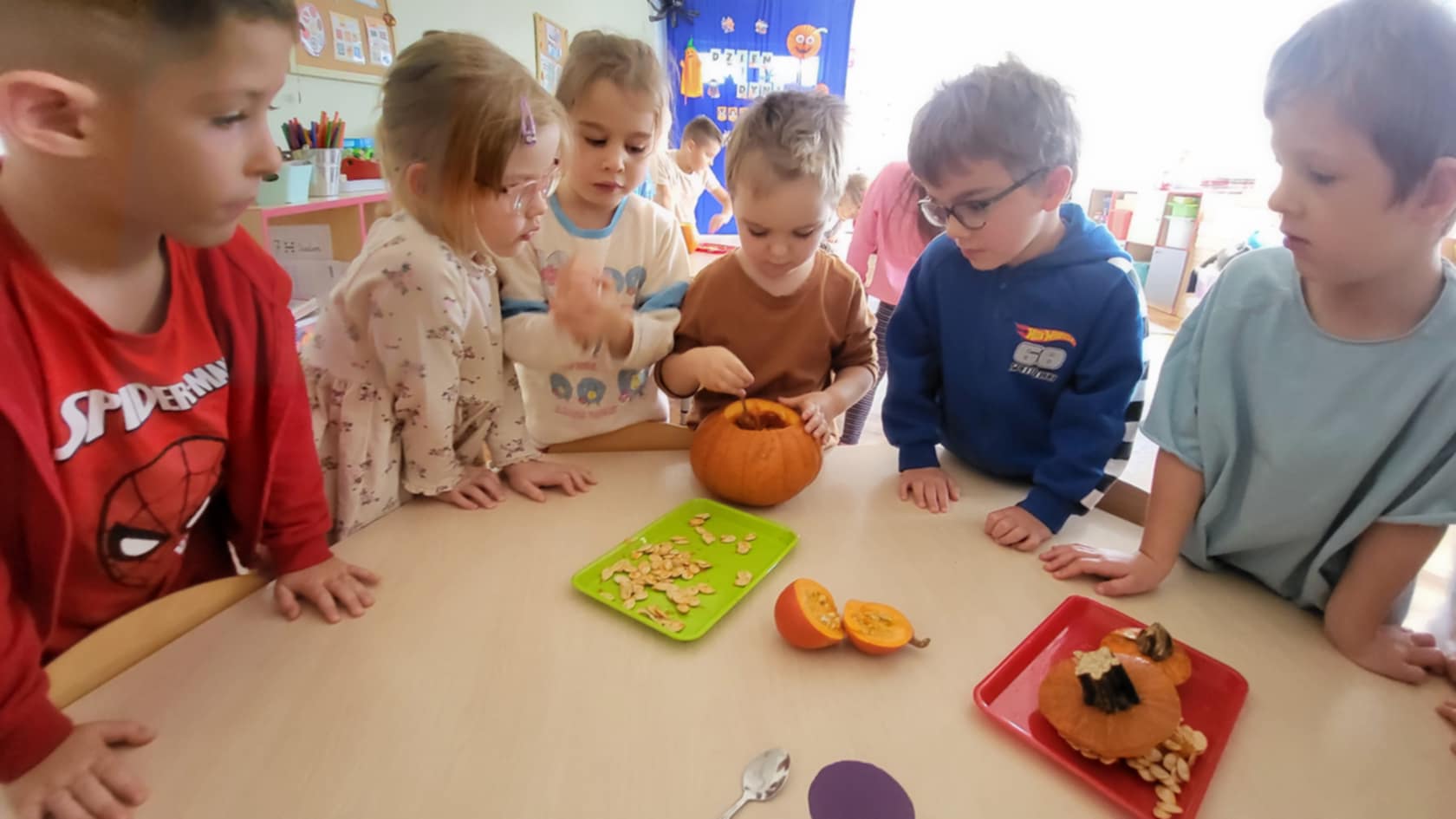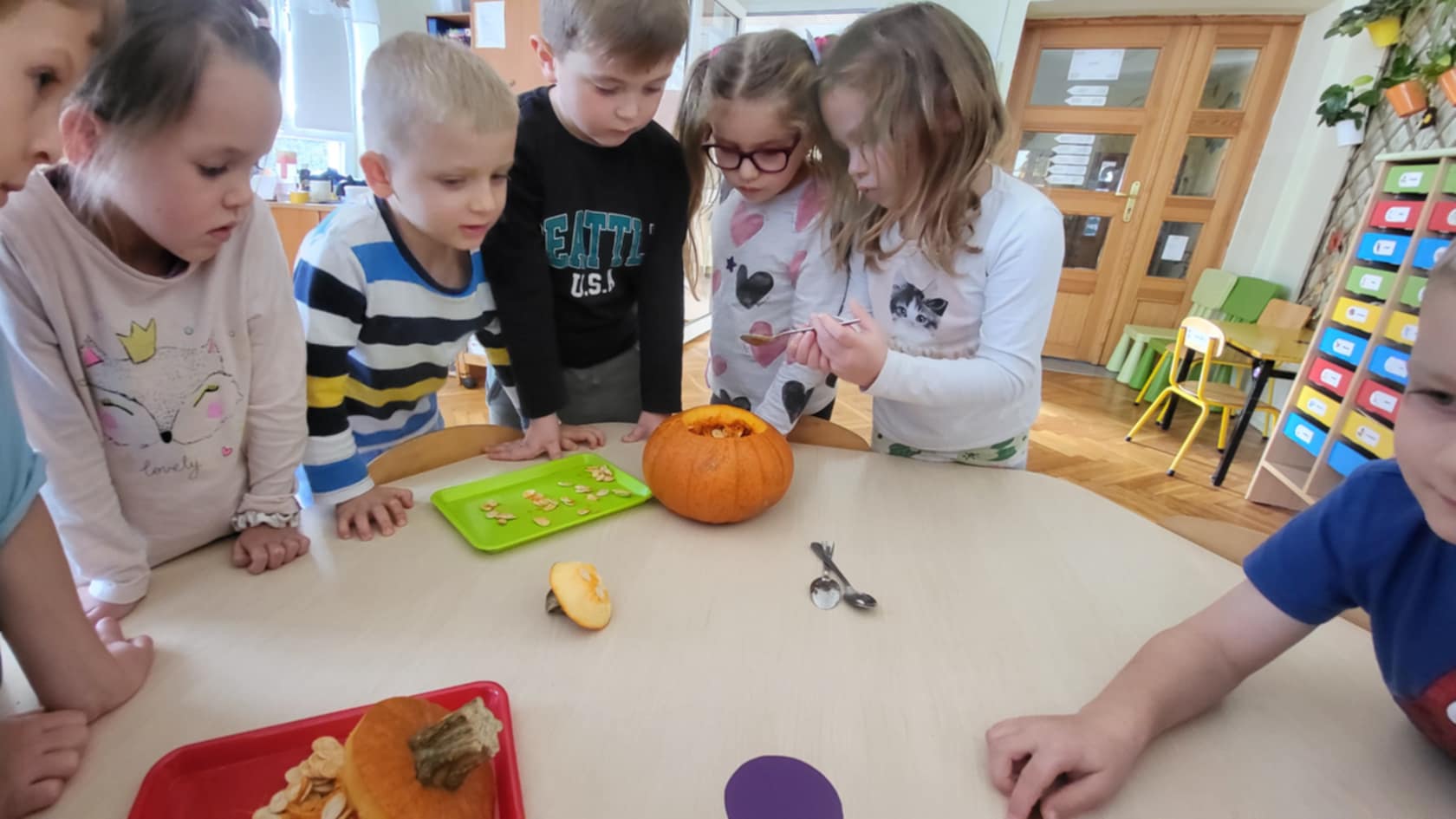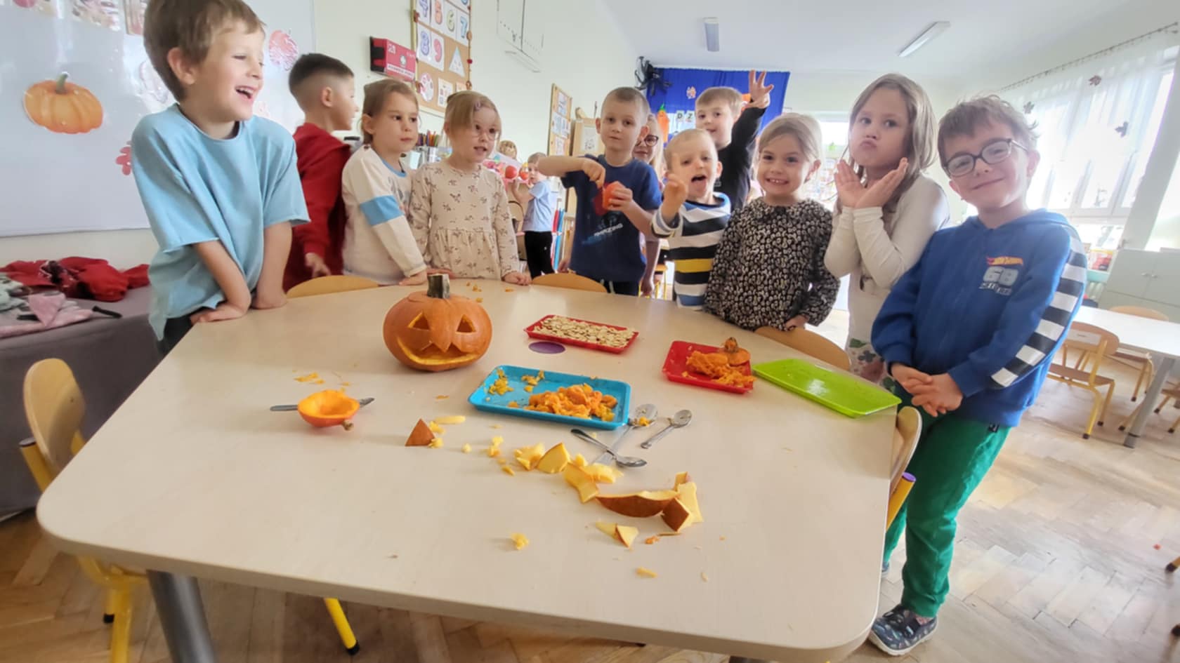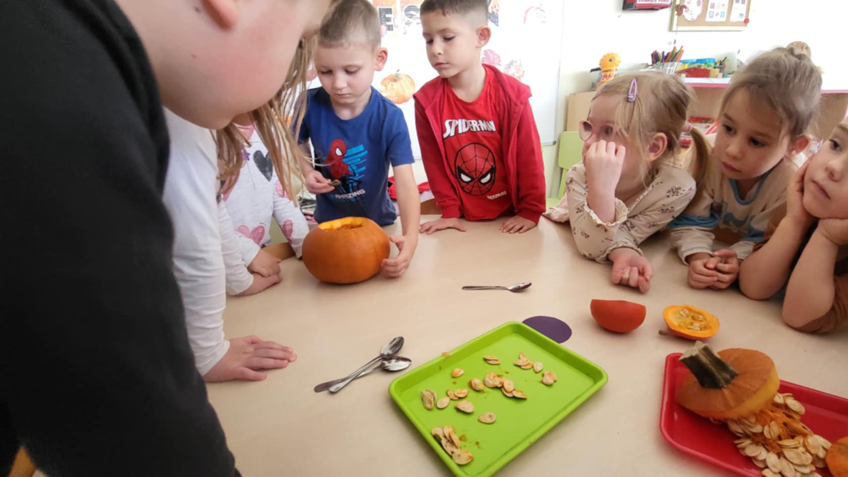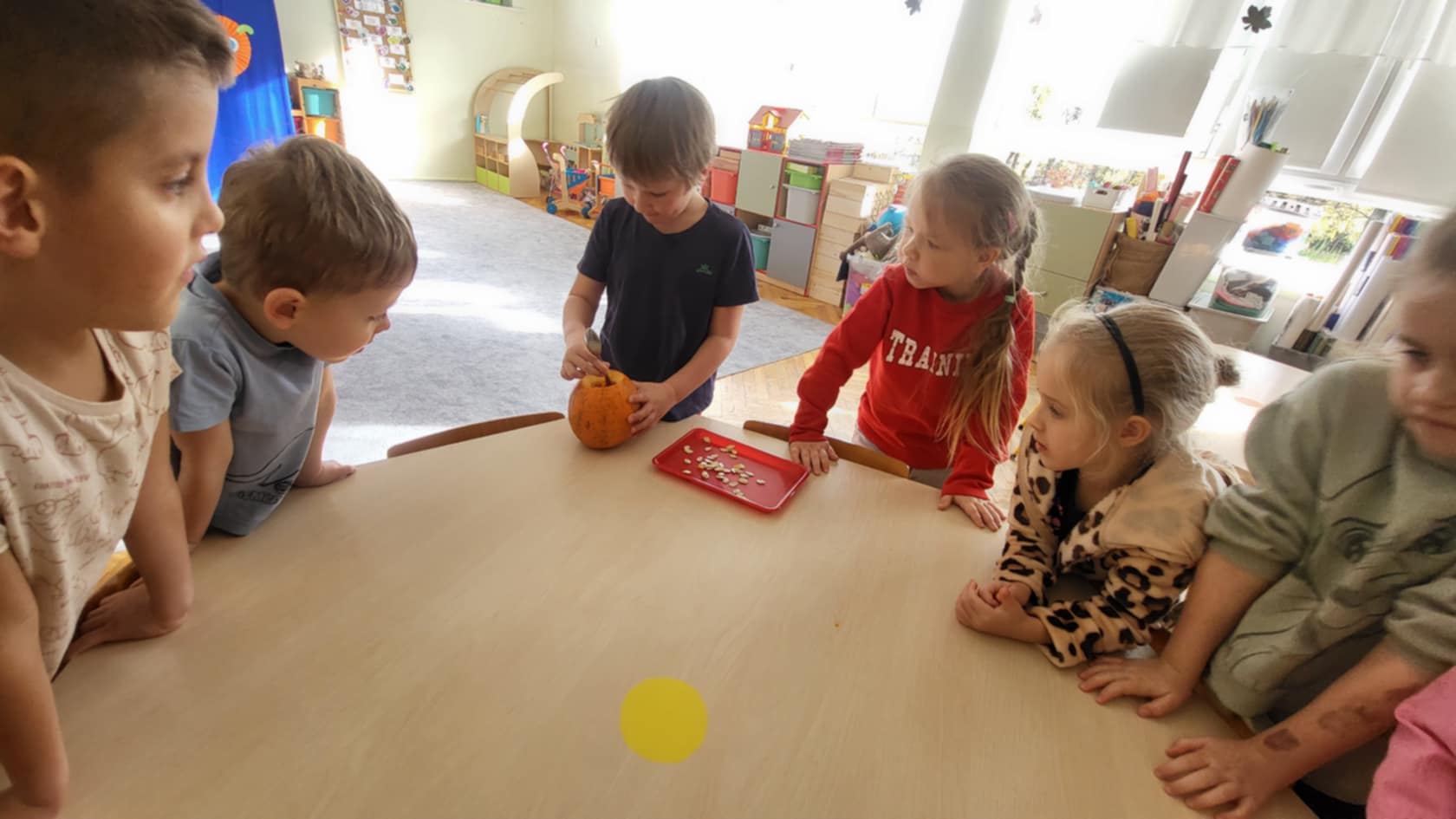 Drążenie dyni w przedszkolu to popularna zabawa, która rozwija zmysły dzieci poprzez dotyk, zapach i smak miąższu oraz pestek. Dzieci mogą samodzielnie wydrążać dynię za pomocą bezpiecznych narzędzi, a następnie wykorzystywać pestki do tworzenia prac plastycznych lub zabawy sensorycznej, która łączy naukę z przyjemnością.