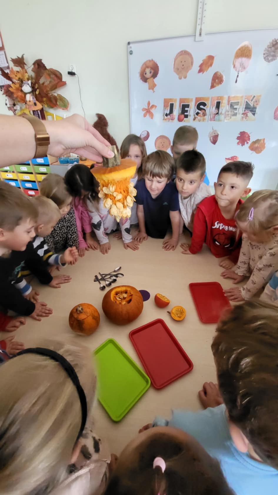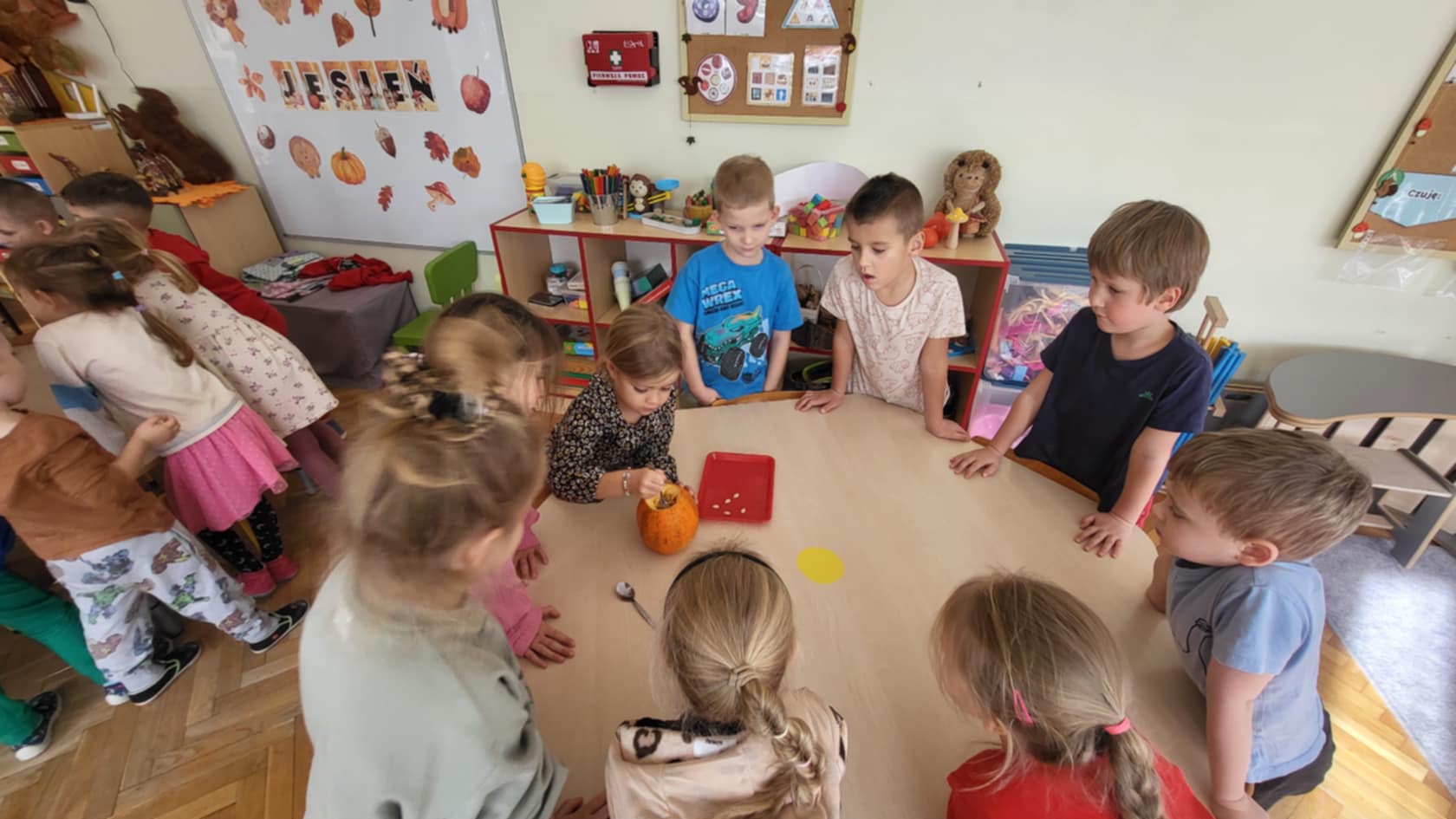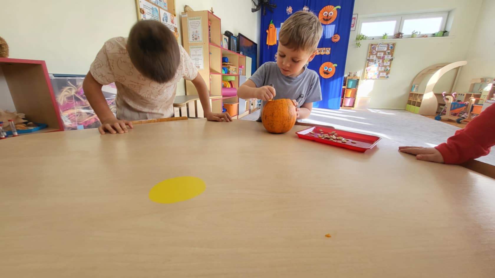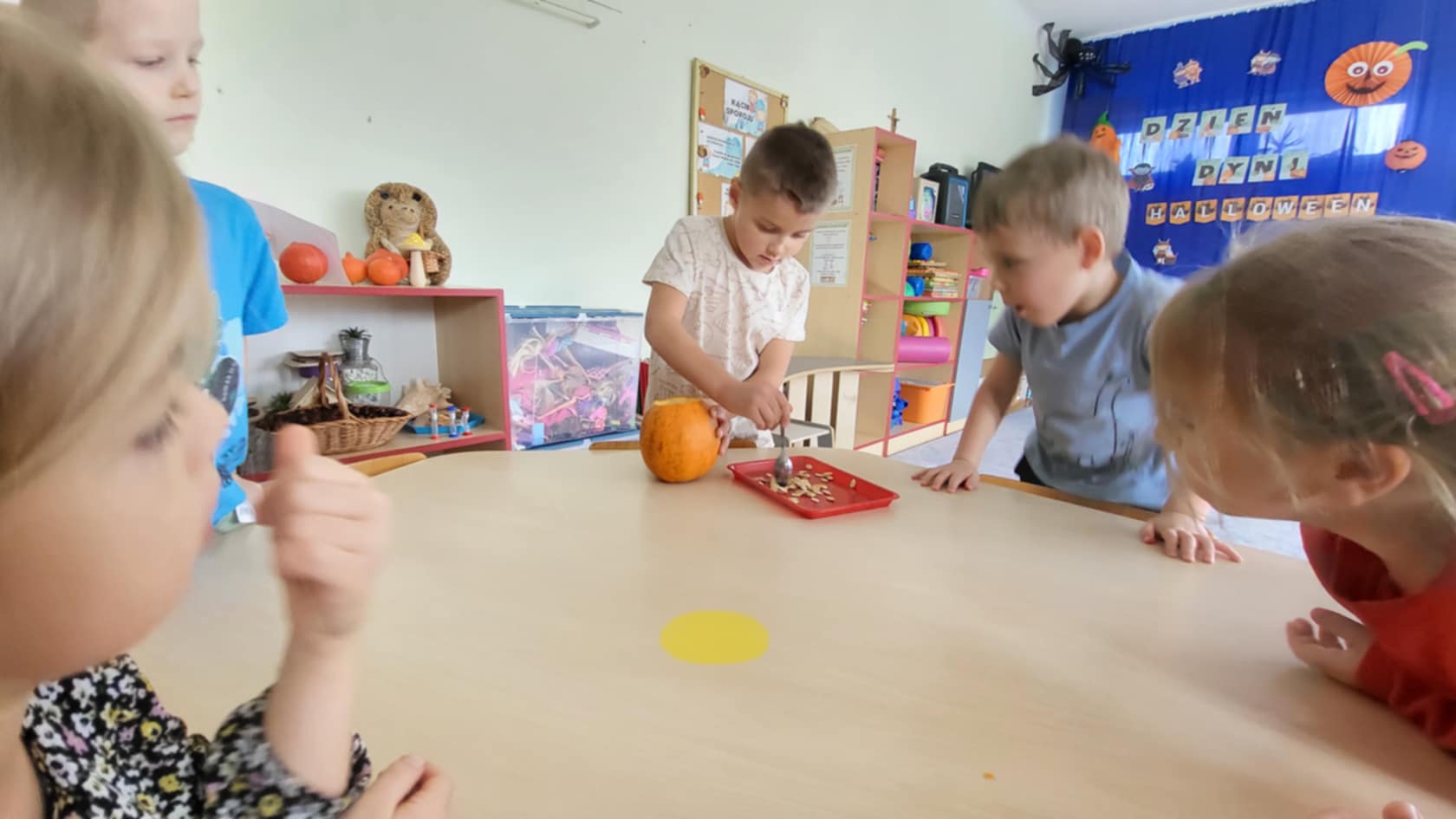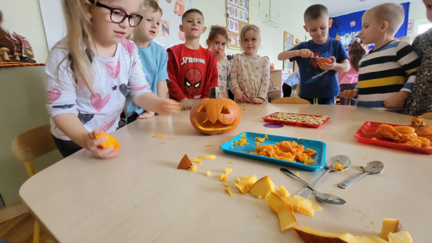 Drążenie dyni w przedszkolu to popularna zabawa, która rozwija zmysły dzieci poprzez dotyk, zapach i smak miąższu oraz pestek. Dzieci mogą samodzielnie wydrążać dynię za pomocą bezpiecznych narzędzi, a następnie wykorzystywać pestki do tworzenia prac plastycznych lub zabawy sensorycznej, która łączy naukę z przyjemnością.