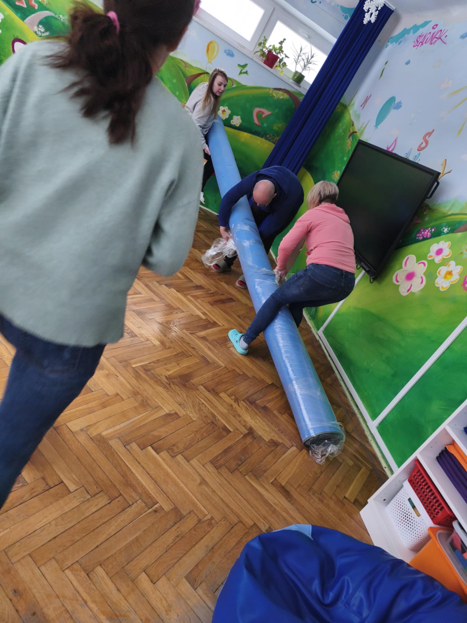 Huuuraaa. Mamy nowiutki, milutki i pachnący dywanik. Teraz zabawy na dywanie będą jeszcze bardziej przyjemne!. Dziękujemy Pani dyrektor za kupno oraz Paniom i Panu za wniesienie i rozłożenie go w naszej grupie.