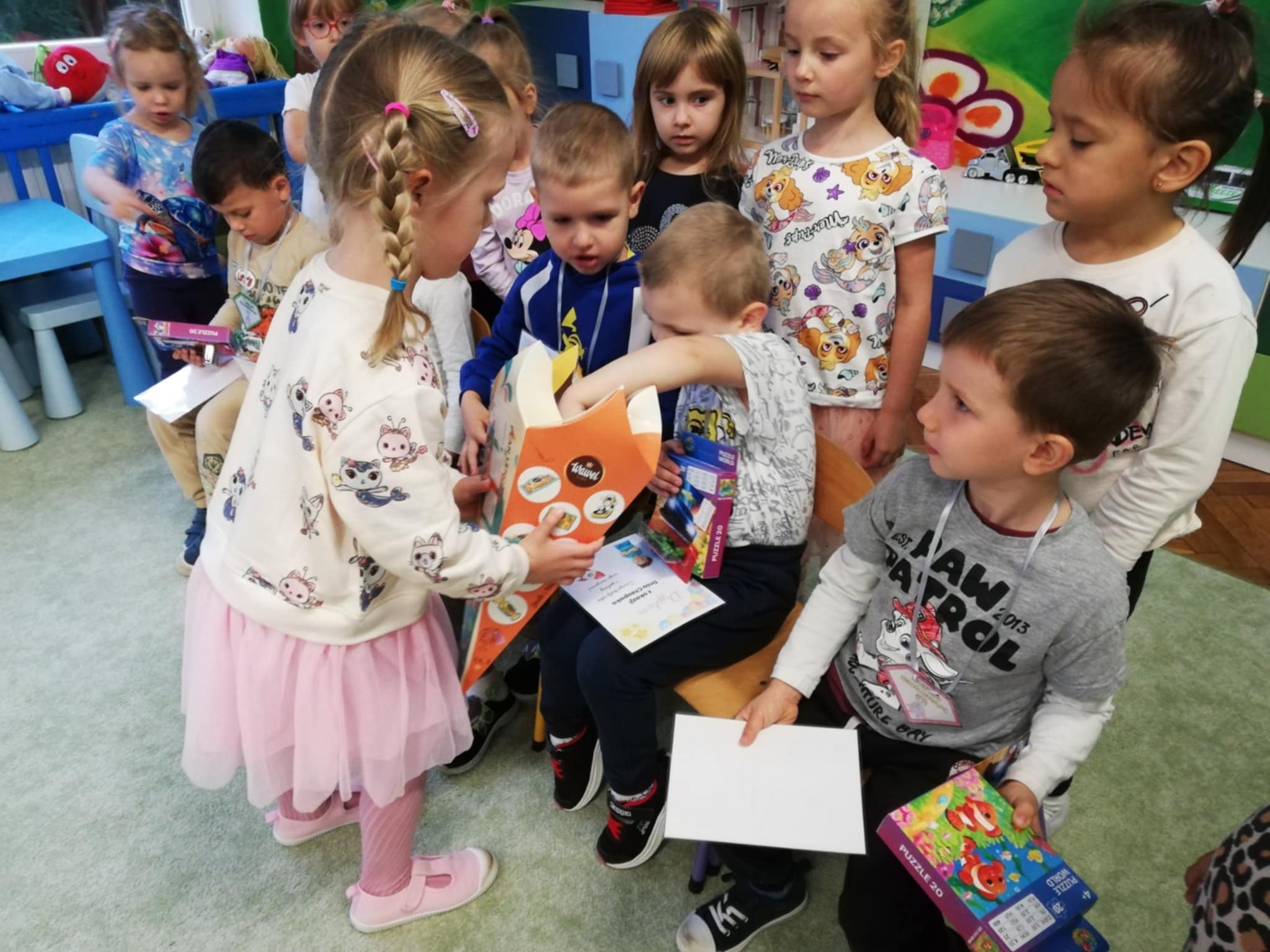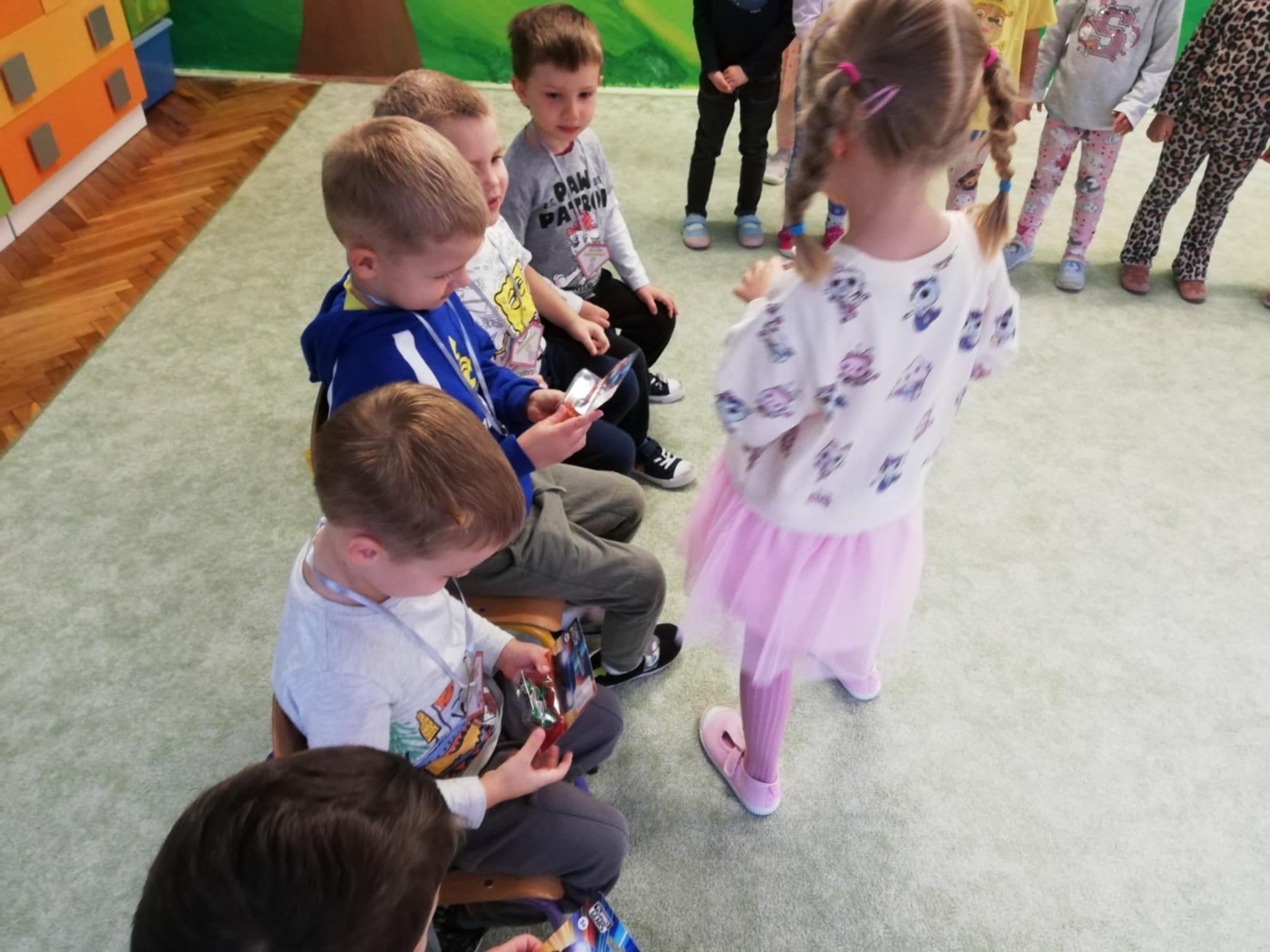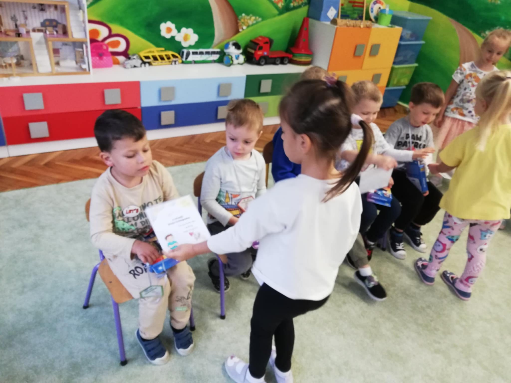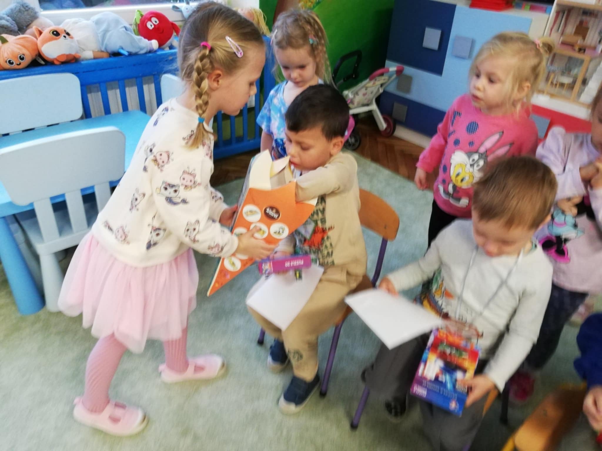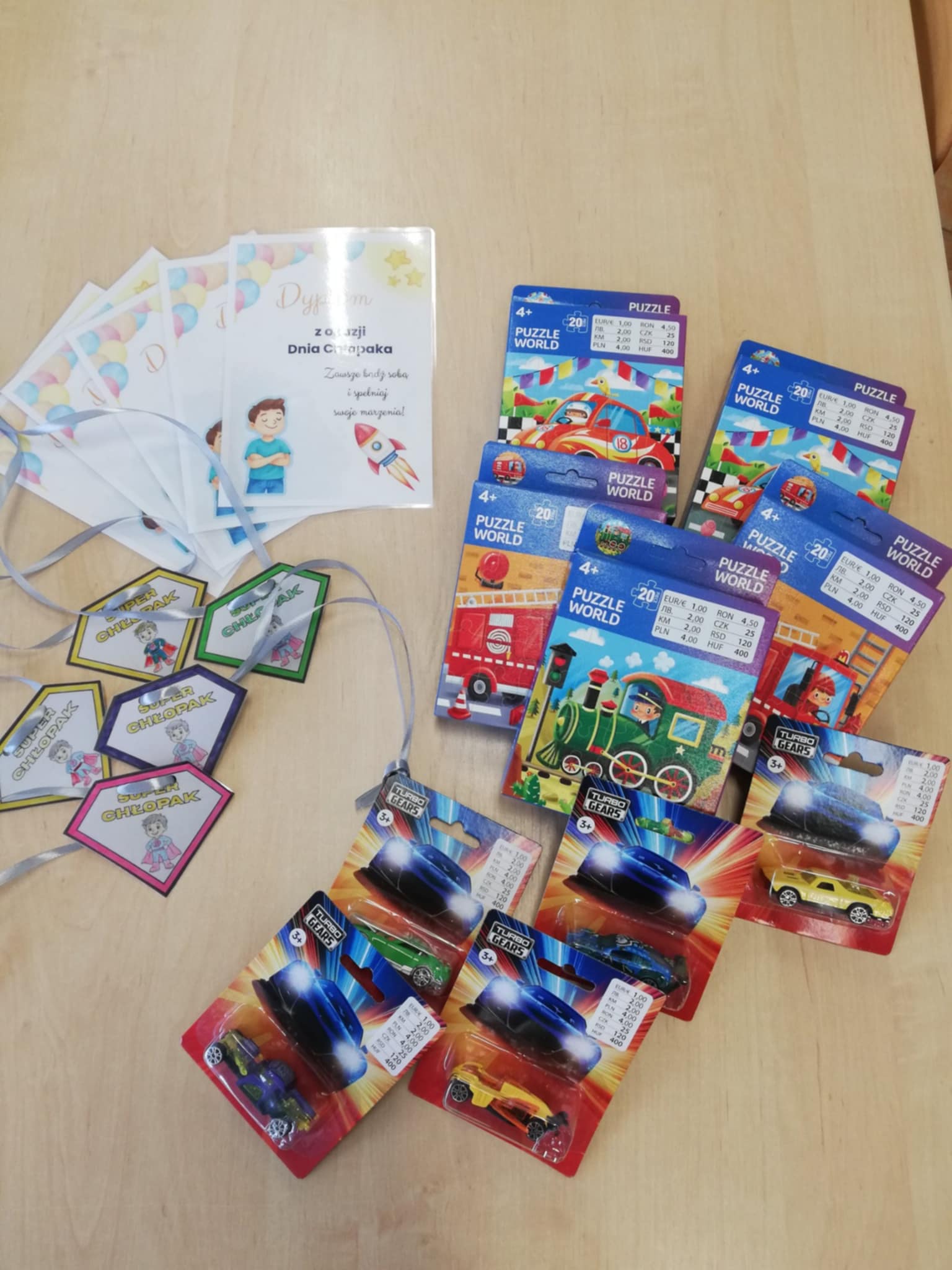 Dzisiaj nasi koledzy mieli swój dzień, bo to święto chłopaka. Dziewczynki złożyły chłopcom najserdeczniejsze życzenia oraz wręczyły medale, dyplomy Super Chłopaka i prezent w postaci puzzli. Chłopcy otrzymali również samochodzik i słodki poczęstunek od Julii. Bardzo dziękujemy:) To był super zaczęty dzień.
