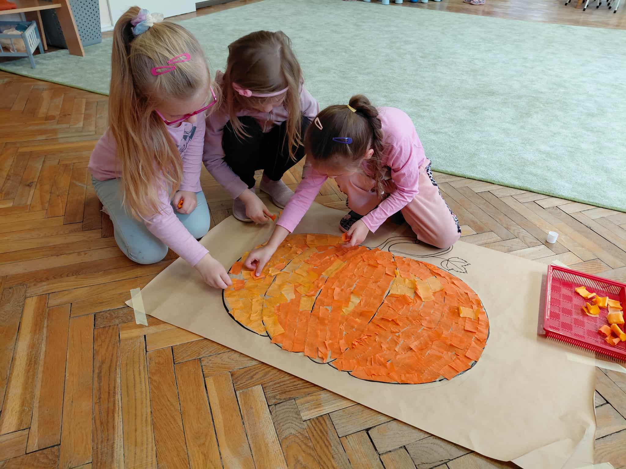 Pod koniec października świętowaliśmy w naszej grupie Dzień DYNI a praktycznie to świętowaliśmy ten dzień prawie przez cały tydzień. Rozmawialiśmy o potrawach jakie można przygotować z dyni i o tym co jeszcze można z niej zrobić (na przykład lampion). Było dużo zabawy, śmiechu, tańców, zabaw w kole, działań plastycznych. Wszyscy bardzo dobrze się bawiliśmy.