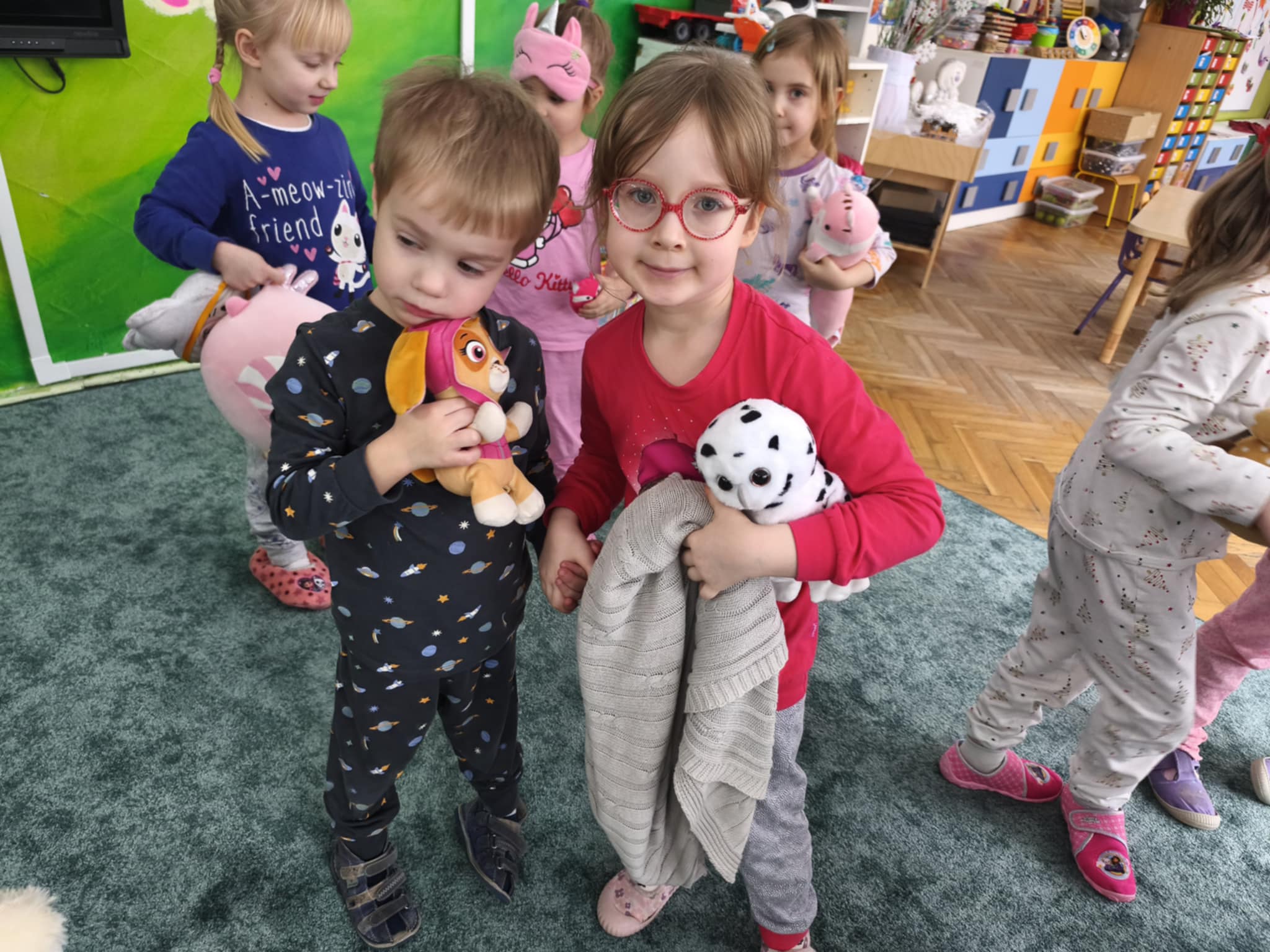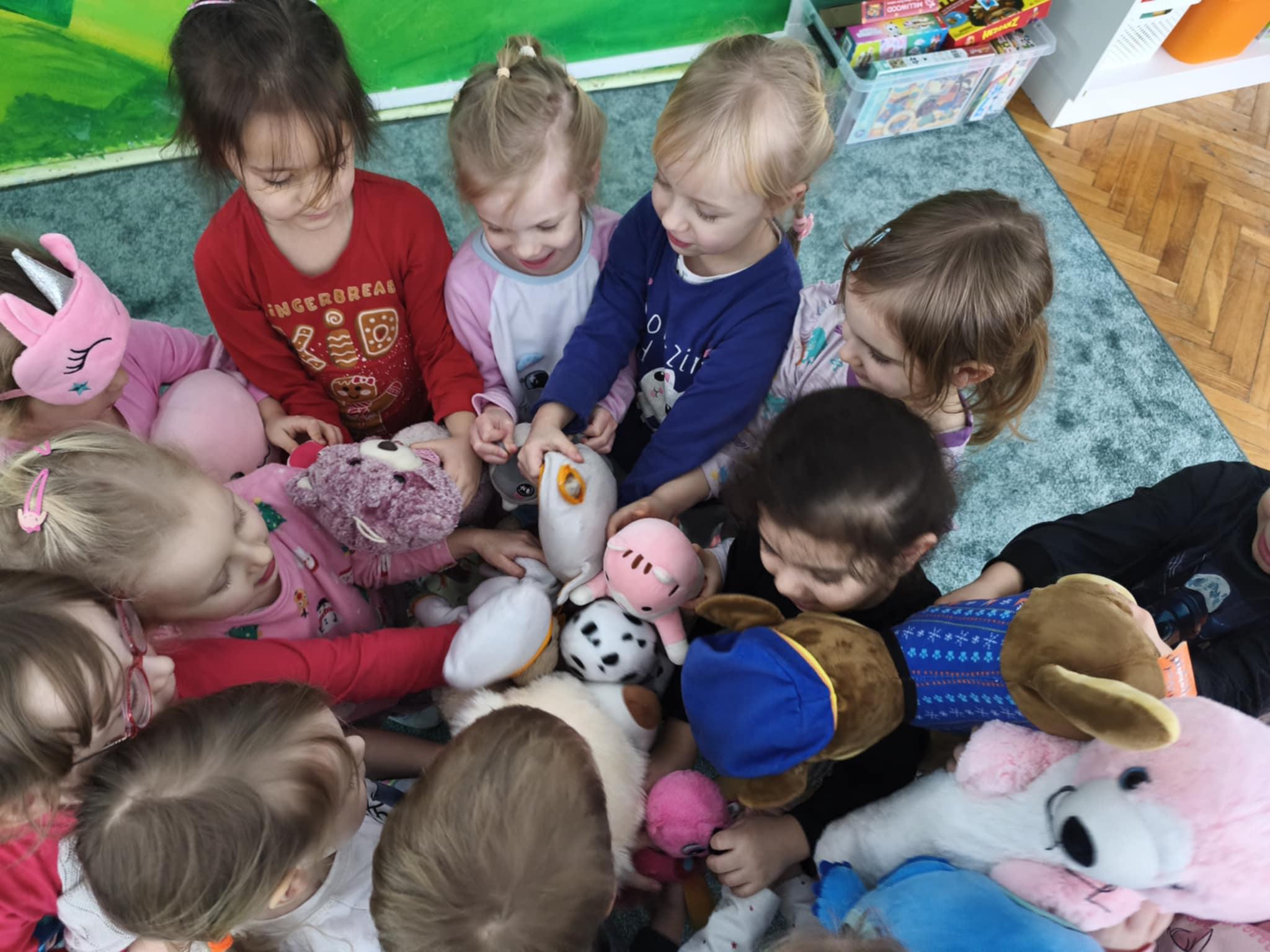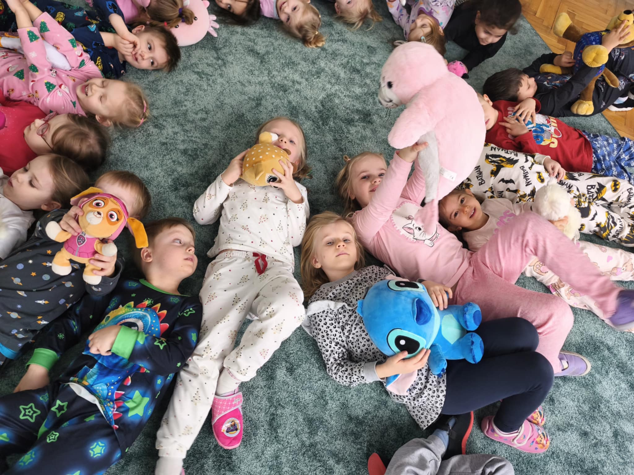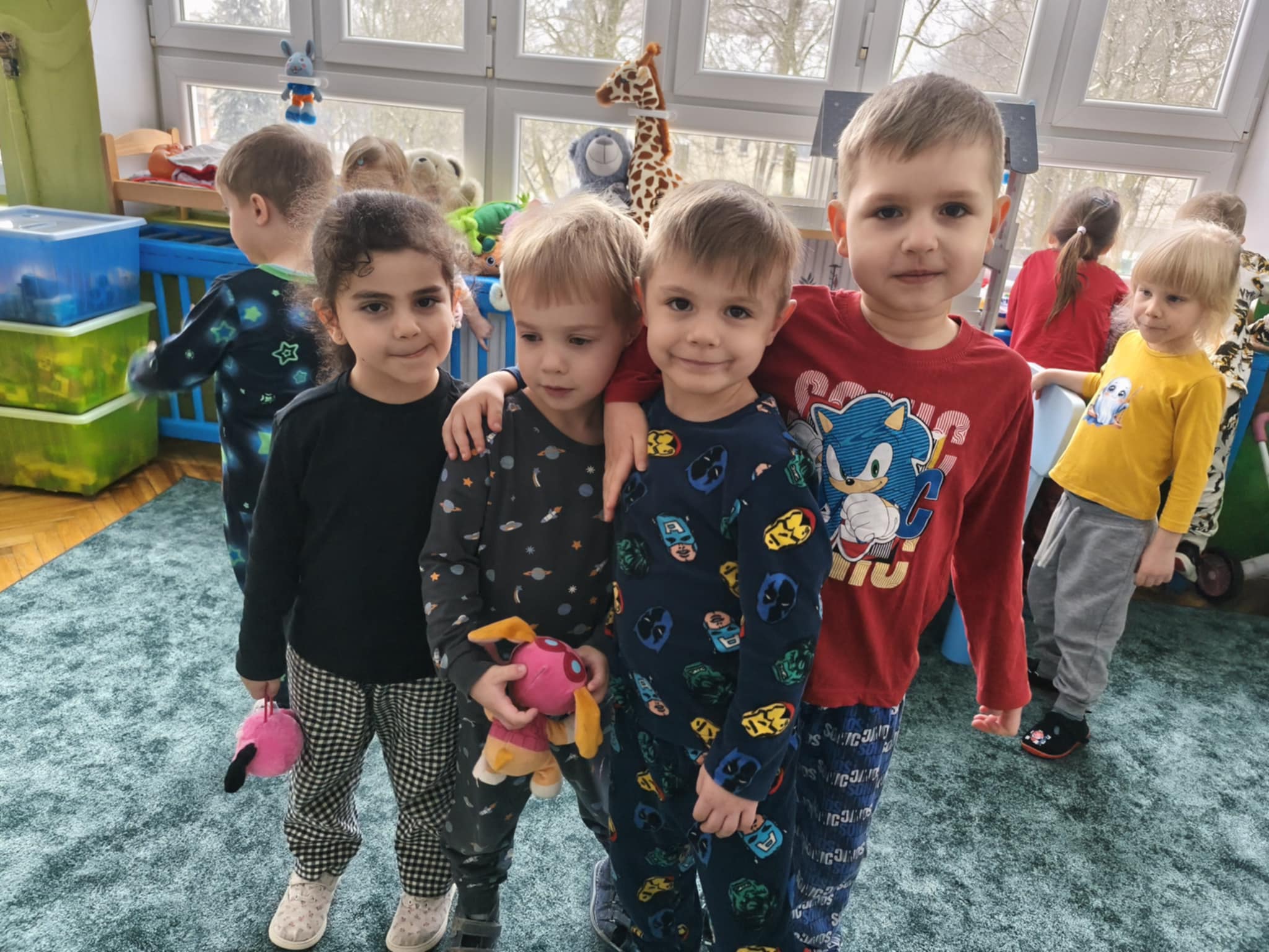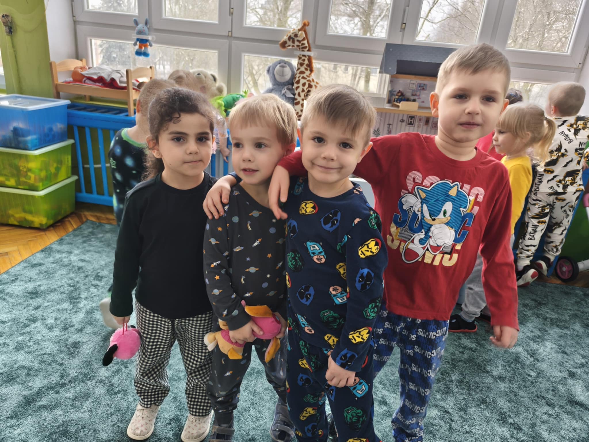 Dzisiejszy dzień był inny niż wszystkie. Był piżamowy. W geście solidarności z dziećmi chorującymi na nowotwory, przyszliśmy do przedszkola w piżamach, kapciach, z ulubionym kocykiem czy pluszakiem. Jakież było zdziwienie innych:) Prze dwa tygodnie zbieraliśmy w naszej grupie zabawki, gry, puzzle, które trafiły do dzieciaczków. Ten dzień był bardzo radosny i nauczył nas, jak małym gestem można wywołać uśmiech na buzi innego człowieka. Poznaliśmy nowe słowo-empatia.
