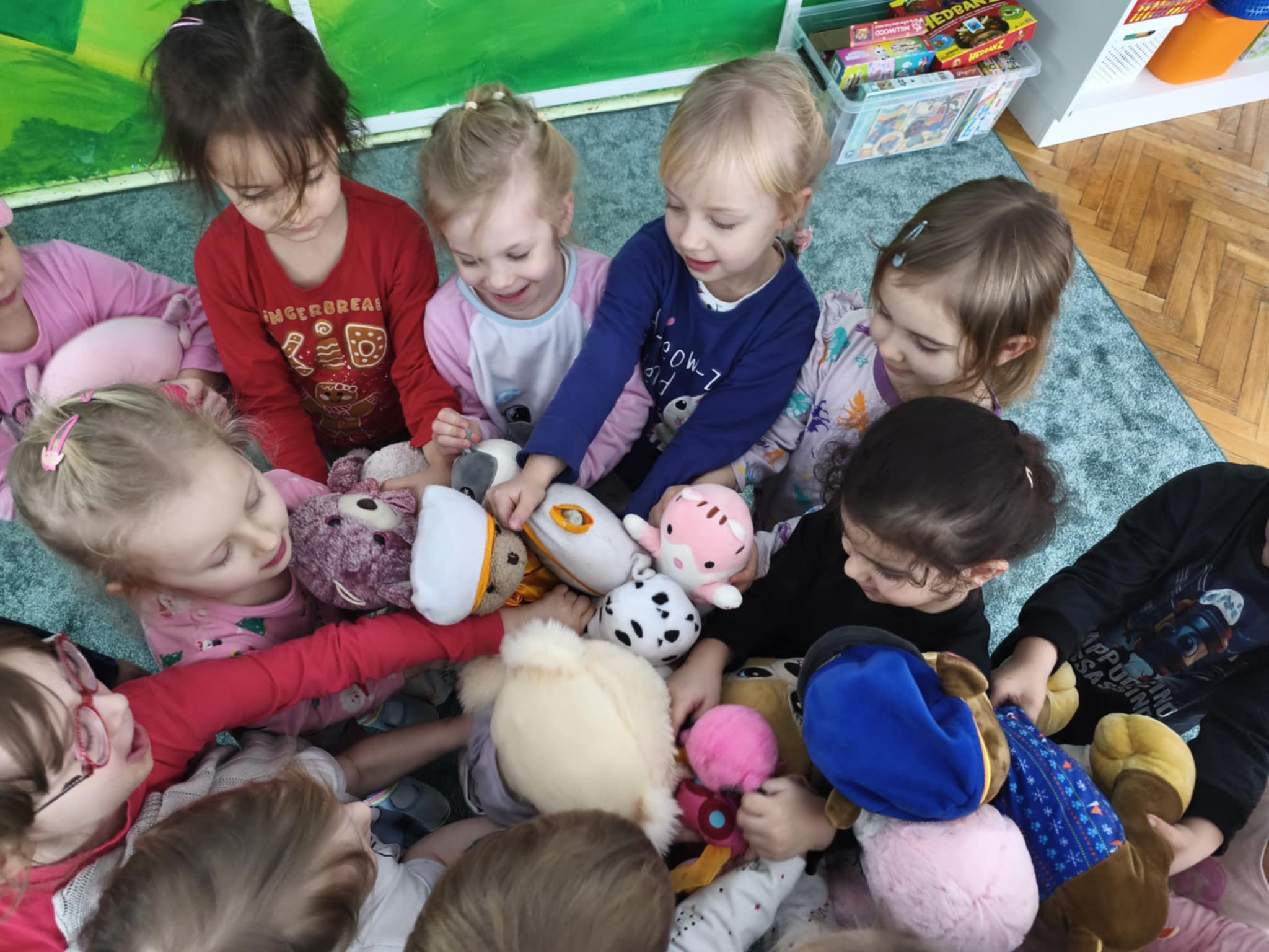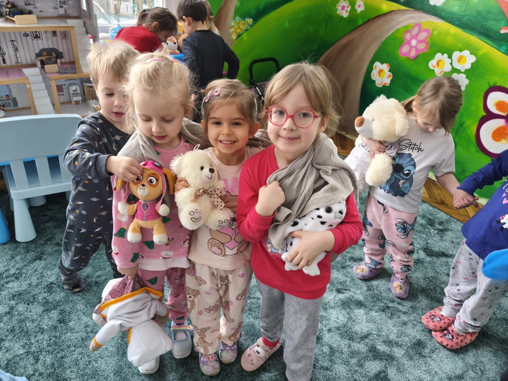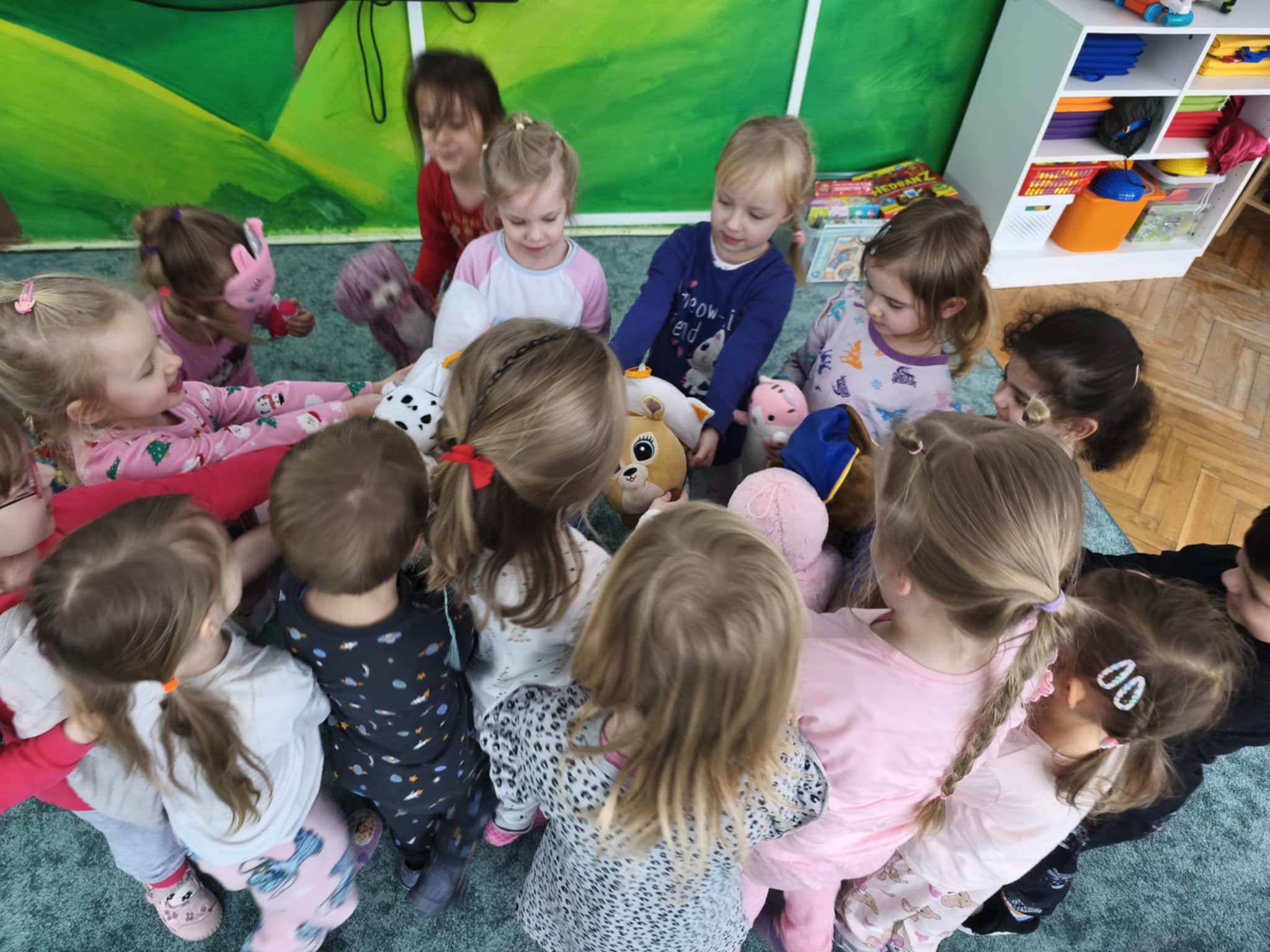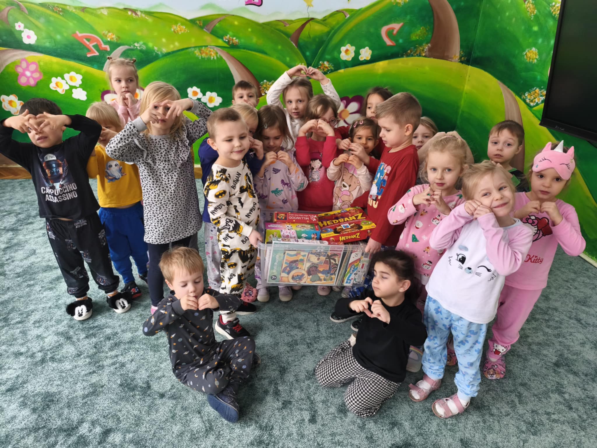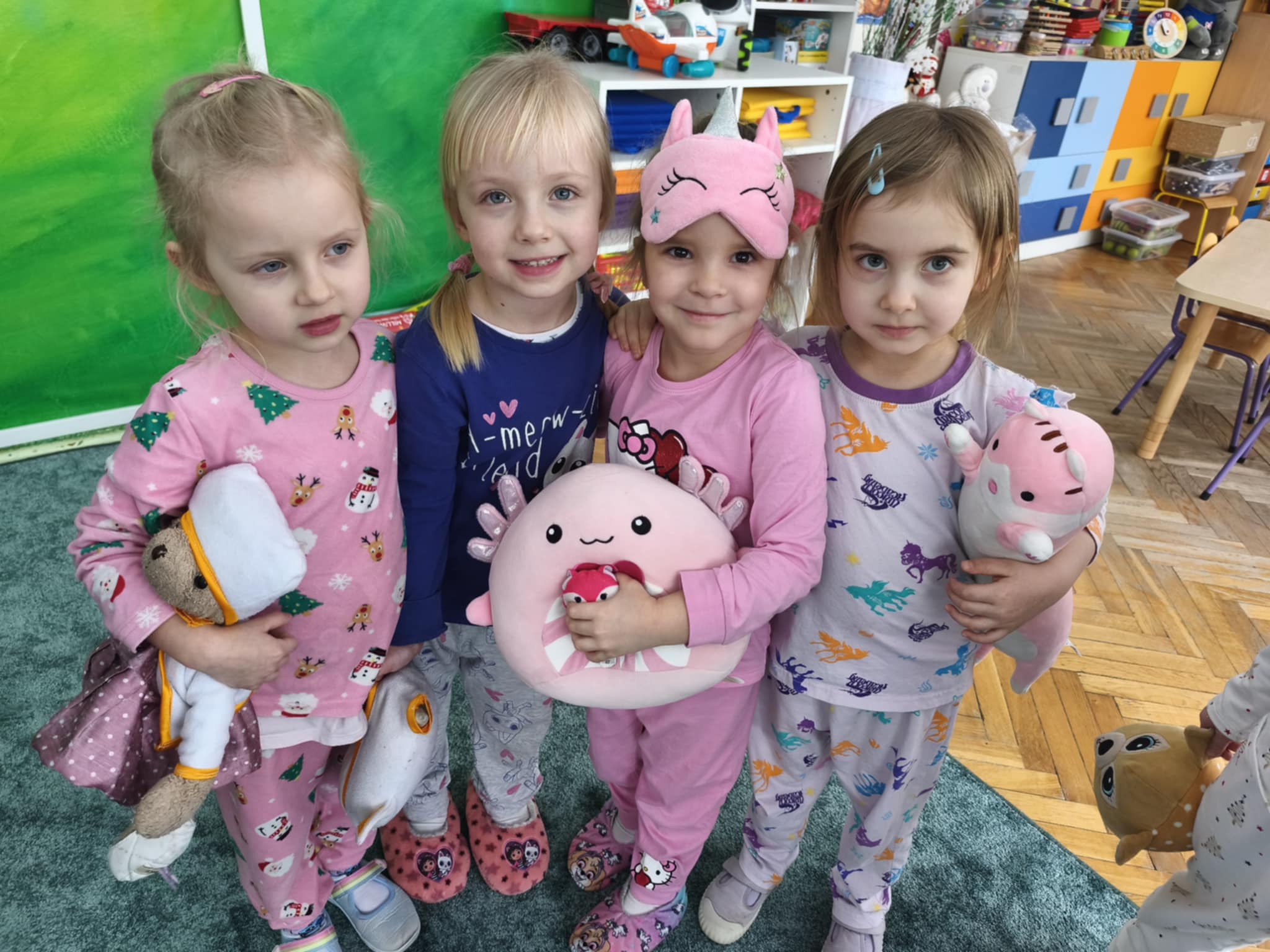 Dzisiejszy dzień był inny niż wszystkie. Był piżamowy. W geście solidarności z dziećmi chorującymi na nowotwory, przyszliśmy do przedszkola w piżamach, kapciach, z ulubionym kocykiem czy pluszakiem. Jakież było zdziwienie innych:) Prze dwa tygodnie zbieraliśmy w naszej grupie zabawki, gry, puzzle, które trafiły do dzieciaczków. Ten dzień był bardzo radosny i nauczył nas, jak małym gestem można wywołać uśmiech na buzi innego człowieka. Poznaliśmy nowe słowo-empatia.