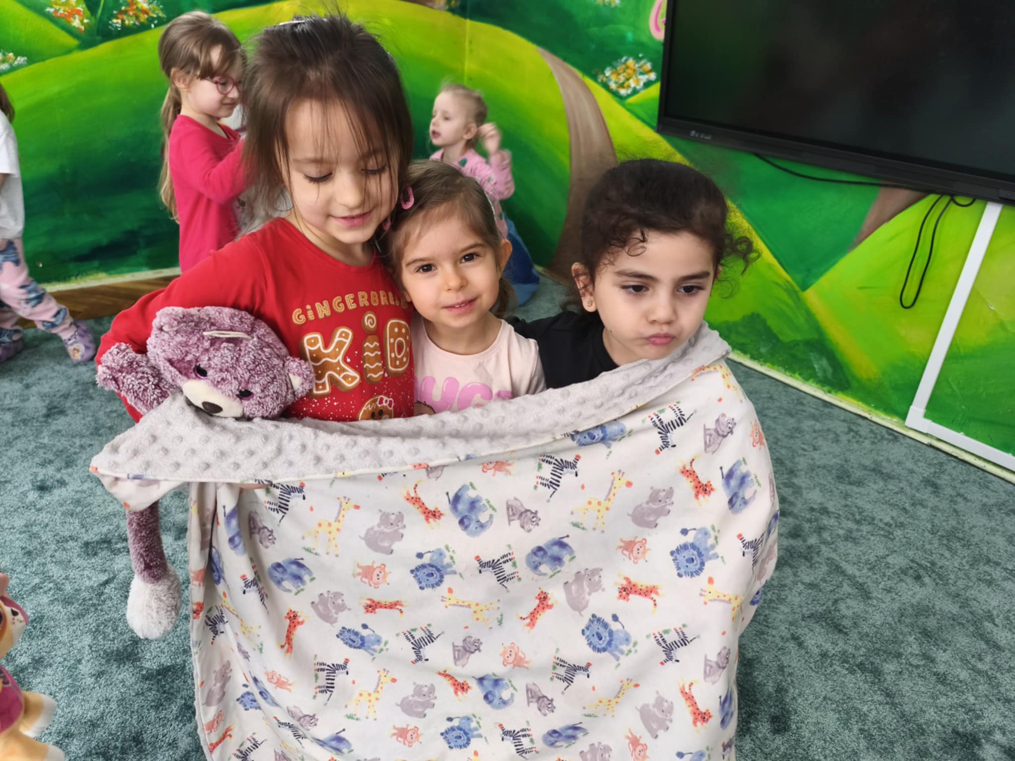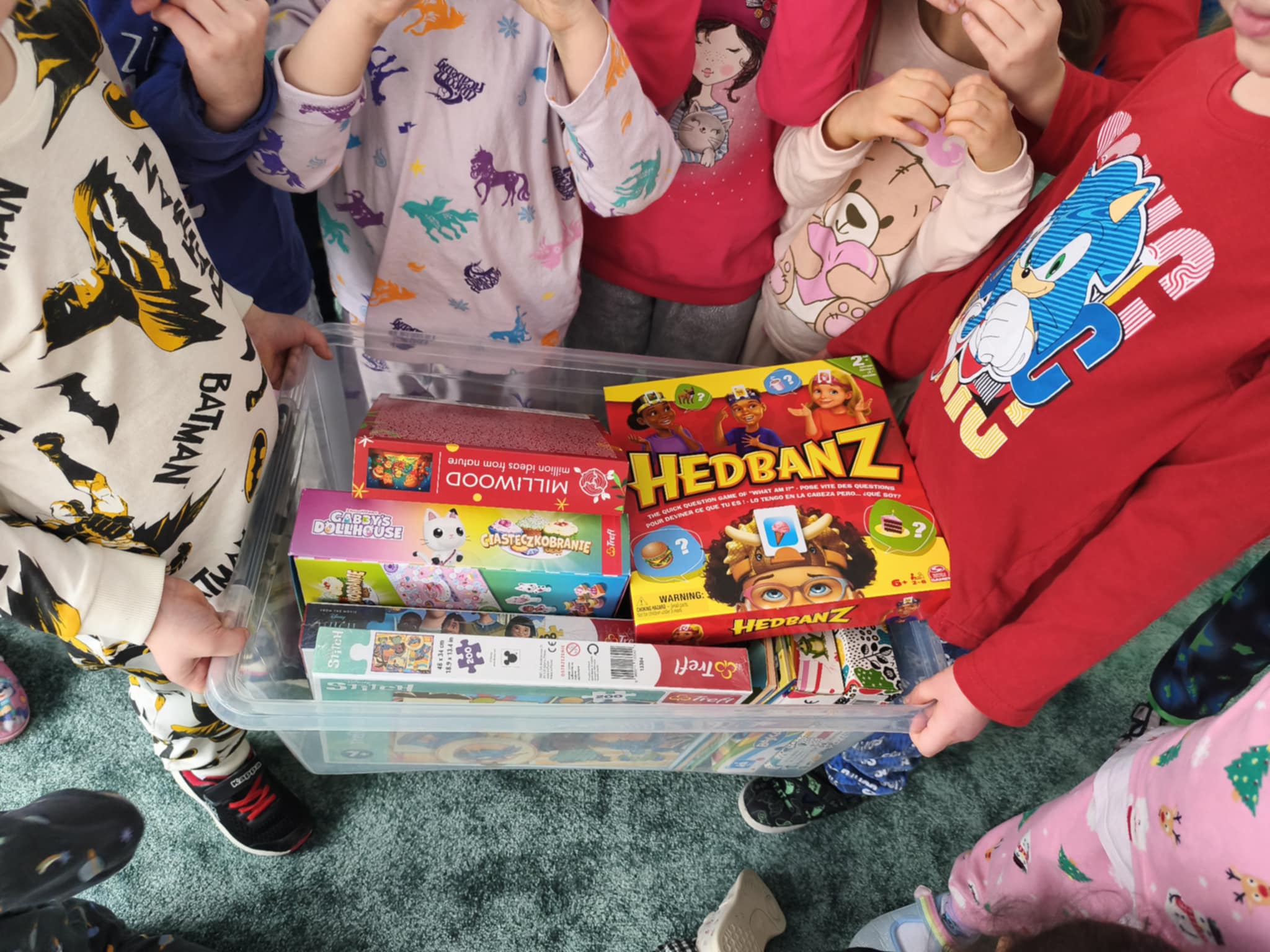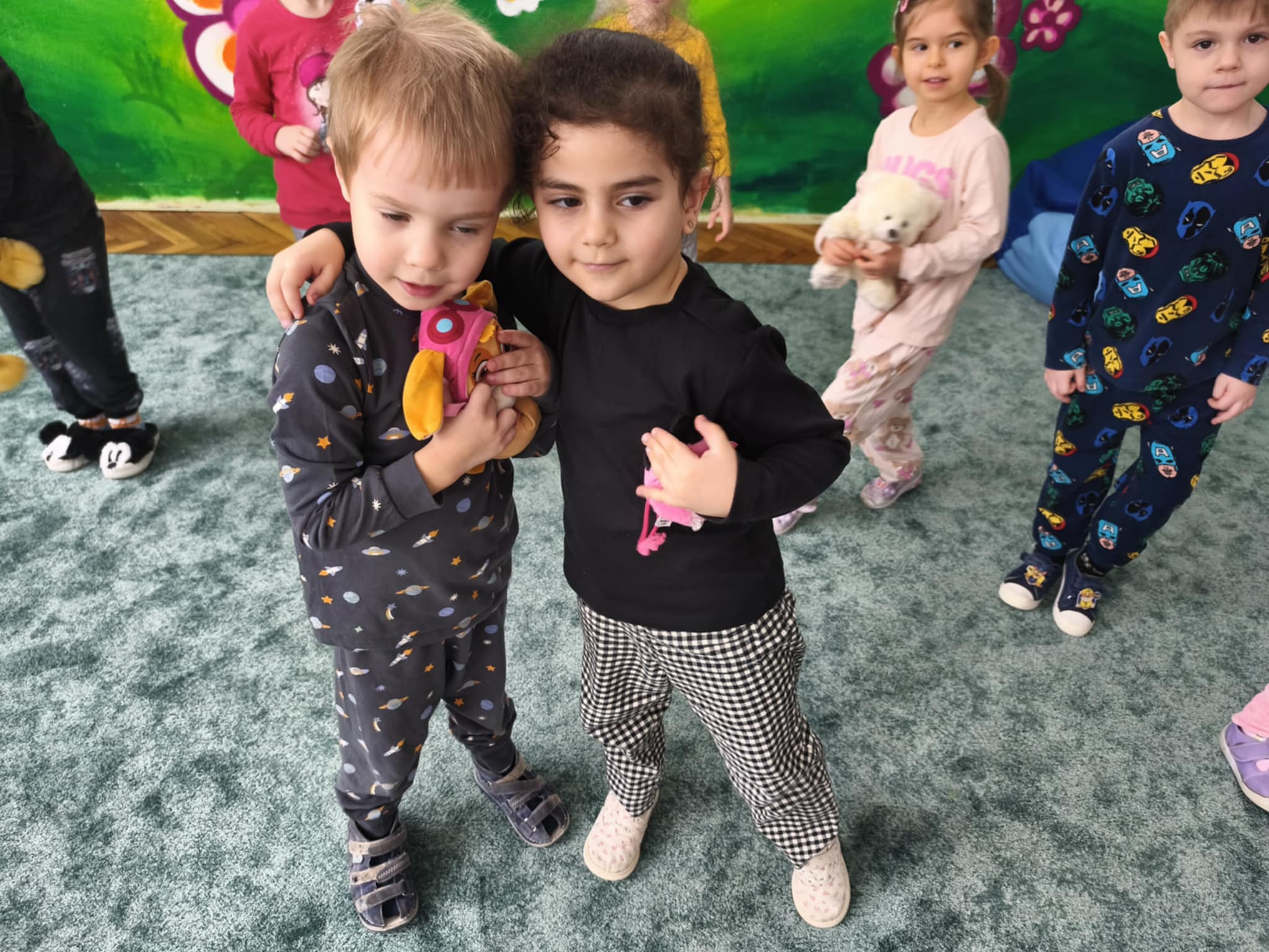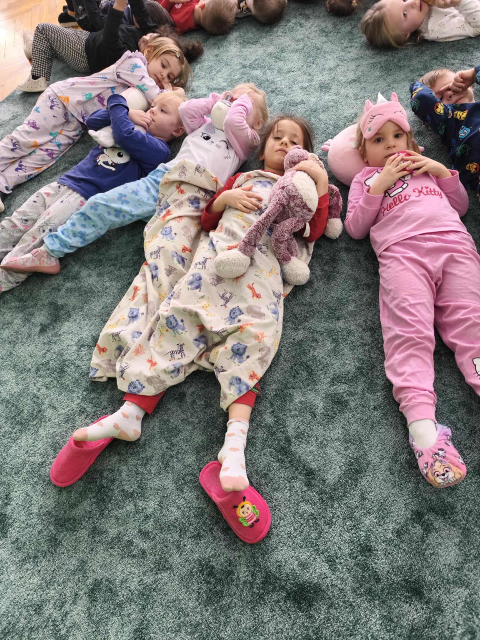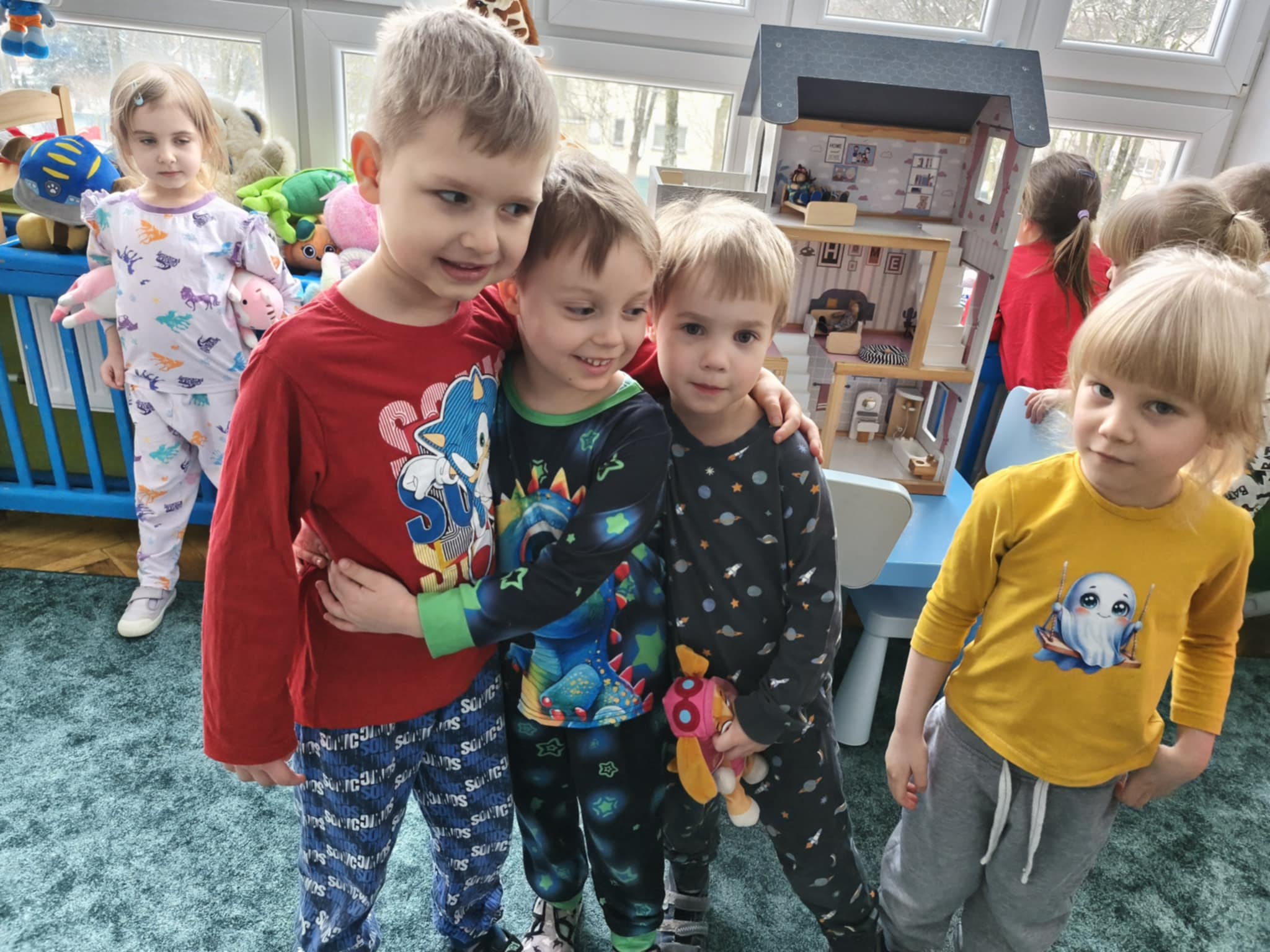 Dzisiejszy dzień był inny niż wszystkie. Był piżamowy. W geście solidarności z dziećmi chorującymi na nowotwory, przyszliśmy do przedszkola w piżamach, kapciach, z ulubionym kocykiem czy pluszakiem. Jakież było zdziwienie innych:) Prze dwa tygodnie zbieraliśmy w naszej grupie zabawki, gry, puzzle, które trafiły do dzieciaczków. Ten dzień był bardzo radosny i nauczył nas, jak małym gestem można wywołać uśmiech na buzi innego człowieka. Poznaliśmy nowe słowo-empatia.