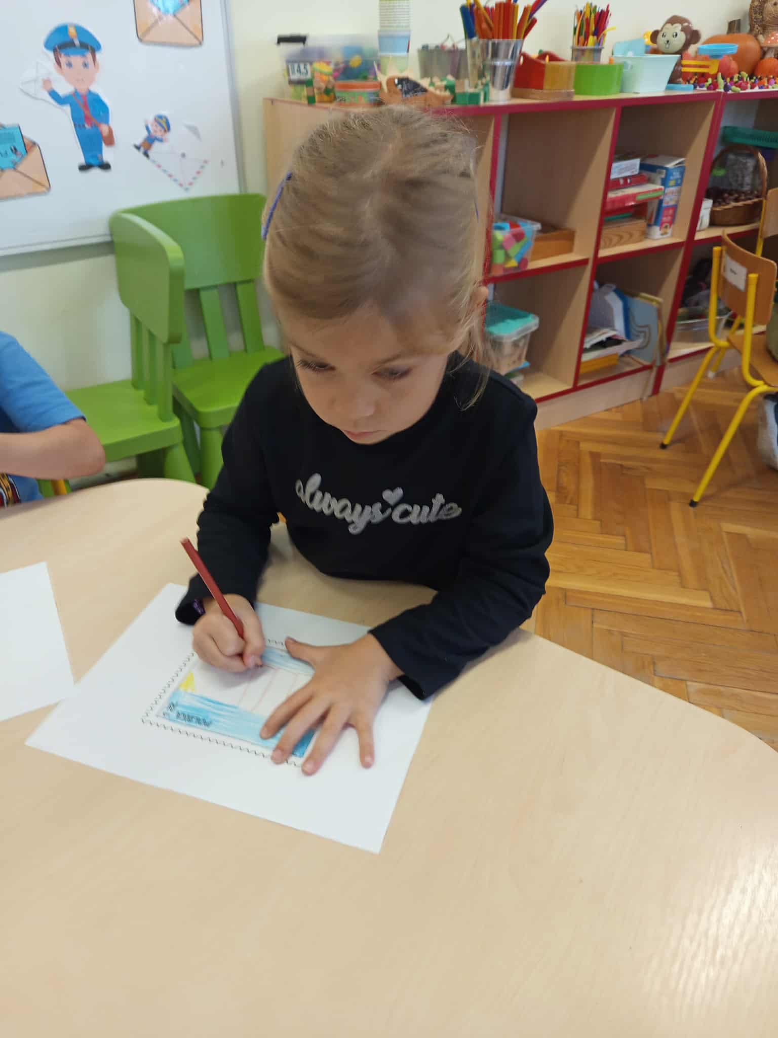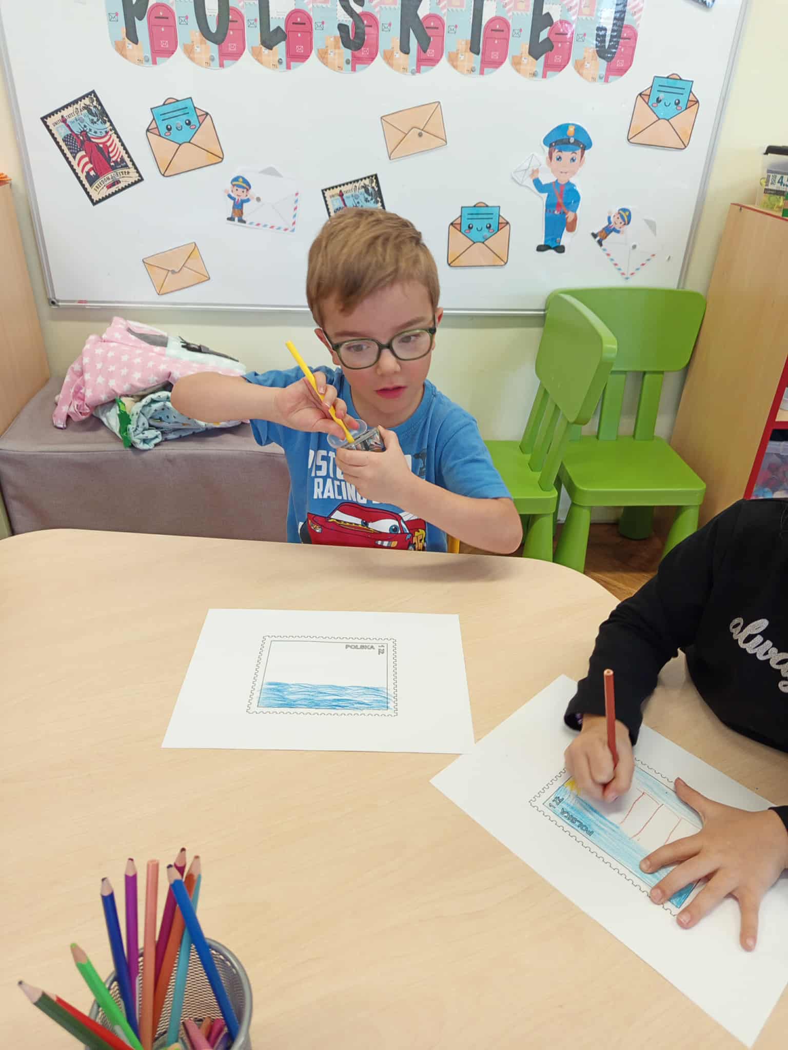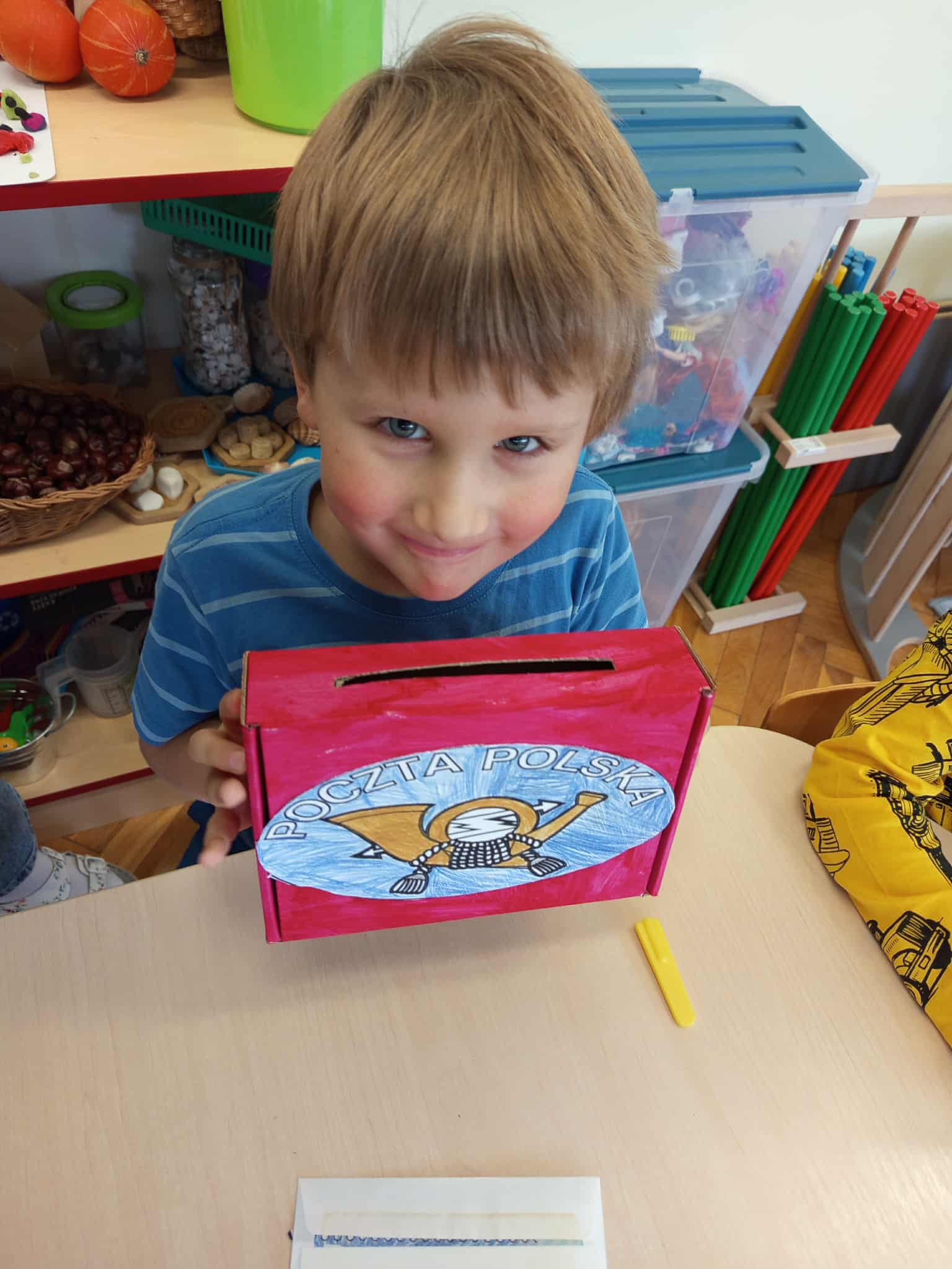 Dzisiaj świętowaliśmy Dzień Poczty Polskiej. Dzieci zostały zapoznane ze specyfiką pracy tej grupy zawodowej. Przybliżone zostały im takie pojęcia jak: list, pocztówka, znaczek, paczka, klaser. Przedszkolaki dowiedziały się również na czym polega praca listonosza, jaką drogę pokonuje list od nadawcy do adresata oraz jak prawidłowo przykleić znaczek.
