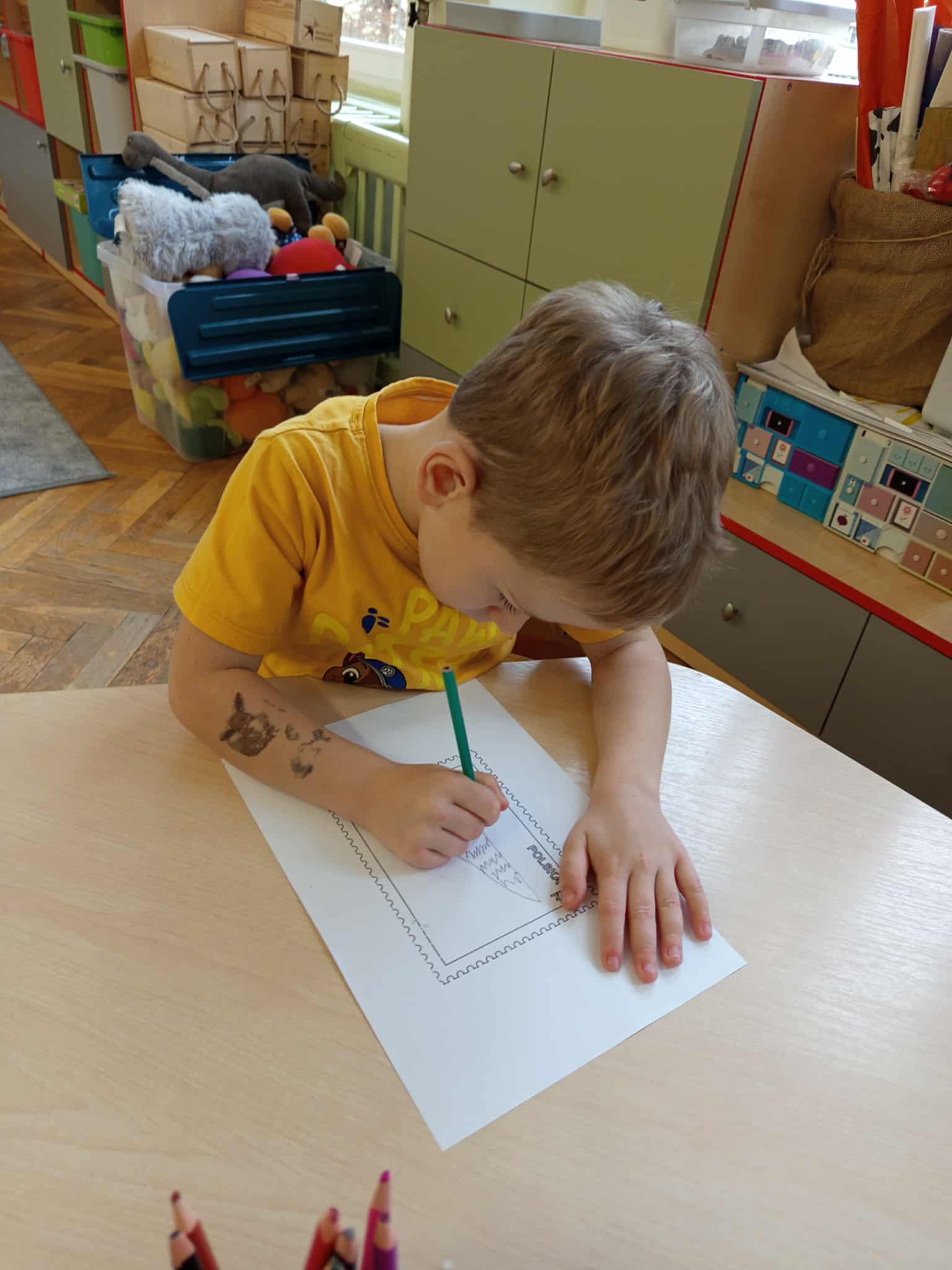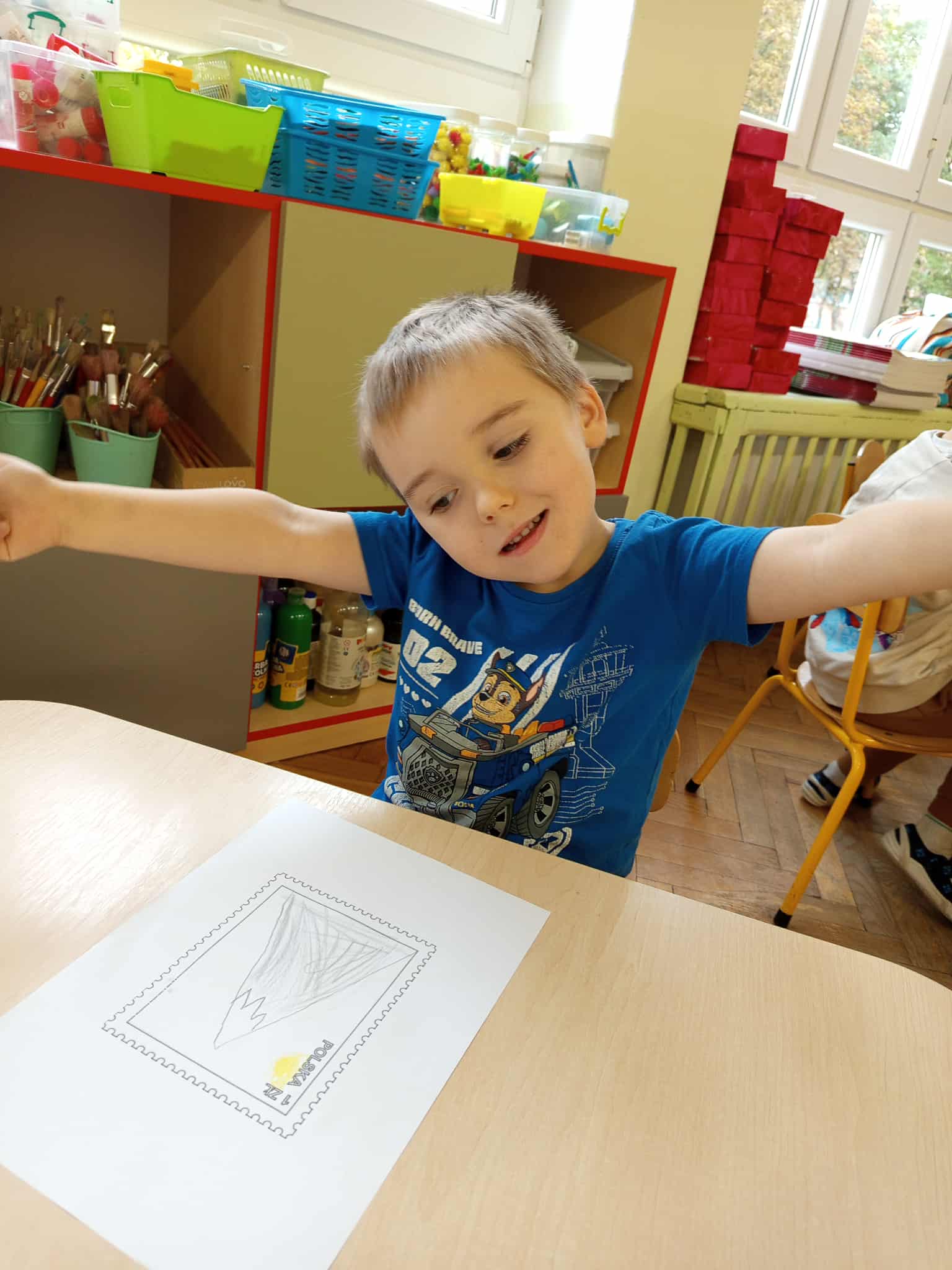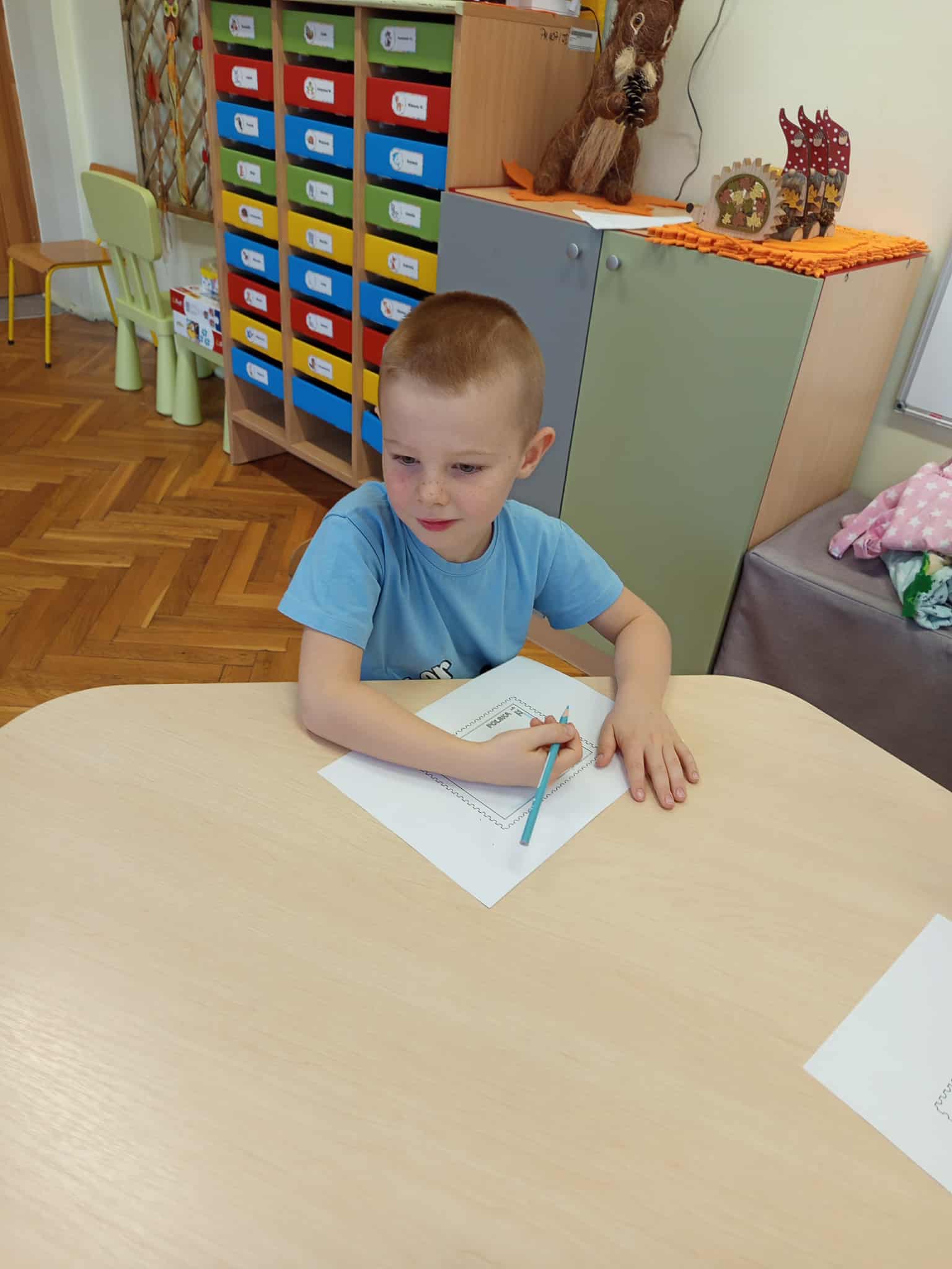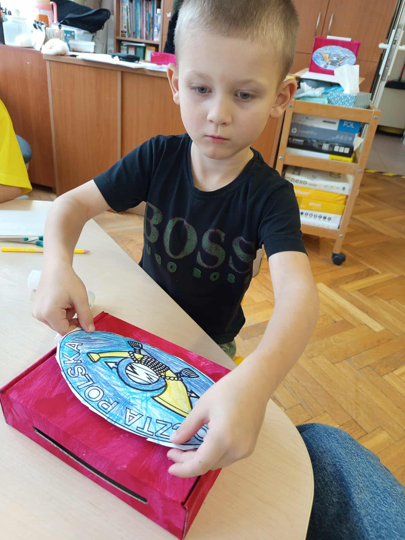 Dzisiaj świętowaliśmy Dzień Poczty Polskiej. Dzieci zostały zapoznane ze specyfiką pracy tej grupy zawodowej. Przybliżone zostały im takie pojęcia jak: list, pocztówka, znaczek, paczka, klaser. Przedszkolaki dowiedziały się również na czym polega praca listonosza, jaką drogę pokonuje list od nadawcy do adresata oraz jak prawidłowo przykleić znaczek.