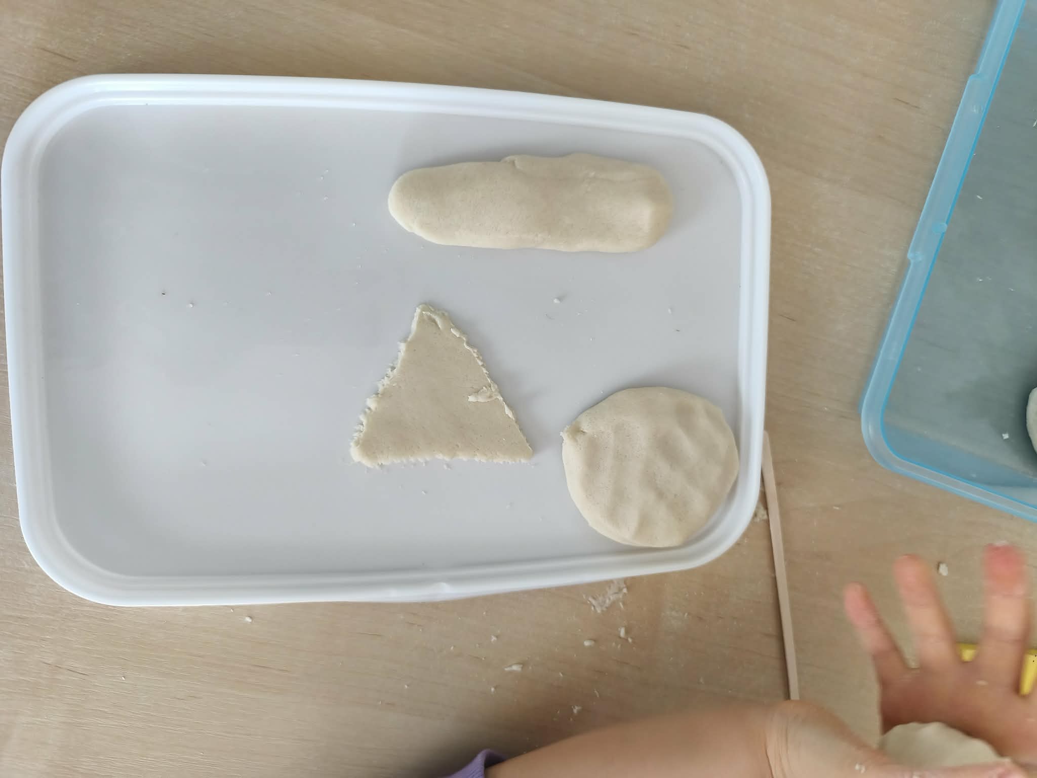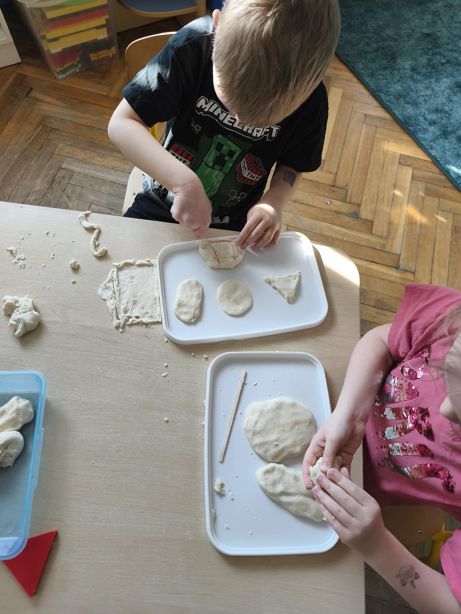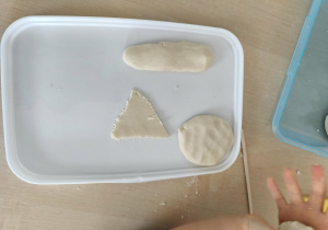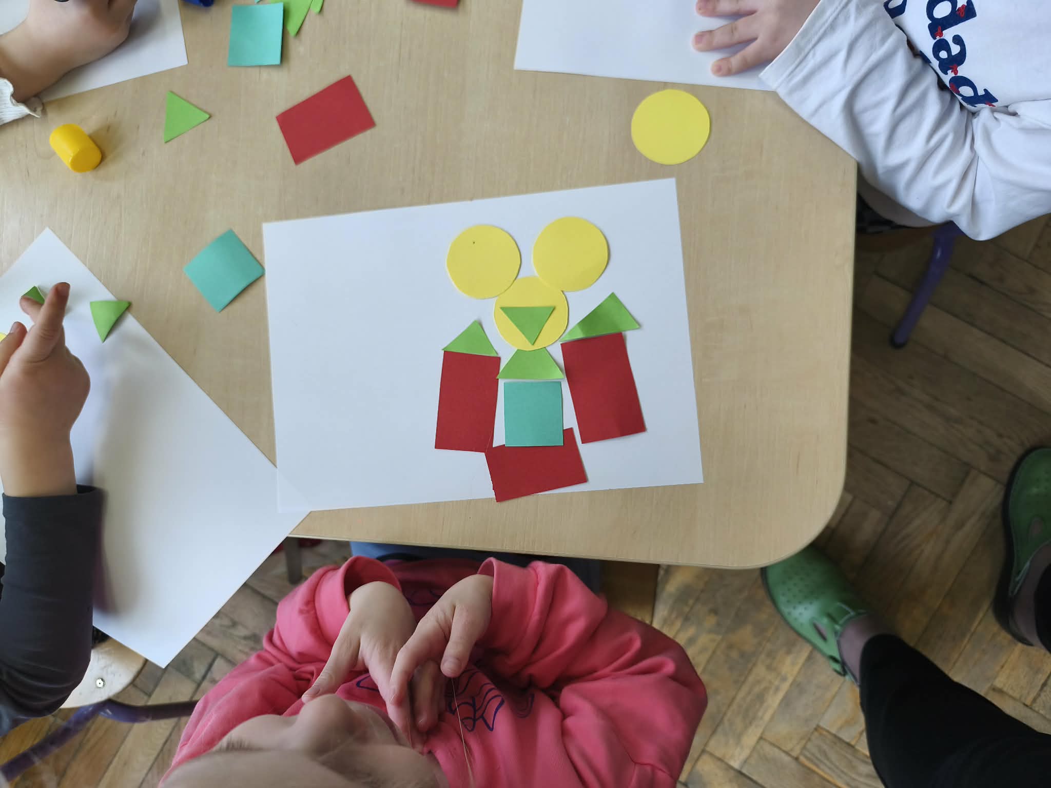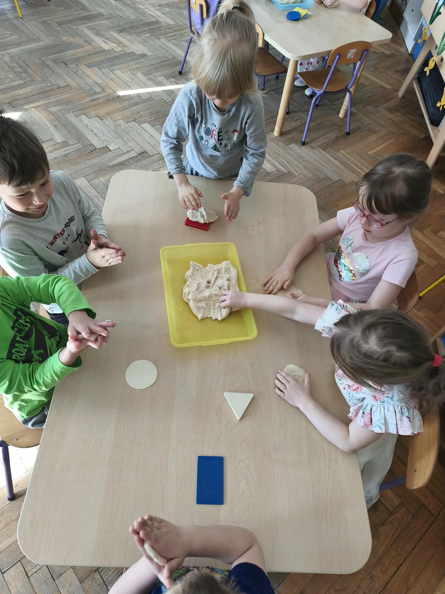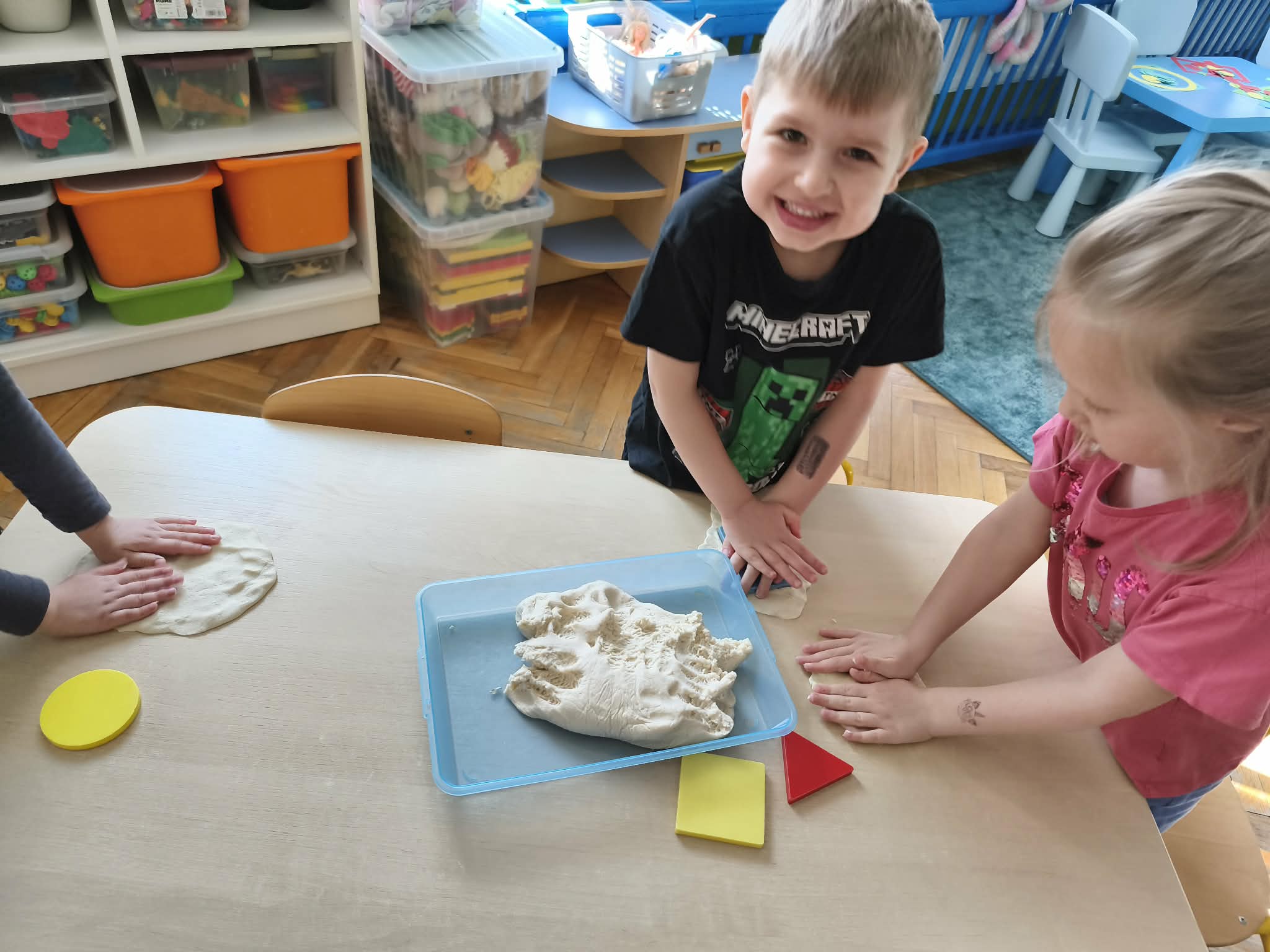 Segregowanie figur, nazywanie ich, lepienie z masy solnej a następnie malowanie oraz obrazki geometryczne to dzisiejsza nasza aktywność matematyczna.