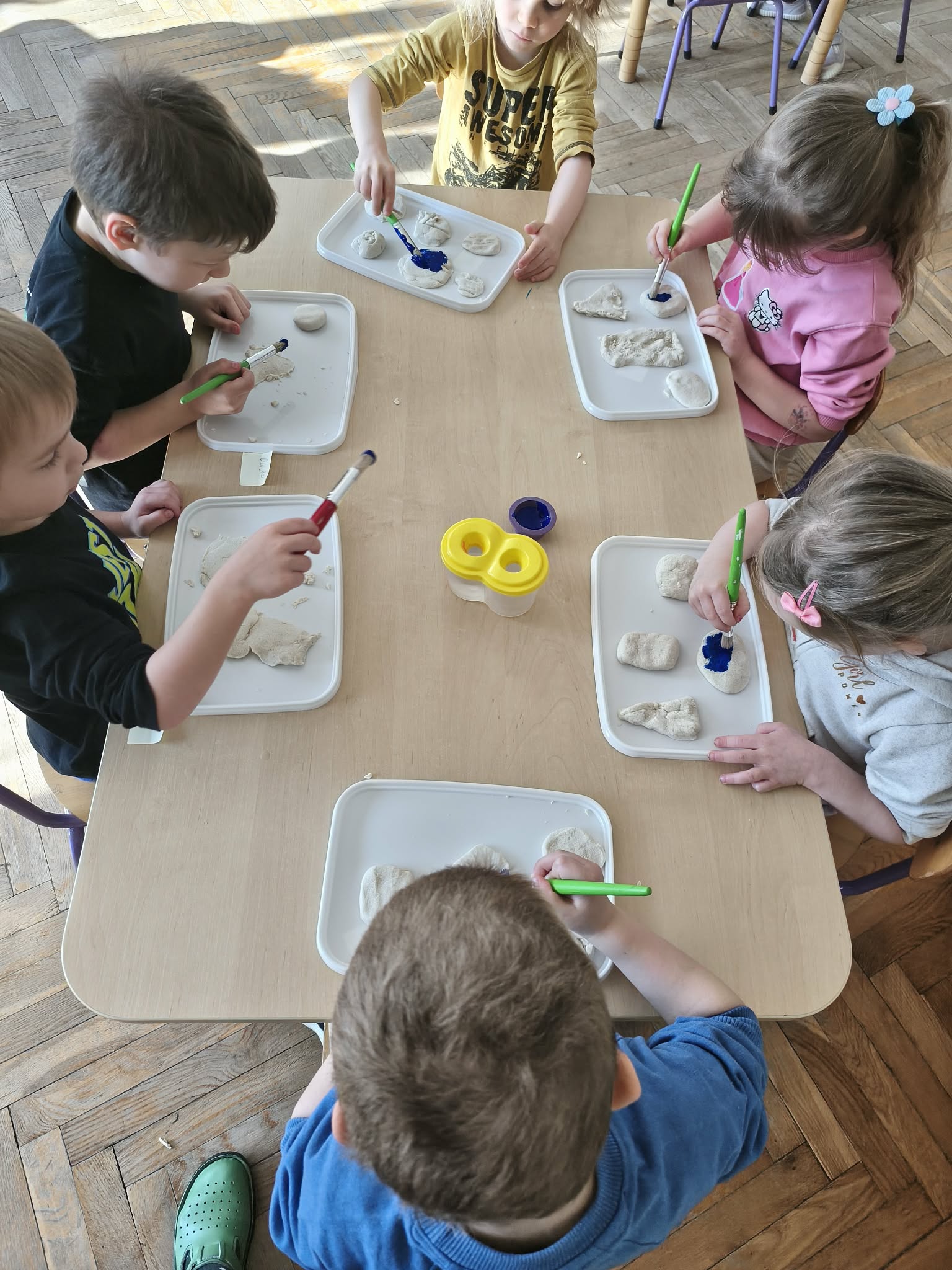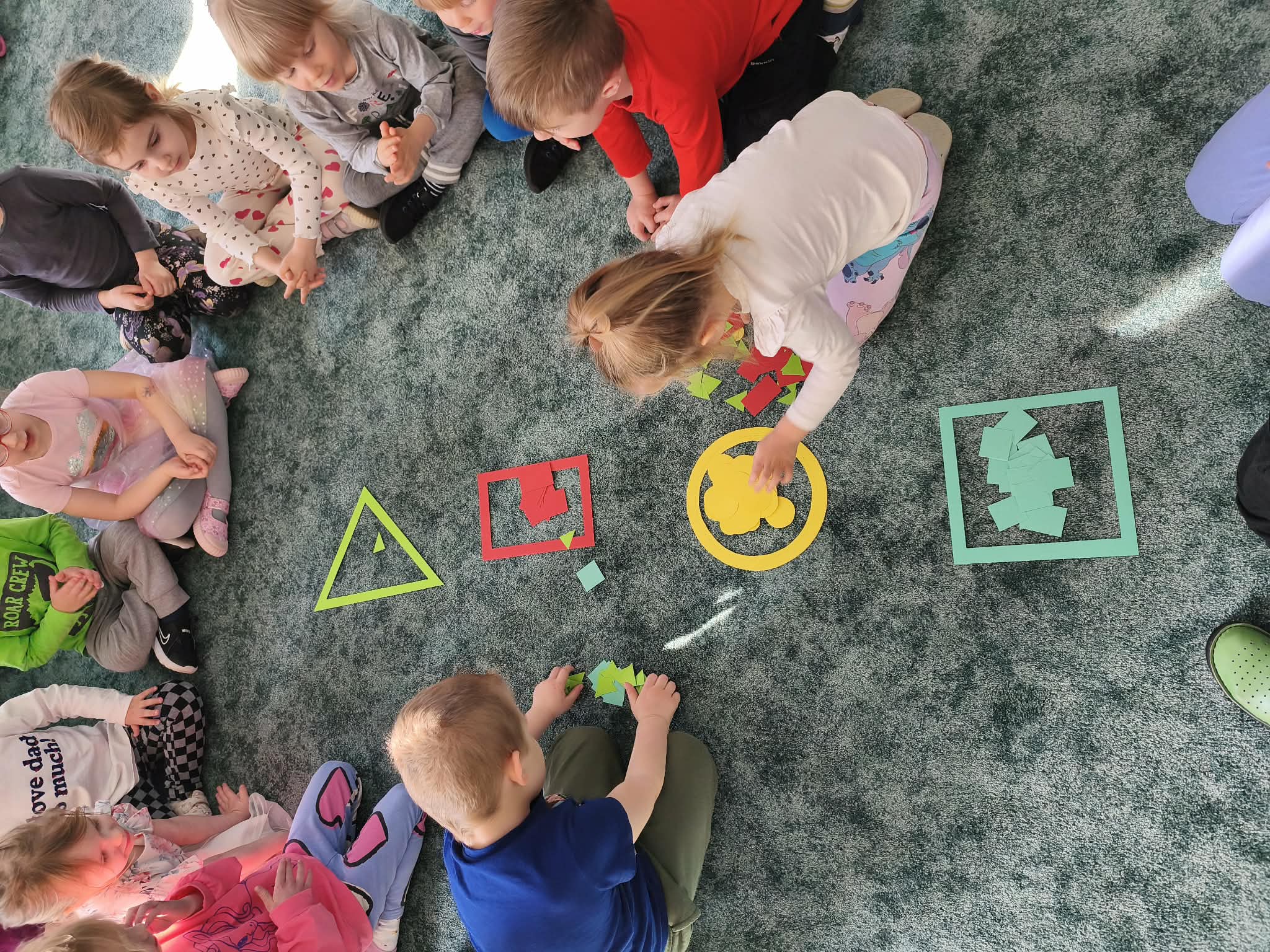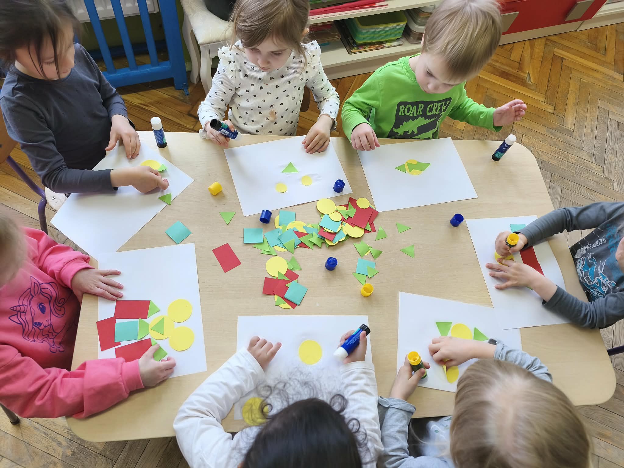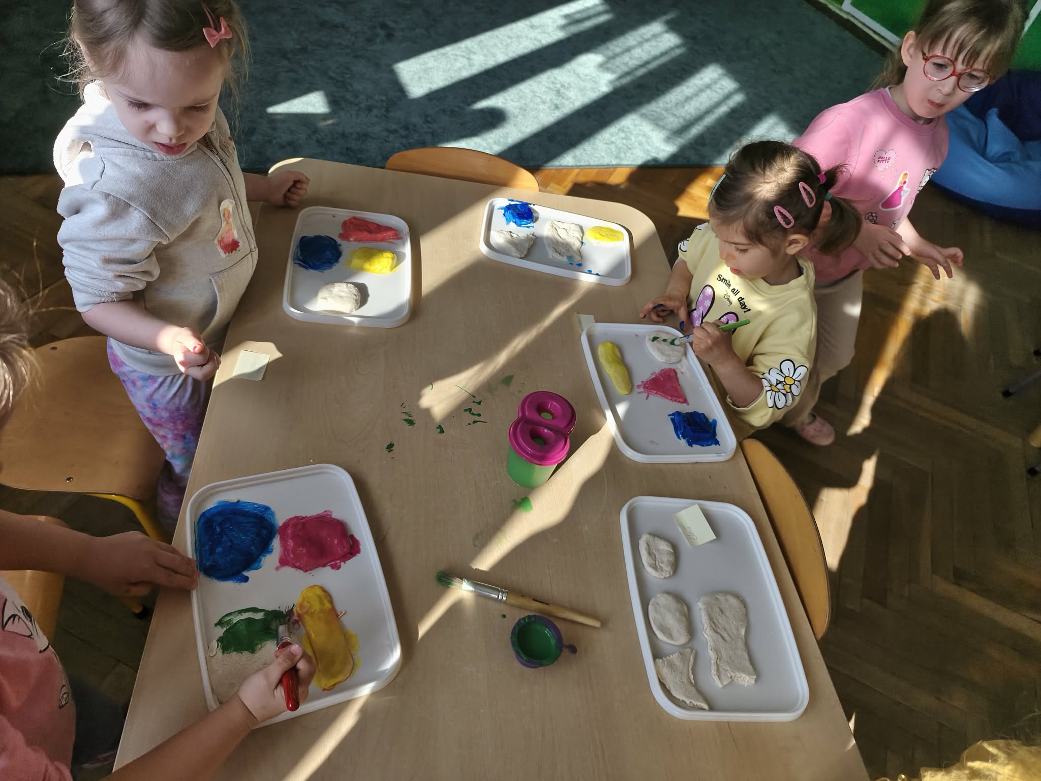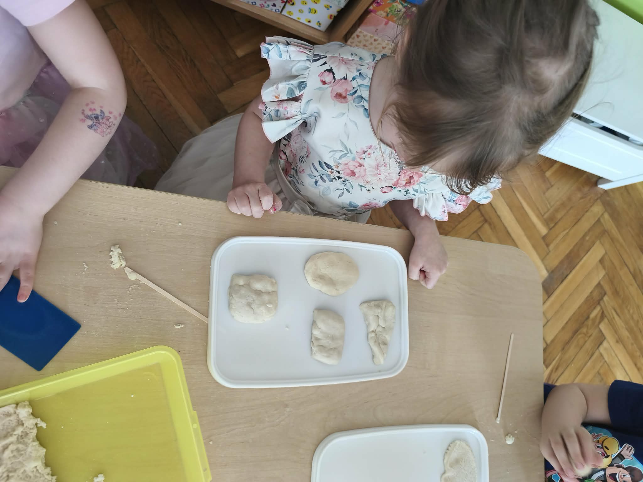 Segregowanie figur, nazywanie ich, lepienie z masy solnej a następnie malowanie oraz obrazki geometryczne to dzisiejsza nasza aktywność matematyczna.