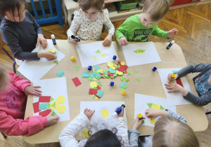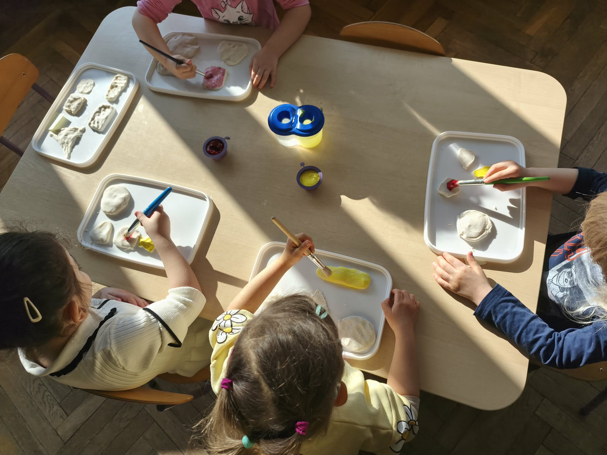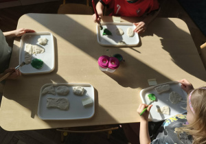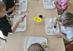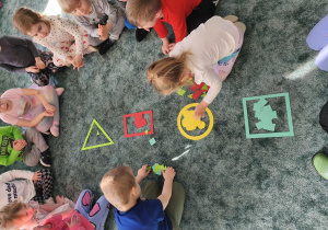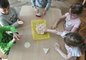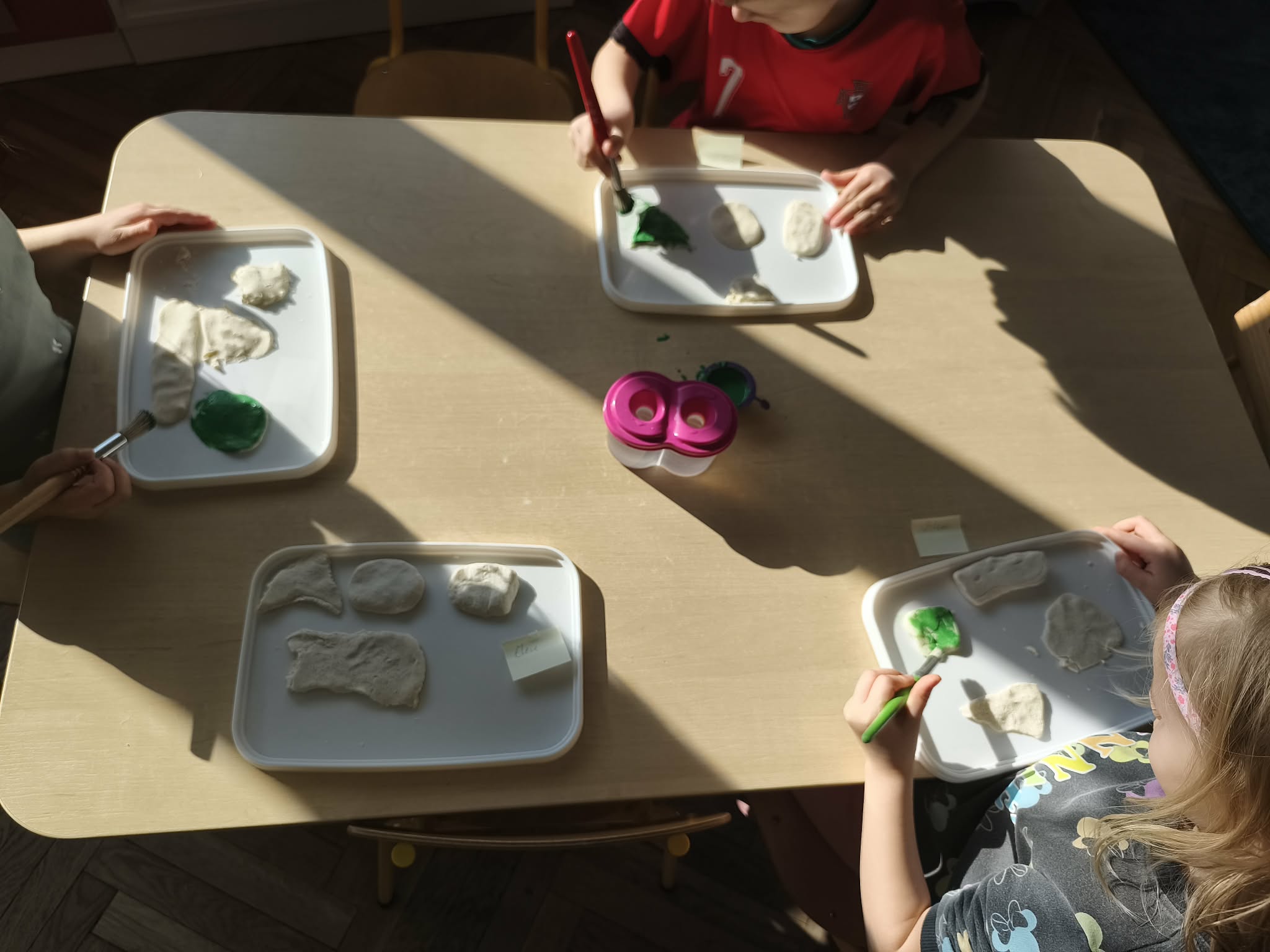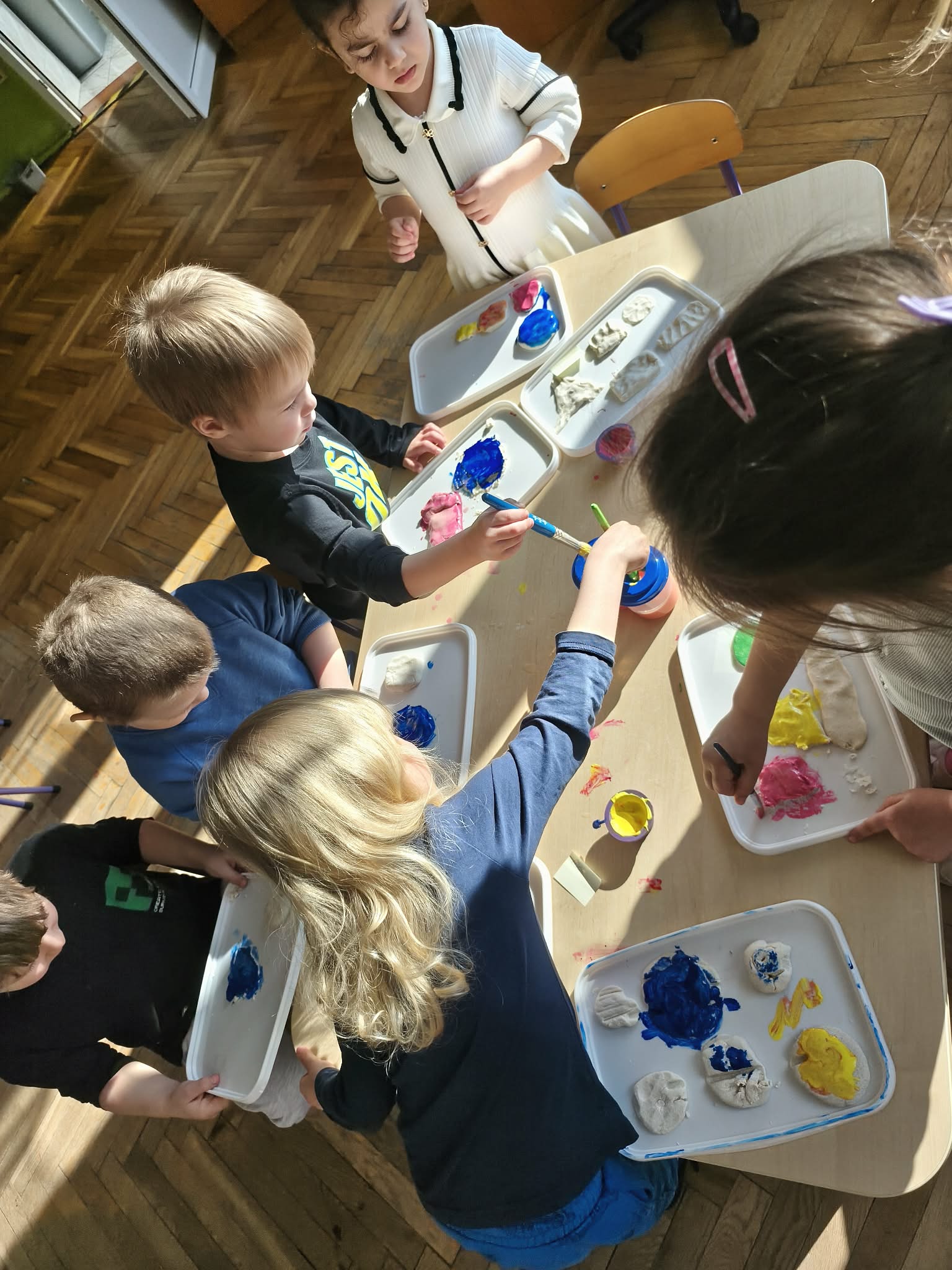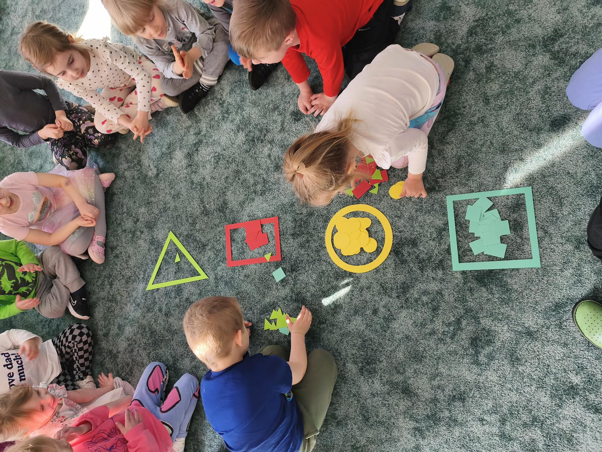 Segregowanie figur, nazywanie ich, lepienie z masy solnej a następnie malowanie oraz obrazki geometryczne to dzisiejsza nasza aktywność matematyczna.