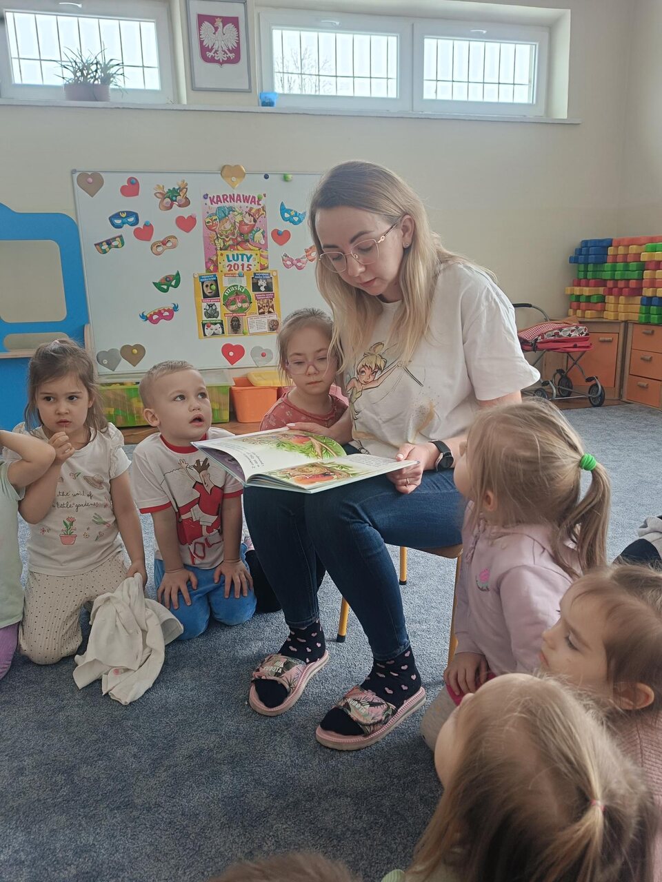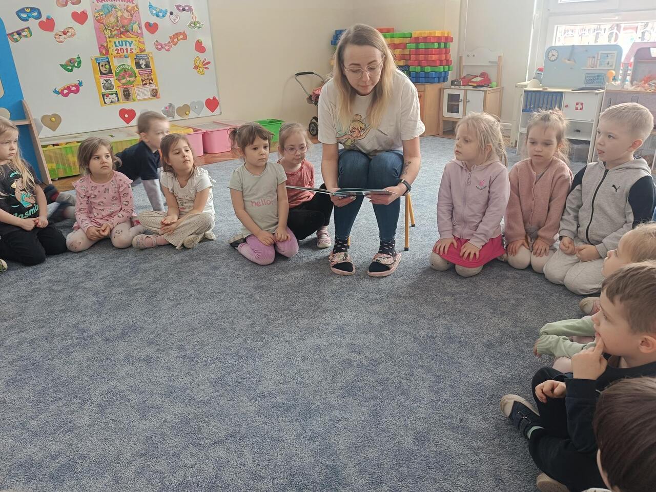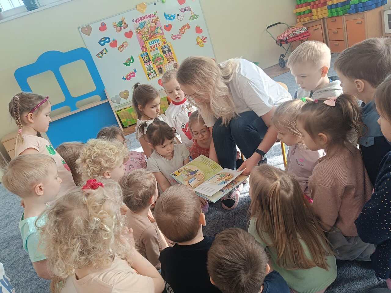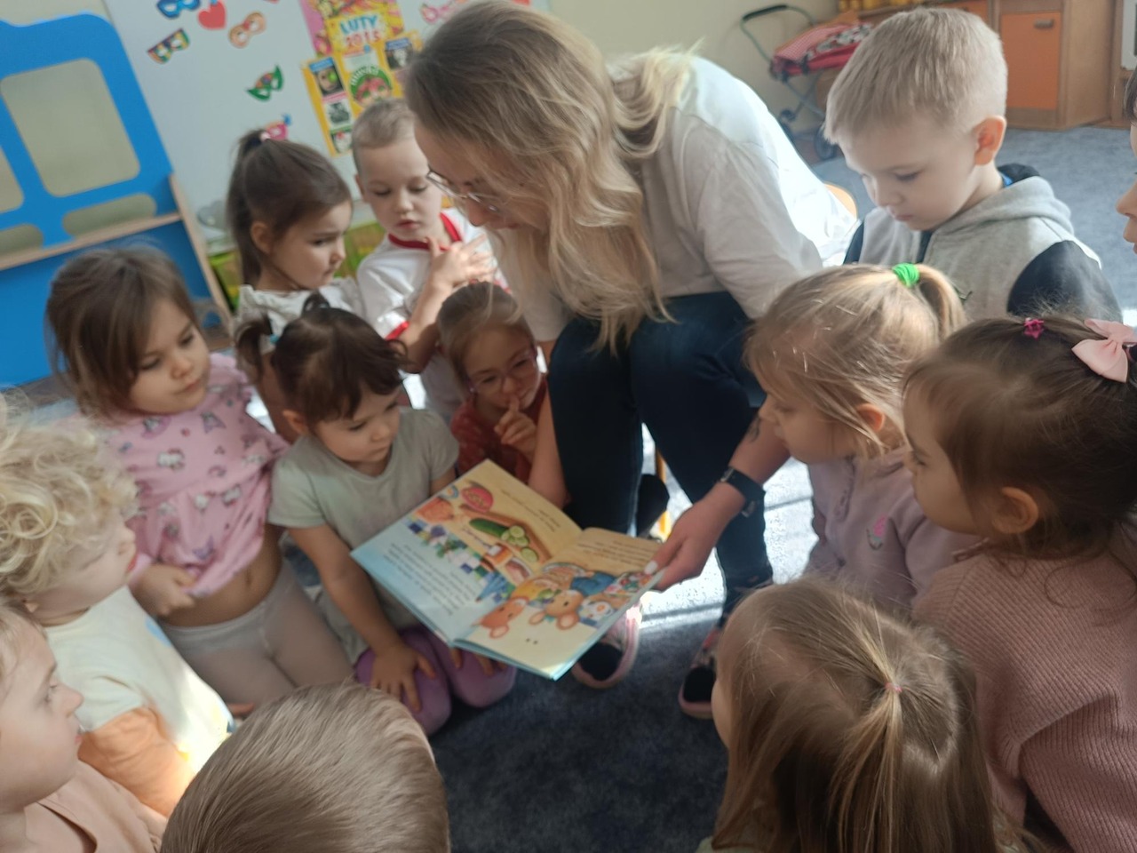 W ramach akcji głośnego czytania "Poczytaj mi mamo, poczytaj mi tato" organizowanej w naszej grupie gościliśmy mamę Lilianny. Pani Angela przeczytała dzieciom opowiadanie o przygodach myszki. Dzieci były bardzo zainteresowane, książka była bogato ilustrowana. Dzieci z ciekawością słuchały treści i oglądały obrazki. A na zakończenie czekała ich słodka niespodzianka- domowej roboty ciasteczka przygotowane przez Liliannę i jej mamę. Serdecznie dziękujemy za wizytę.