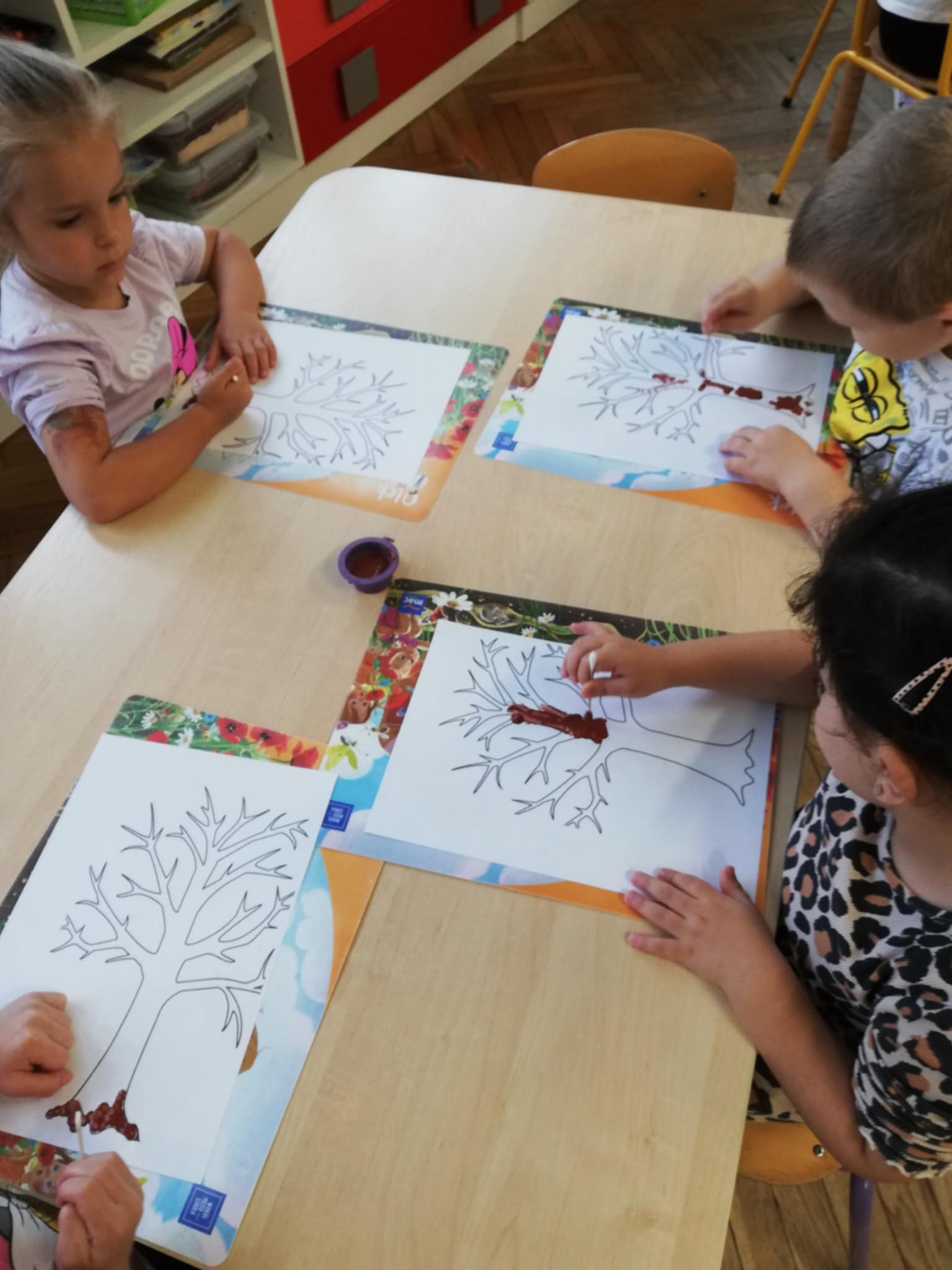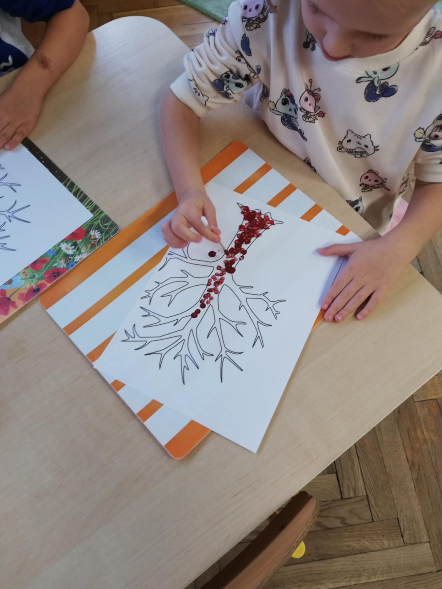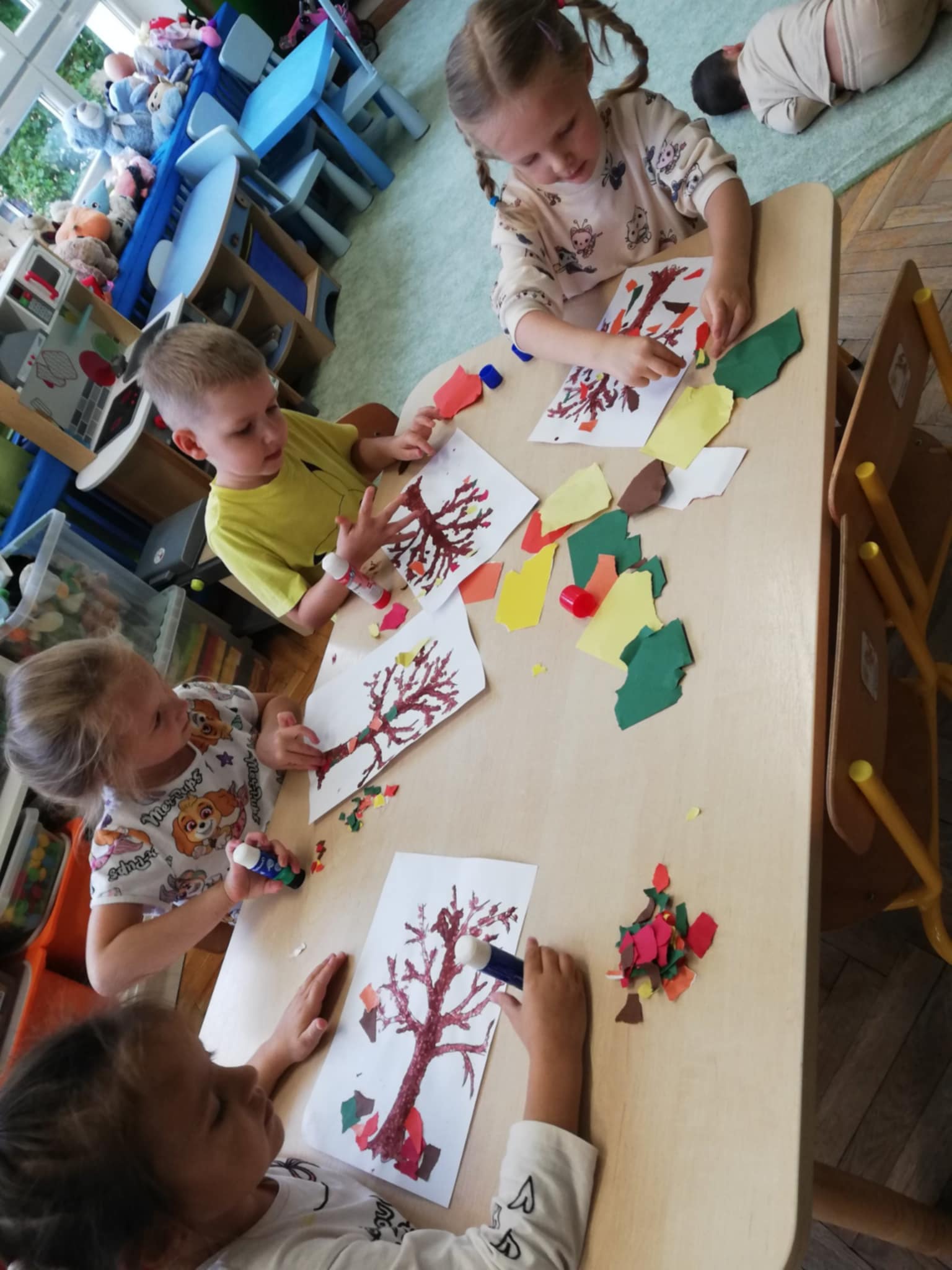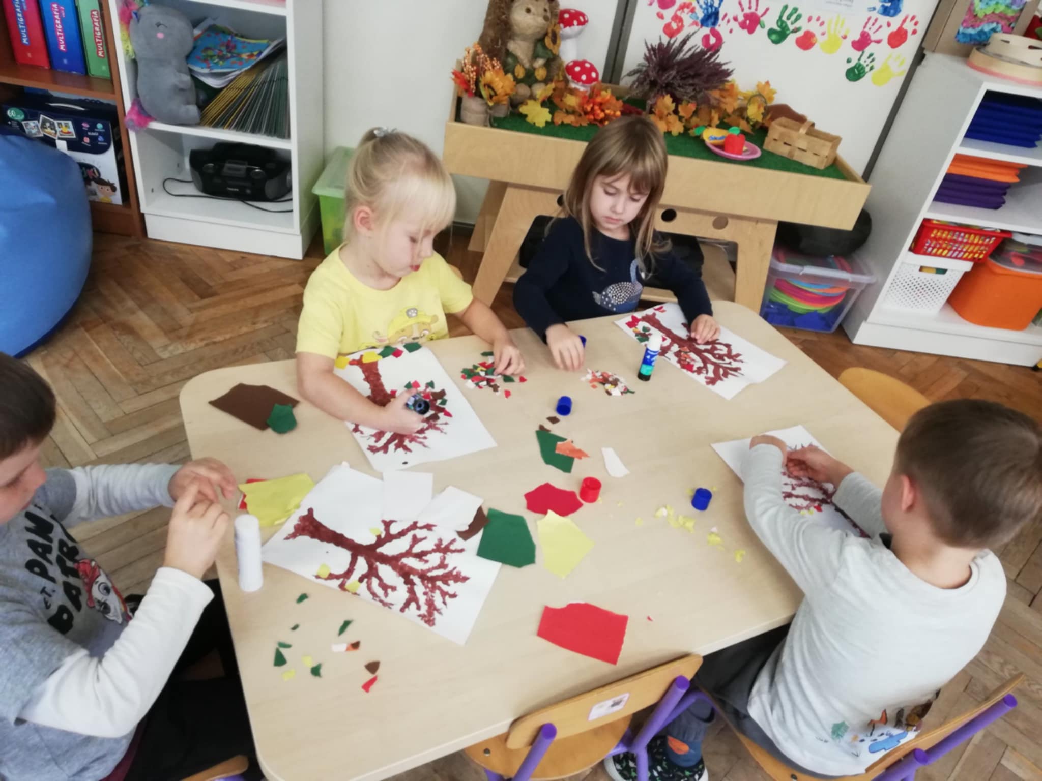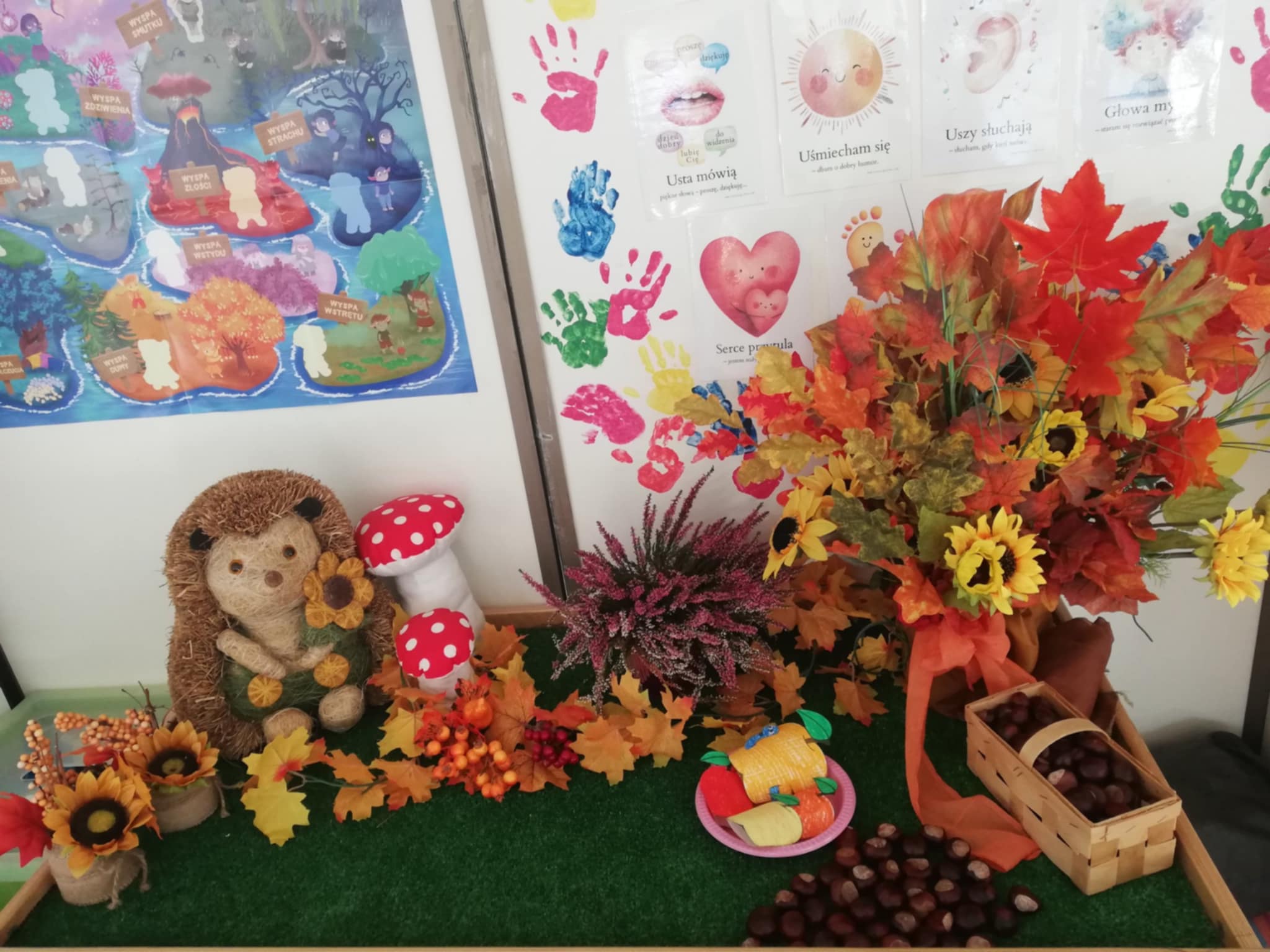 Nasze spacery to czas różnorakich aktywności. Obserwujemy zmieniającą się przyrodę, zbieramy liście, kasztany. Dzięki dużemu zaangażowaniu, bardzo szybko powstał w naszej sali jesienny kącik przyrody. Oprócz jeża, grzybów, kącik wzbogacił się o jarzębinę, kasztany, kwiaty, żołędzie, szyszki i liście. Jest pięknie:). Powstają też prace plastyczne, które są dopełnieniem całości i dają nam możliwość rozwijania motoryki małej.