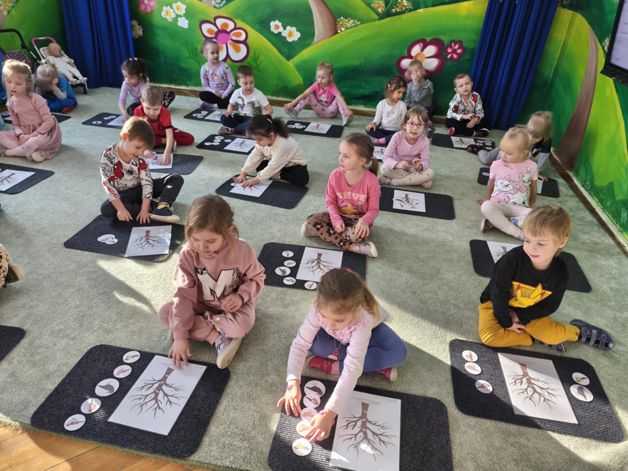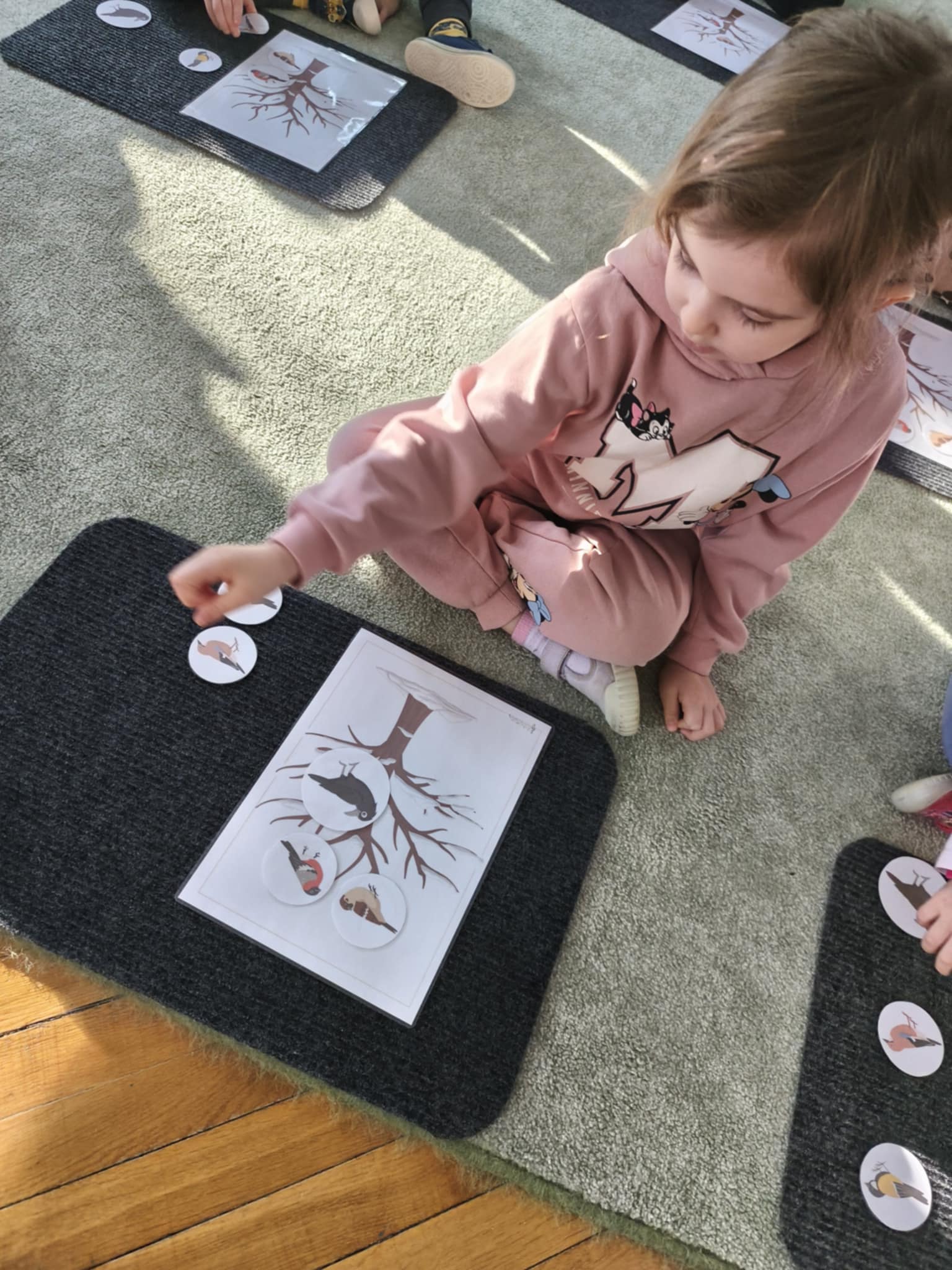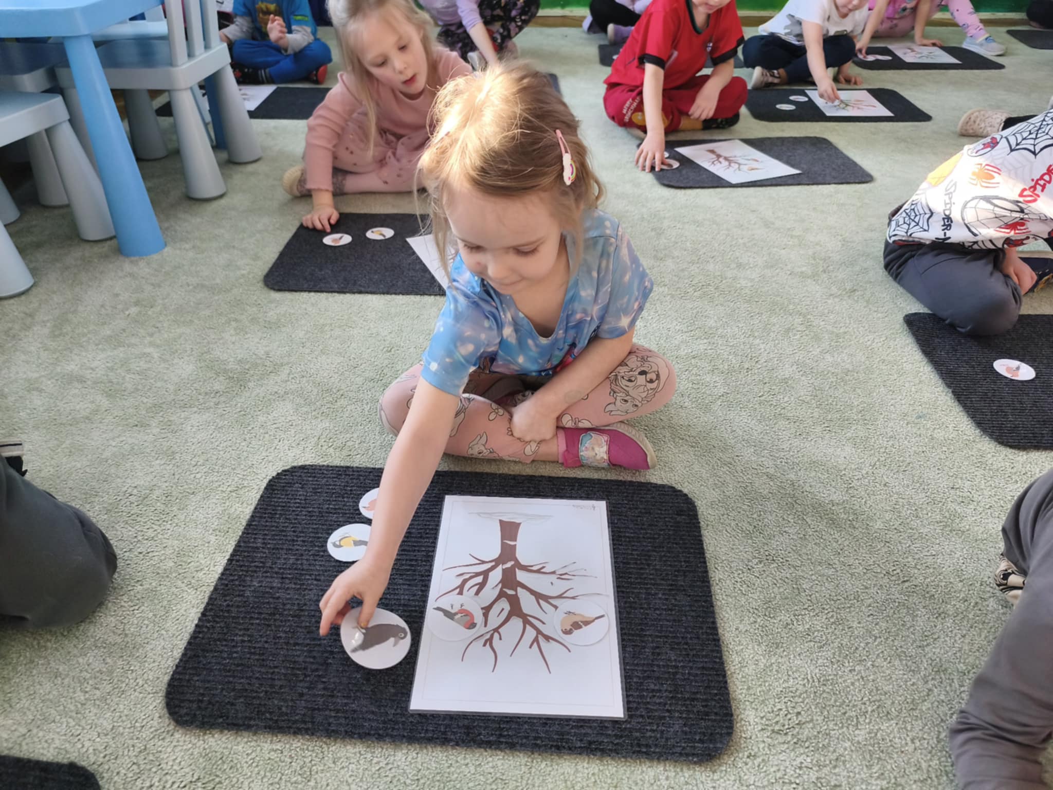 Dzisiaj utrwalaliśmy wiadomości o ptakach pozostających na zimę. Nauczyliśmy się piosenki "Kolorowe ptaszki", a następnie kodowaliśmy je na planszach. Czy pamiętacie jak się nazywały? Wróbel, gil, gawron, sójka, sikorka bogatka. Brawo.