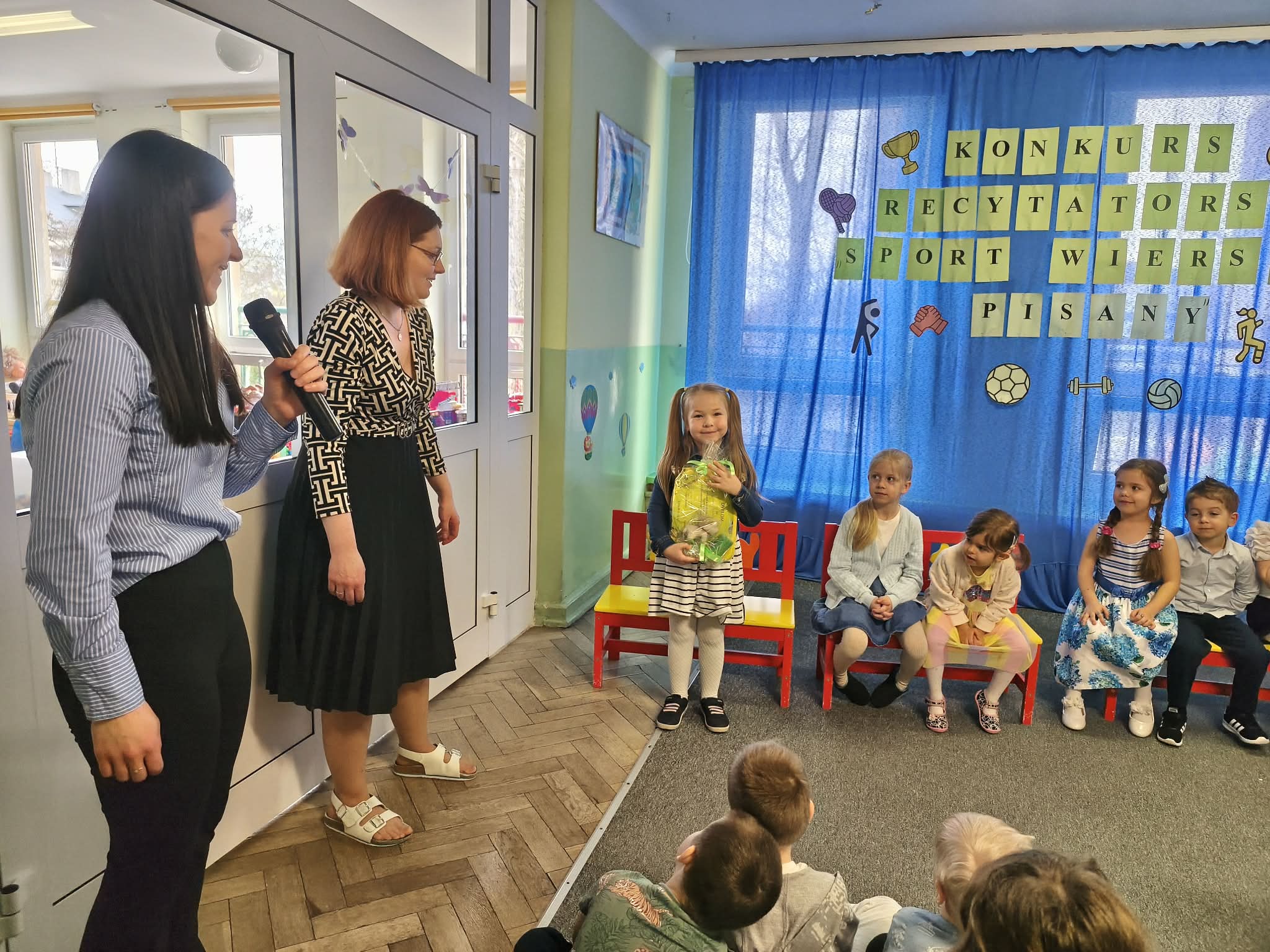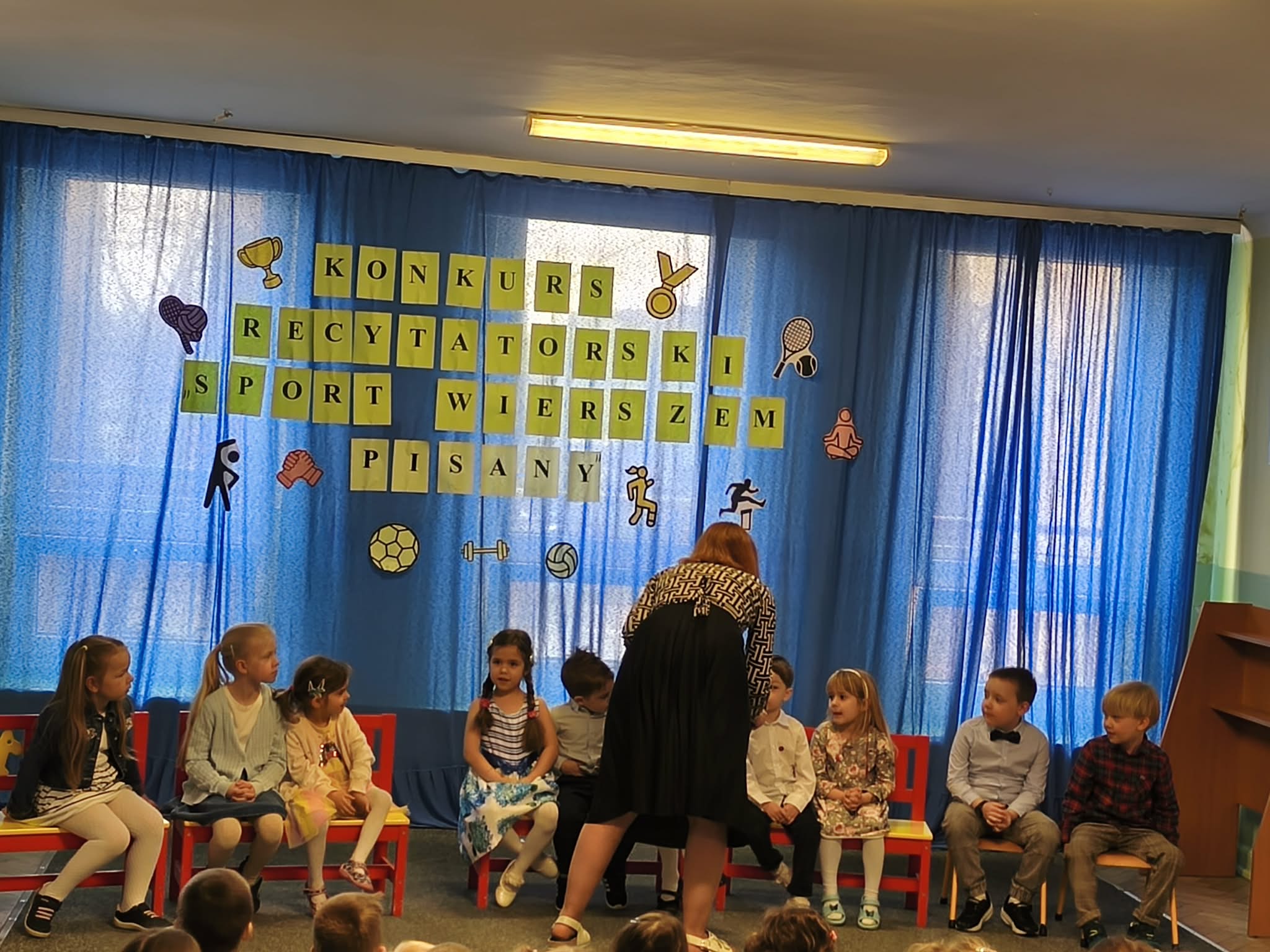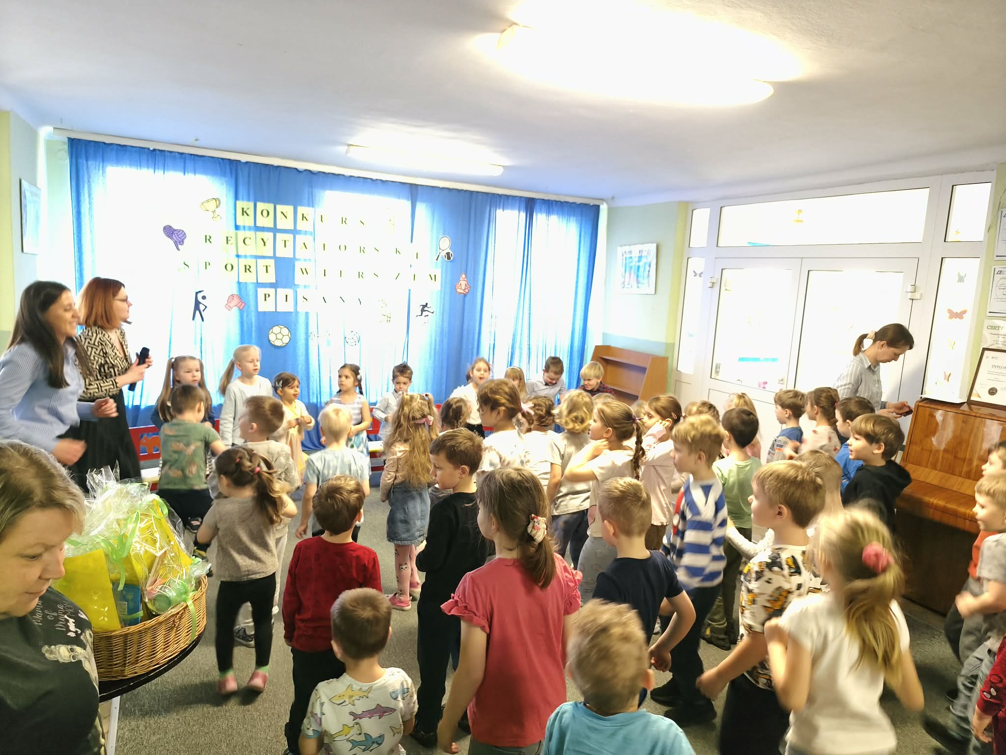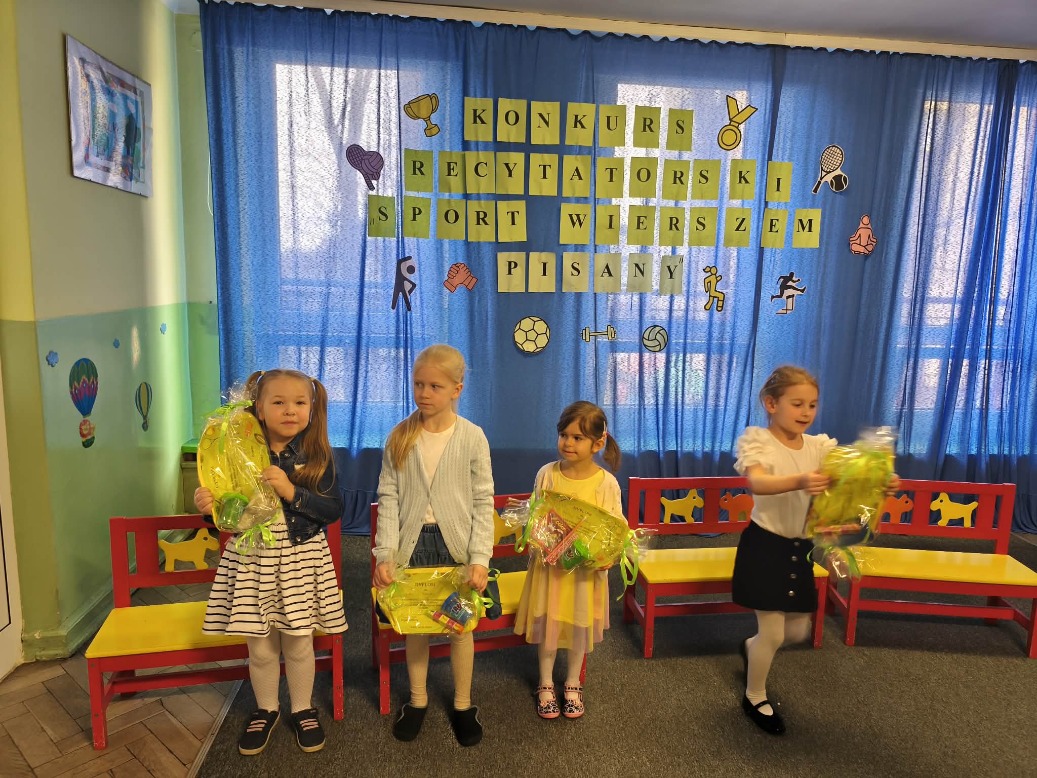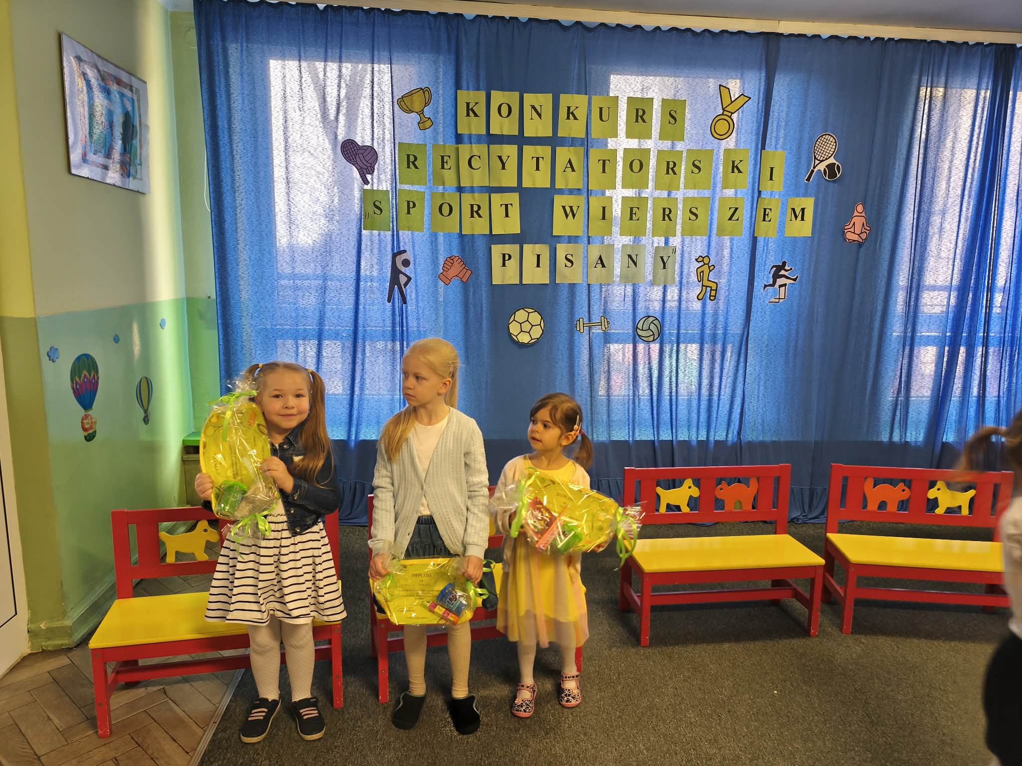 W Przedszkolu Miejskim nr 185, odbył się dzisiaj konkurs recytatorski "Sport wierszem pisany". Nasze przedszkole reprezentowały trzy dziewczynki: Hania z naszej grupy, Gabrysia z grupy Chmurek i Tosia z grupy Tęcz. Każda z dziewczynek pięknie zaprezentowała swój wyuczony wierszyk, za co otrzymały ogromne brawa i nagrody. Super dziewczyny, jesteśmy z Was dumni i gratulujemy.