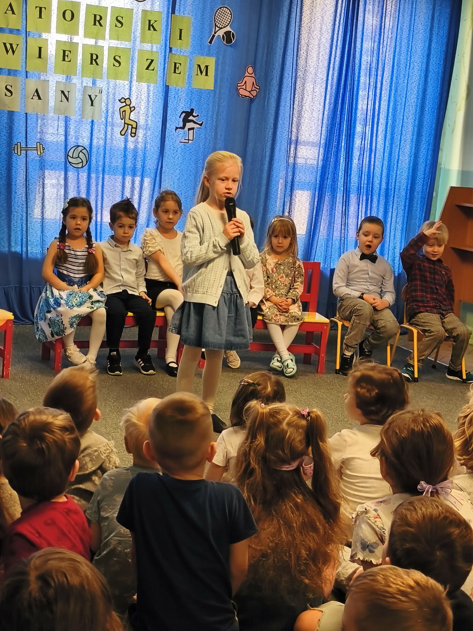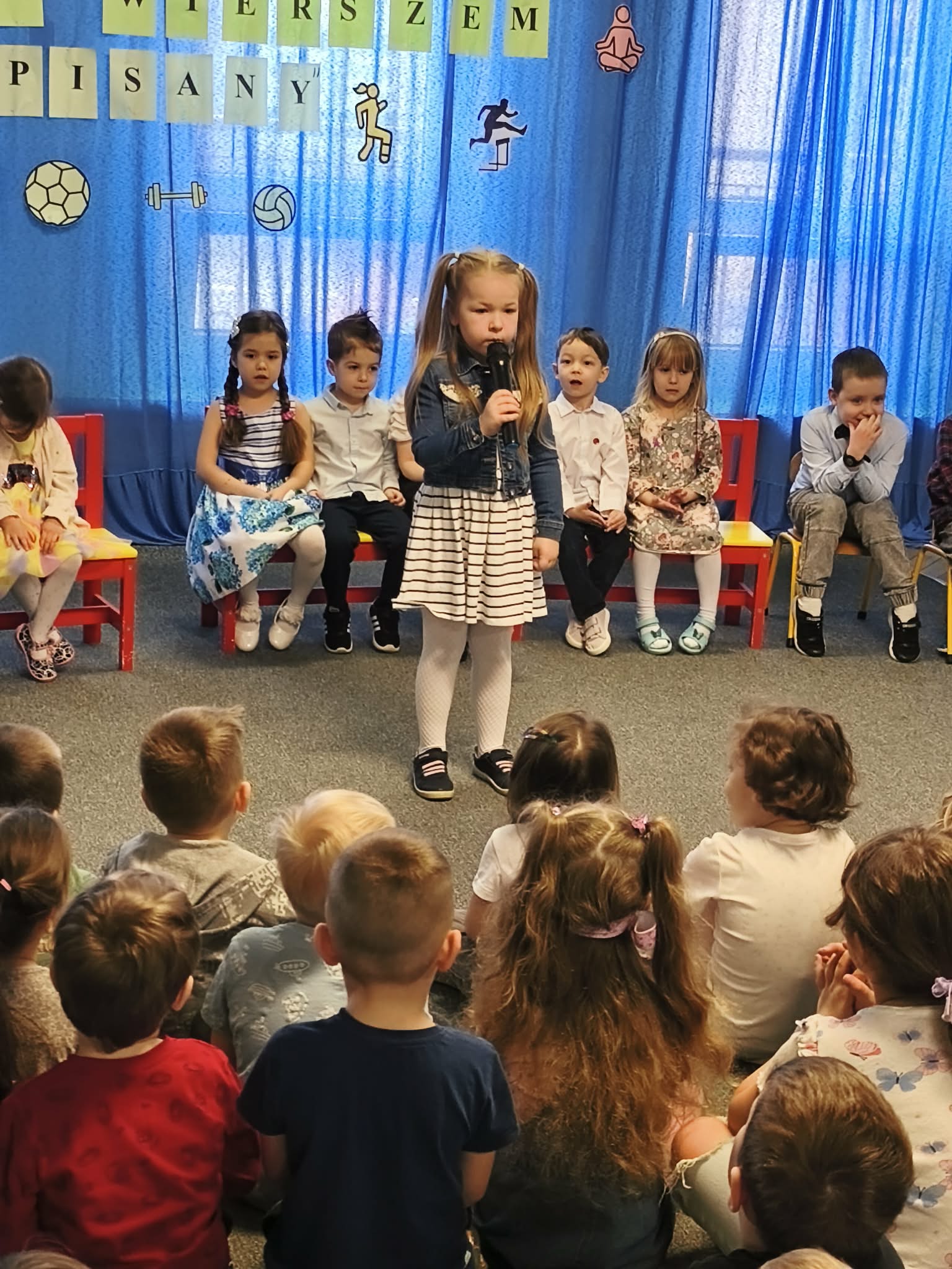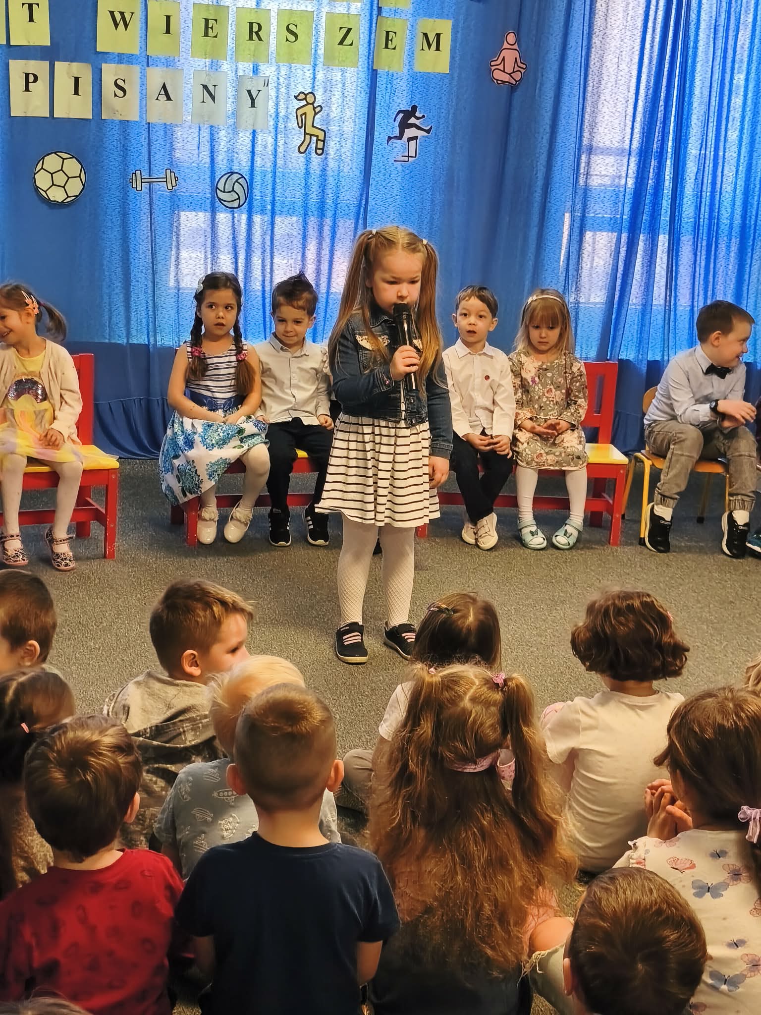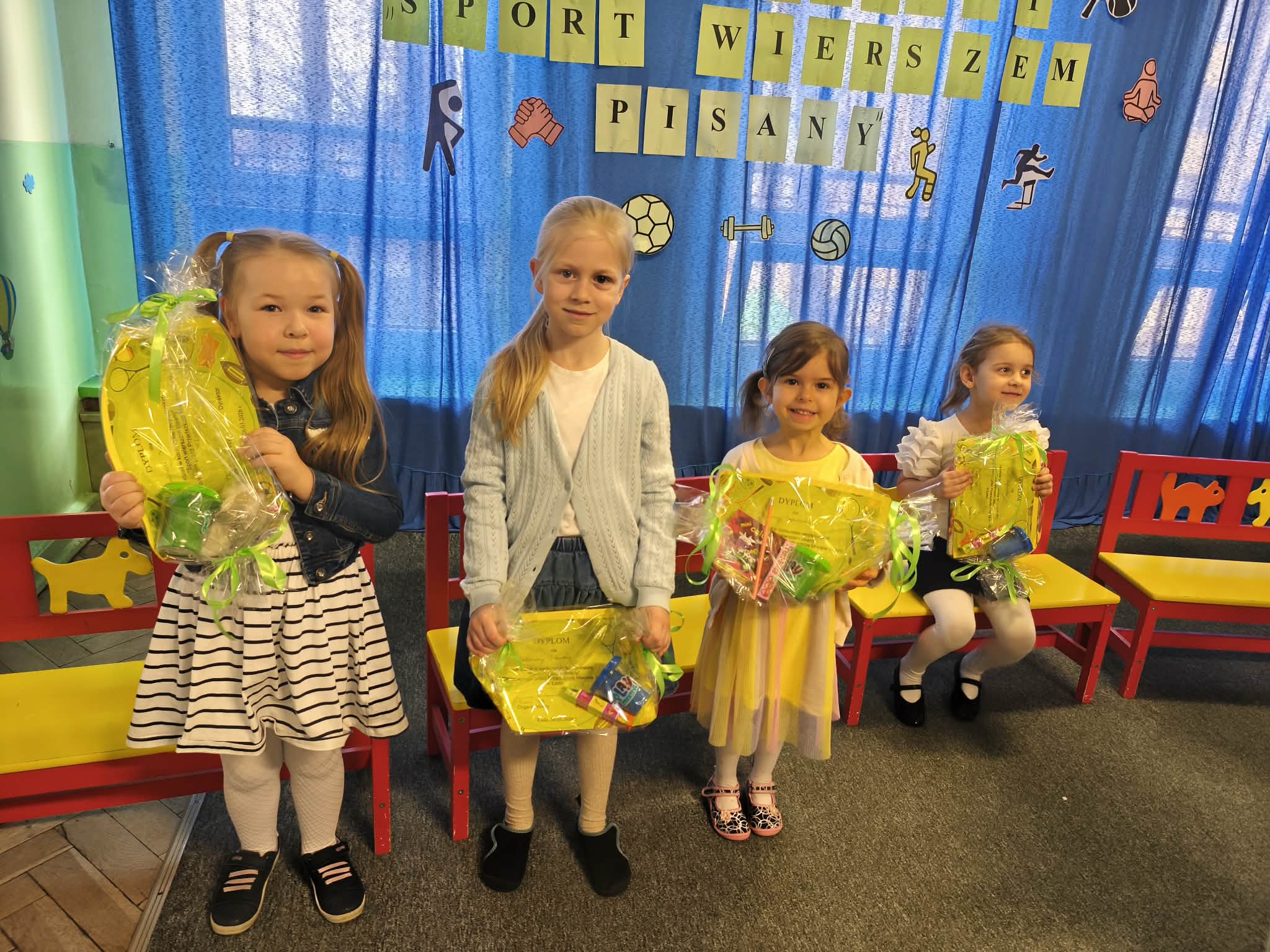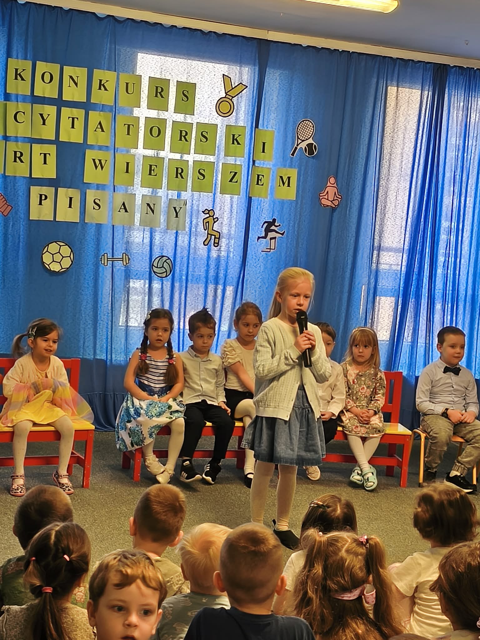 W Przedszkolu Miejskim nr 185, odbył się dzisiaj konkurs recytatorski "Sport wierszem pisany". Nasze przedszkole reprezentowały trzy dziewczynki: Hania z naszej grupy, Gabrysia z grupy Chmurek i Tosia z grupy Tęcz. Każda z dziewczynek pięknie zaprezentowała swój wyuczony wierszyk, za co otrzymały ogromne brawa i nagrody. Super dziewczyny, jesteśmy z Was dumni i gratulujemy.