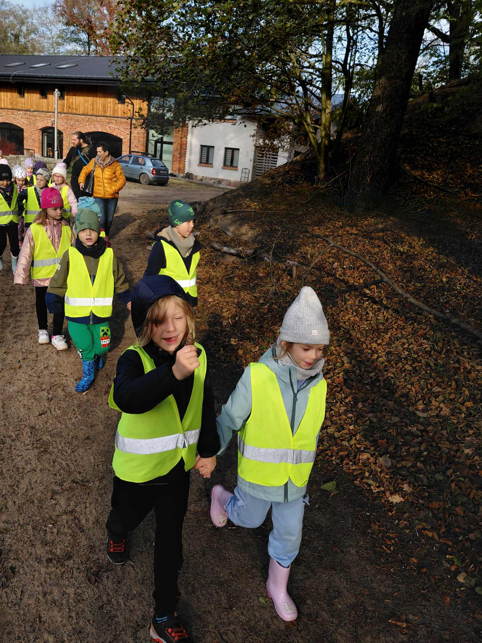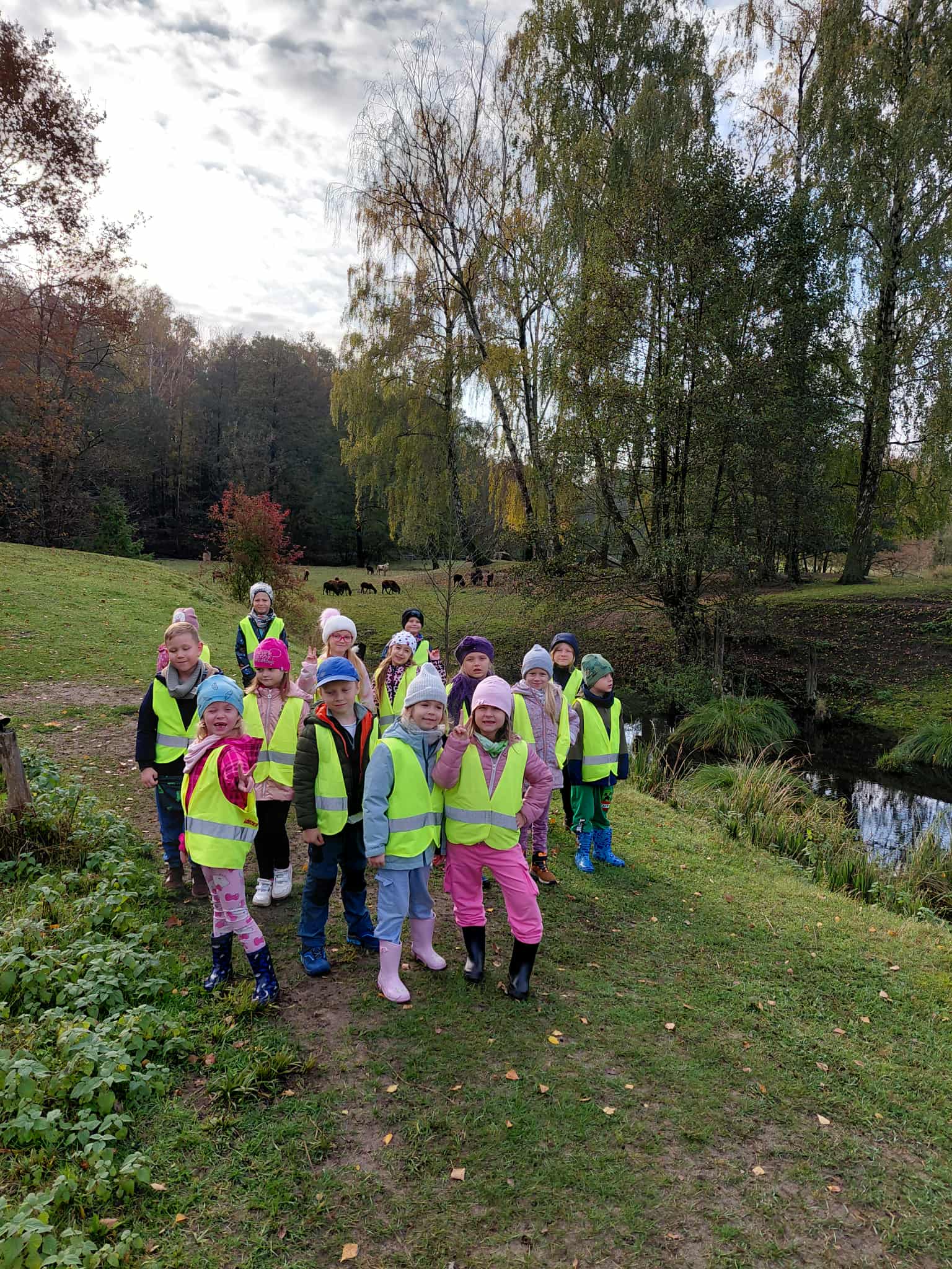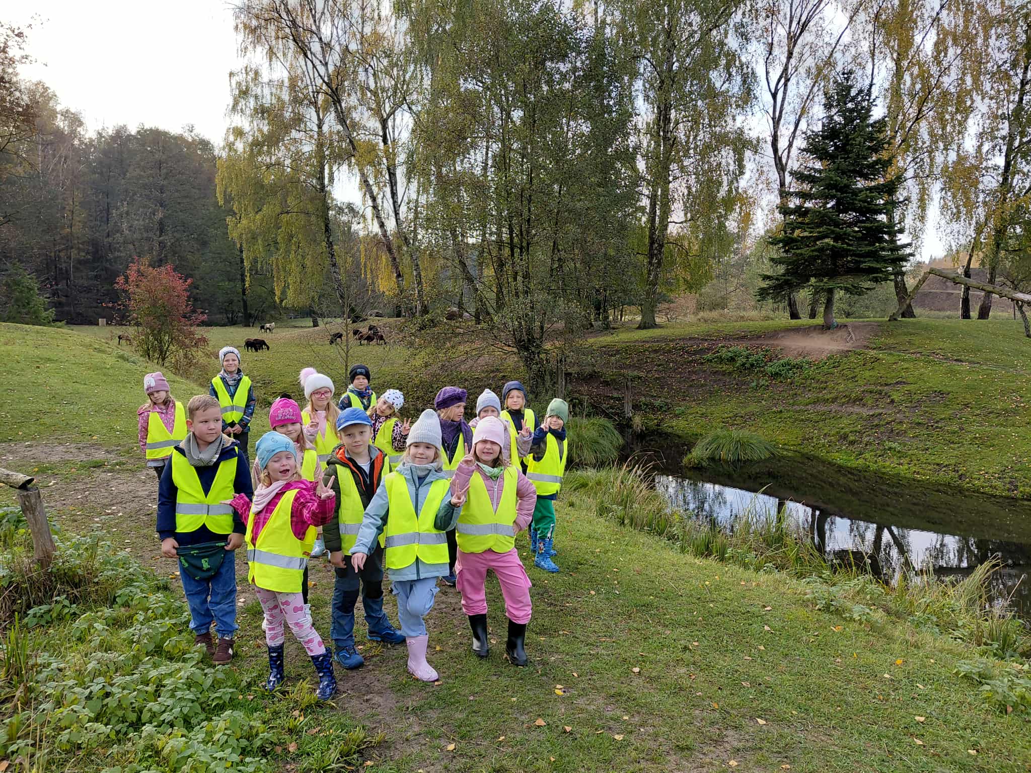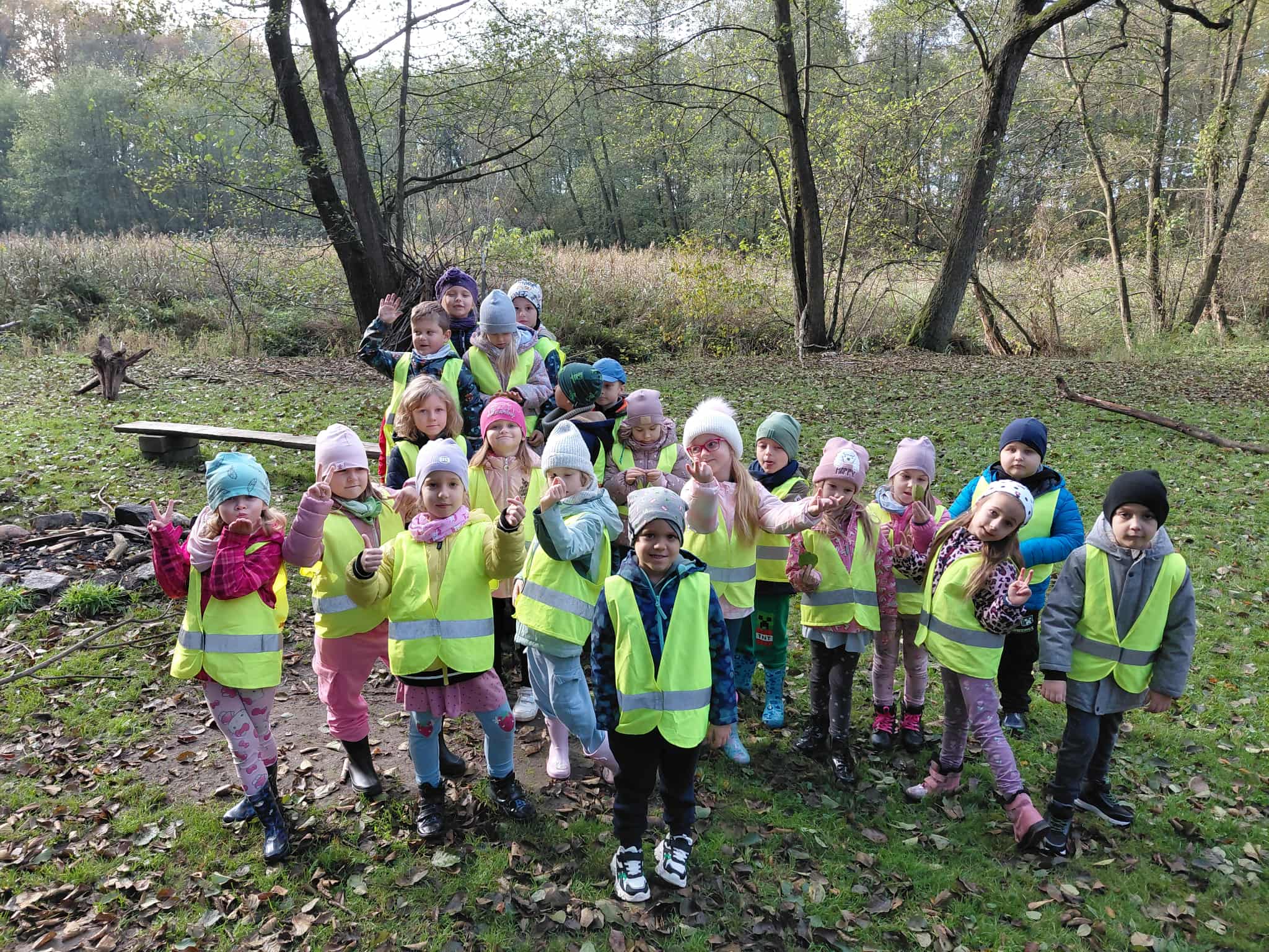 W październiku byliśmy na wycieczce w Krainie Dzikiej Kaczki. Dzieci miały możliwość obcowania z przepiękną przyrodą, całą grupą wybraliśmy się na spacer z przewodnikiem po lesie w celu odkrywania i poznawania piękna natury. W między czasie była również chwila na zabawę i podziwianie zwierząt domowych. Dzieci były zachwycone pięknymi widokami otaczającymi ośrodek. Podczas edukacyjnego spaceru po lesie towarzyszyły nam pieski które były bardzo przyjazne i pełne chęci do zabawy. Dzieci brały również udział w warsztatach podczas których robiły własne zielniki. Nie mogło również zabraknąć chwili odpoczynku podczas pikniku.