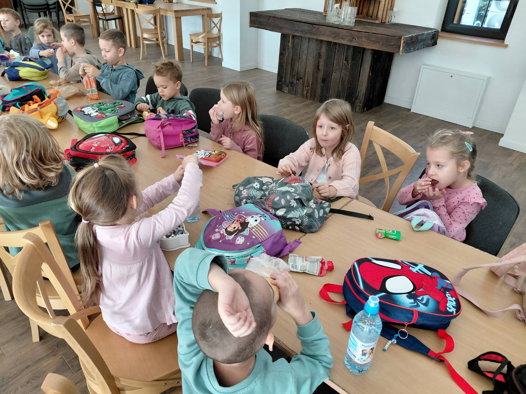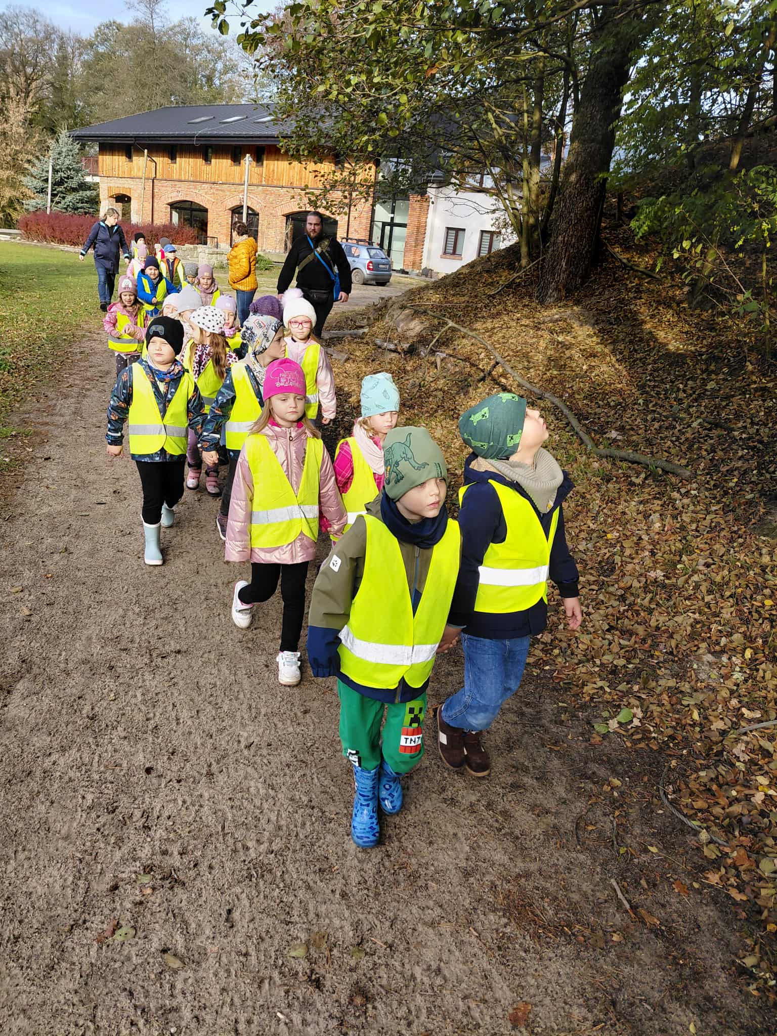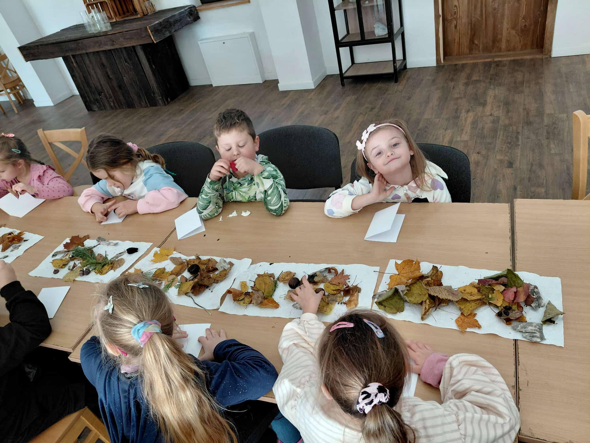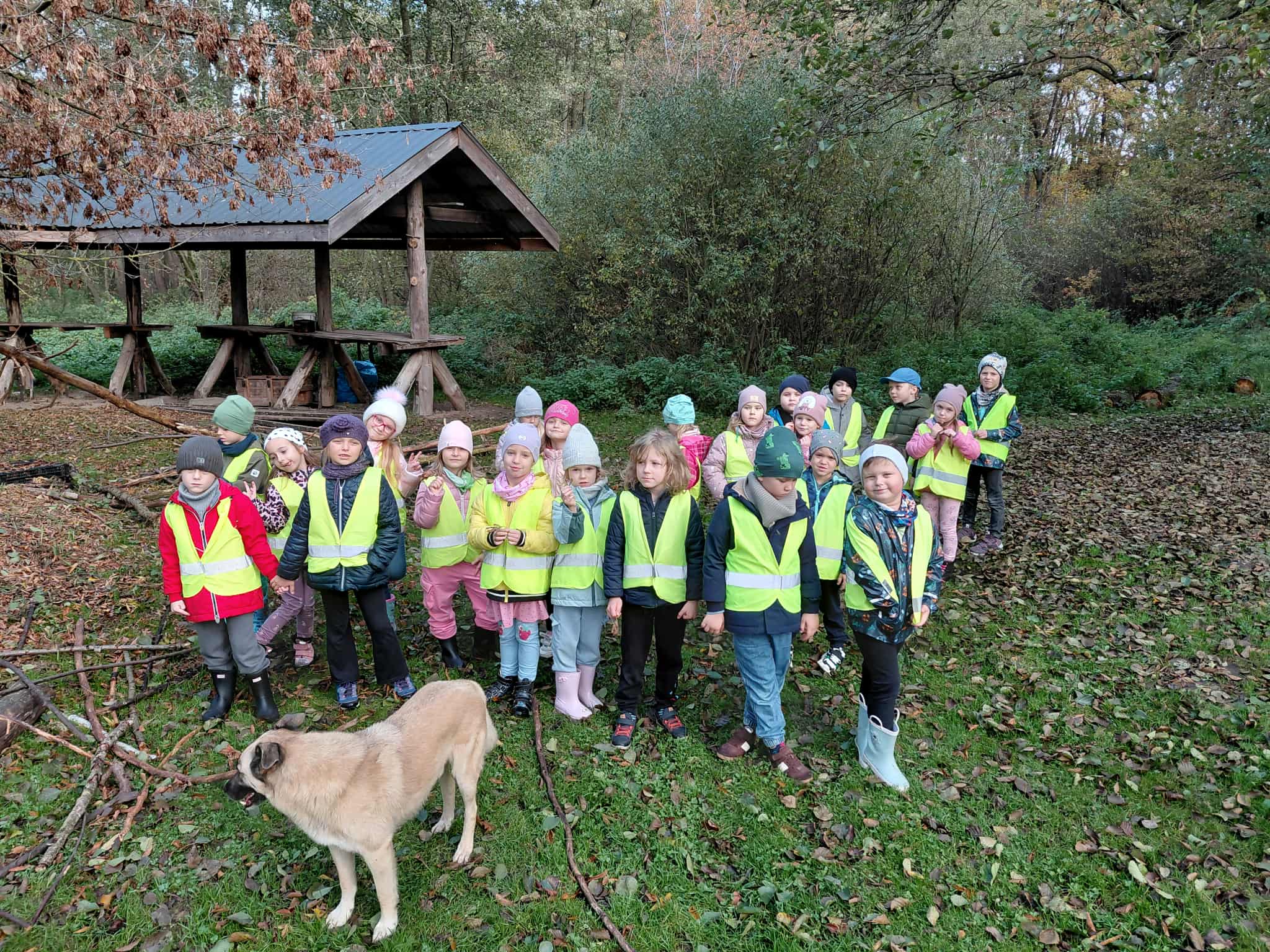 W październiku byliśmy na wycieczce w Krainie Dzikiej Kaczki. Dzieci miały możliwość obcowania z przepiękną przyrodą, całą grupą wybraliśmy się na spacer z przewodnikiem po lesie w celu odkrywania i poznawania piękna natury. W między czasie była również chwila na zabawę i podziwianie zwierząt domowych. Dzieci były zachwycone pięknymi widokami otaczającymi ośrodek. Podczas edukacyjnego spaceru po lesie towarzyszyły nam pieski które były bardzo przyjazne i pełne chęci do zabawy. Dzieci brały również udział w warsztatach podczas których robiły własne zielniki. Nie mogło również zabraknąć chwili odpoczynku podczas pikniku.