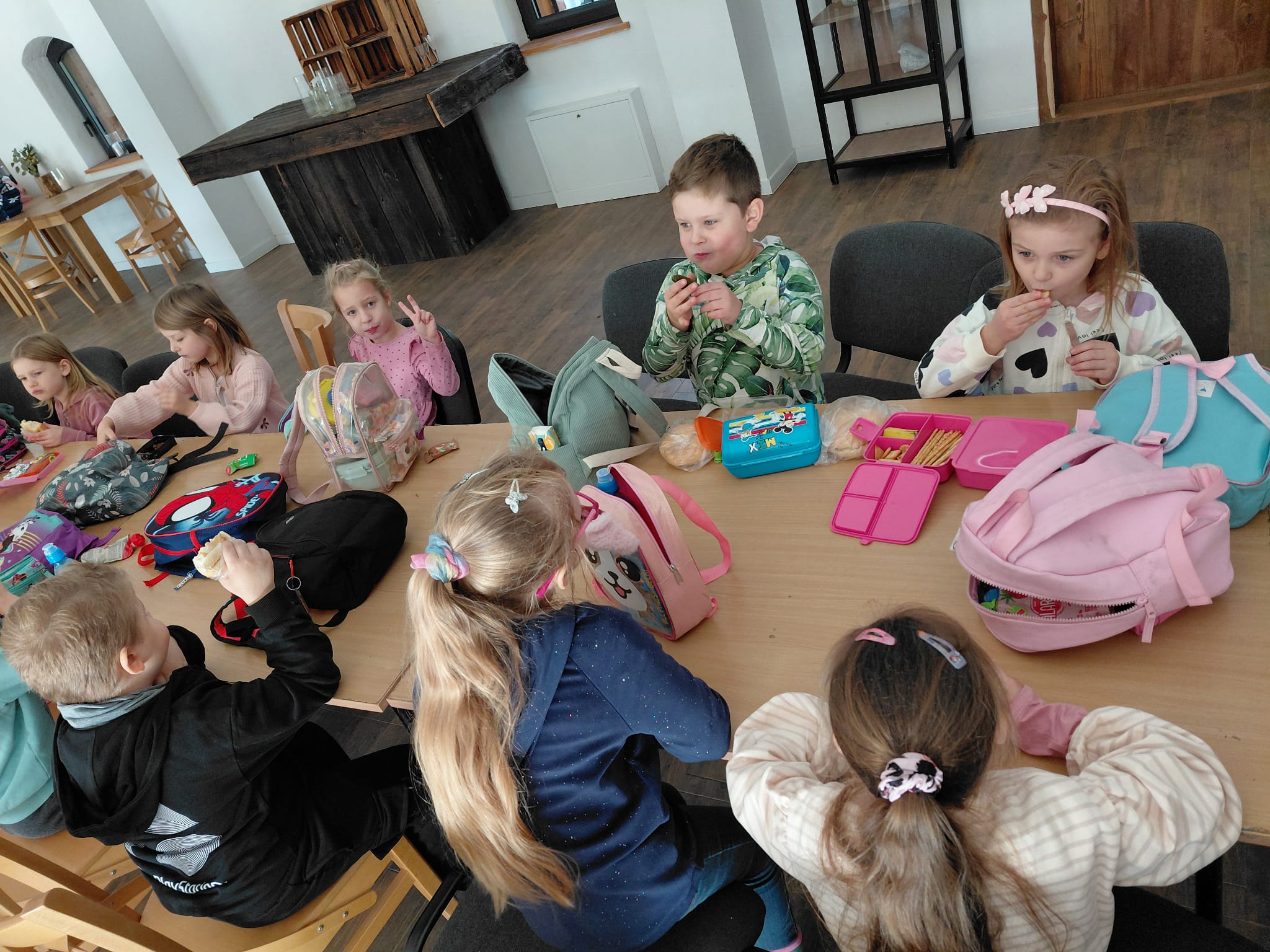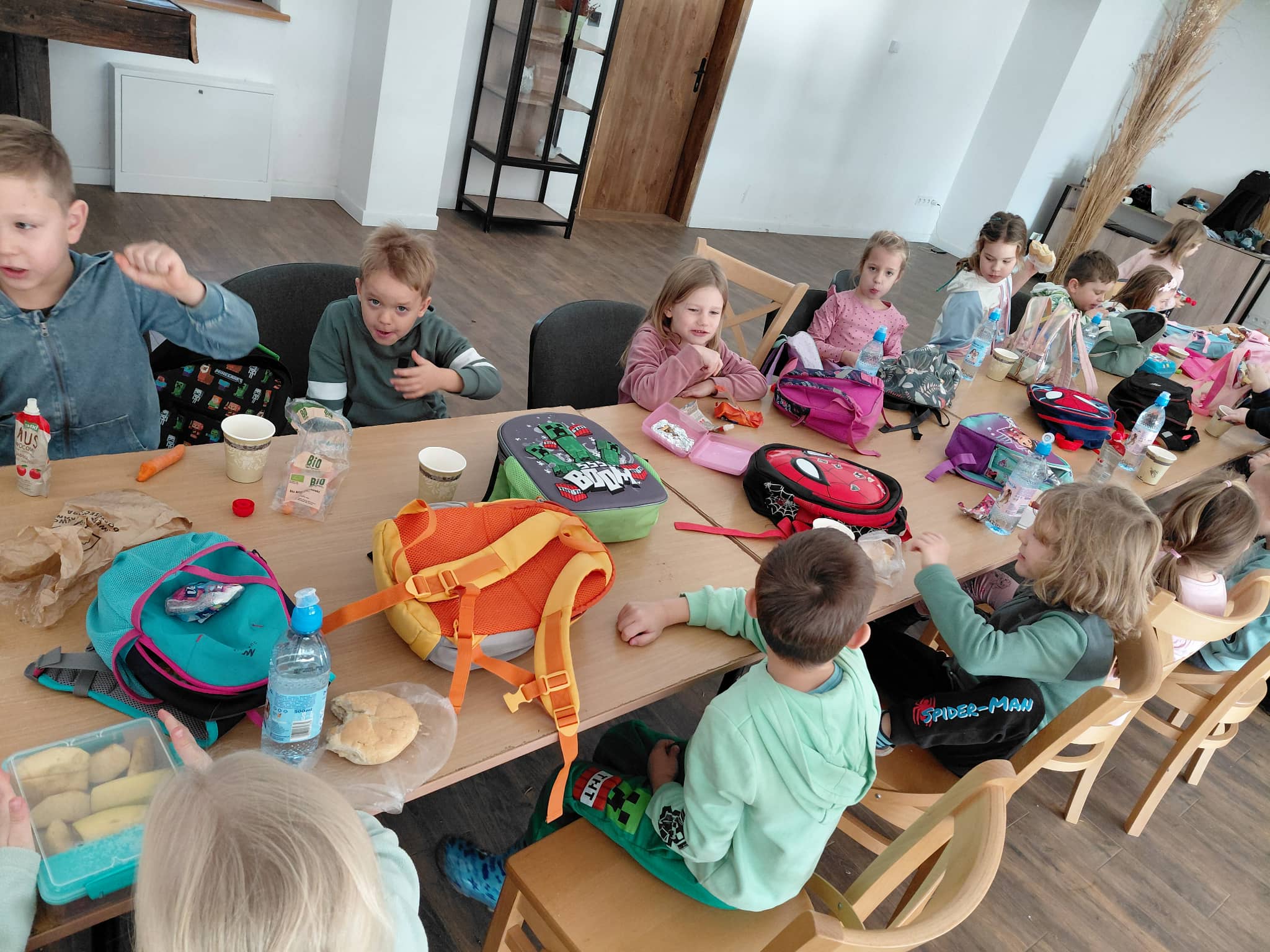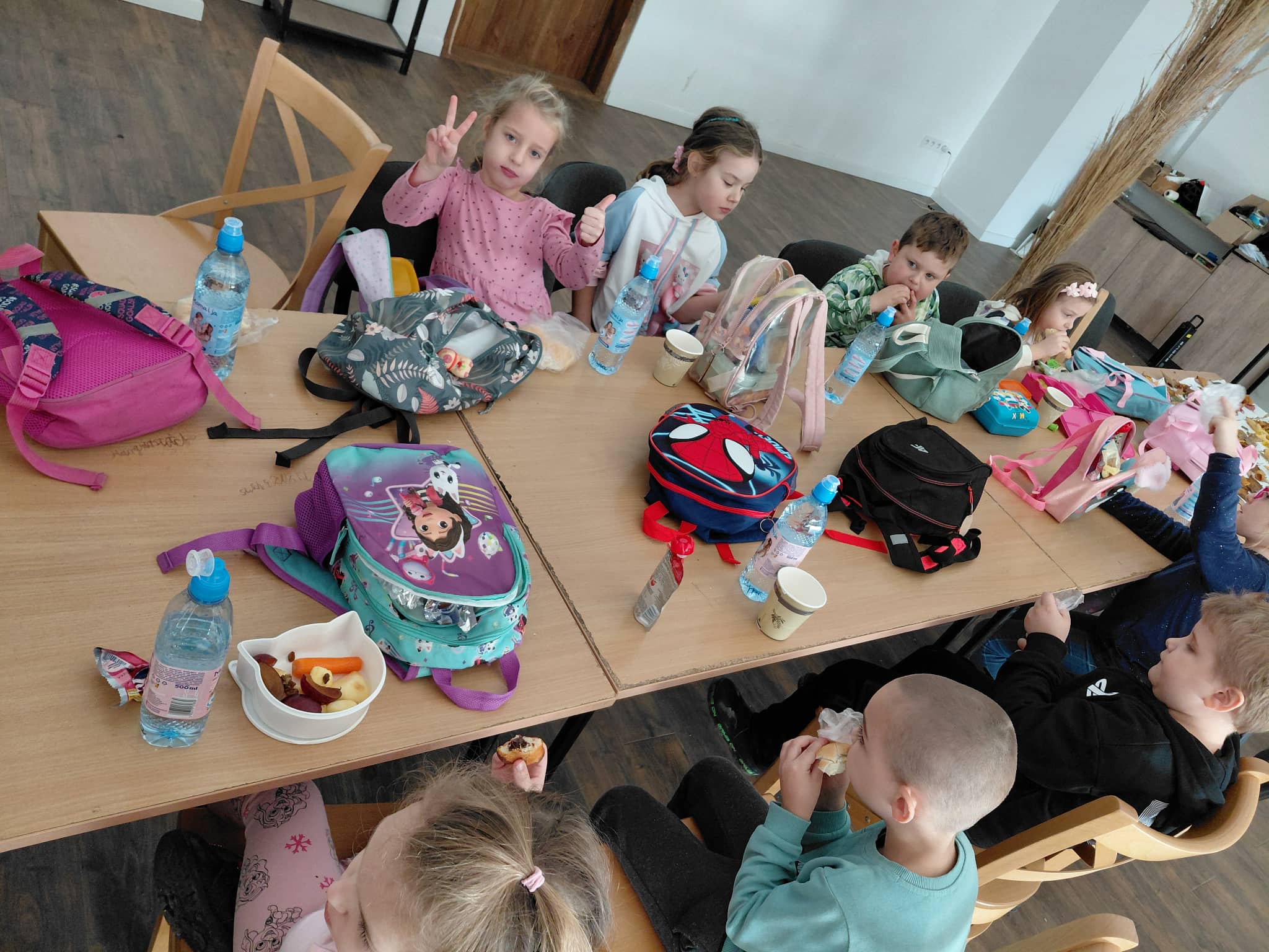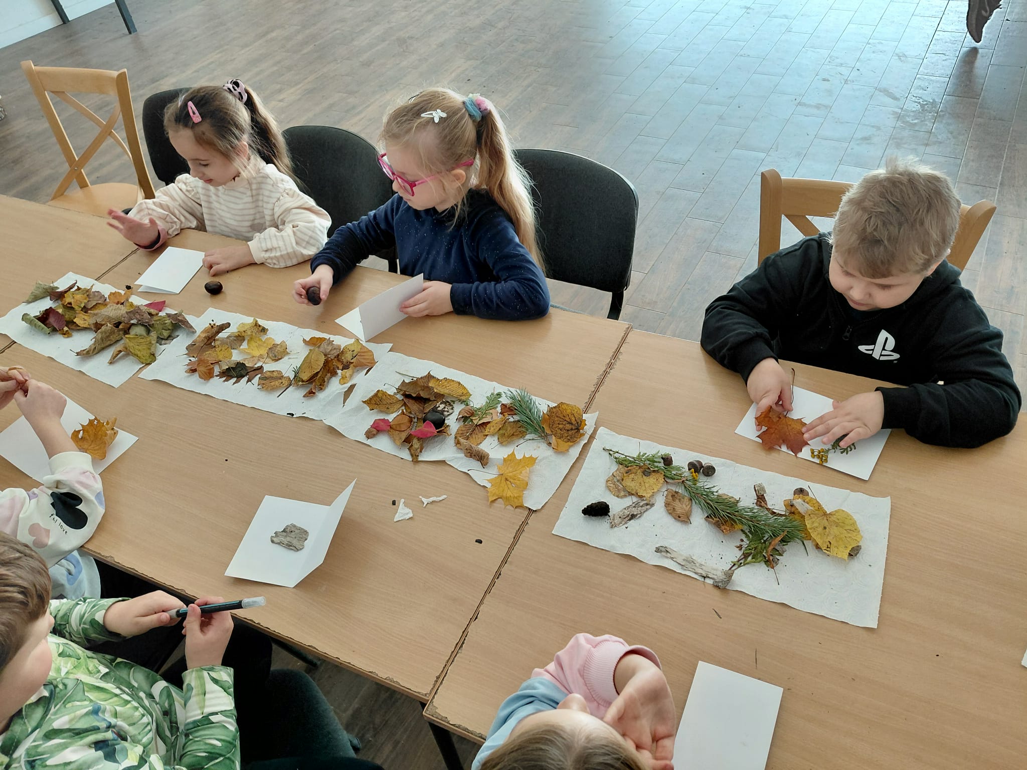 W październiku byliśmy na wycieczce w Krainie Dzikiej Kaczki. Dzieci miały możliwość obcowania z przepiękną przyrodą, całą grupą wybraliśmy się na spacer z przewodnikiem po lesie w celu odkrywania i poznawania piękna natury. W między czasie była również chwila na zabawę i podziwianie zwierząt domowych. Dzieci były zachwycone pięknymi widokami otaczającymi ośrodek. Podczas edukacyjnego spaceru po lesie towarzyszyły nam pieski które były bardzo przyjazne i pełne chęci do zabawy. Dzieci brały również udział w warsztatach podczas których robiły własne zielniki. Nie mogło również zabraknąć chwili odpoczynku podczas pikniku.