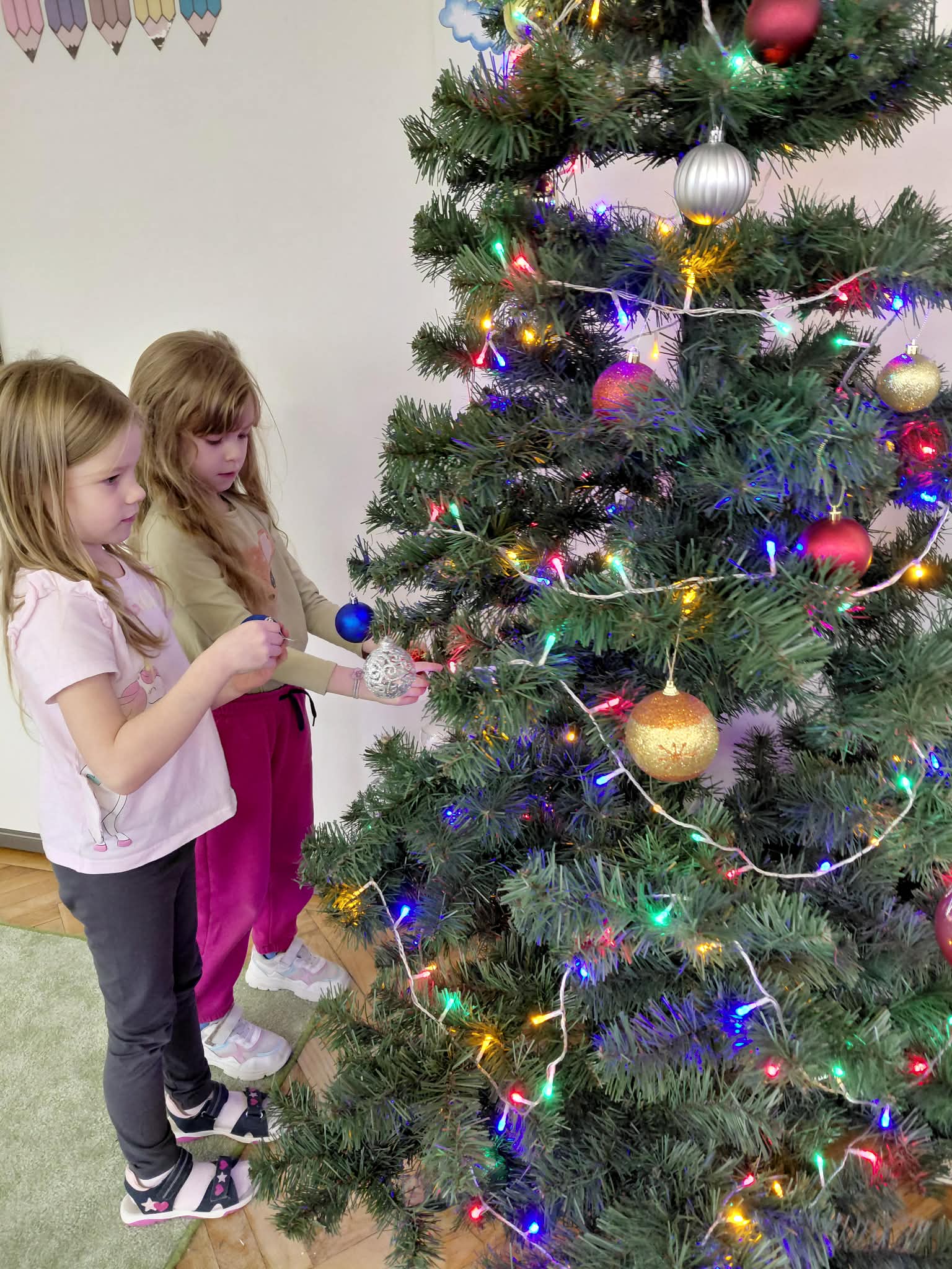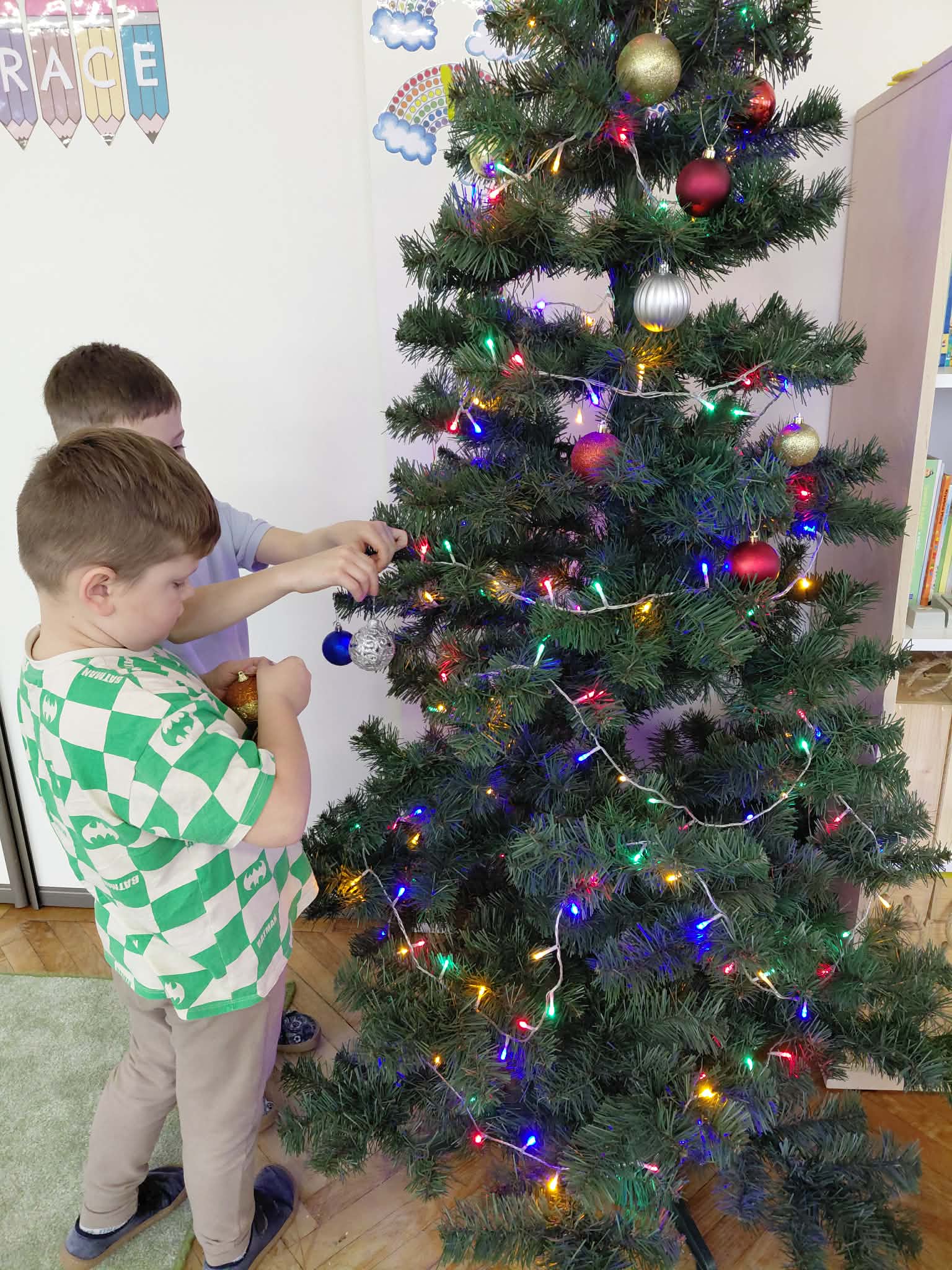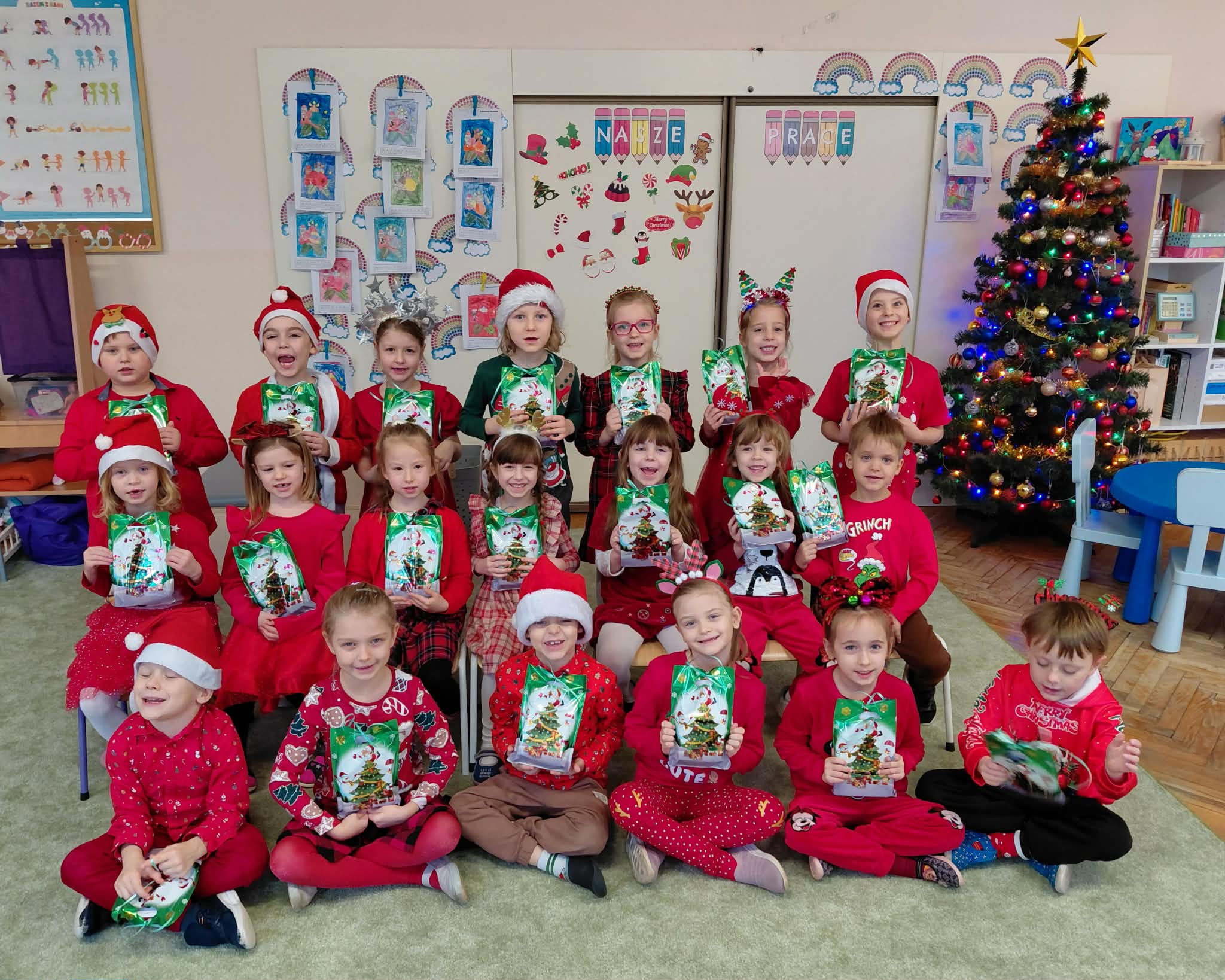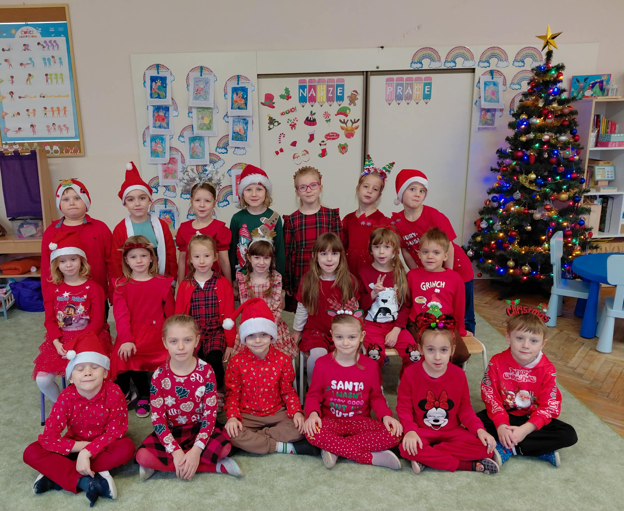 W naszej grupie oraz w całym przedszkolu świętowaliśmy MIKOŁAJKI. Wszystkie dzieci ubrały się na czerwono - mikołajkowo i wszystkie Panie również. Było bardzo świątecznie i bajkowo. Z okazji Mikołajek odbył się również pokaz baletowy podczas którego prezentowane były różne tańce, dzieci bardzo lubią te spotkania. Dzieci otrzymały również drobne upominki z których bardzo się ucieszyły. A kilka dni wcześniej wspólnie ubieraliśmy naszą grupową choinkę. Święta tuż, tuż.