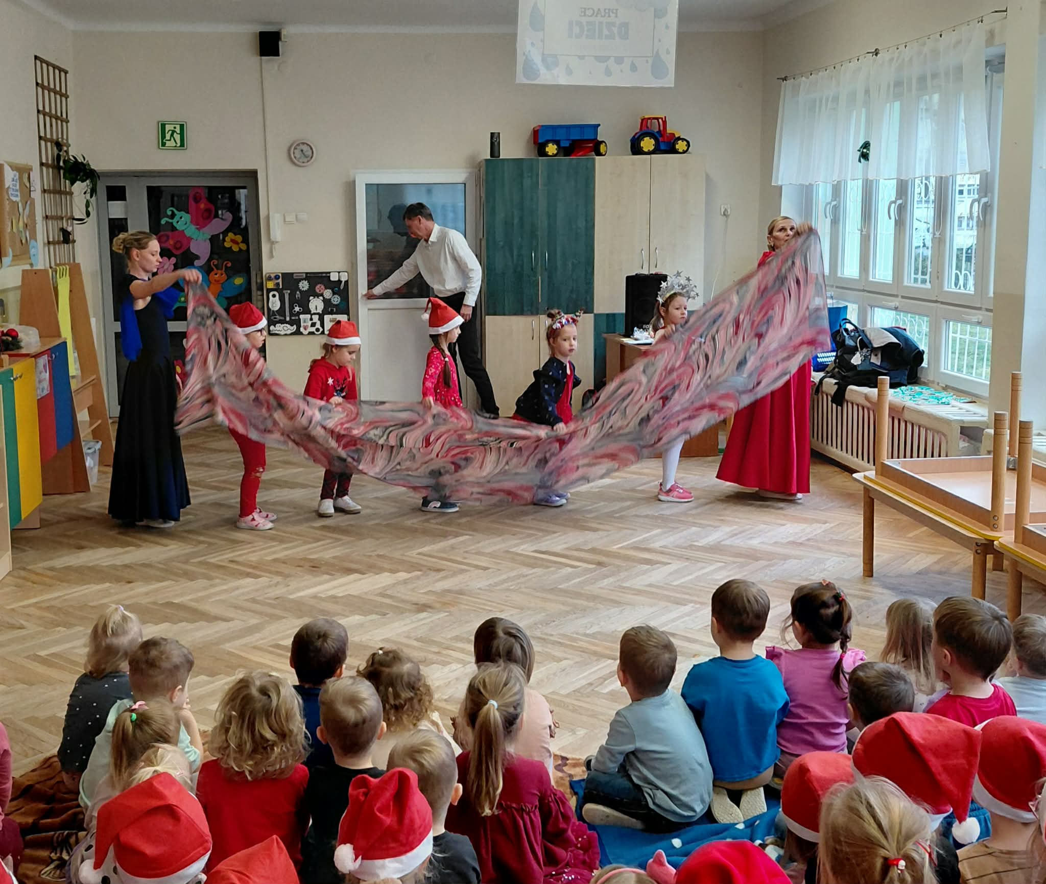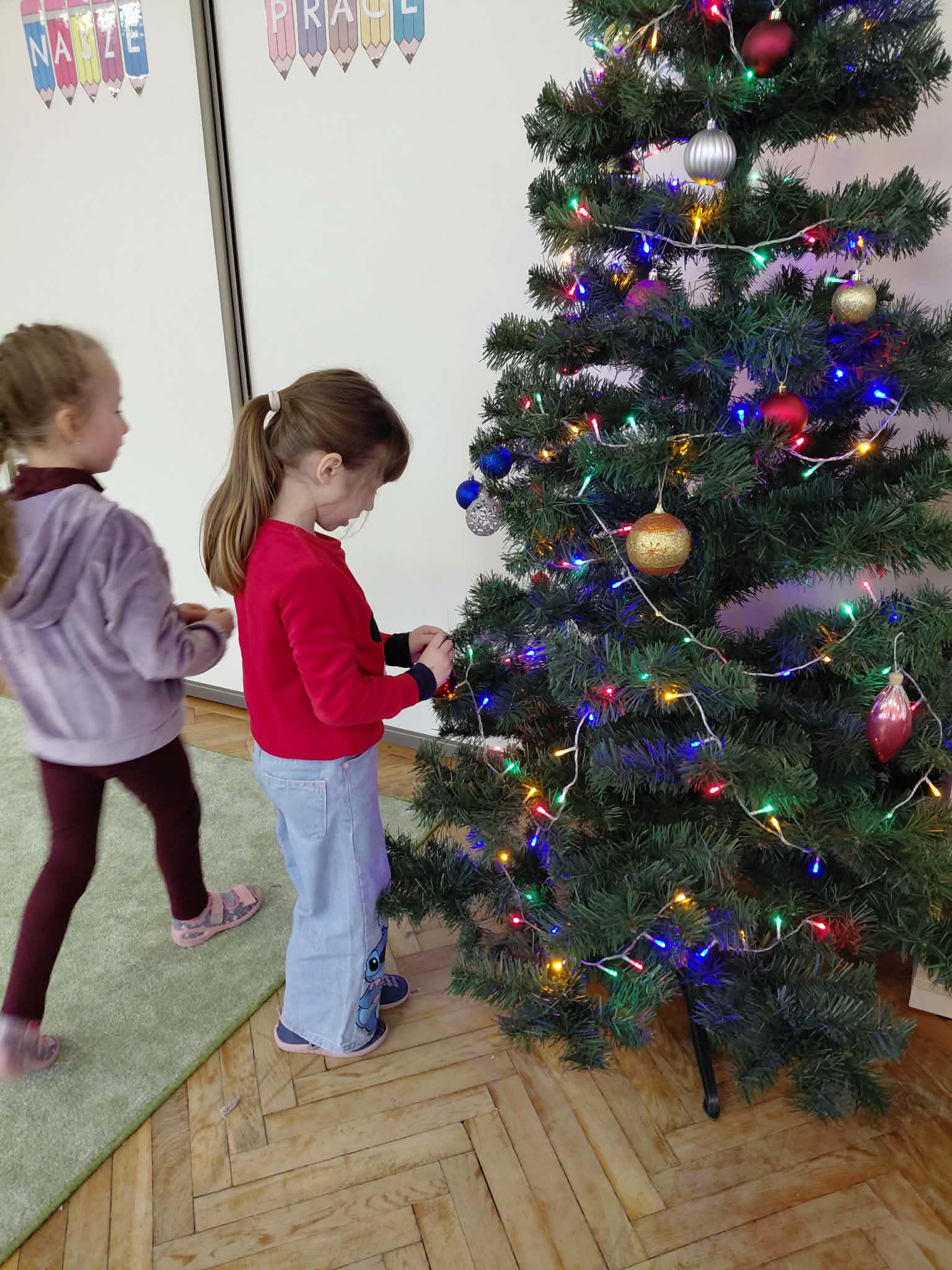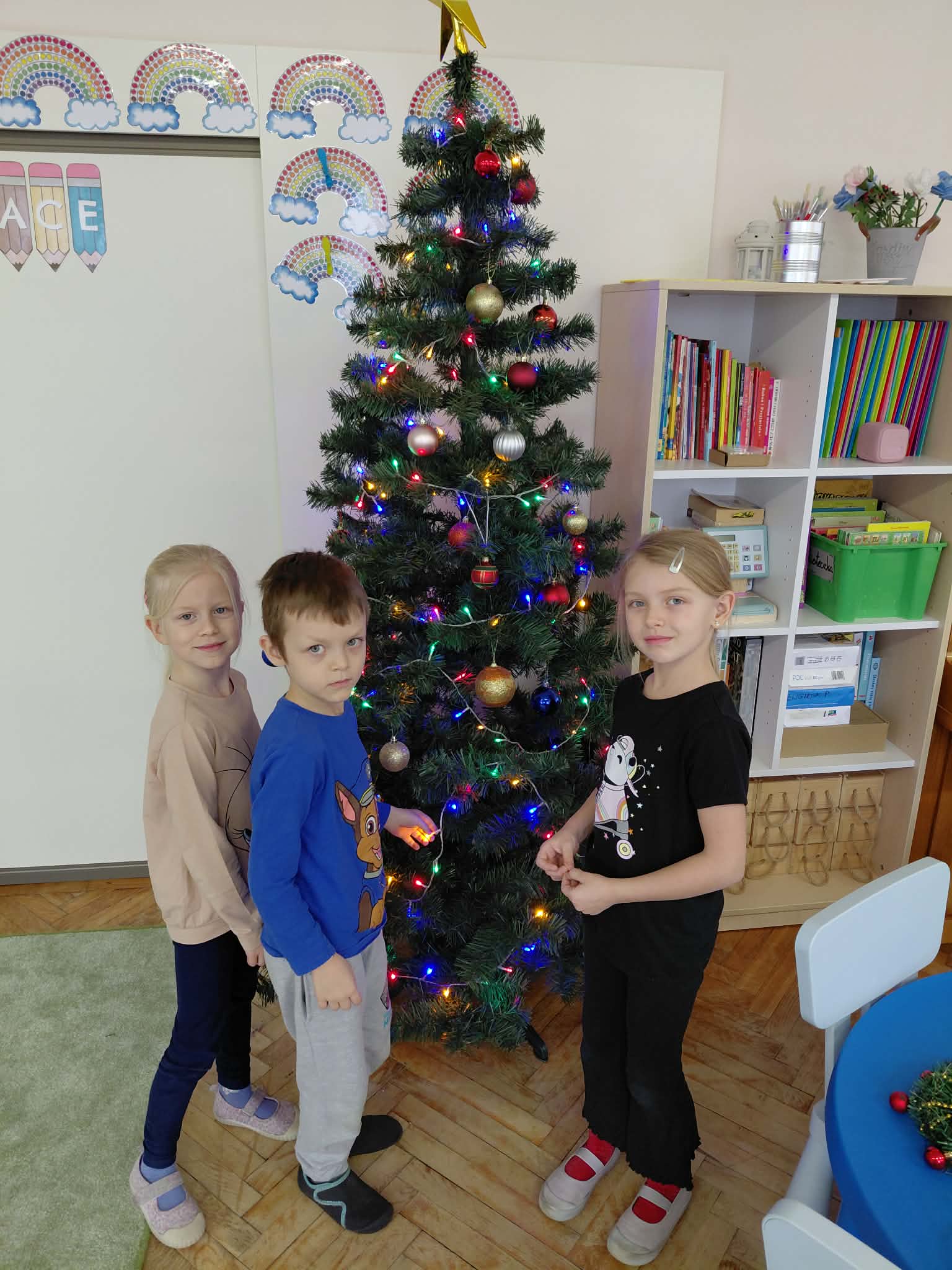 W naszej grupie oraz w całym przedszkolu świętowaliśmy MIKOŁAJKI. Wszystkie dzieci ubrały się na czerwono - mikołajkowo i wszystkie Panie również. Było bardzo świątecznie i bajkowo. Z okazji Mikołajek odbył się również pokaz baletowy podczas którego prezentowane były różne tańce, dzieci bardzo lubią te spotkania. Dzieci otrzymały również drobne upominki z których bardzo się ucieszyły. A kilka dni wcześniej wspólnie ubieraliśmy naszą grupową choinkę. Święta tuż, tuż.