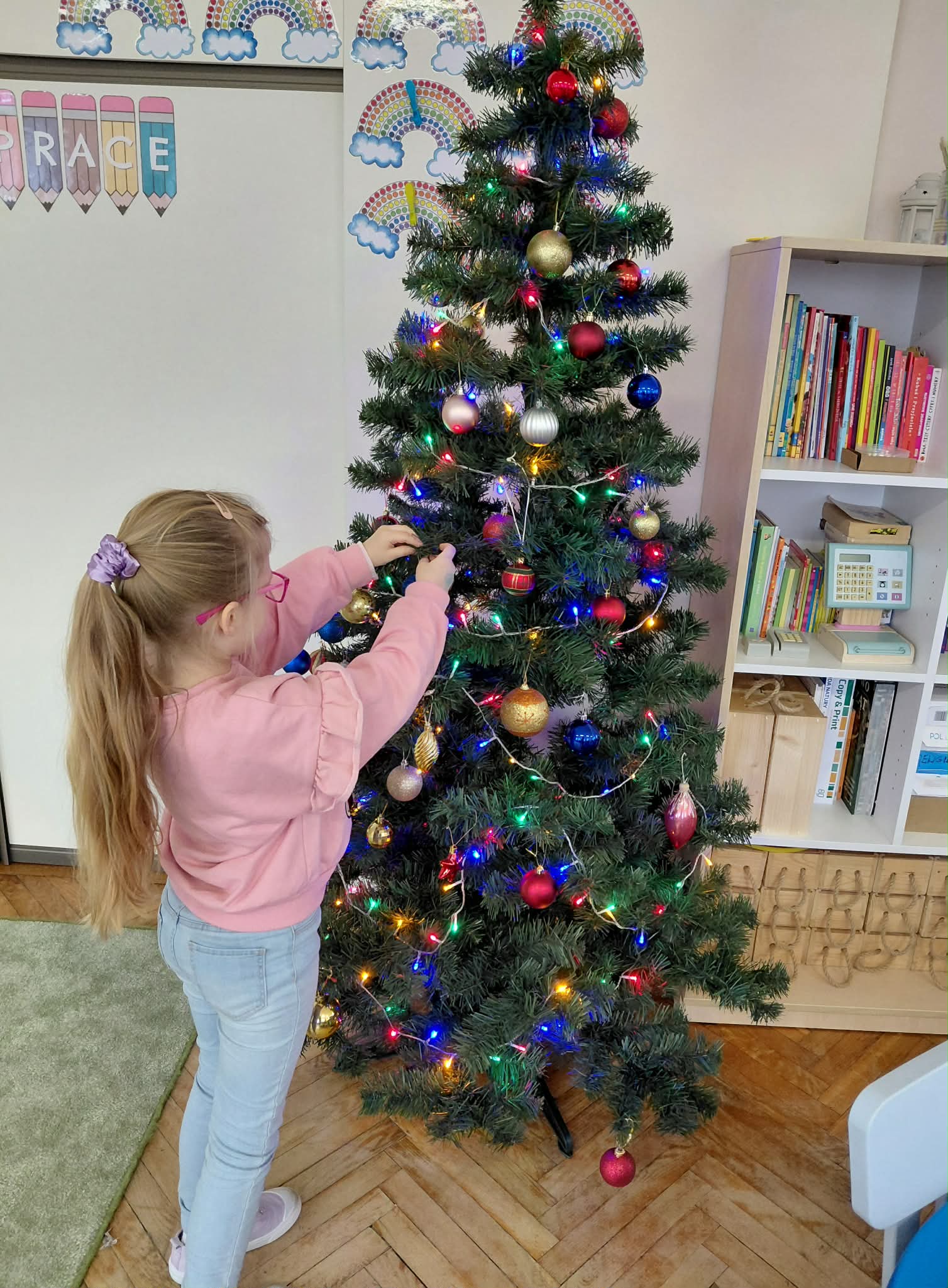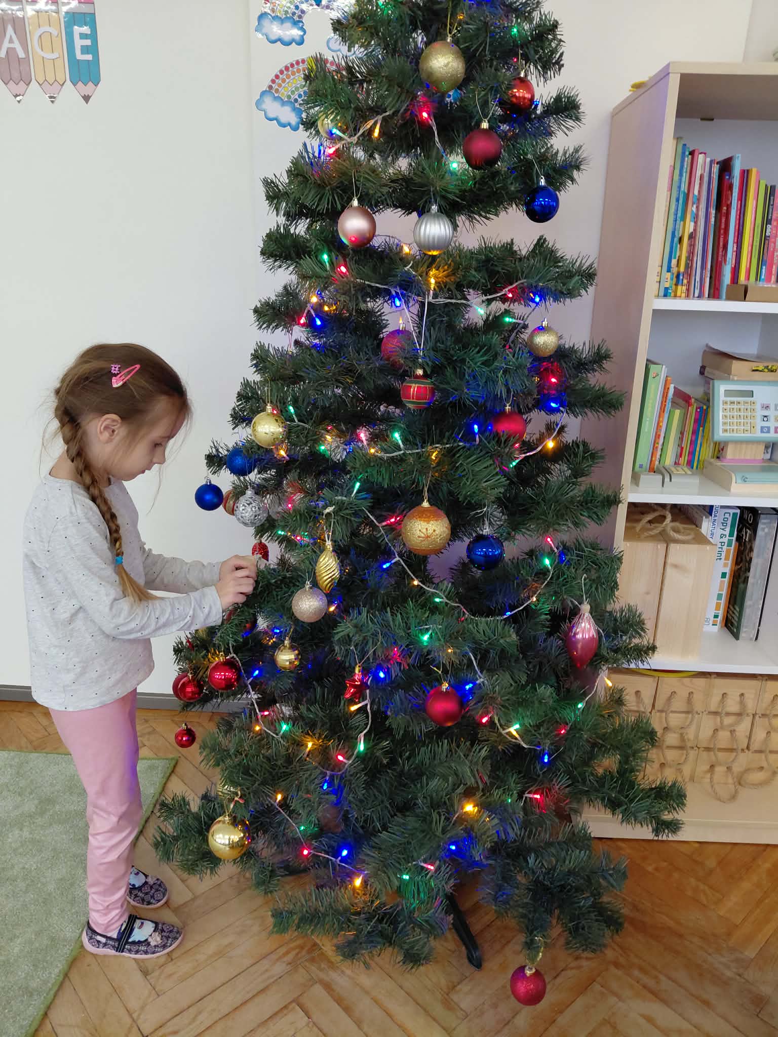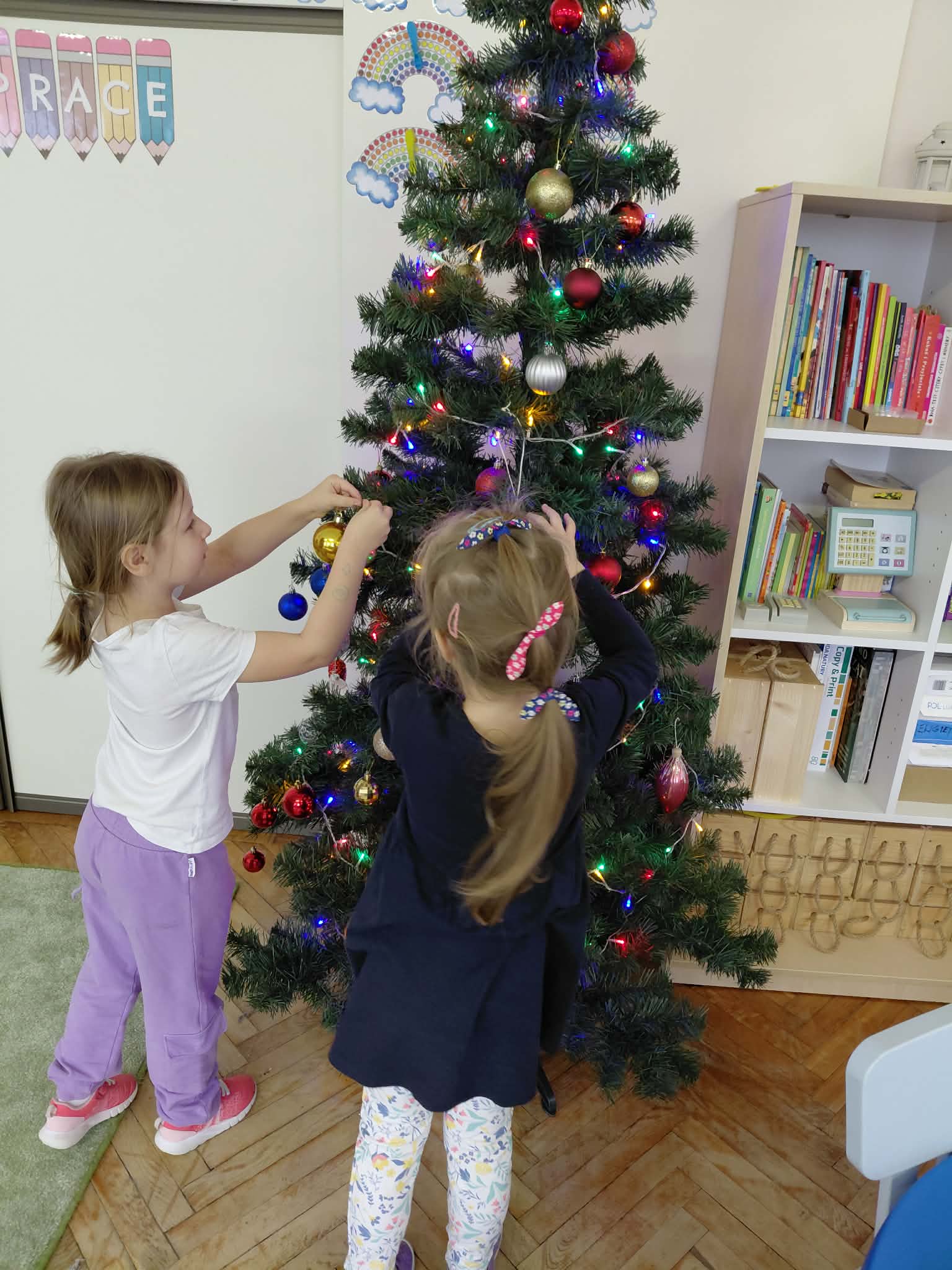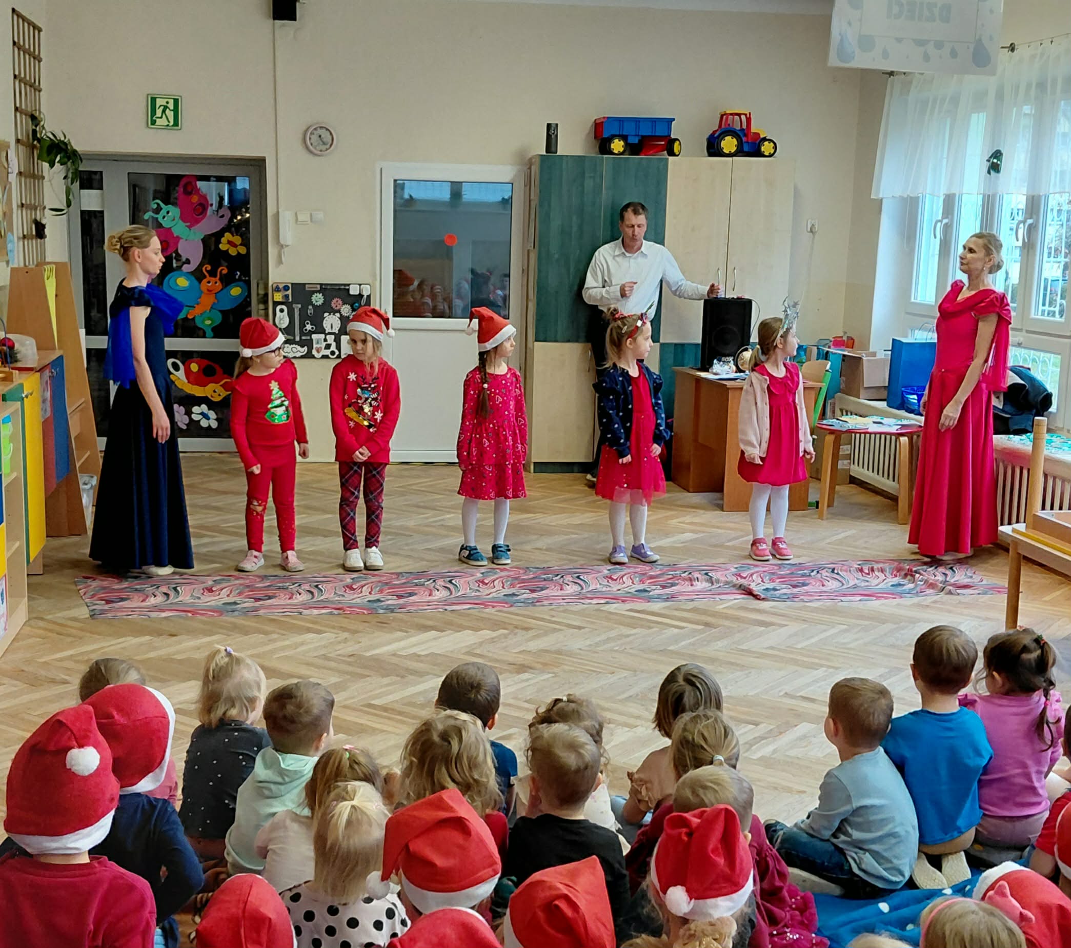 W naszej grupie oraz w całym przedszkolu świętowaliśmy MIKOŁAJKI. Wszystkie dzieci ubrały się na czerwono - mikołajkowo i wszystkie Panie również. Było bardzo świątecznie i bajkowo. Z okazji Mikołajek odbył się również pokaz baletowy podczas którego prezentowane były różne tańce, dzieci bardzo lubią te spotkania. Dzieci otrzymały również drobne upominki z których bardzo się ucieszyły. A kilka dni wcześniej wspólnie ubieraliśmy naszą grupową choinkę. Święta tuż, tuż.