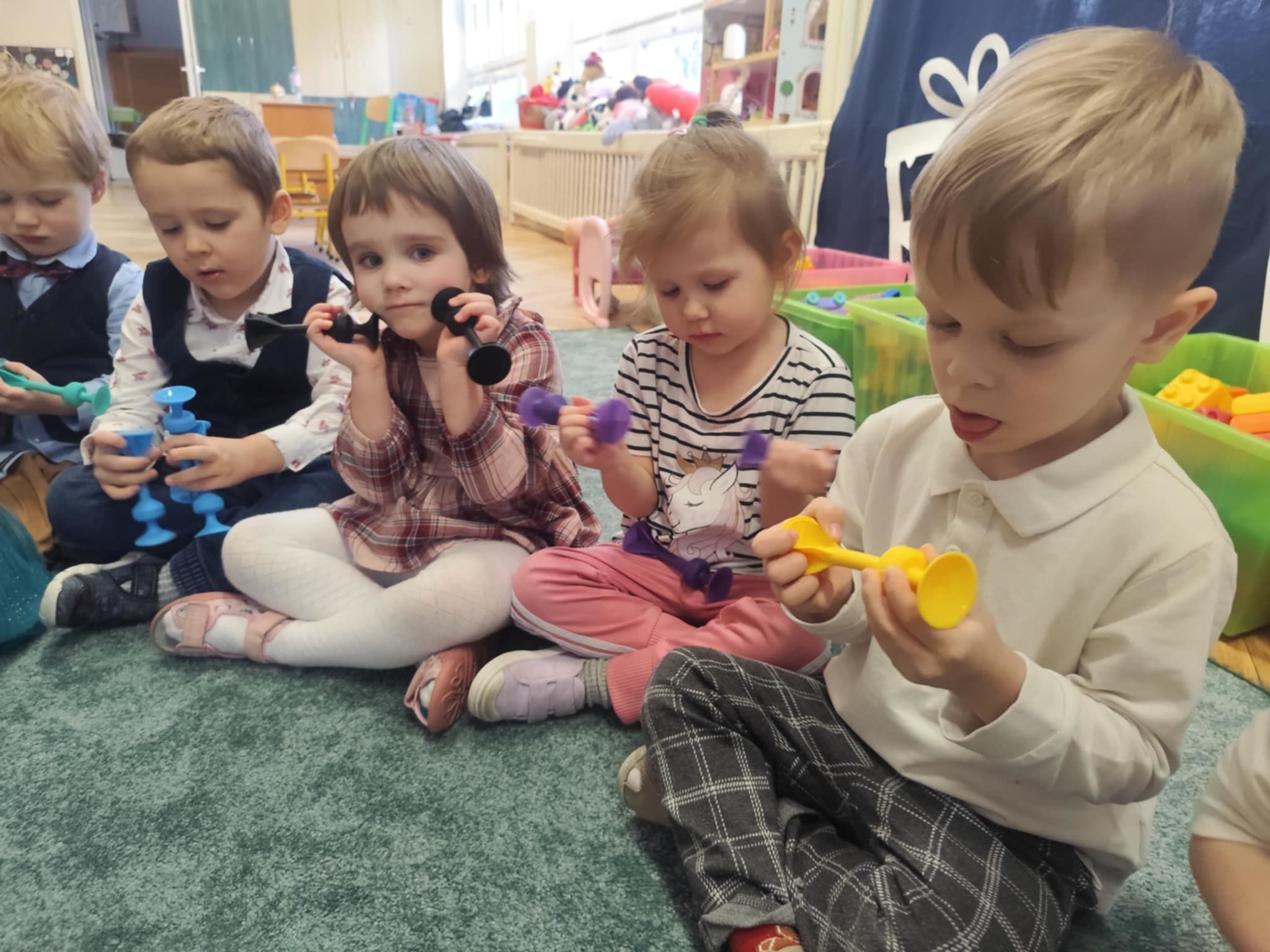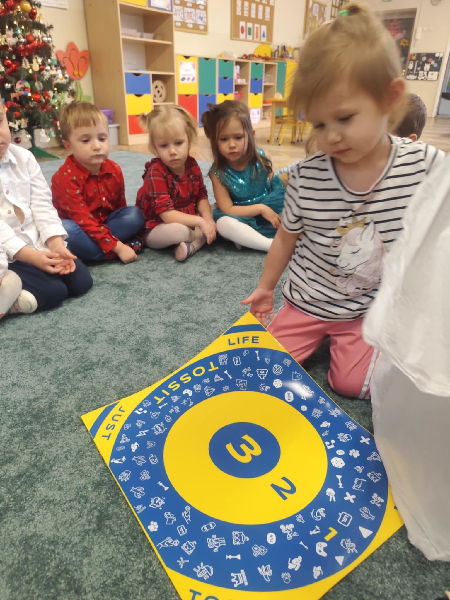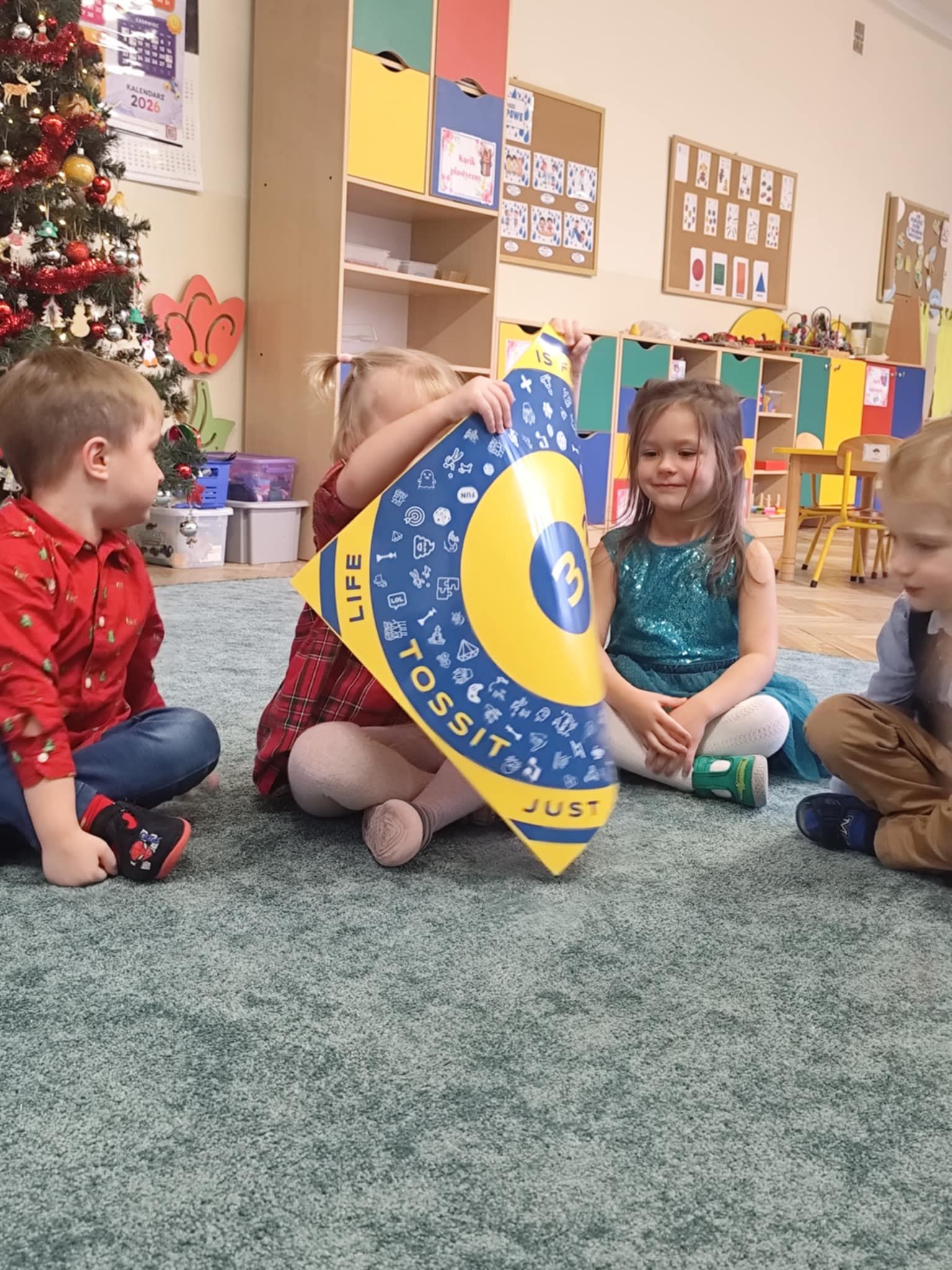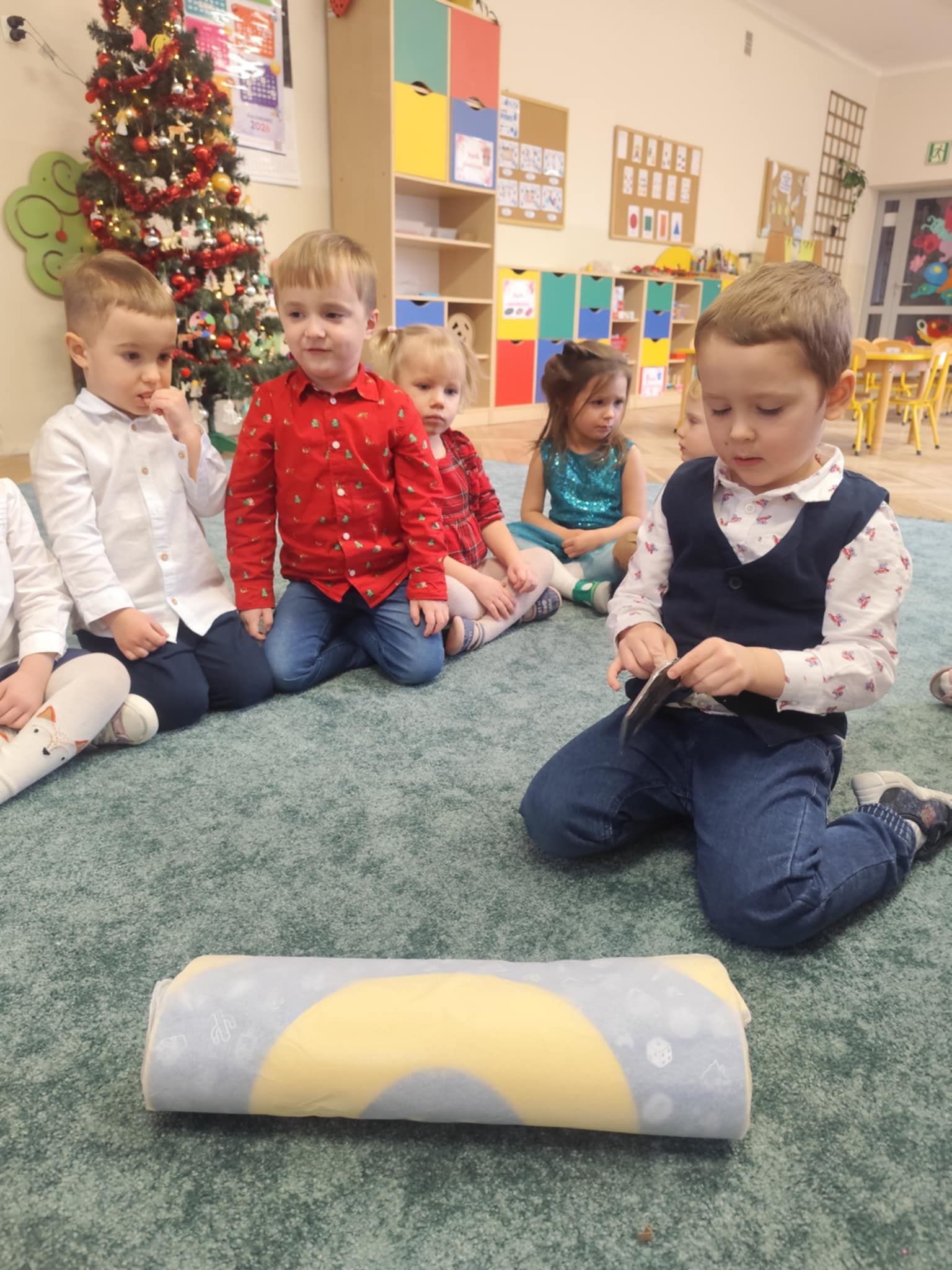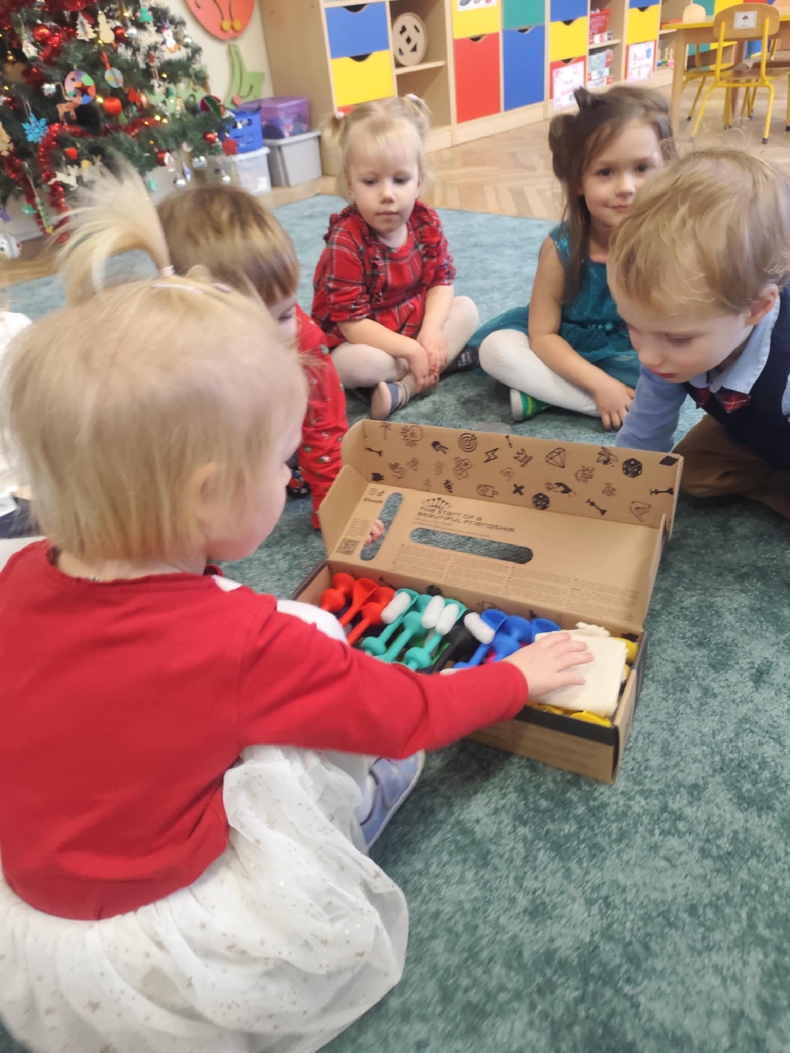 Wigilia Grupowa to już tradycja naszego Przedszkola Miejskiego nr 107. Uroczyście ubrane dzieci miały okazję uczestniczyć w Obiedzie Świątecznym. Pani Dyrektor Małgorzata Augustyniak wraz z ks. Łukaszem Tarnowskim złożyli wszystkim życzenia świąteczne i podzielili się opłatkiem. W tle słychać było instrumentalną wersję pięknych, wzruszających kolęd, dzieci kosztowały potraw wigilijnych, a święty Mikołaj niezauważony zakradł się pod choinkę i wrzucił upominek. Prezent okazał się dla wszystkich dzieci z grupy I, więc wspólnymi siłami otworzyły go i dokładnie obejrzały. Otrzymaliśmy silikonowe rzutki! Po przerwie świąteczno-noworocznej dzieci będą ćwiczył celność, cierpliwość w oczekiwaniu na swoją kolej oraz naprzemienność w zabawach. Dziękujemy za prezent Święty Mikołaju!