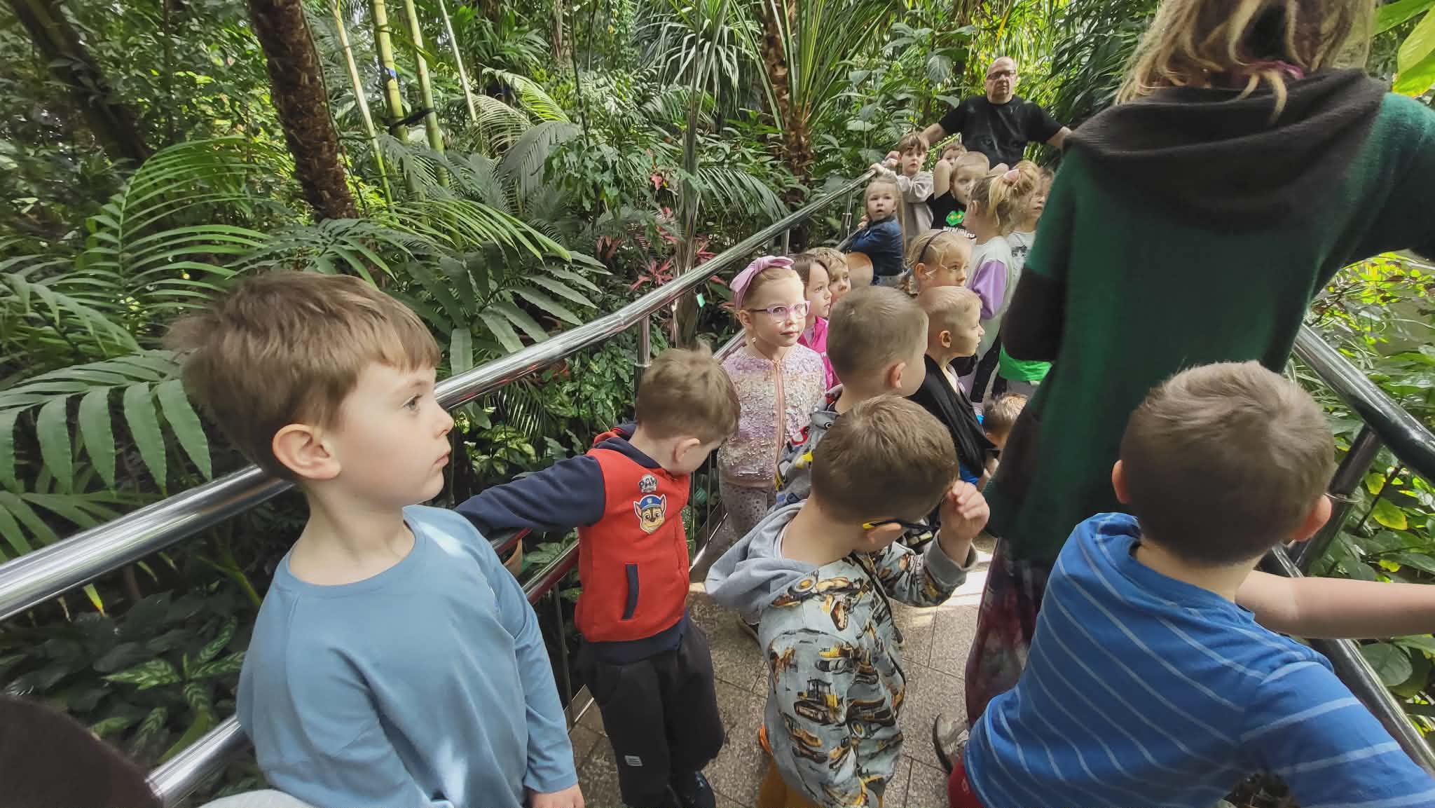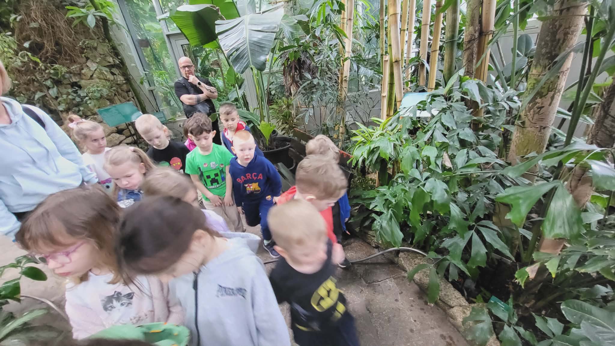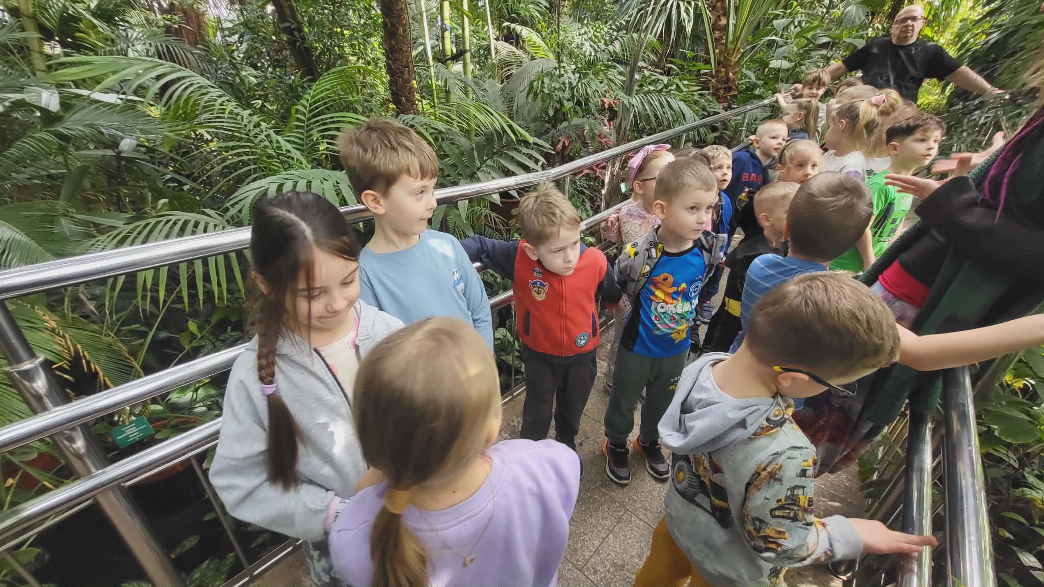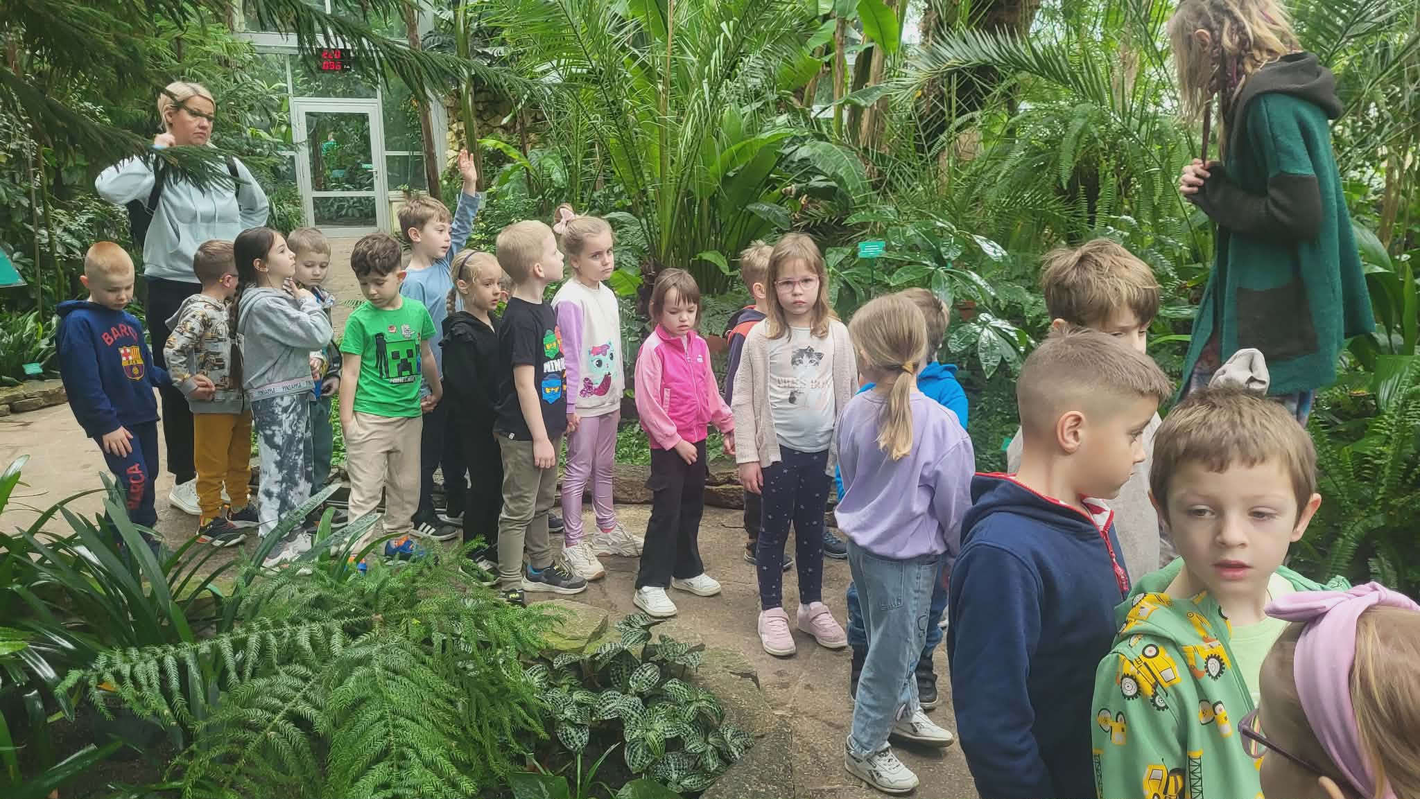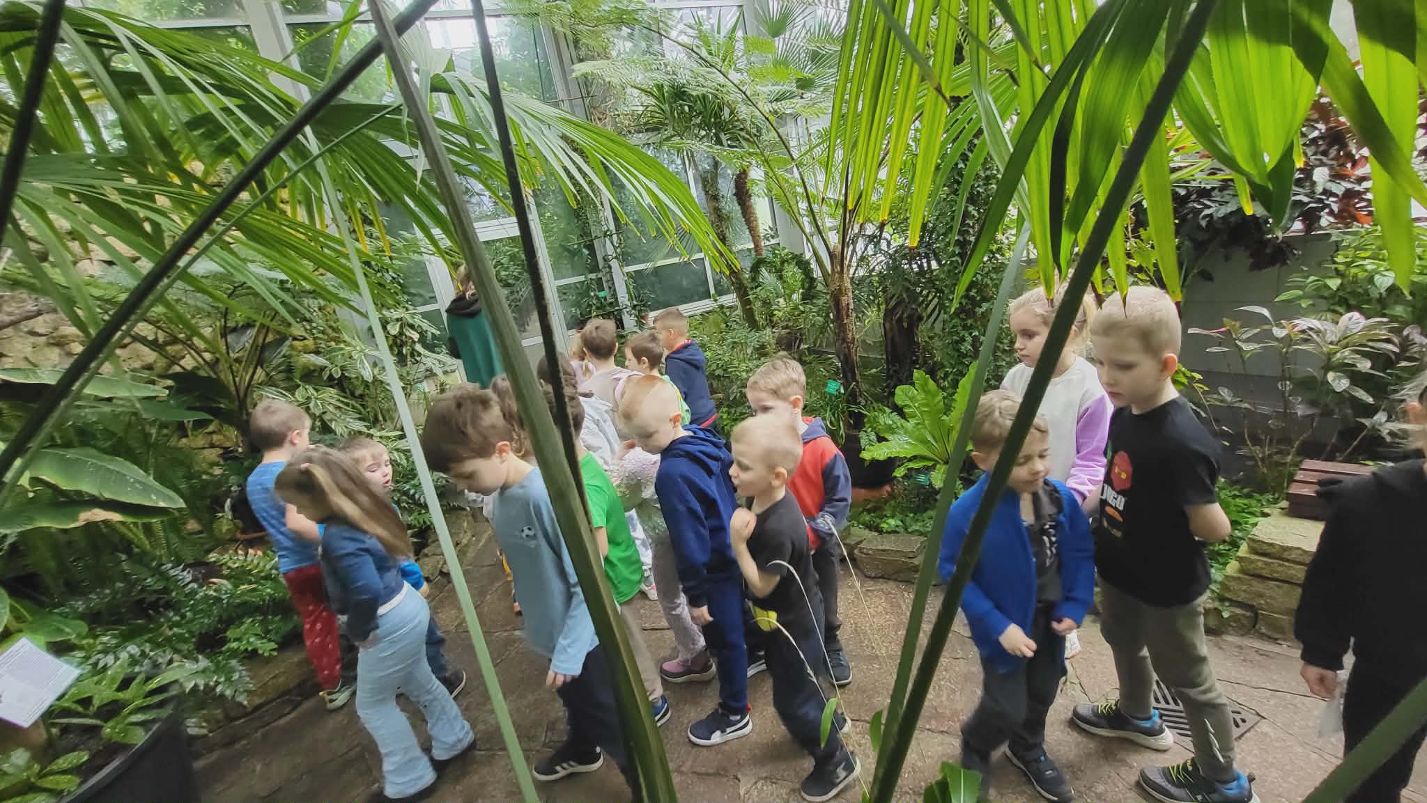 Dzisiejszy dzień był dla nas pełen niezwykłych wrażeń! Wybraliśmy się na wycieczkę do Palmiarni, gdzie na chwilę przenieśliśmy się do prawdziwej dżungli. Dzieci z zapartym tchem podziwiały: niezwykłą roślinność: od ogromnych palm i bananowców po fascynujące rośliny owadożerne oraz kaktusy o dziwnych kształtach, tropikalny klimat: przedszkolaki mogły na własnej skórze poczuć ciepło i wilgoć charakterystyczne dla lasu deszczowego.