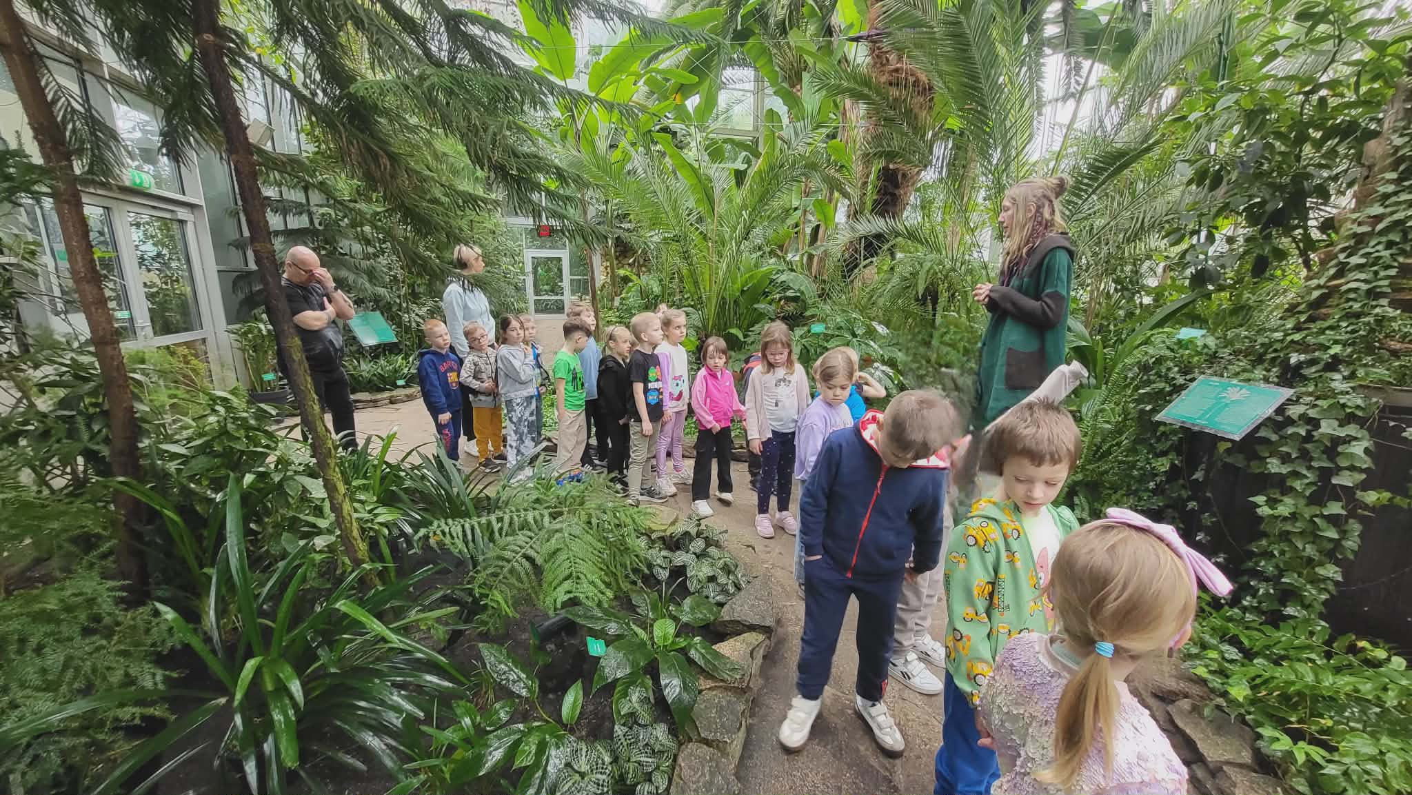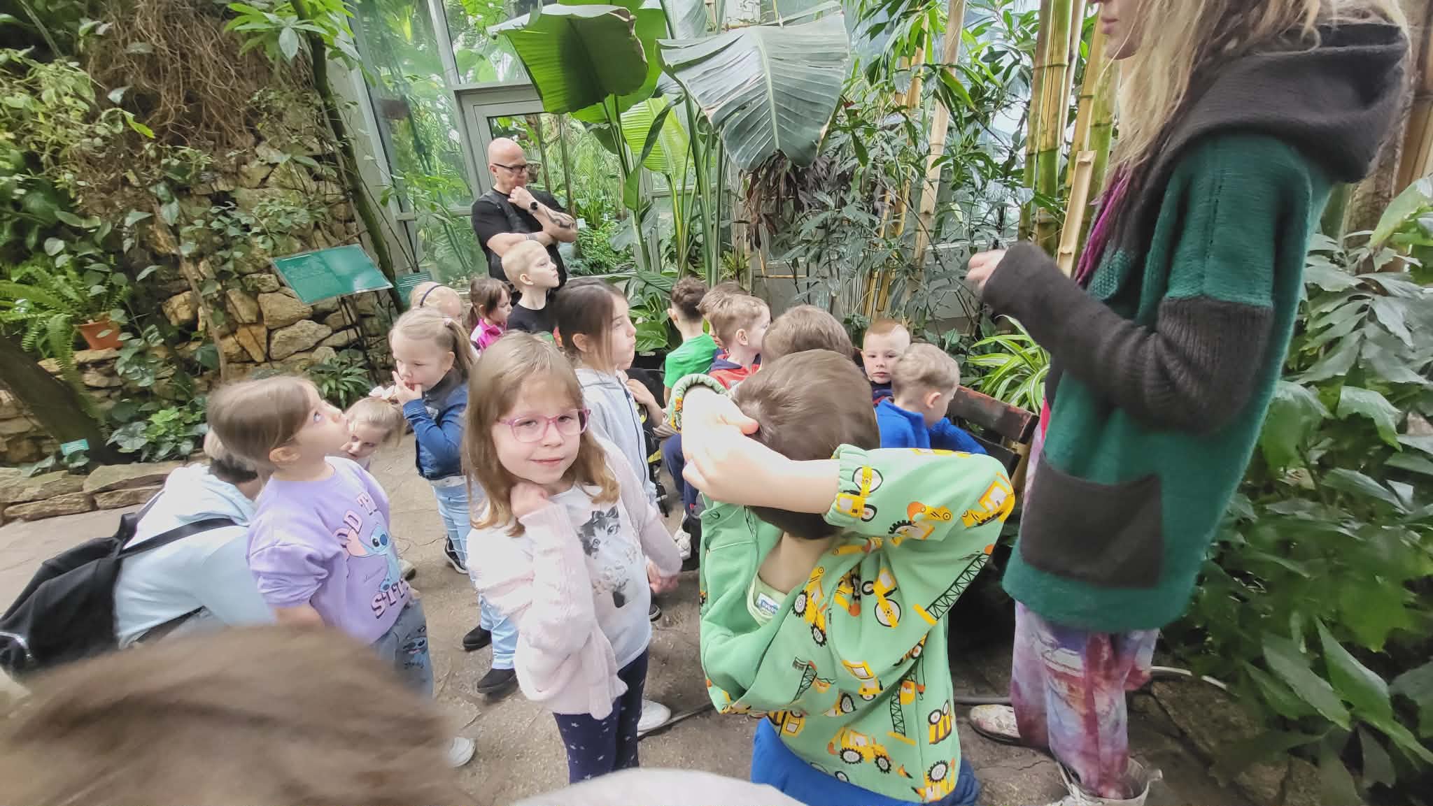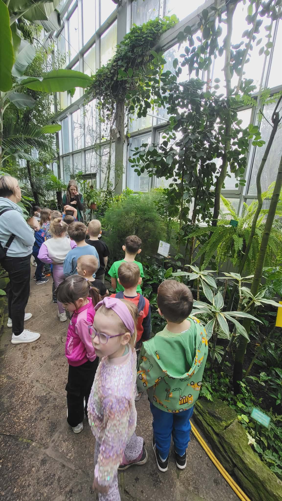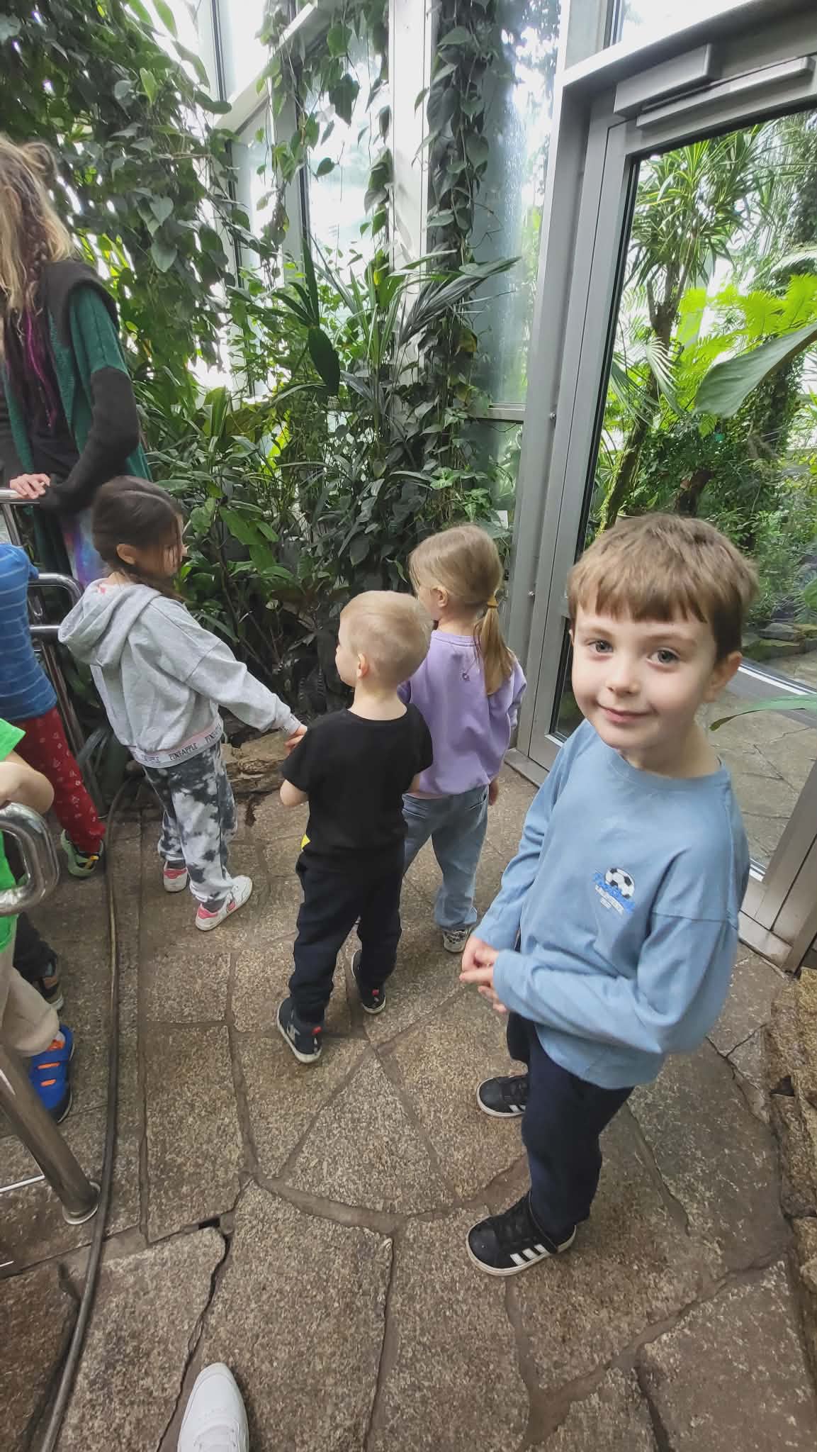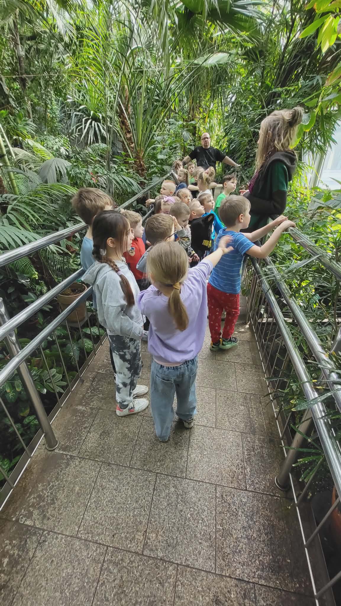 Dzisiejszy dzień był dla nas pełen niezwykłych wrażeń! Wybraliśmy się na wycieczkę do Palmiarni, gdzie na chwilę przenieśliśmy się do prawdziwej dżungli. Dzieci z zapartym tchem podziwiały: niezwykłą roślinność: od ogromnych palm i bananowców po fascynujące rośliny owadożerne oraz kaktusy o dziwnych kształtach, tropikalny klimat: przedszkolaki mogły na własnej skórze poczuć ciepło i wilgoć charakterystyczne dla lasu deszczowego.