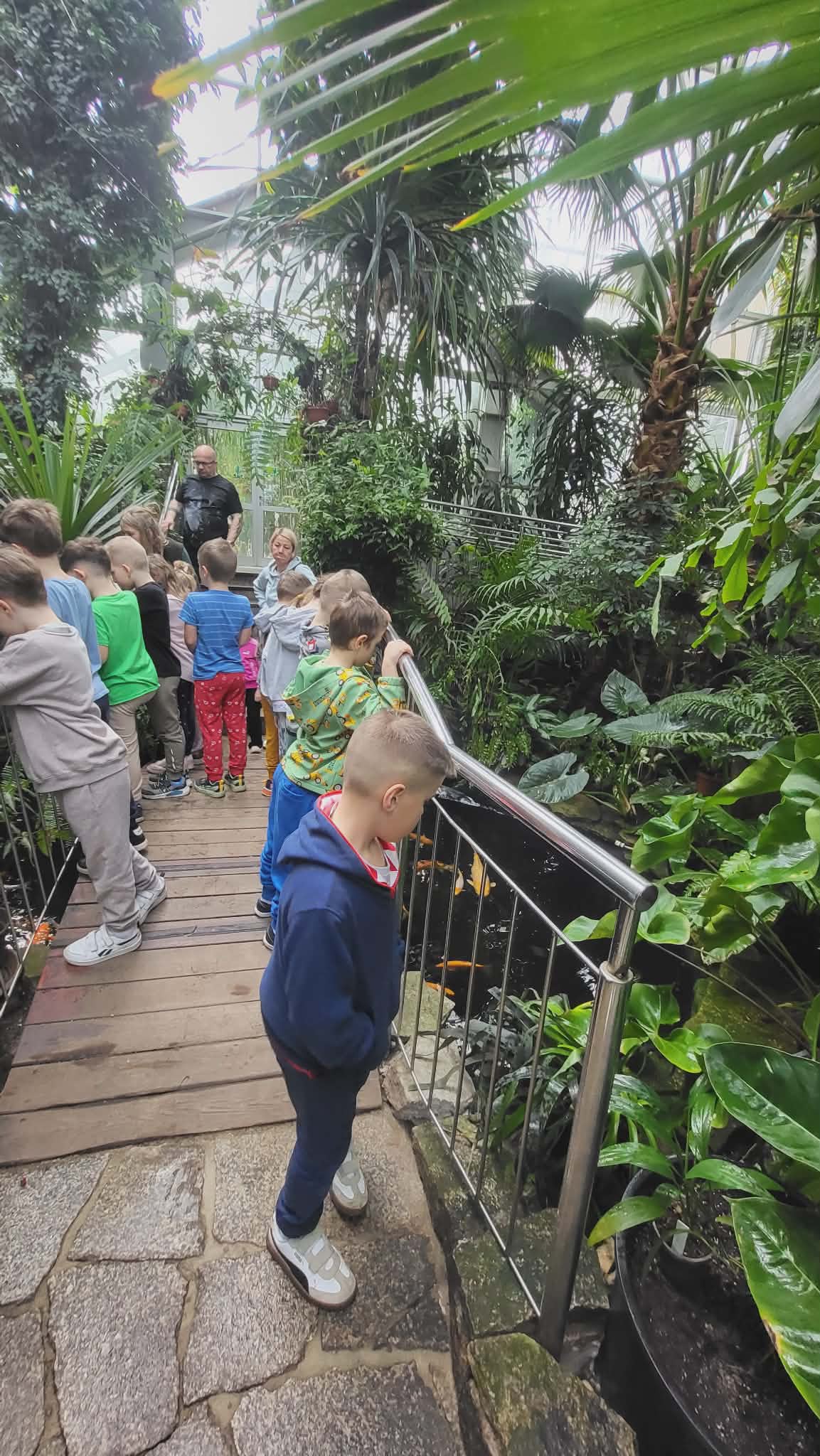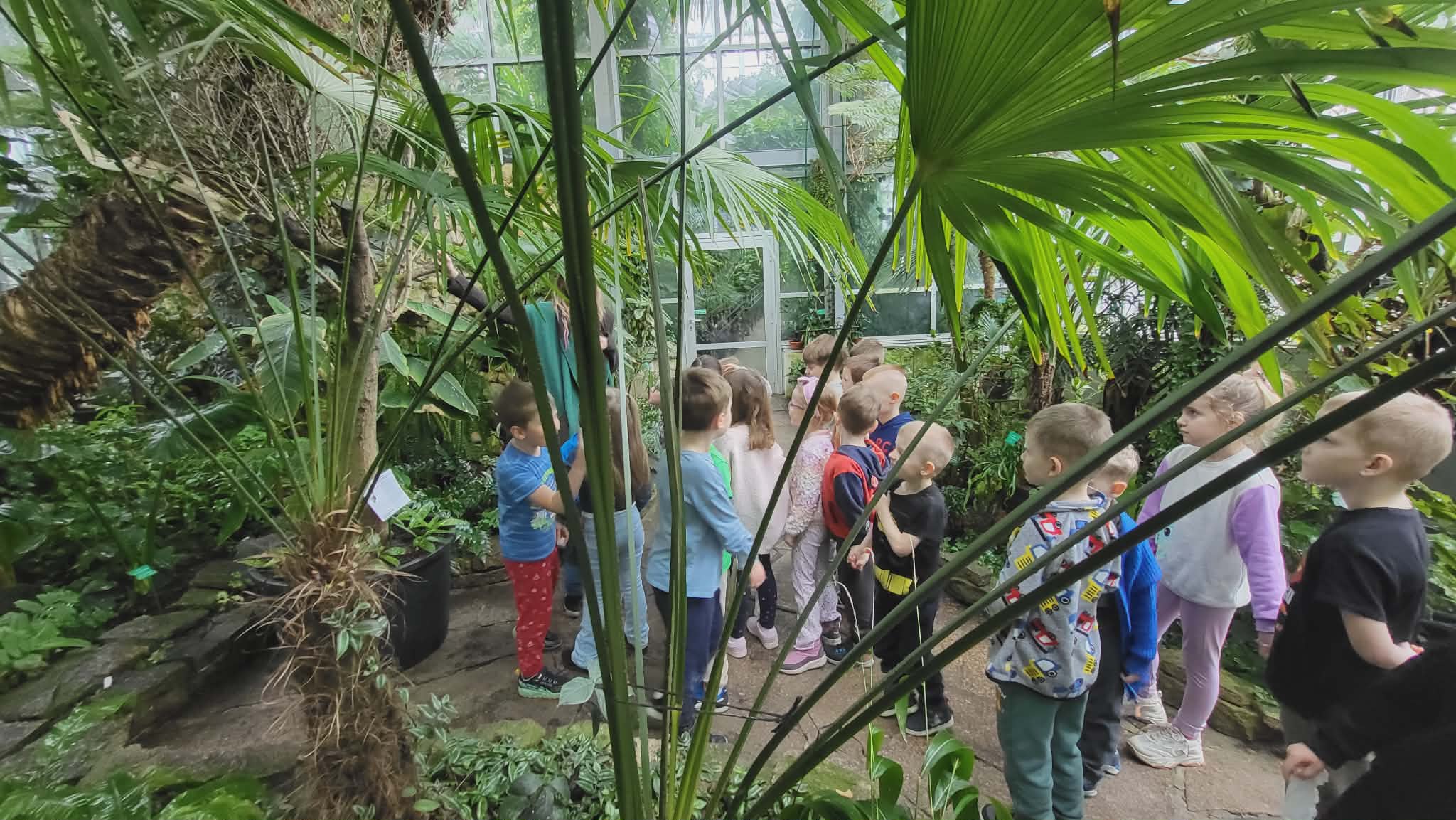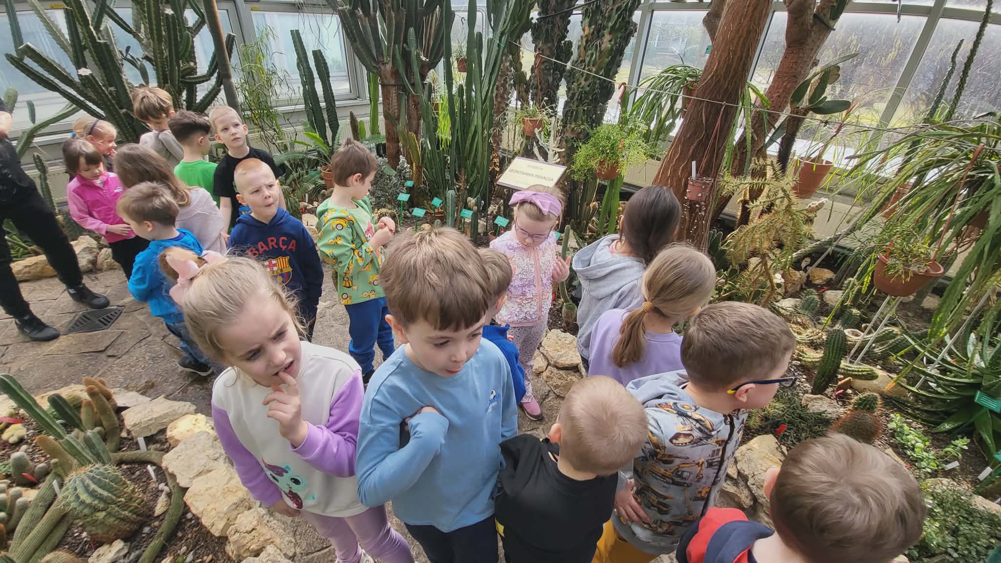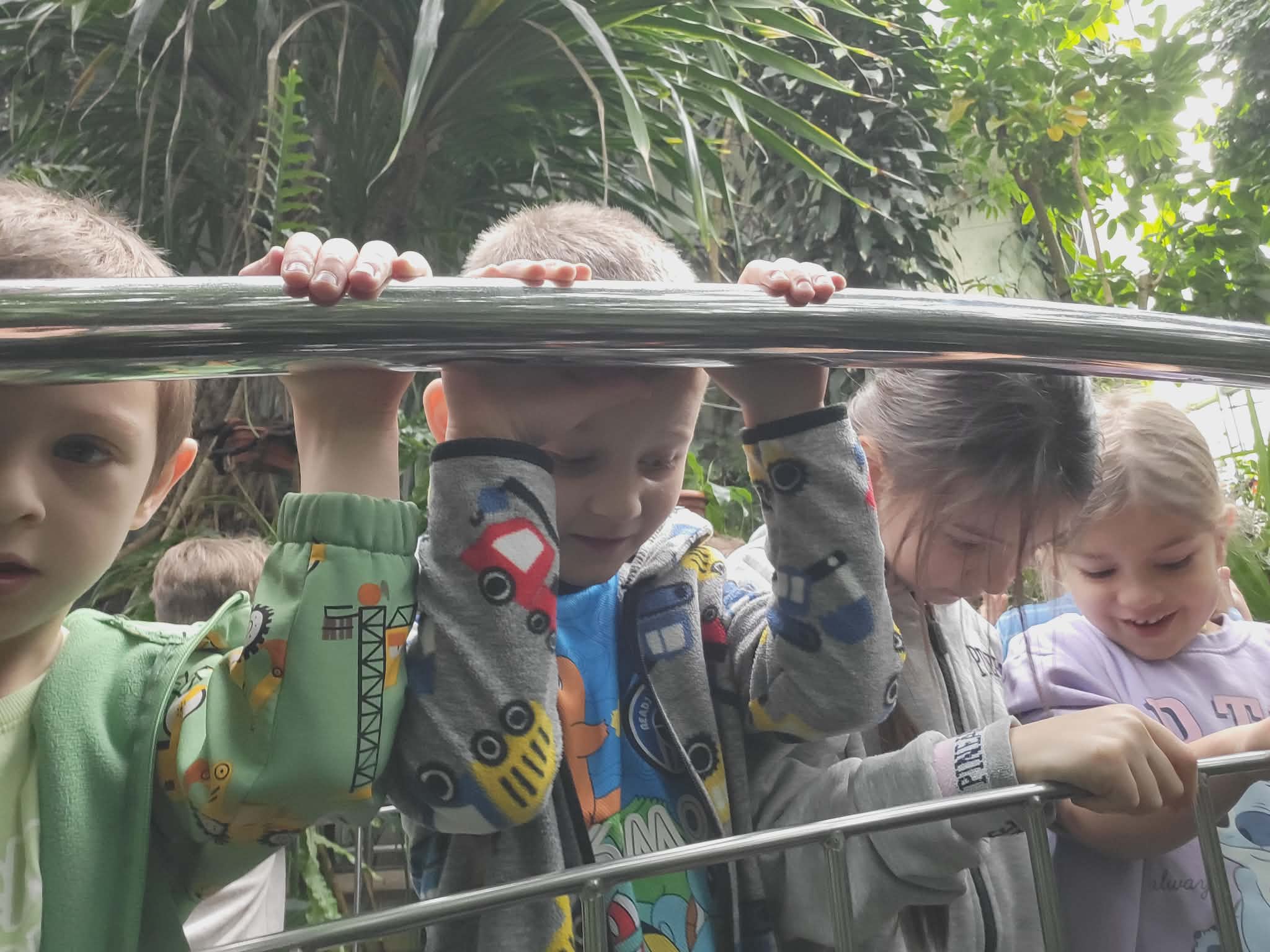 Dzisiejszy dzień był dla nas pełen niezwykłych wrażeń! Wybraliśmy się na wycieczkę do Palmiarni, gdzie na chwilę przenieśliśmy się do prawdziwej dżungli. Dzieci z zapartym tchem podziwiały: niezwykłą roślinność: od ogromnych palm i bananowców po fascynujące rośliny owadożerne oraz kaktusy o dziwnych kształtach, tropikalny klimat: przedszkolaki mogły na własnej skórze poczuć ciepło i wilgoć charakterystyczne dla lasu deszczowego.