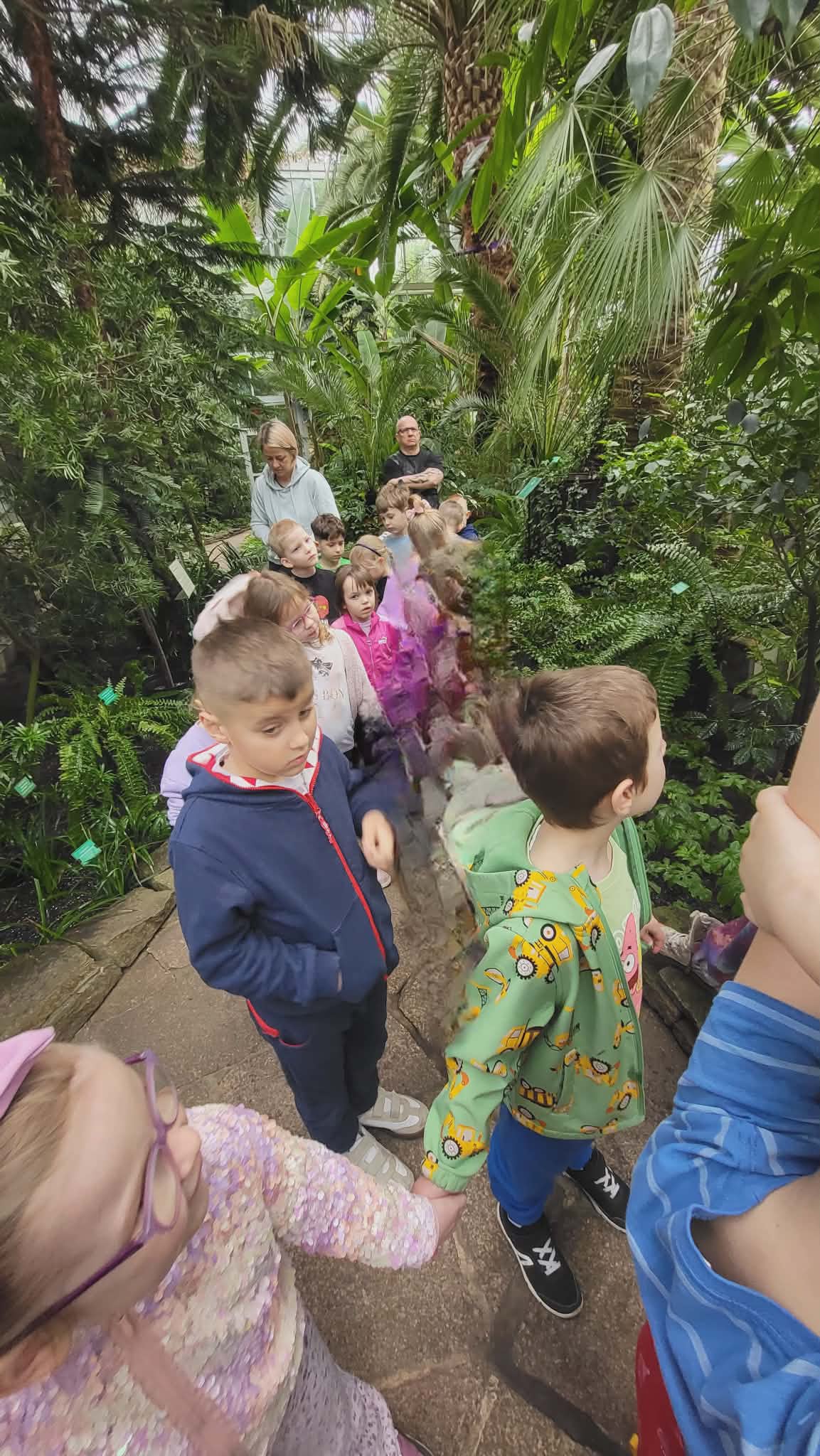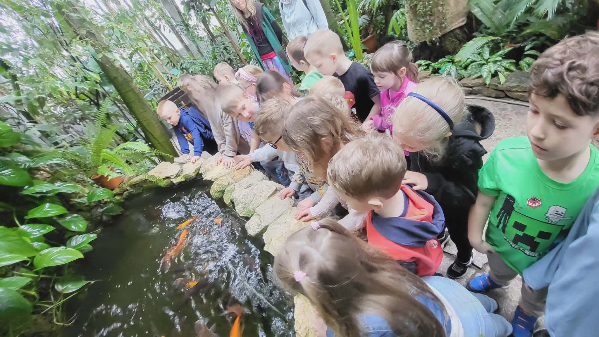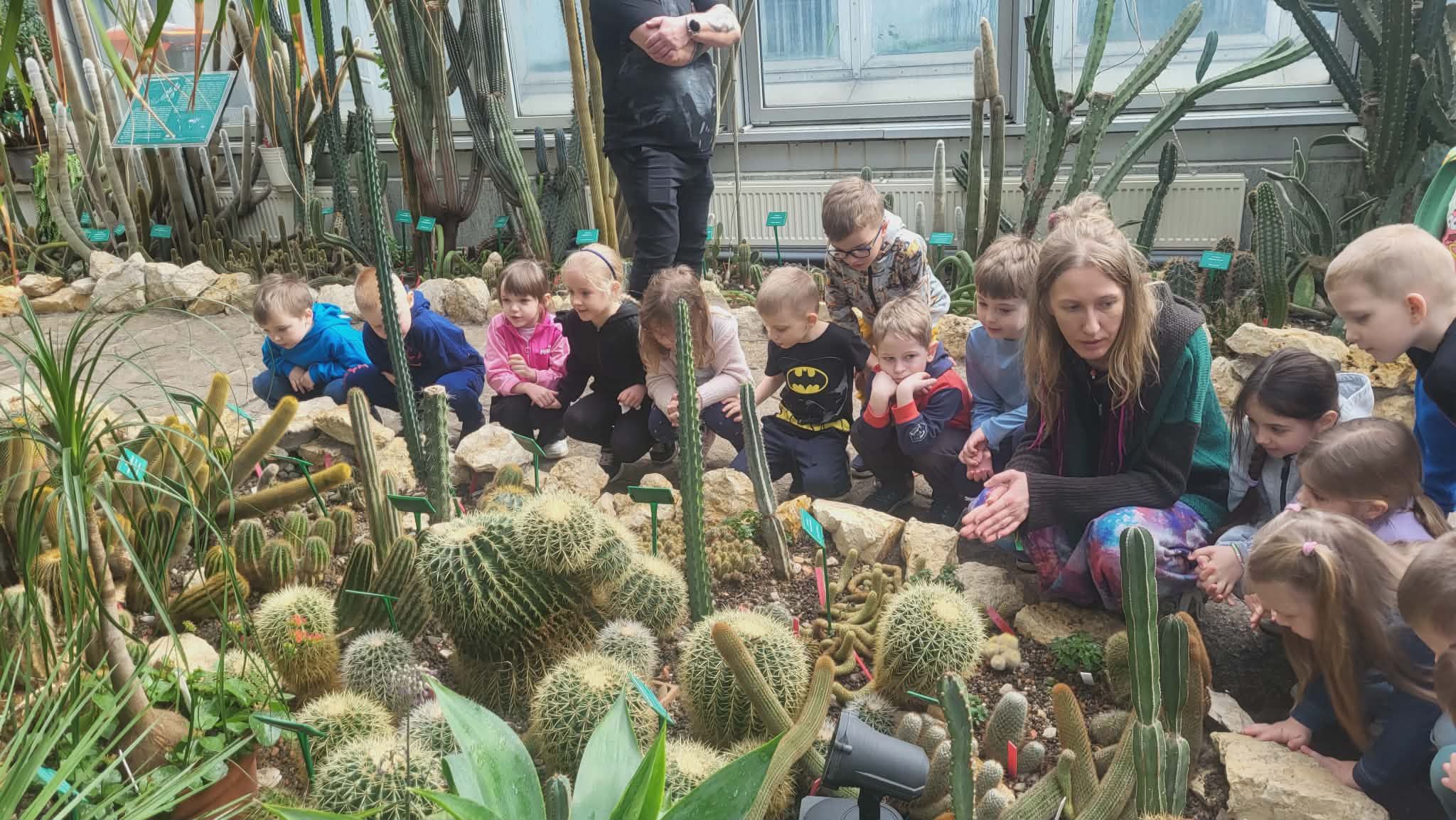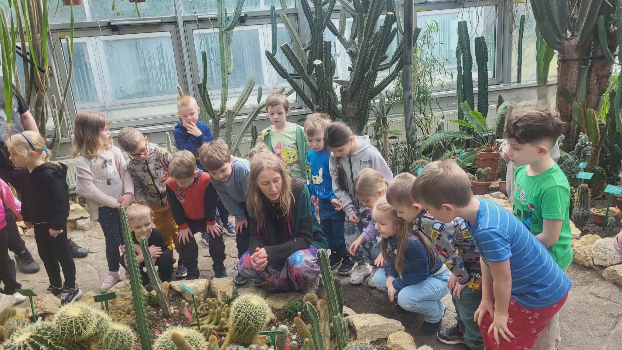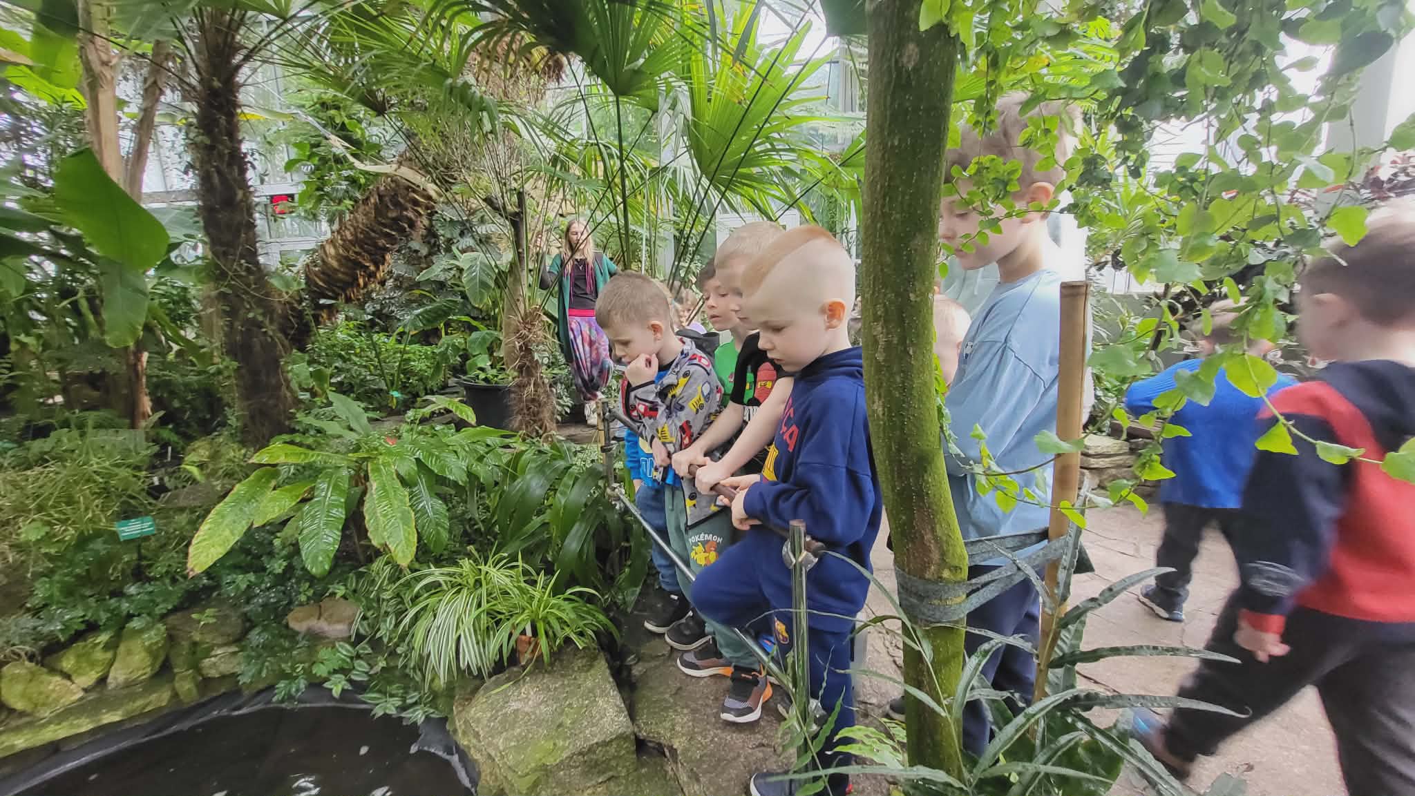 Dzisiejszy dzień był dla nas pełen niezwykłych wrażeń! Wybraliśmy się na wycieczkę do Palmiarni, gdzie na chwilę przenieśliśmy się do prawdziwej dżungli. Dzieci z zapartym tchem podziwiały: niezwykłą roślinność: od ogromnych palm i bananowców po fascynujące rośliny owadożerne oraz kaktusy o dziwnych kształtach, tropikalny klimat: przedszkolaki mogły na własnej skórze poczuć ciepło i wilgoć charakterystyczne dla lasu deszczowego.