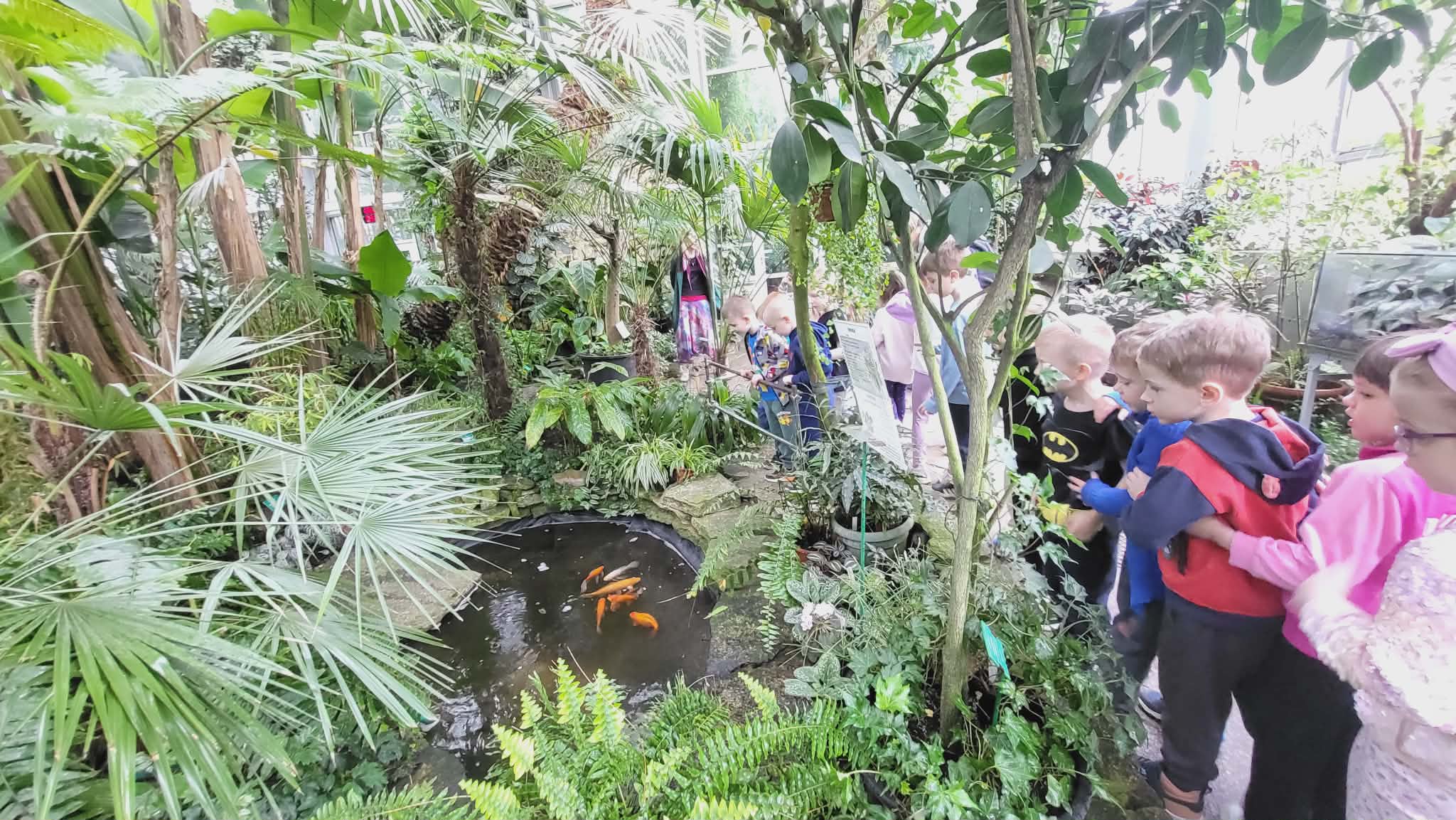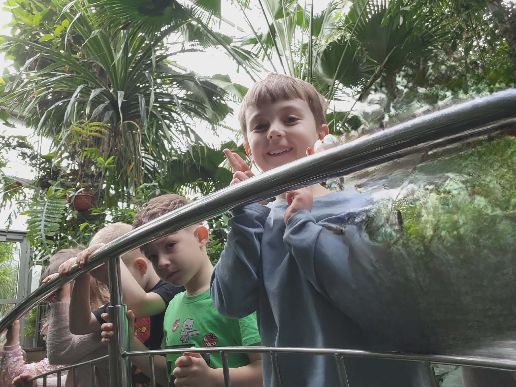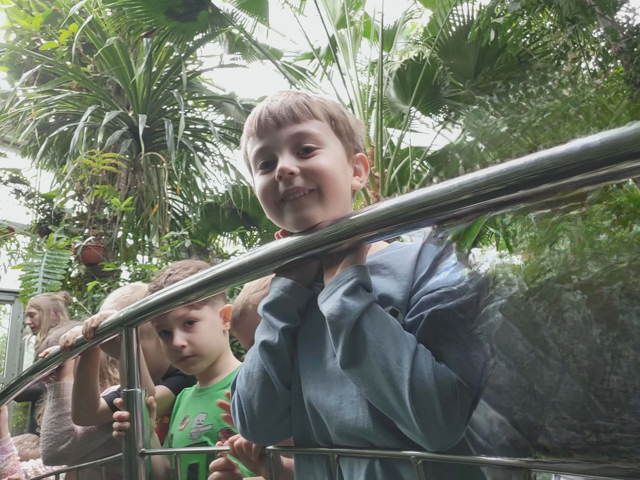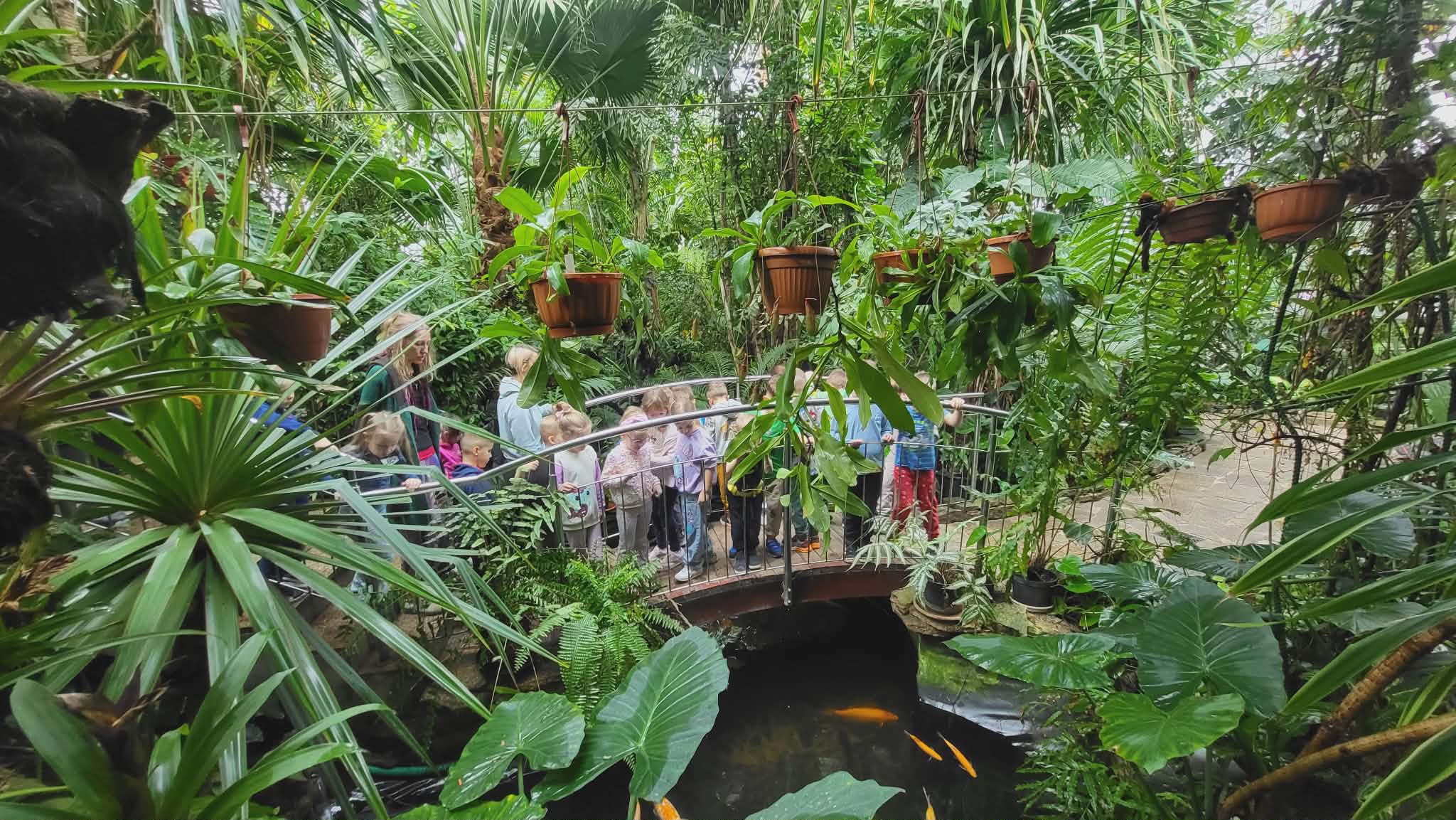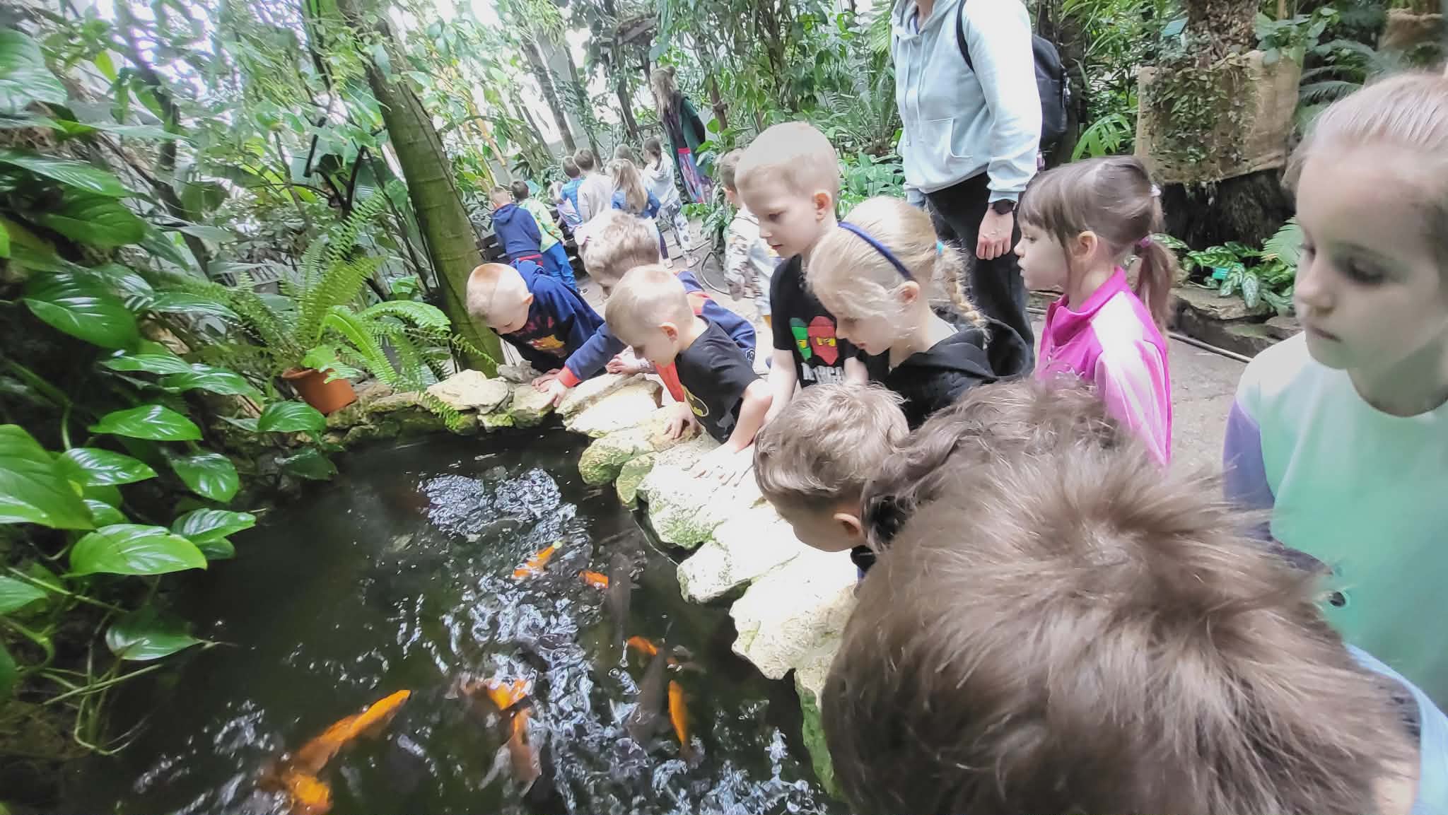 Dzisiejszy dzień był dla nas pełen niezwykłych wrażeń! Wybraliśmy się na wycieczkę do Palmiarni, gdzie na chwilę przenieśliśmy się do prawdziwej dżungli. Dzieci z zapartym tchem podziwiały: niezwykłą roślinność: od ogromnych palm i bananowców po fascynujące rośliny owadożerne oraz kaktusy o dziwnych kształtach, tropikalny klimat: przedszkolaki mogły na własnej skórze poczuć ciepło i wilgoć charakterystyczne dla lasu deszczowego.