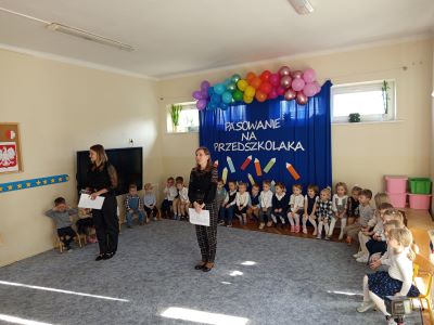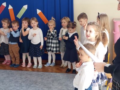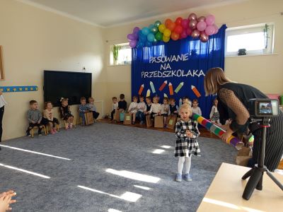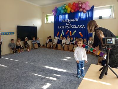Pasowanie na Przedszkolaka to pierwszy uroczysty występ najmłodszej grupy naszego Przedszkola Miejskiego nr 107 w Łodzi. To wydarzenie, które oficjalnie przyjmuje nowe dzieci do społeczności przedszkolnej (także ze starszych grup przedszkolnych!), w której wszyscy się szanujemy, dbamy o siebie nawzajem i świetnie się bawimy. Dzieci przedstawiły przybyłym gościom wiersze, piosenki oraz poleczkę. Na zakończenie odbyło się mianowanie i odebranie dyplomów z upominkami. Dziękujemy przybyłym Rodzicom za gromkie owacje i wsparcie dzieci w tym pięknym , choć lekko stresującym dniu :)