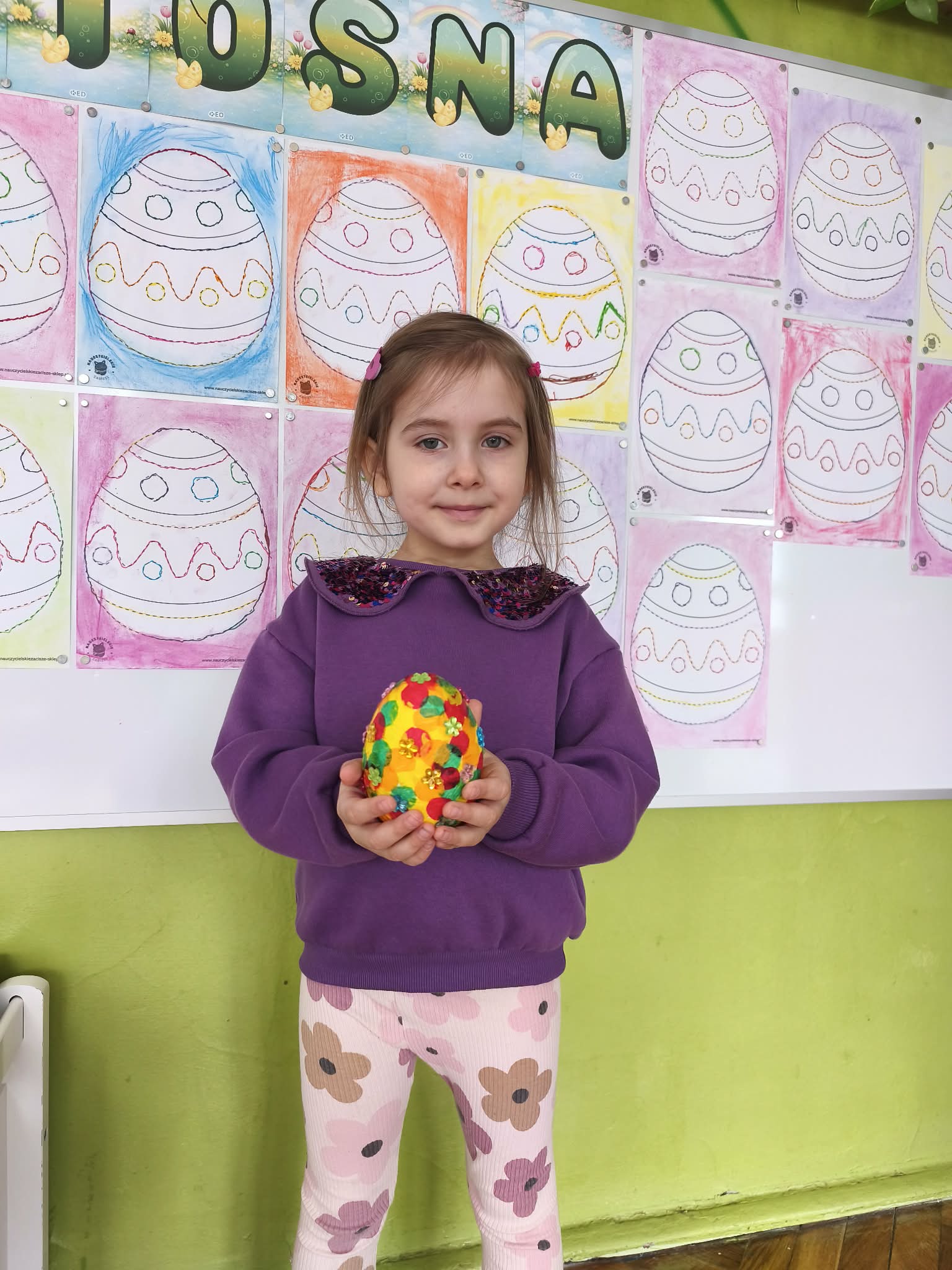 W konkursie plastycznym, organizowanym przez PM 185 na najładniejszą pisankę, reprezentantką naszej grupy była Elena. Trzymamy kciuki.