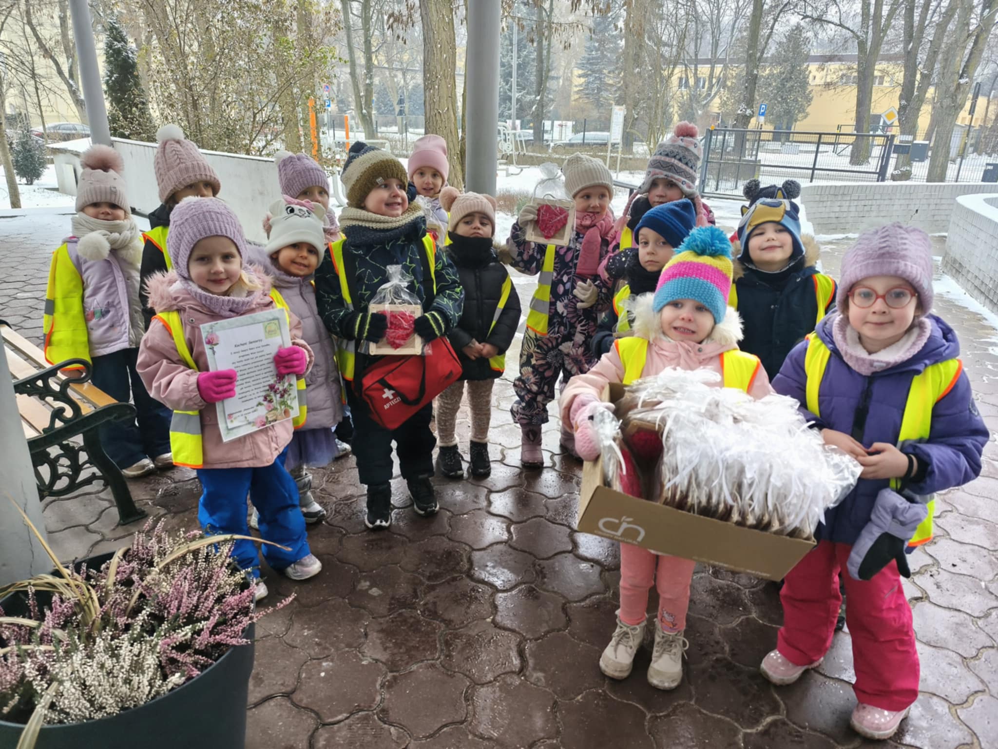 Mieliśmy zaplanowane spotkanie i występy. Niestety z powodu dużej ilości zachorowań, odwiedziny (w tym nasze) zostały wstrzymane. Jednak dzisiaj z naszymi Paniami, poszliśmy przy pięknej pogodzie na popołudniowy spacer do Fel-Medu zostawić naszym Seniorom prezenty, które przygotowaliśmy z okazji Dnia Babci i Dziadka. Mamy nadzieję, że choć w maleńkiej części wywołaliśmy uśmiech na twarzach Pensjonariuszy.