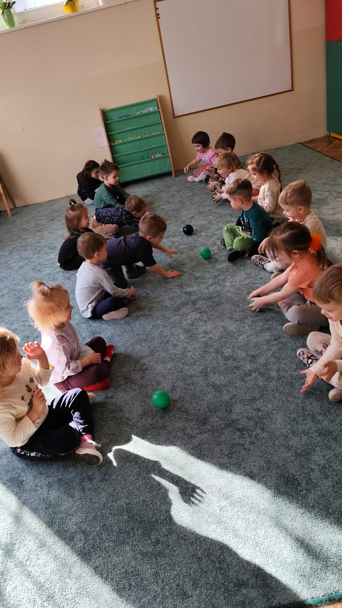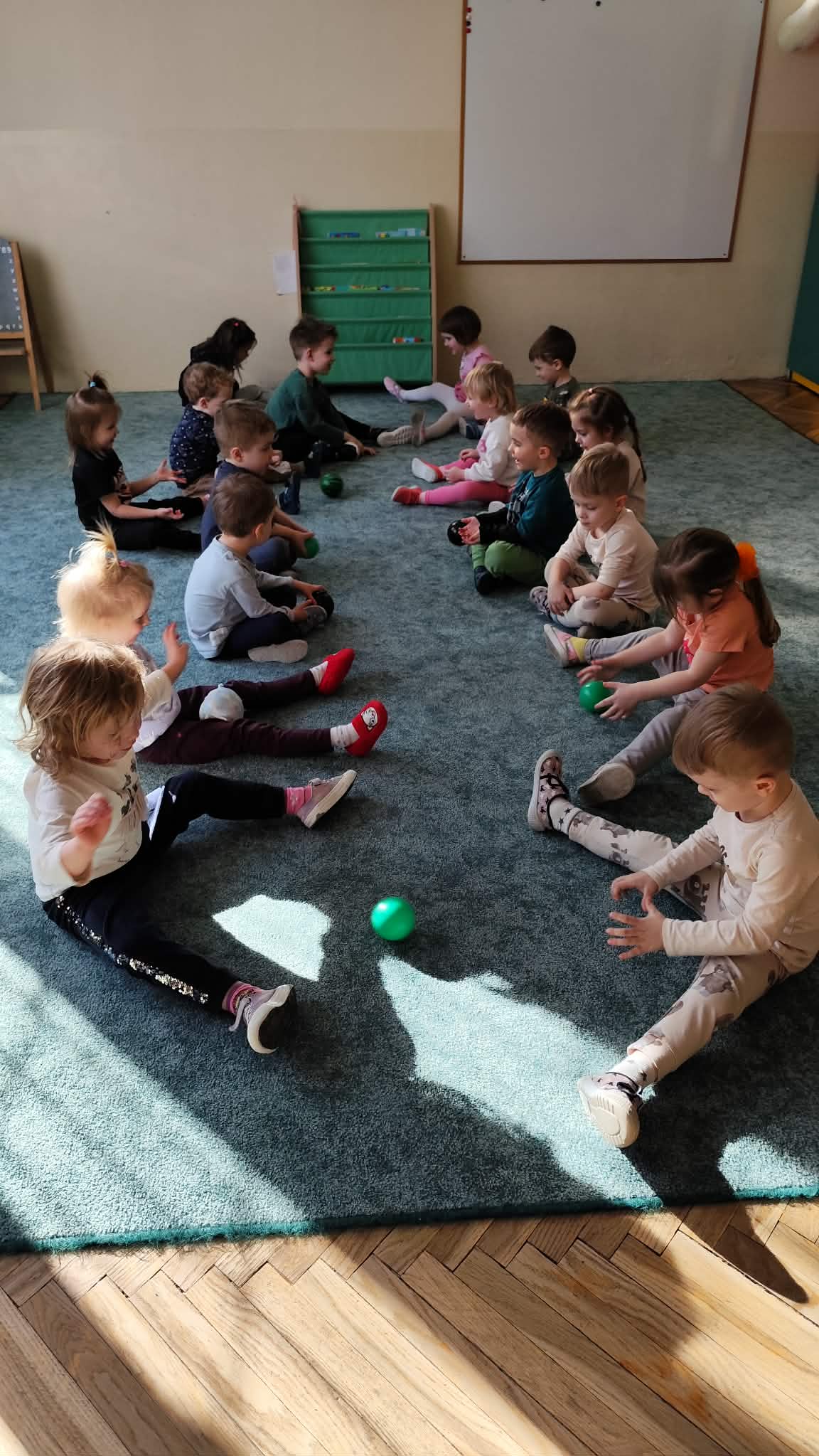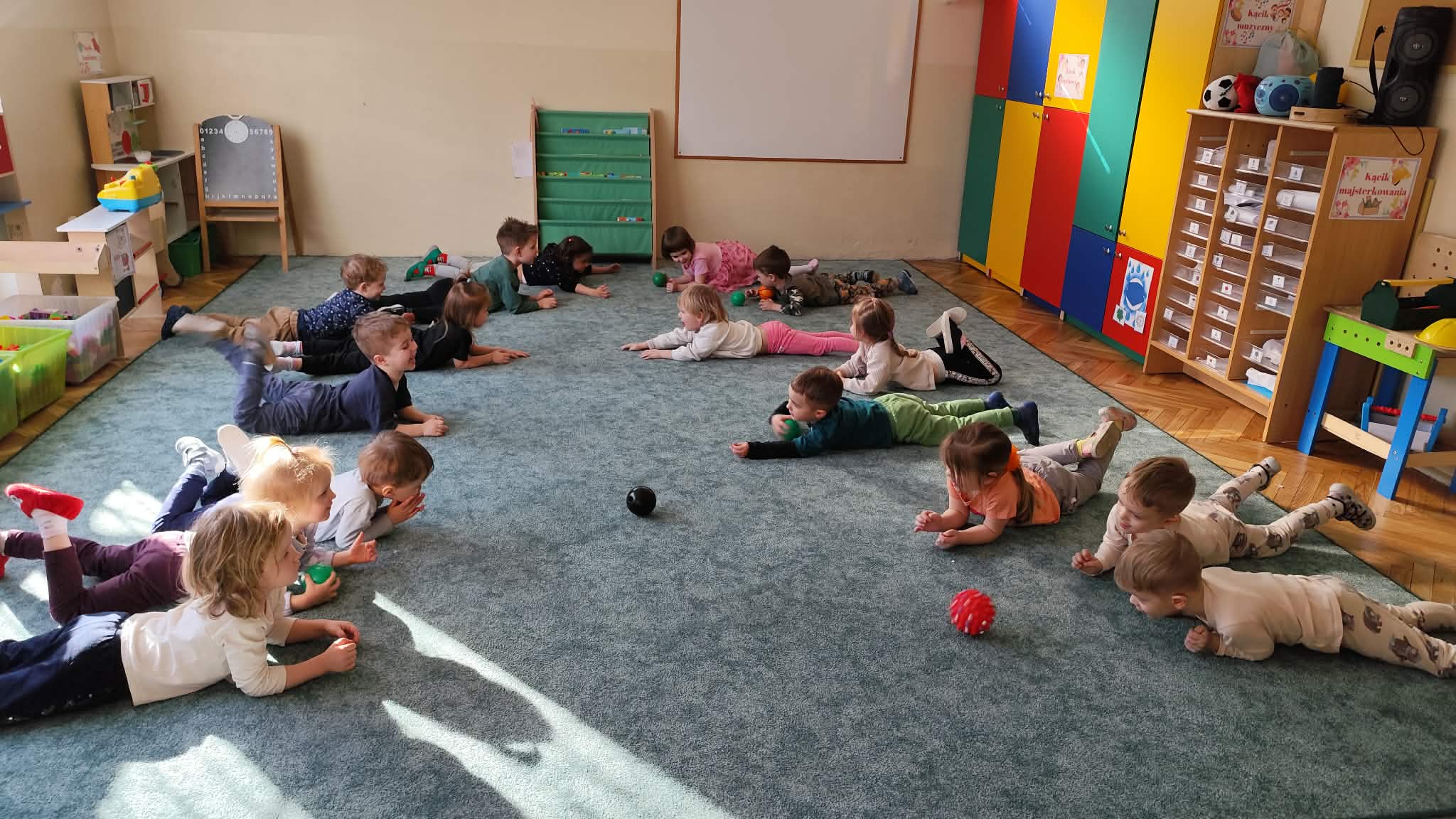 Grupa Kropelek popołudnia spędza równie aktywnie co poranki. Tym razem ćwiczyliśmy koordynację ruchową oraz współpracę w parach, wykorzystując piłeczki. Zabawy z piłką w parach to świetny sposób na aktywne spędzenie czasu oraz przemycenie ćwiczeń gimnastycznych w formie zabawy. W atmosferze pełnej radości i śmiechu wykonaliśmy ćwiczenia rozciągające mięśnie brzucha, ćwiczyliśmy utrzymanie poprawnej postawy ciała w siadzie skrzyżnym, a na zakończenie wykonaliśmy relaksujące masaże pleców. Wszystkie obecne Kropelki były zachwycone i świetnie się bawiły.