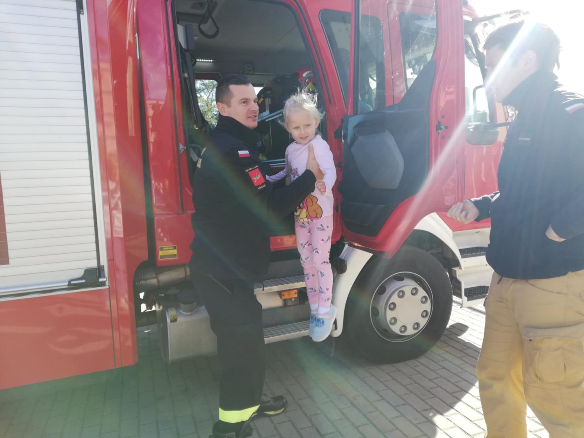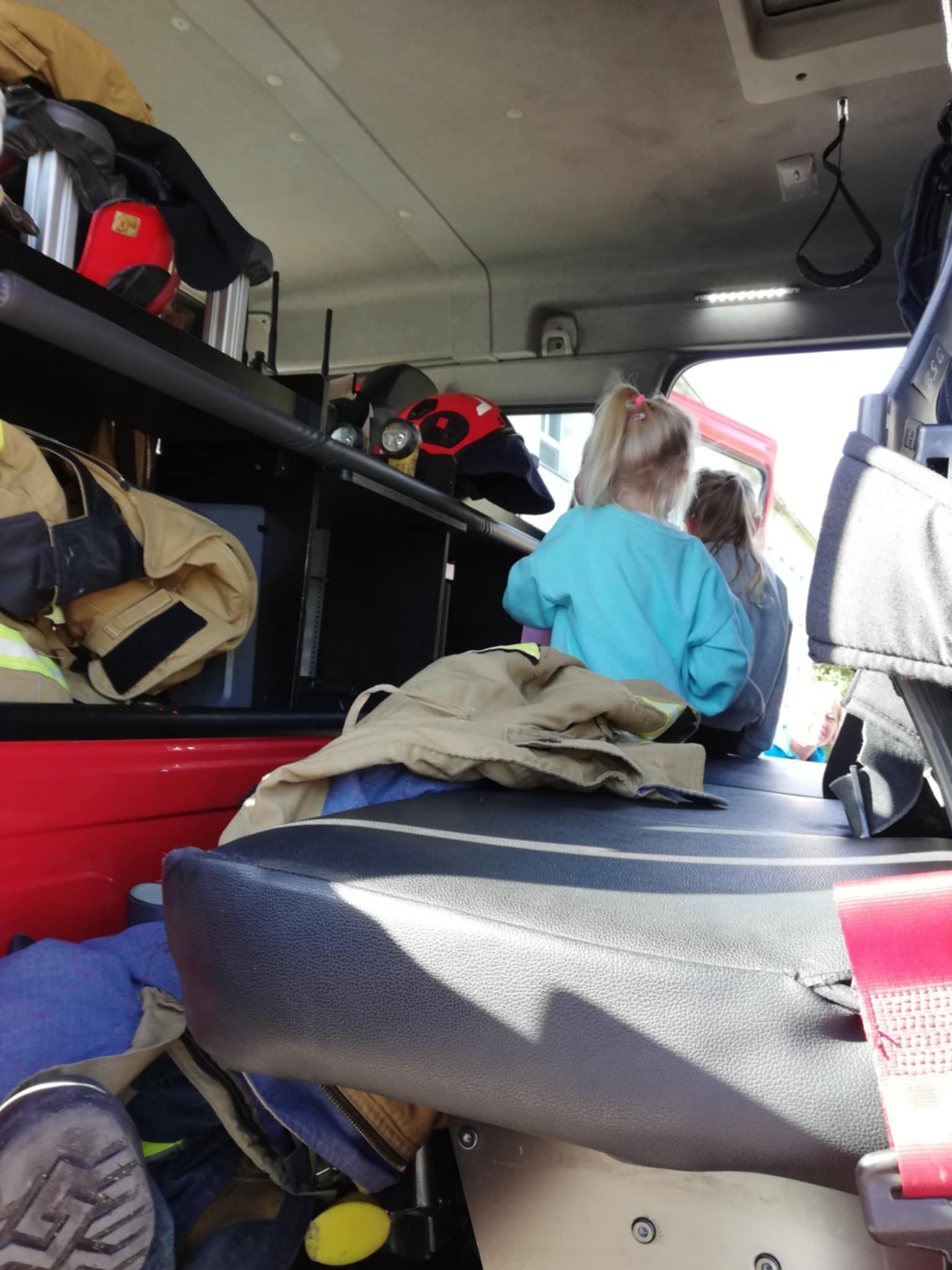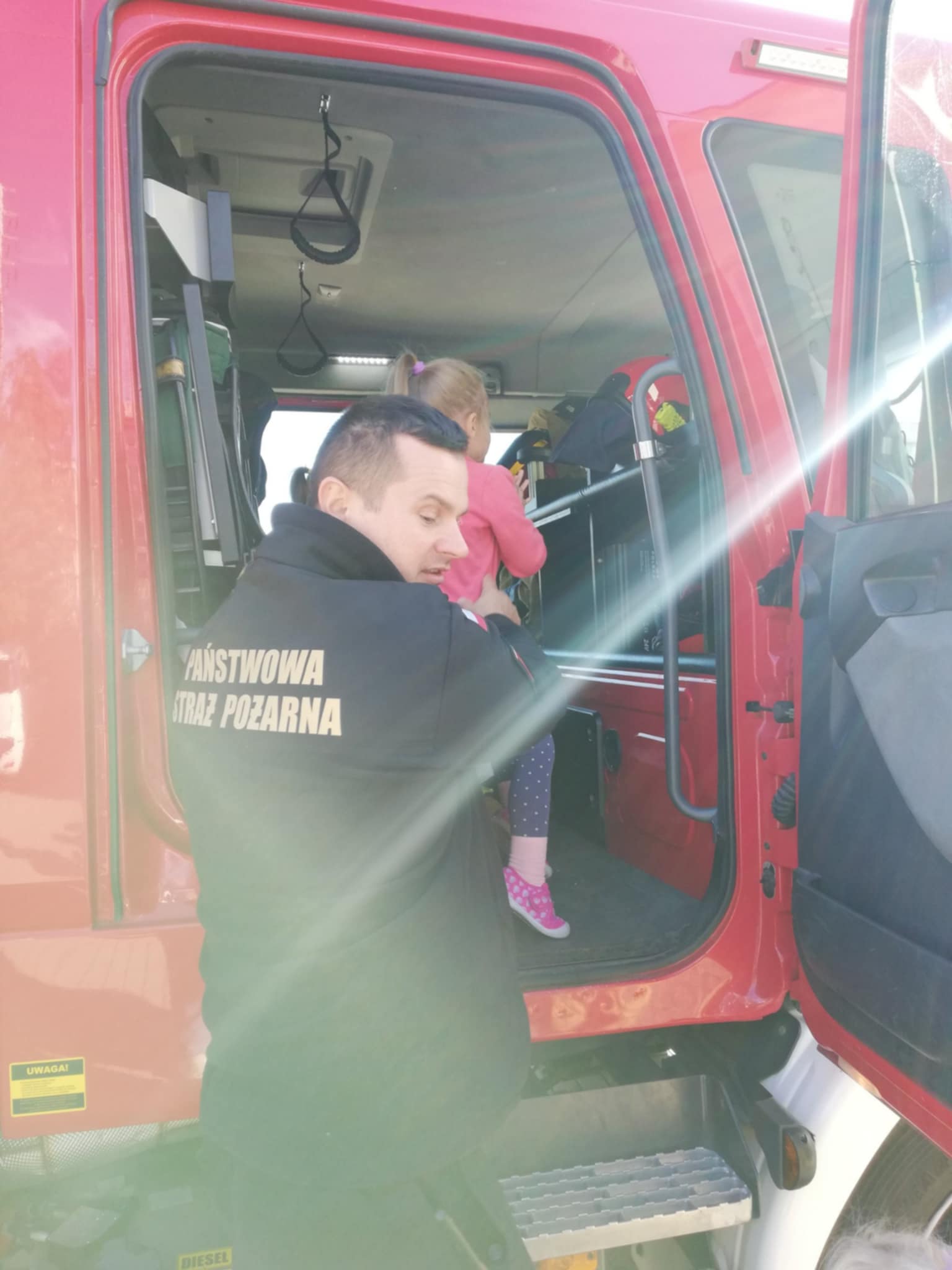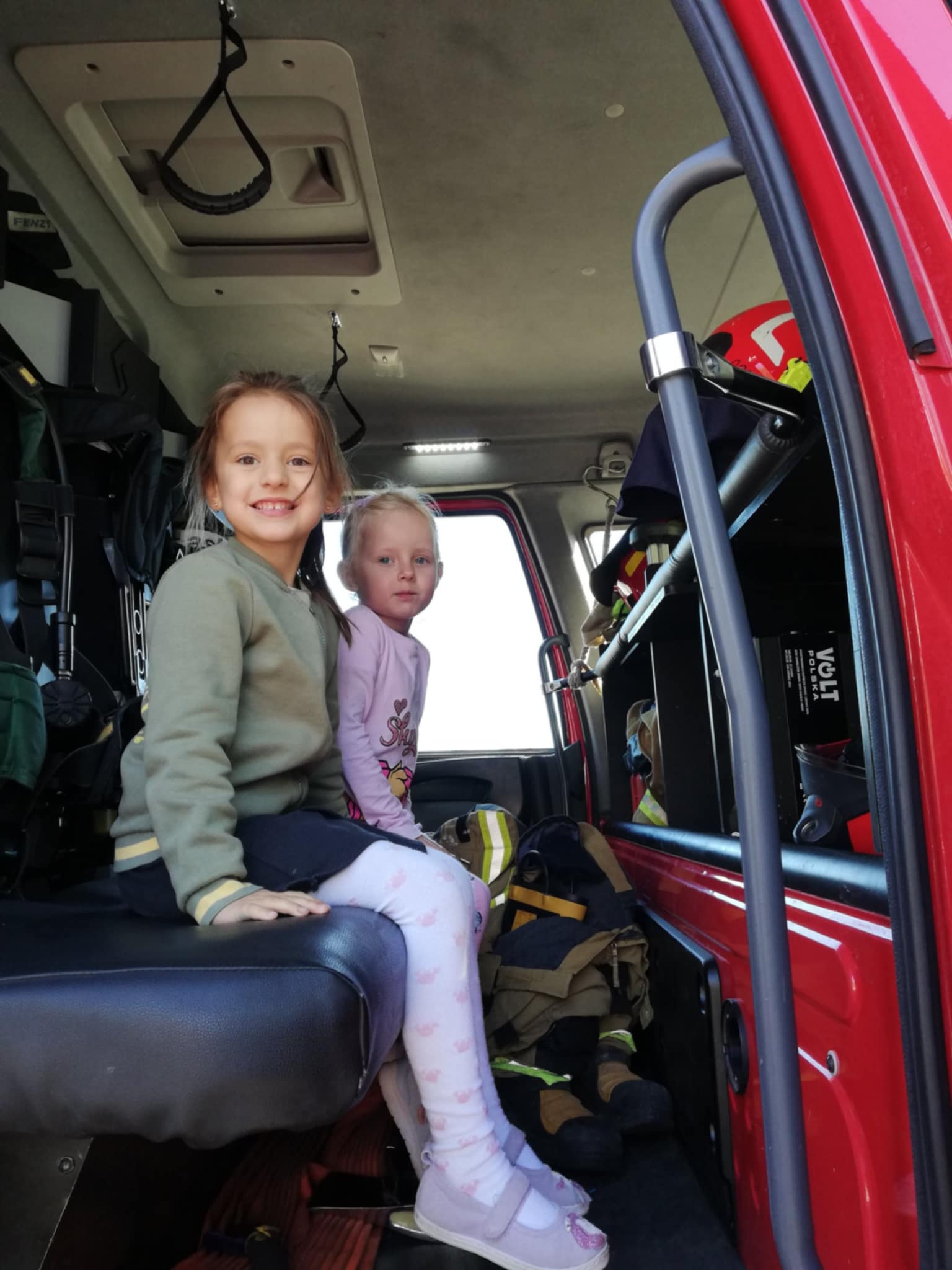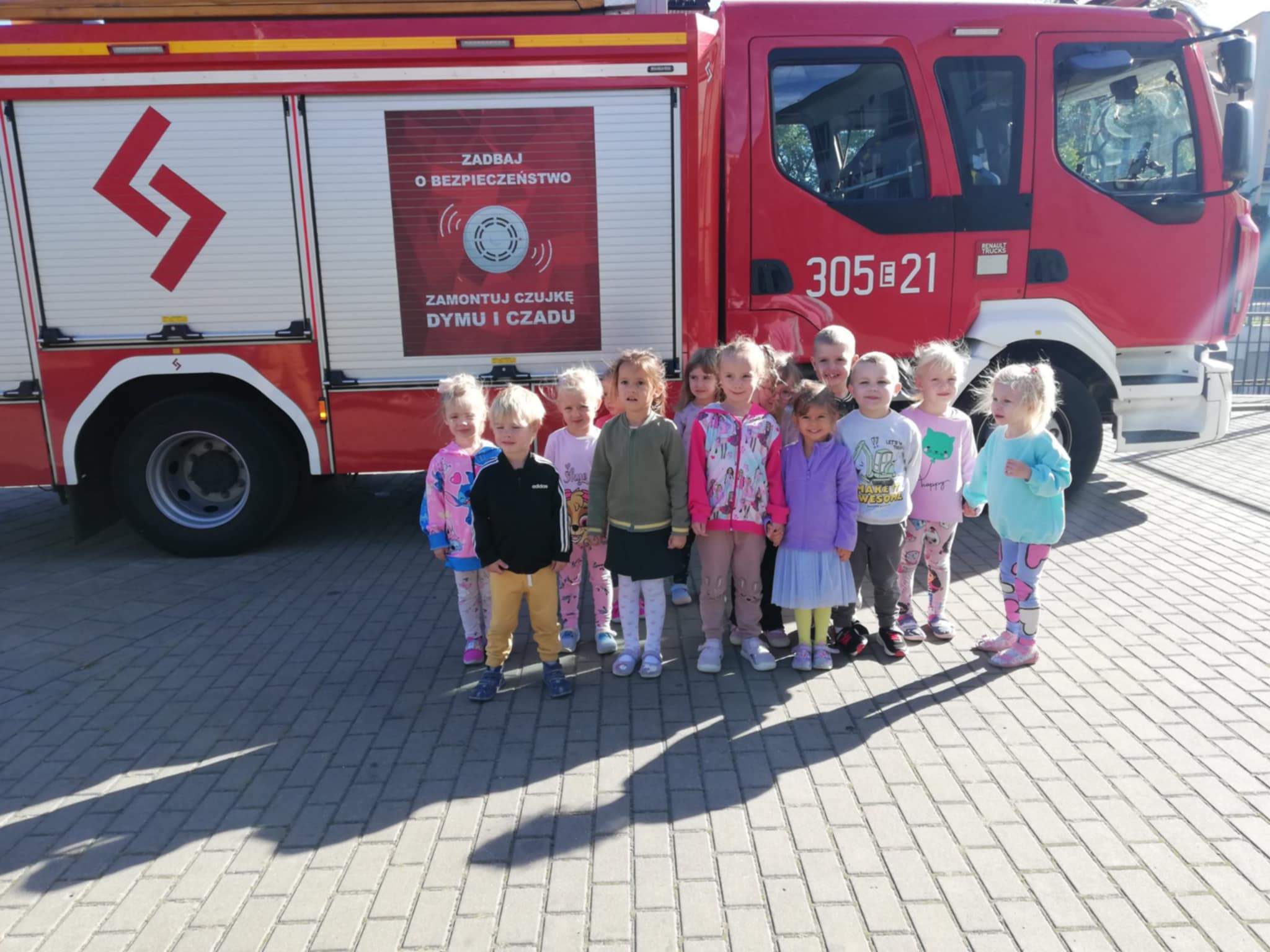 Szybka reakcja na sygnał, słuchanie pani, sprawne ustawienie się i zejście do bezpiecznego miejsca zbiórki to niezbędne elementy w przypadku pożaru. Ufff... dzisiaj się udało, pod czujnym wzrokiem Panów strażaków. Po zakończonej akcji próbnego alarmu przeciwpożarowego czas na obejrzenie wozu strażackiego.