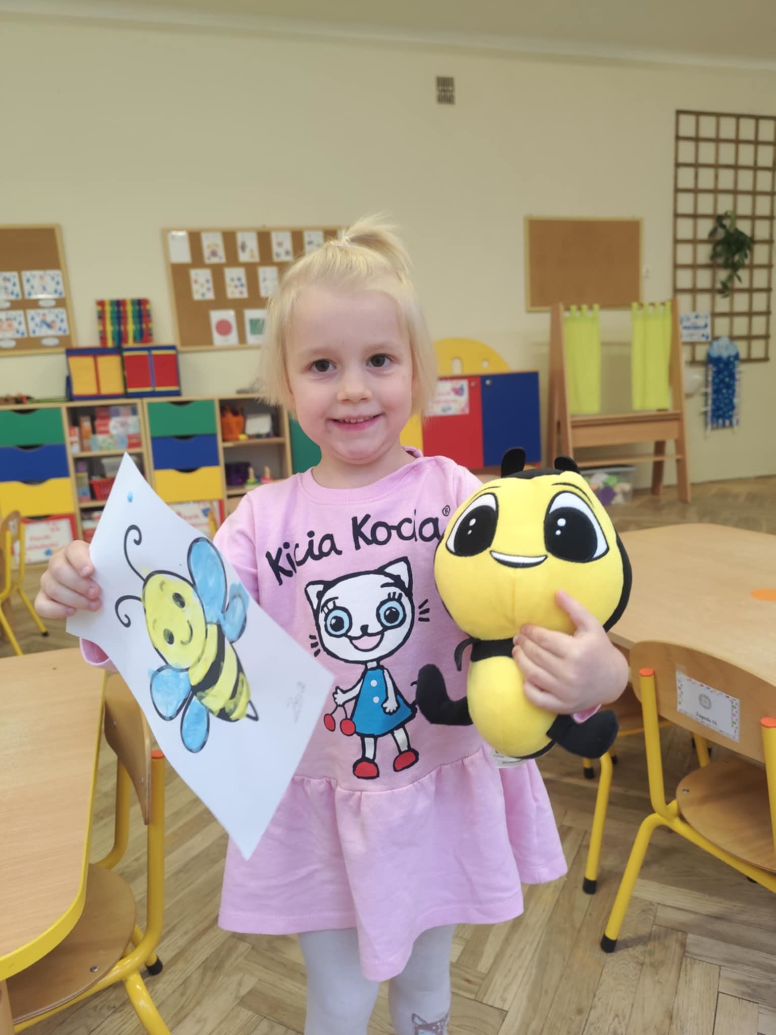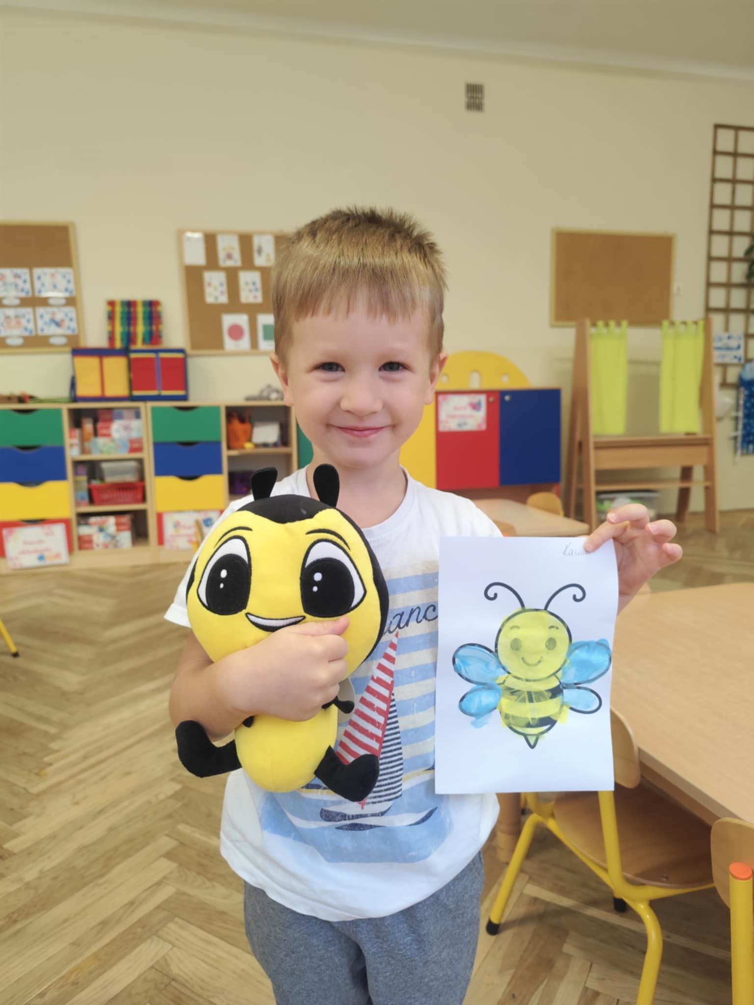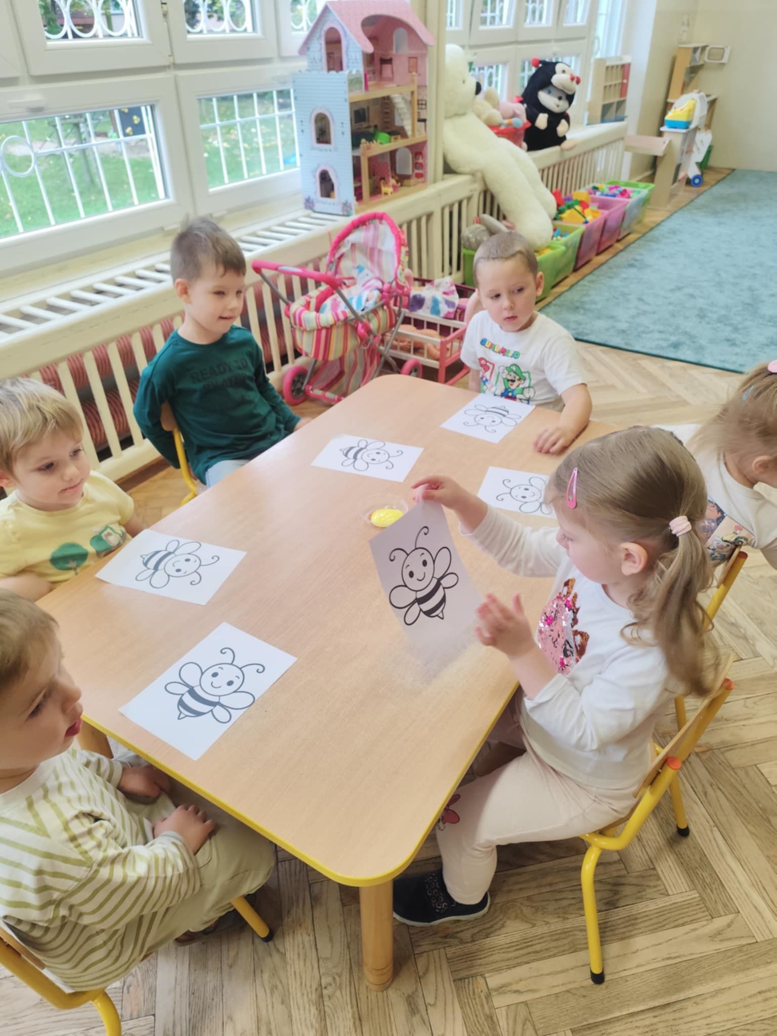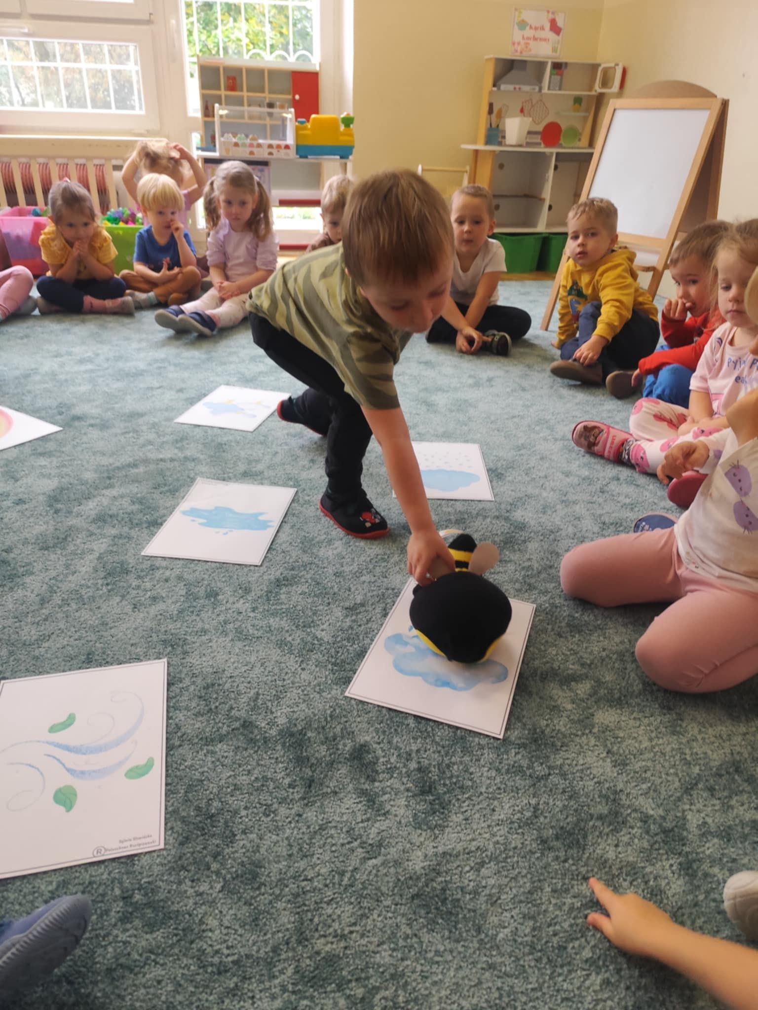 Witaj, Pszczoło Genowefo, miło Cię poznać! Grupa Kropelek zaczyna swoją przygodę z projektem edukacyjnym, którego zadaniami są ćwiczenia nad koordynacją wzrokowo-ruchową, motoryką małą i nad rytmem. Razem z Pszczołą Genowefą wszyscy usiedli w kole, poznali jej plany na wspólną zabawę i wymienili z nią powitalne buziaki i uściski. Zajęcia dydaktyczne, jakie do tej pory już się odbyły to: "Genowefa gotuje zupę" z ćwiczeniem nad uważnym słuchaniem i uzupełnianiem garnka odpowiednimi produktami oraz "Pszczoła Genowefa i pogoda", jako powtórzenie wiadomości o pogodzie z poprzedniego tygodnia. Nazwy wszystkich zjawisk atmosferycznych dzieliliśmy na sylaby, wskazywaliśmy na obrazki i dopasowywaliśmy je do fragmentów opowiadania. Kolejne zadania na jakie czekają Kropelki będą typowo muzyczno-paluszkowe, a następnie zapoznają się z tematyką "Spiżarnia Pszczoły Genowefy" oraz "Savoir-vivre Pszczoły Genowefy".
