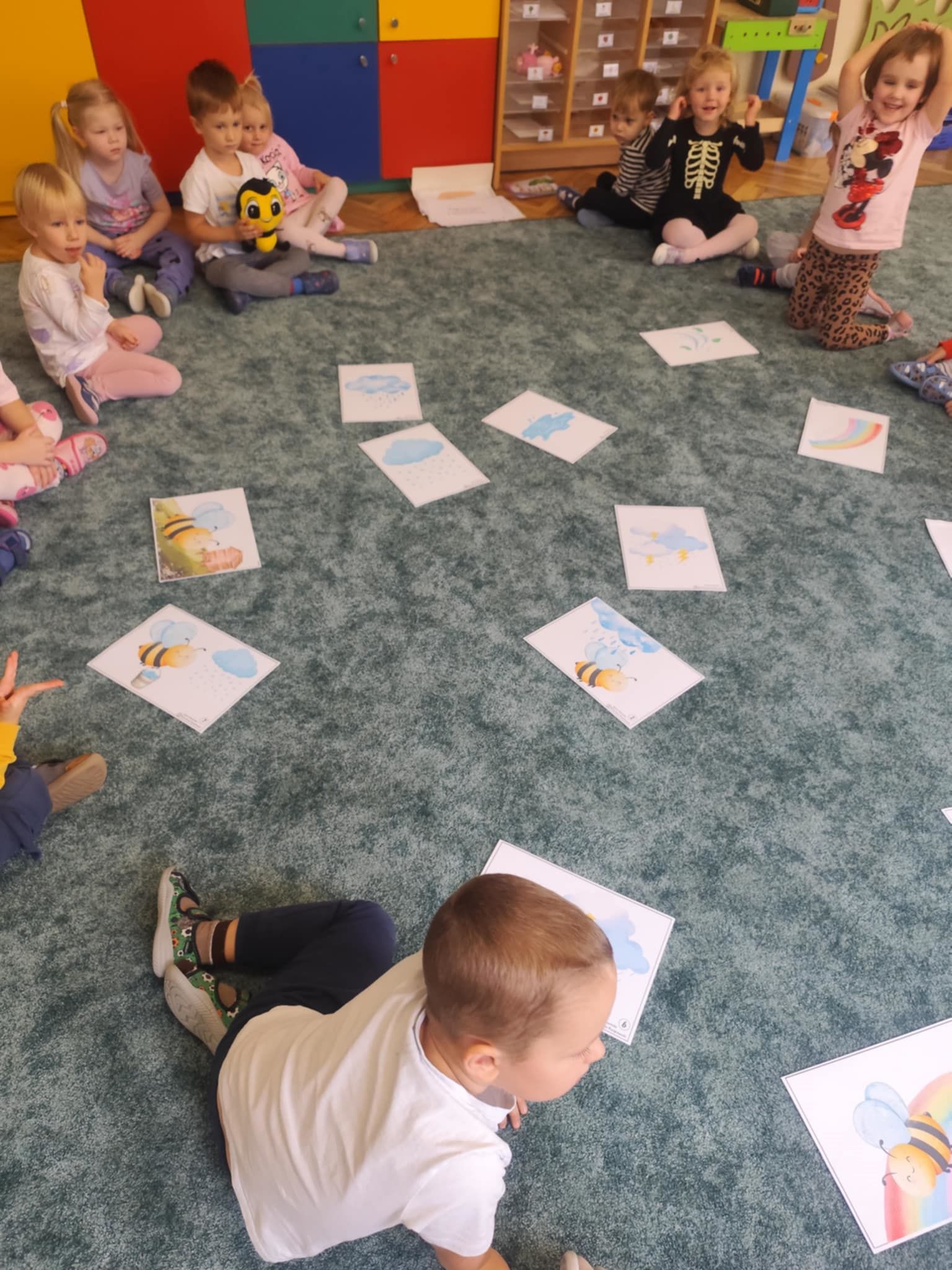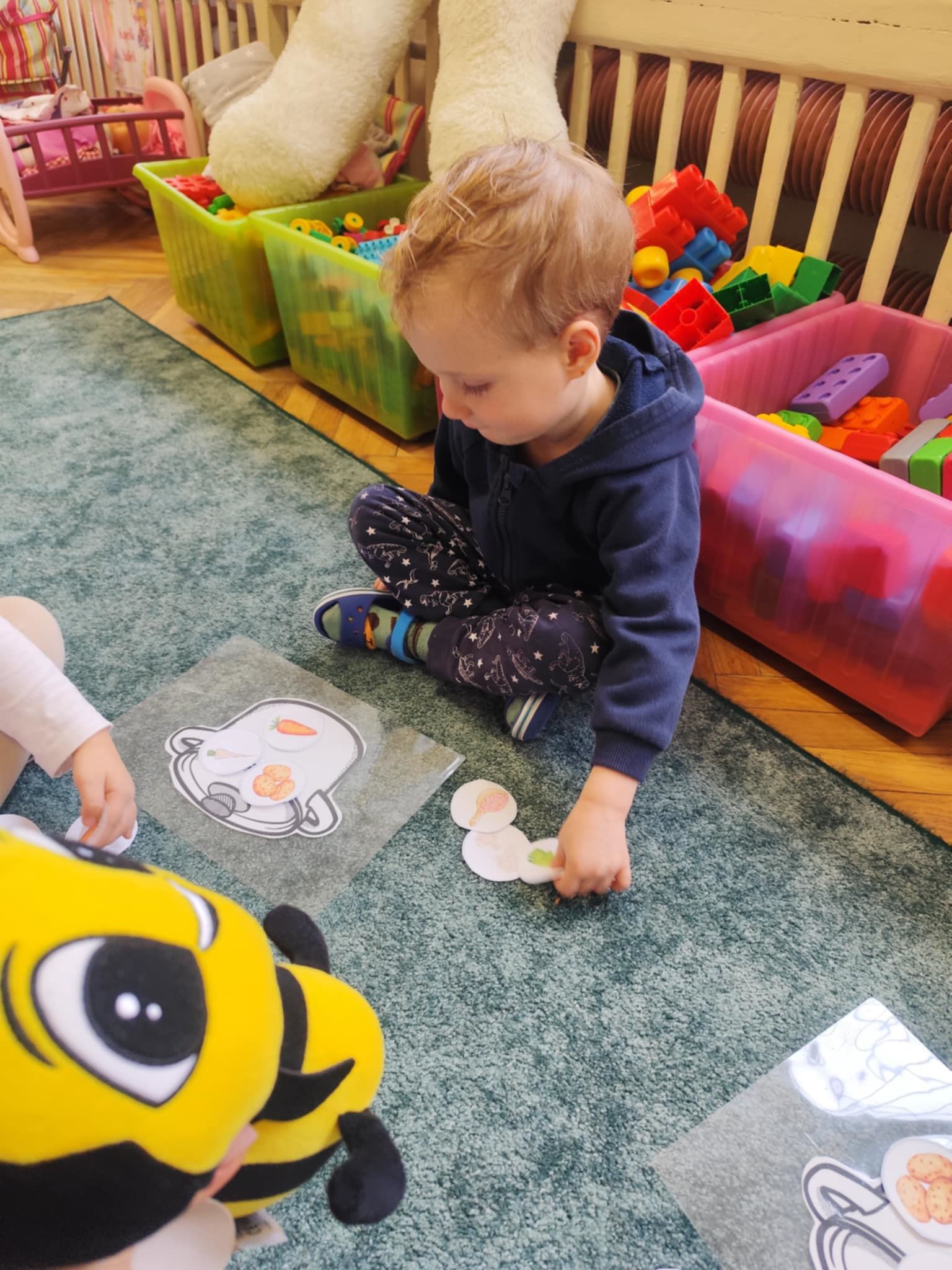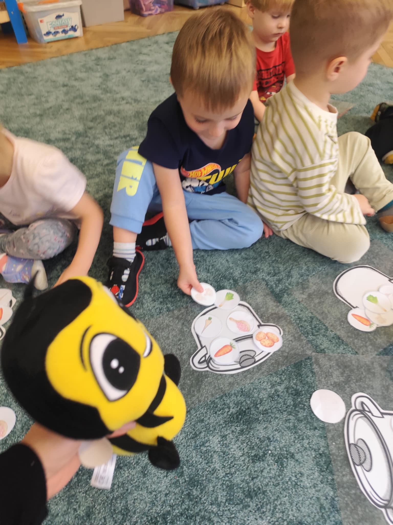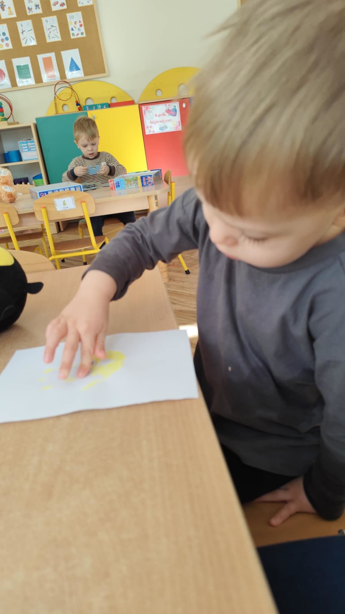 Witaj, Pszczoło Genowefo, miło Cię poznać! Grupa Kropelek zaczyna swoją przygodę z projektem edukacyjnym, którego zadaniami są ćwiczenia nad koordynacją wzrokowo-ruchową, motoryką małą i nad rytmem. Razem z Pszczołą Genowefą wszyscy usiedli w kole, poznali jej plany na wspólną zabawę i wymienili z nią powitalne buziaki i uściski. Zajęcia dydaktyczne, jakie do tej pory już się odbyły to: "Genowefa gotuje zupę" z ćwiczeniem nad uważnym słuchaniem i uzupełnianiem garnka odpowiednimi produktami oraz "Pszczoła Genowefa i pogoda", jako powtórzenie wiadomości o pogodzie z poprzedniego tygodnia. Nazwy wszystkich zjawisk atmosferycznych dzieliliśmy na sylaby, wskazywaliśmy na obrazki i dopasowywaliśmy je do fragmentów opowiadania. Kolejne zadania na jakie czekają Kropelki będą typowo muzyczno-paluszkowe, a następnie zapoznają się z tematyką "Spiżarnia Pszczoły Genowefy" oraz "Savoir-vivre Pszczoły Genowefy".