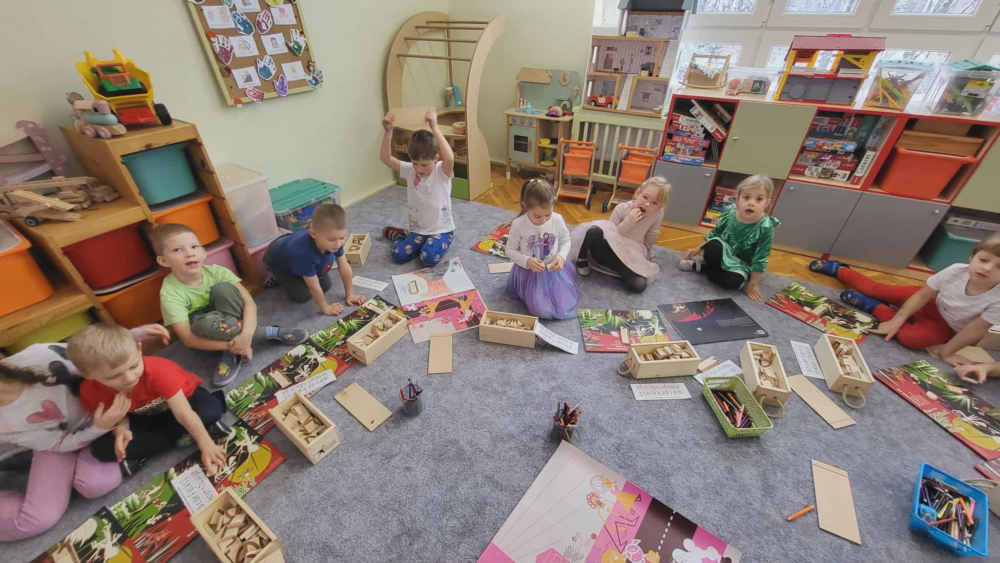Nasza grupa realizuje elementy projektu "Skuteczne Zdziwienie". To wyzwalająca myślenie nauka czytania i pisania, która zachęca dzieci do intuicyjnego rozpoznawania obrazów dźwiękowych głoski i graficznych litery. Włącza w proces czytania całe bogactwo dziecięcych doświadczeń, emocji i wrażeń zmysłowych.