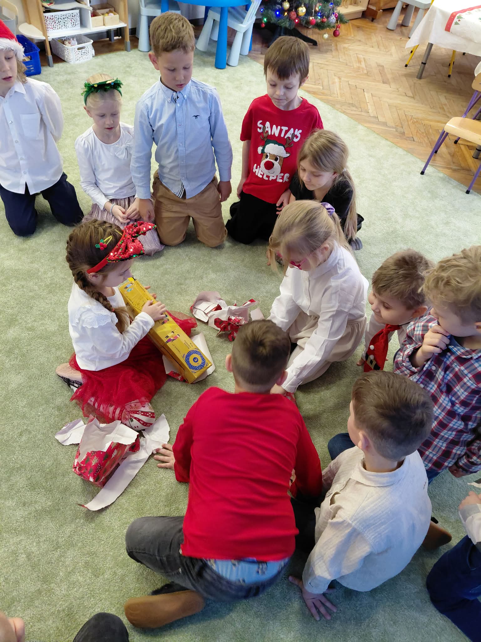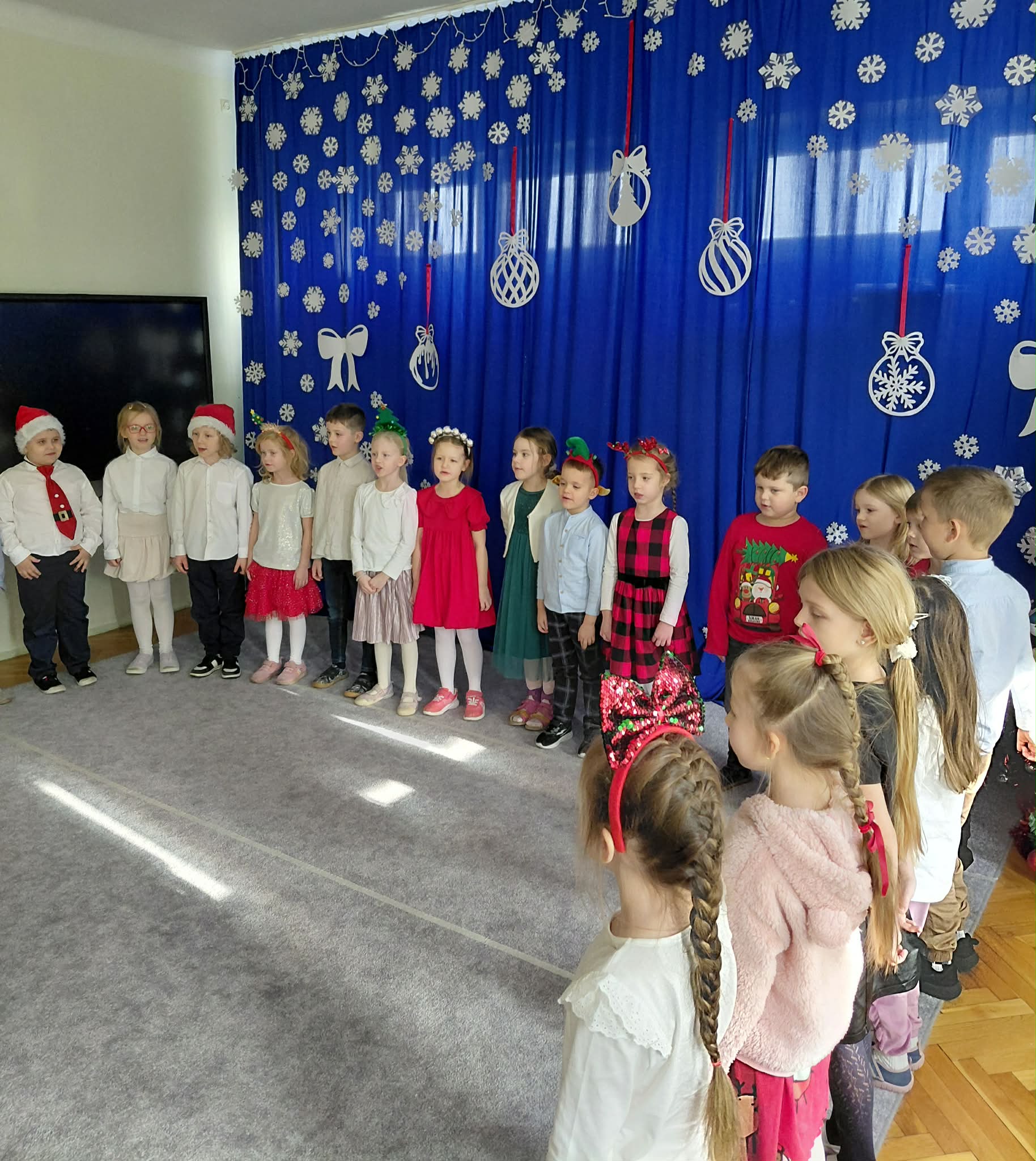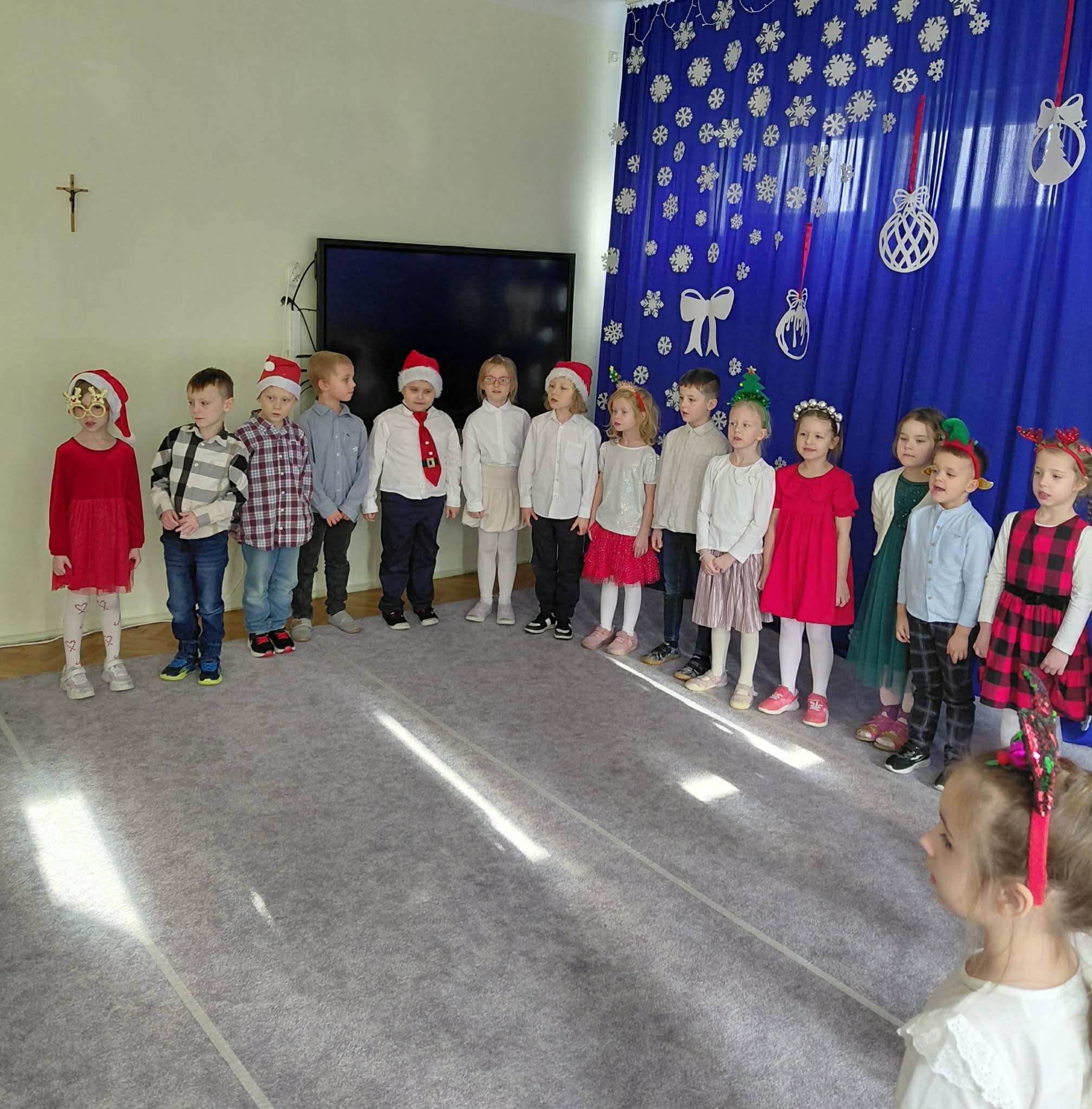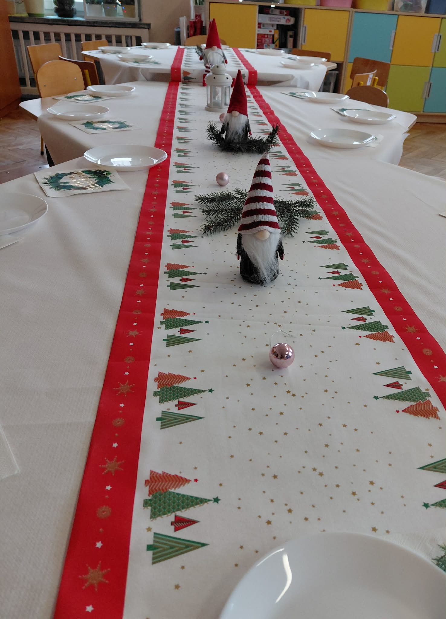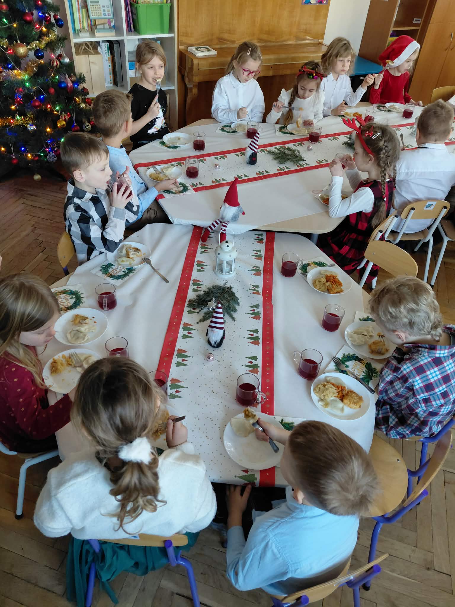 17 grudnia odbył się w naszym przedszkolu świąteczny obiad, wszyscy przyszli odświętnie ubrani. Każda grupa zaprezentowała jedną świąteczną piosenkę. Wspólnie porozmawialiśmy o świątecznych tradycjach i usiedliśmy do świątecznego obiadu. Dzieci otrzymały również wspólny prezent dla całej grupy z którego będą mogły korzystać przez cały rok. Wszyscy bardzo lubimy ten magiczny świąteczny czas.