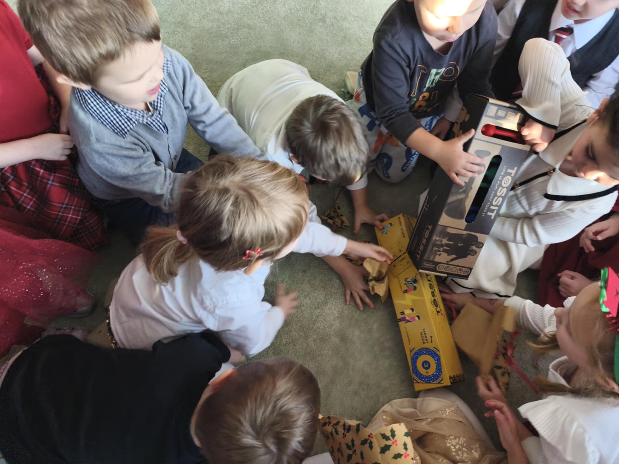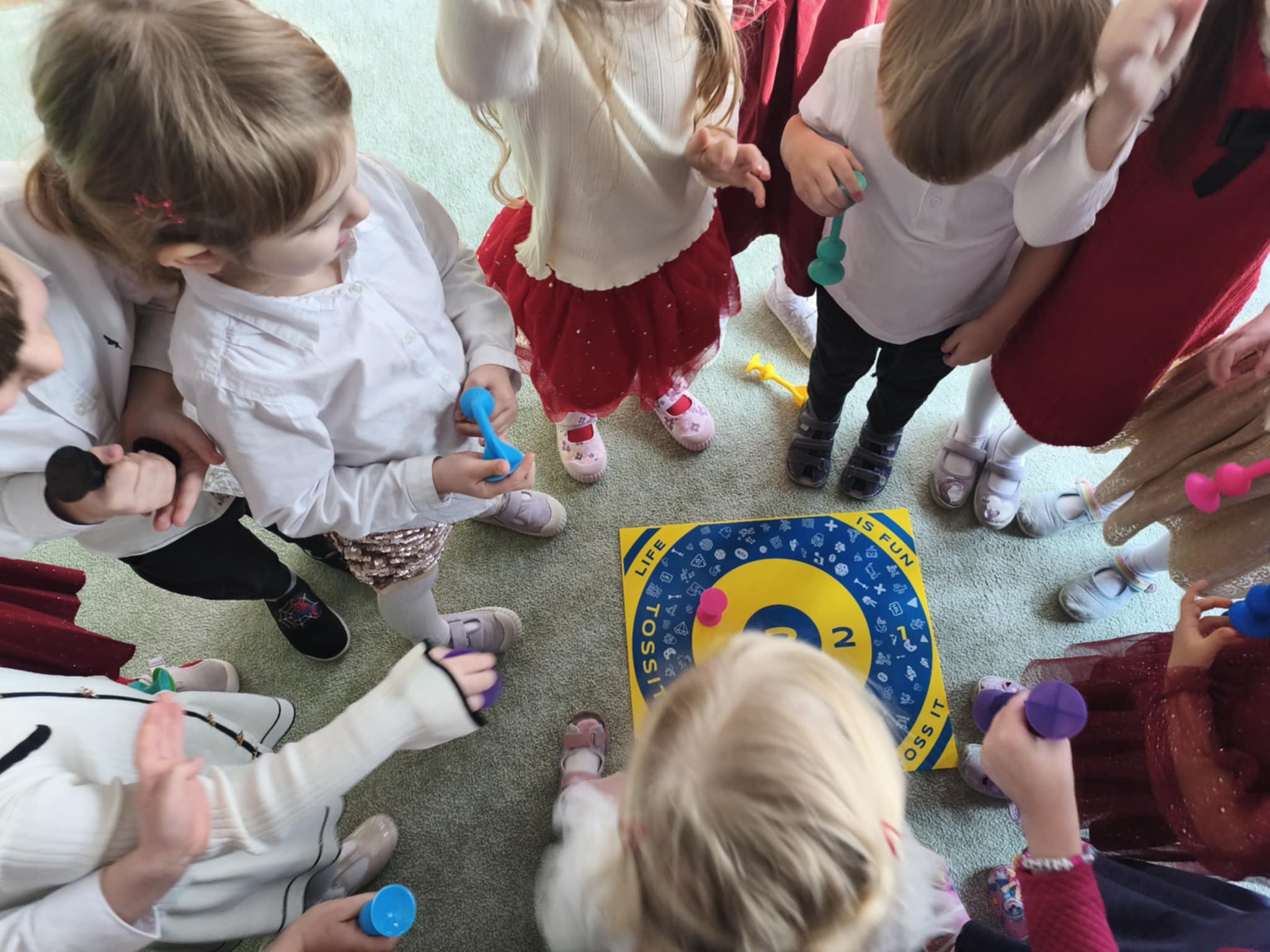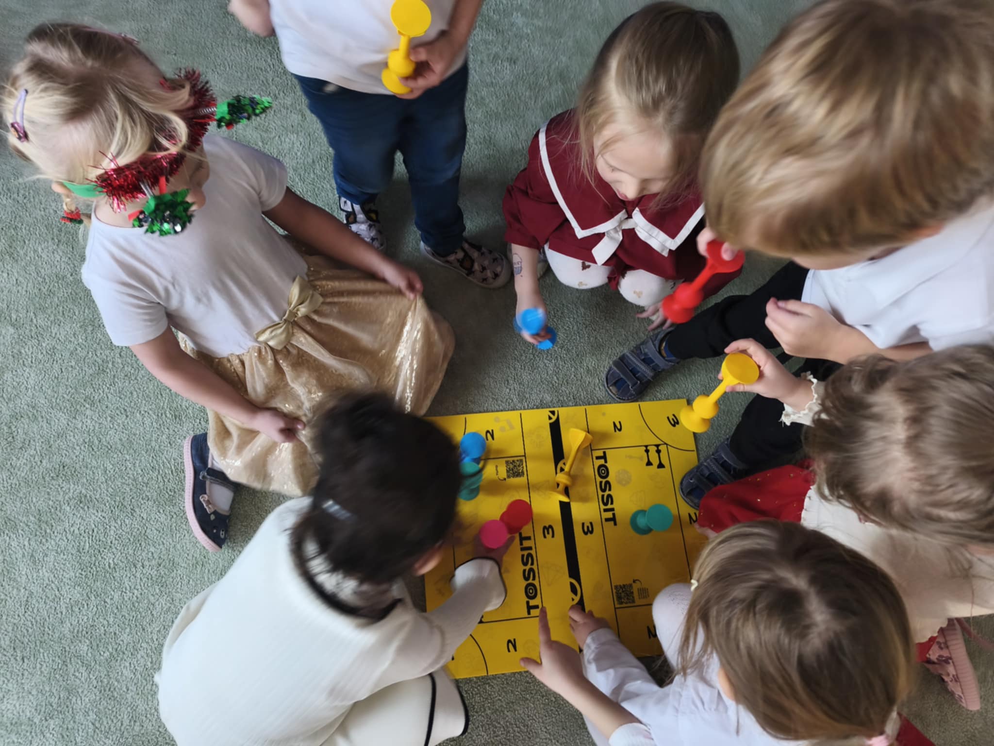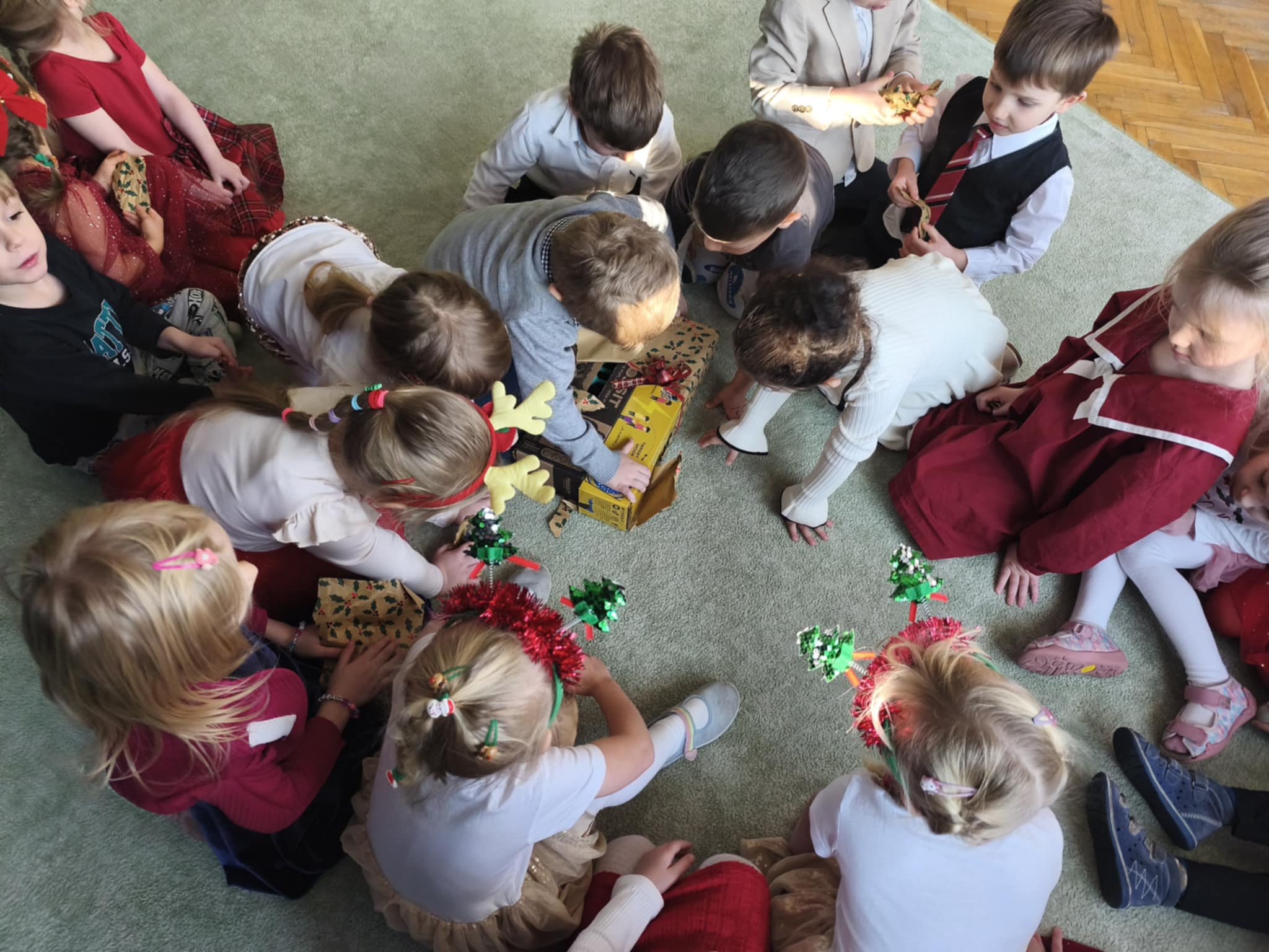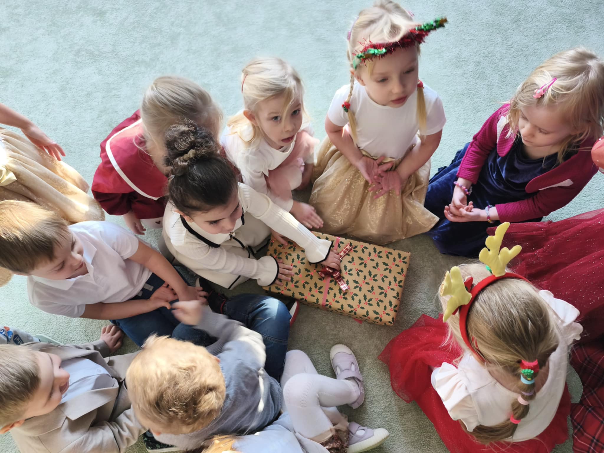 Obiad świąteczny, to już tradycja w naszym przedszkolu. Wszyscy odświętnie ubrani, spotykamy się w jednej z grup, gdzie prezentujemy jedną wybraną świąteczną piosenkę. Przed posiłkiem rozmawiamy o świątecznych tradycjach, składamy sobie z opłatkiem w ręku życzenia i siadamy do świątecznie przygotowanego wspólnego stołu. To nie wszystko. Dostaliśmy od Mikołaja wspólny prezent dla całej grupy zasponsorowany przez Radę Rodziców, z którego będziemy mogli korzystać przez cały rok. To był wyjątkowy, pełen wrażeń i pozytywnych emocji magiczny dzień.