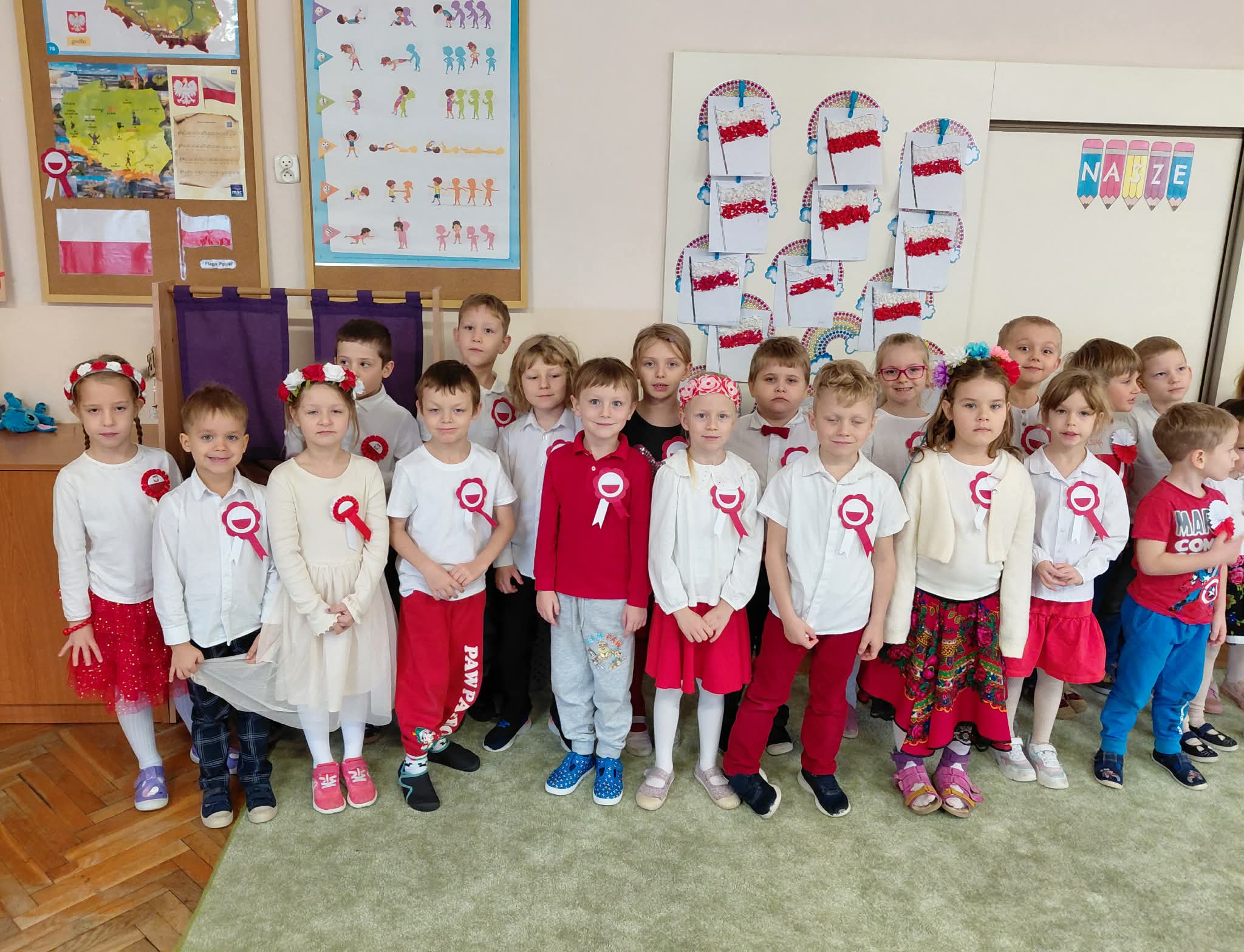 Wszyscy jesteśmy dumni z tego, że jesteśmy Polakami. Całe nasze przedszkole brało udział w akcji "Szkoła do hymnu" podczas której dokładnie o godzinie 11:11, odśpiewaliśmy Mazurka Dąbrowskiego. Odbył się również Pokaz Mody Patriotycznej. Dzieci we wszystkich grupach rozmawiały z nauczycielkami na temat znaczenia słowa patriotyzm.